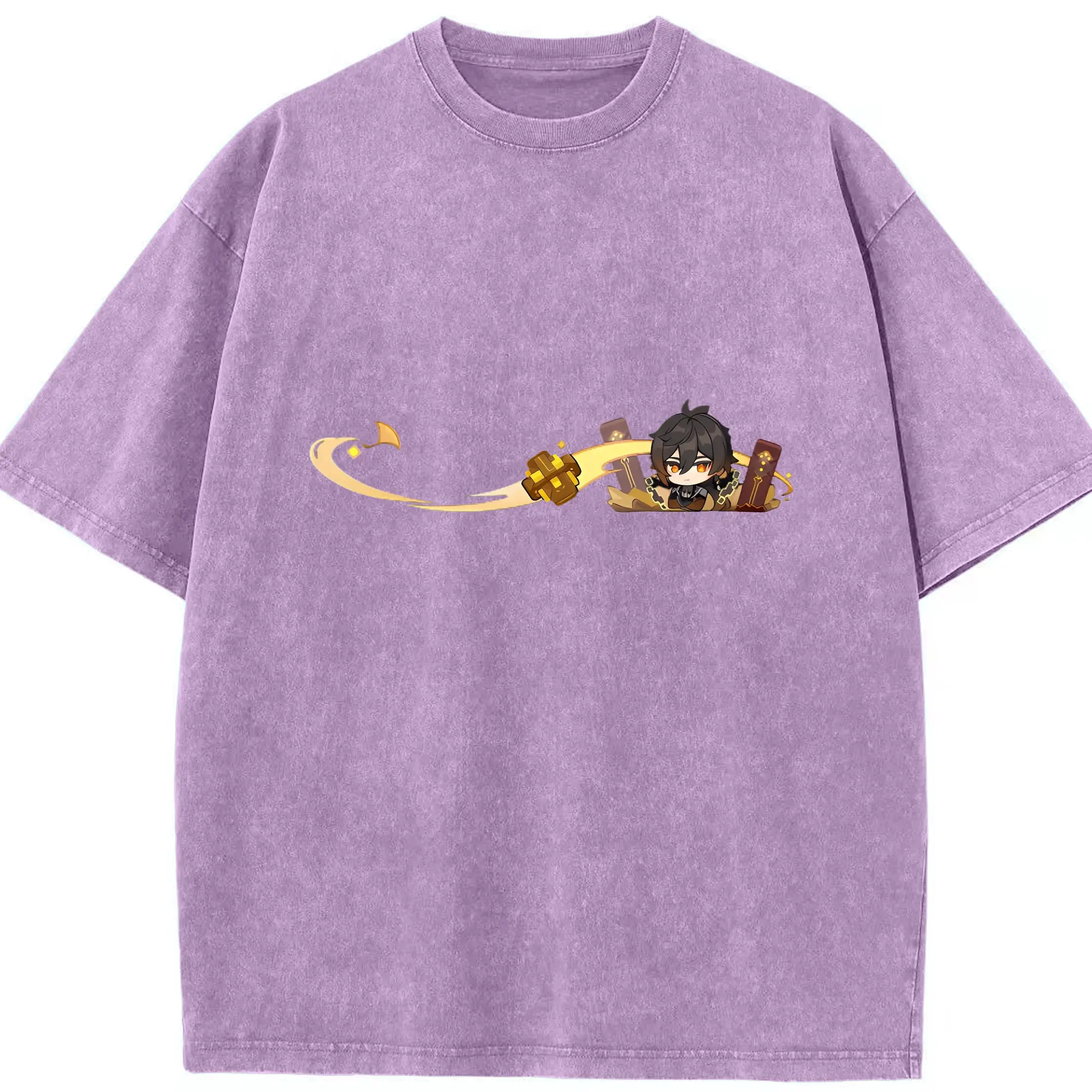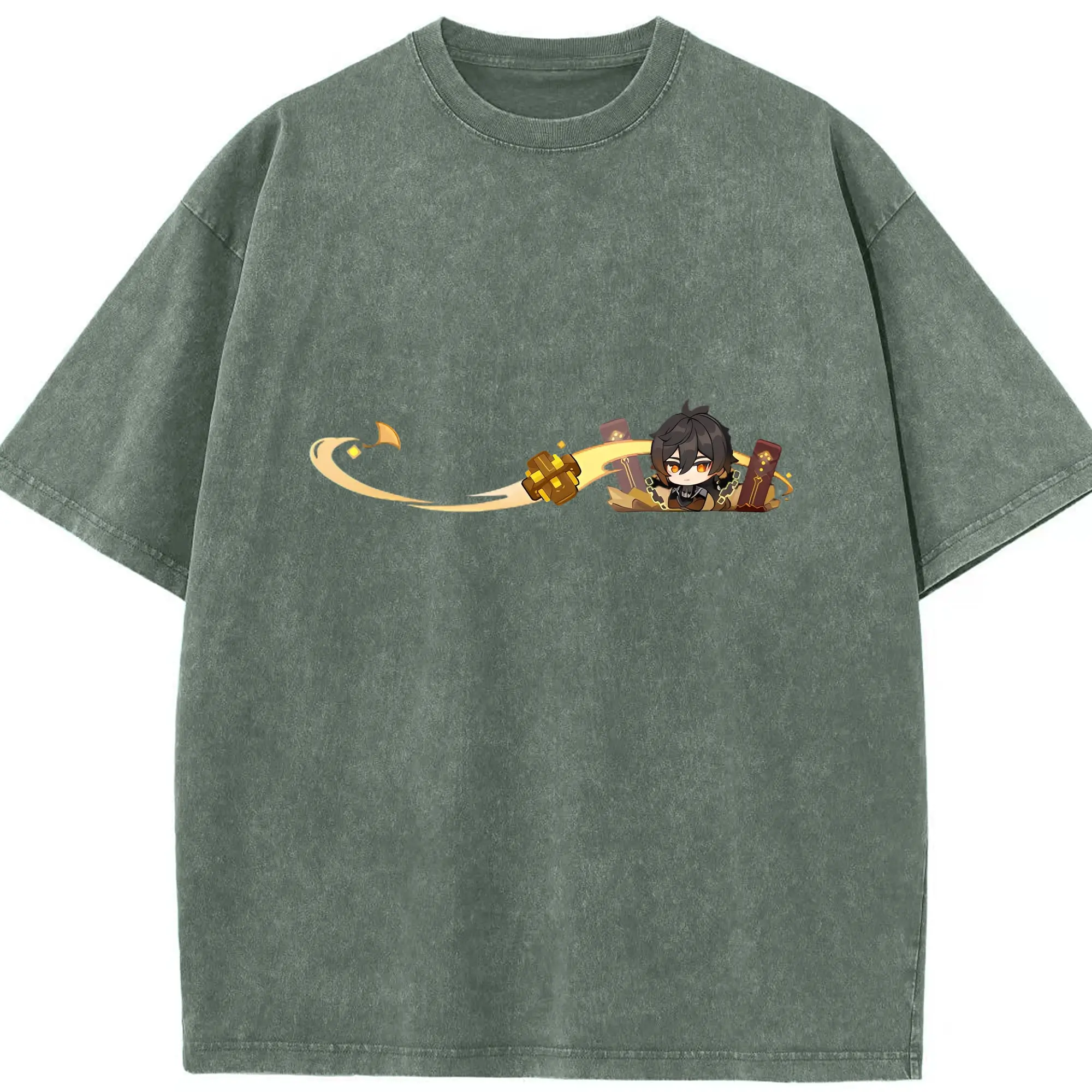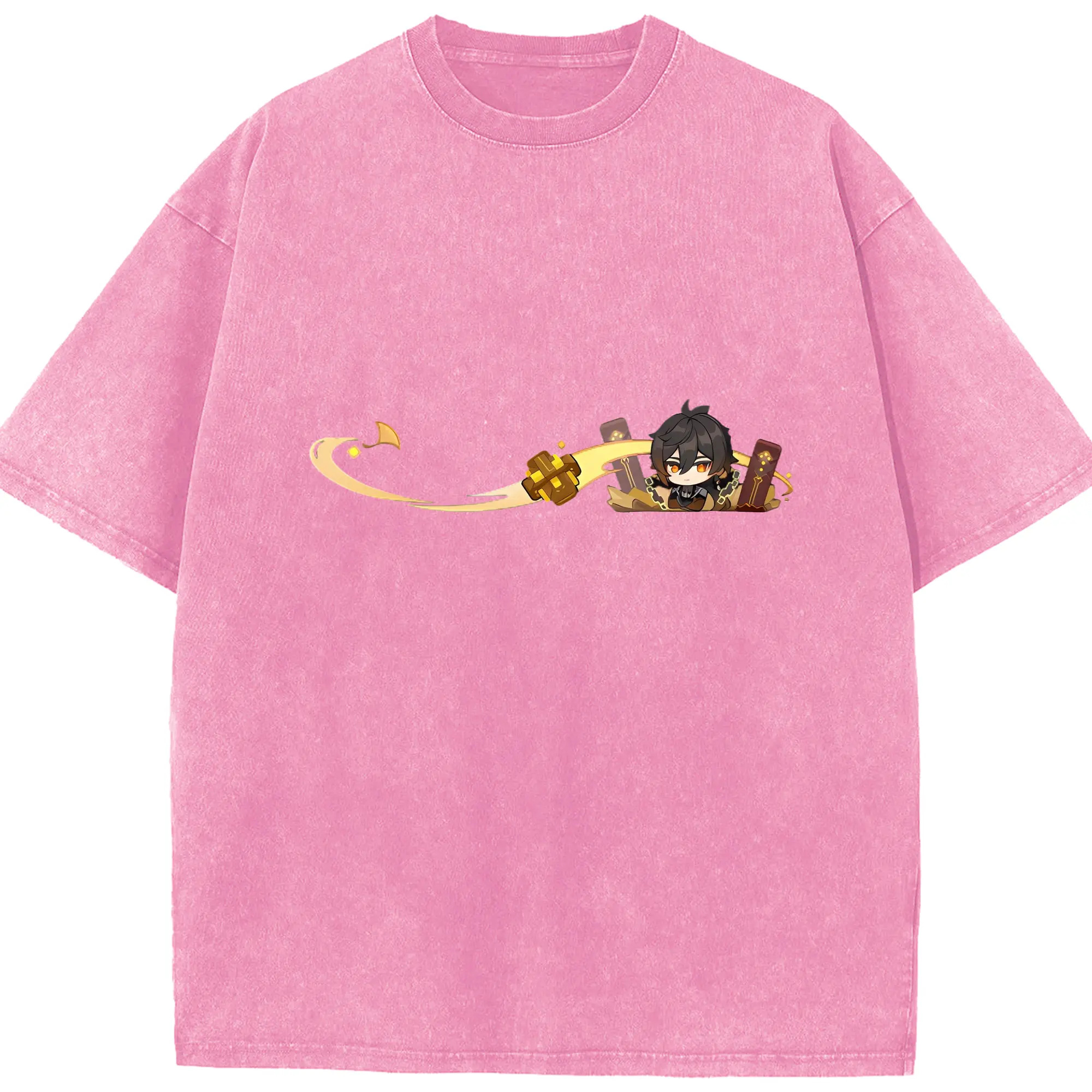Genshin 岩神がんしんモラクス ショウリ - 綿100% ヴィンテージ風 半袖Tシャツ ・ フロントプリント ・ 柔らか肌触り ・ 通気性 快適 ・ スポーツ カジュアル 外出用
