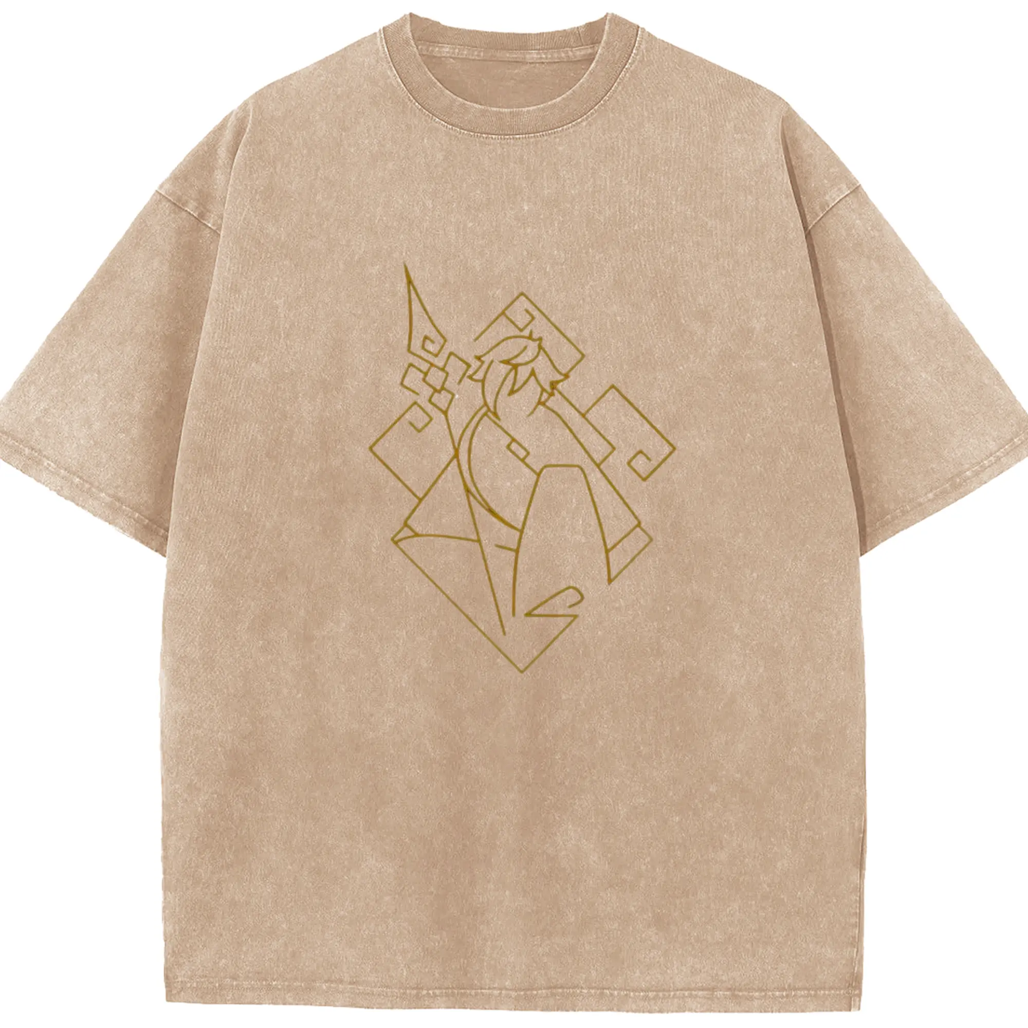 Genshin 岩神がんしんモラクス ショウリ - 綿100% ヴィンテージ風 半袖Tシャツ ・ フロントプリント ・ 柔らか肌触り ・ 通気性 快適 ・ スポーツ カジュアル 外出用