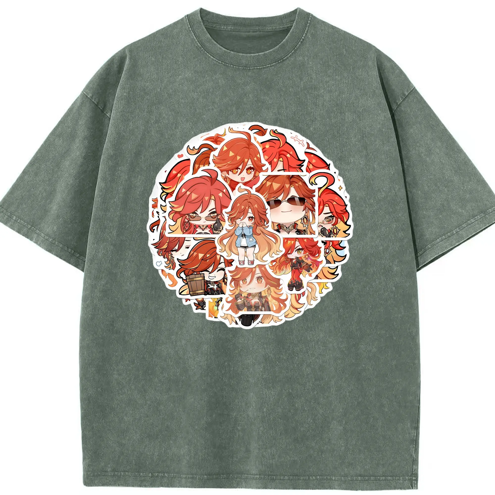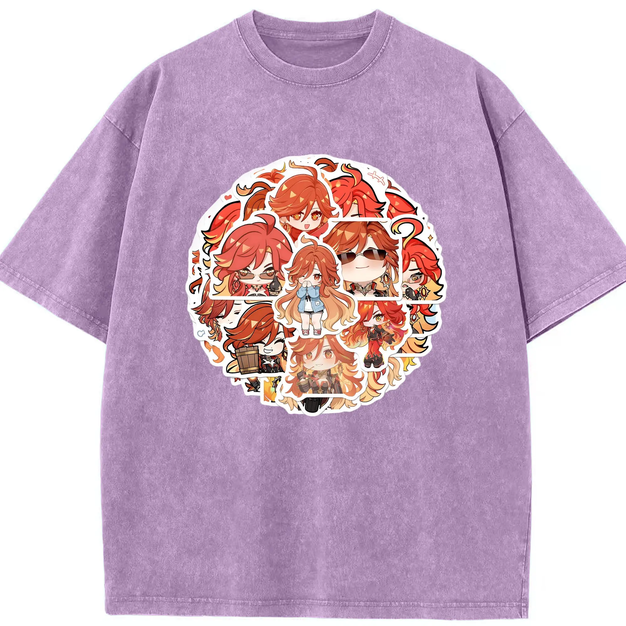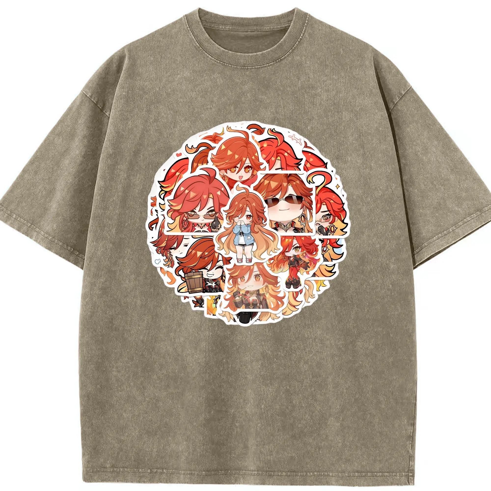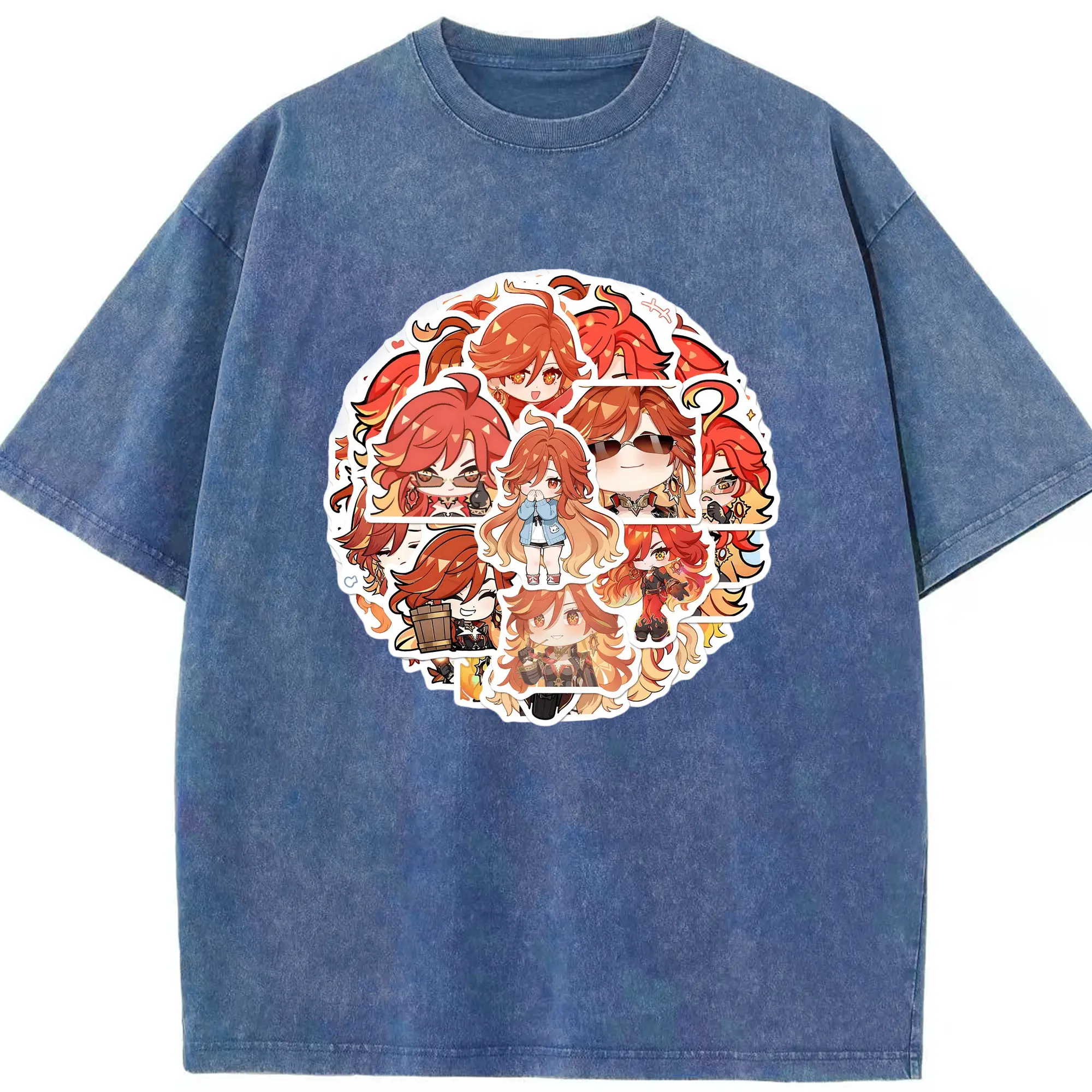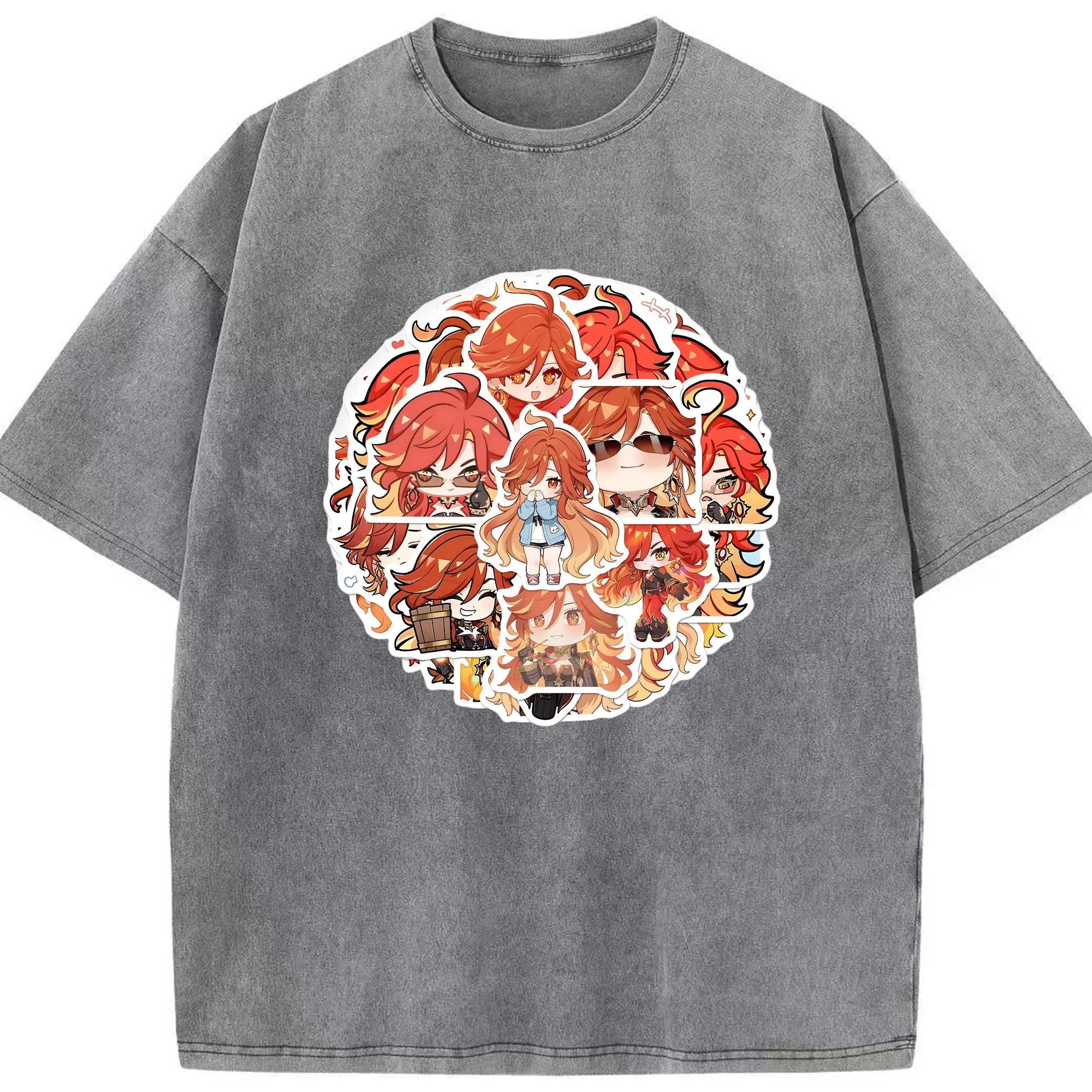 Genshin 炎神えんしん マーヴィカ - 綿100% ヴィンテージ風 半袖Tシャツ ・ フロントプリント ・ 柔らか肌触り ・ 通気性 快適 ・ スポーツ カジュアル 外出用