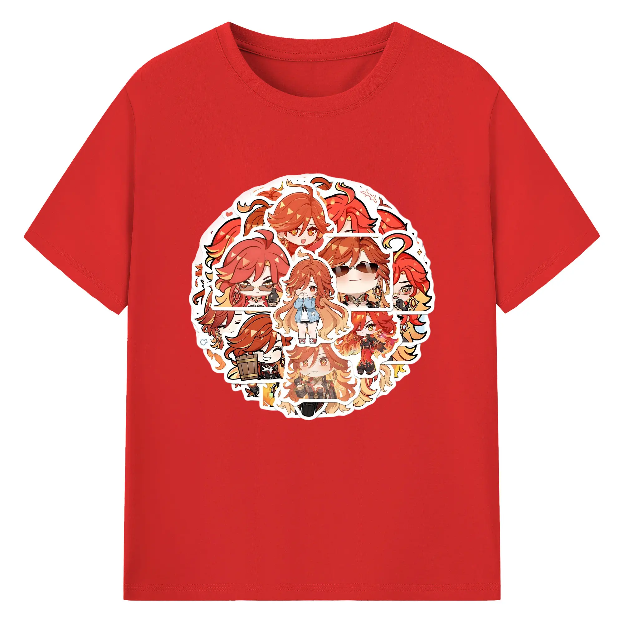 Genshin 炎神えんしん マーヴィカ - 綿100% 半袖Tシャツ ・ フロントプリント ・ 快適 通気性 ・ 日常使い 散歩 スポーツ用