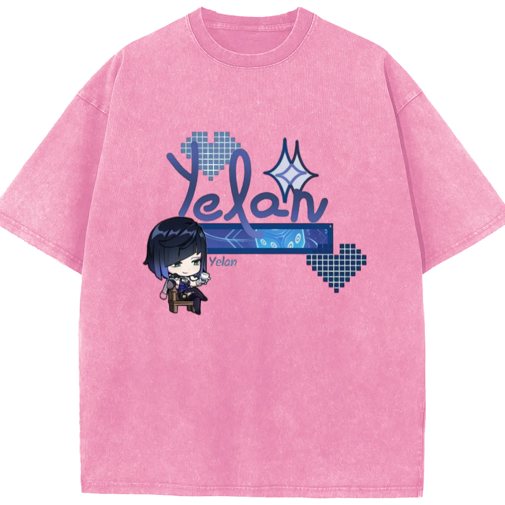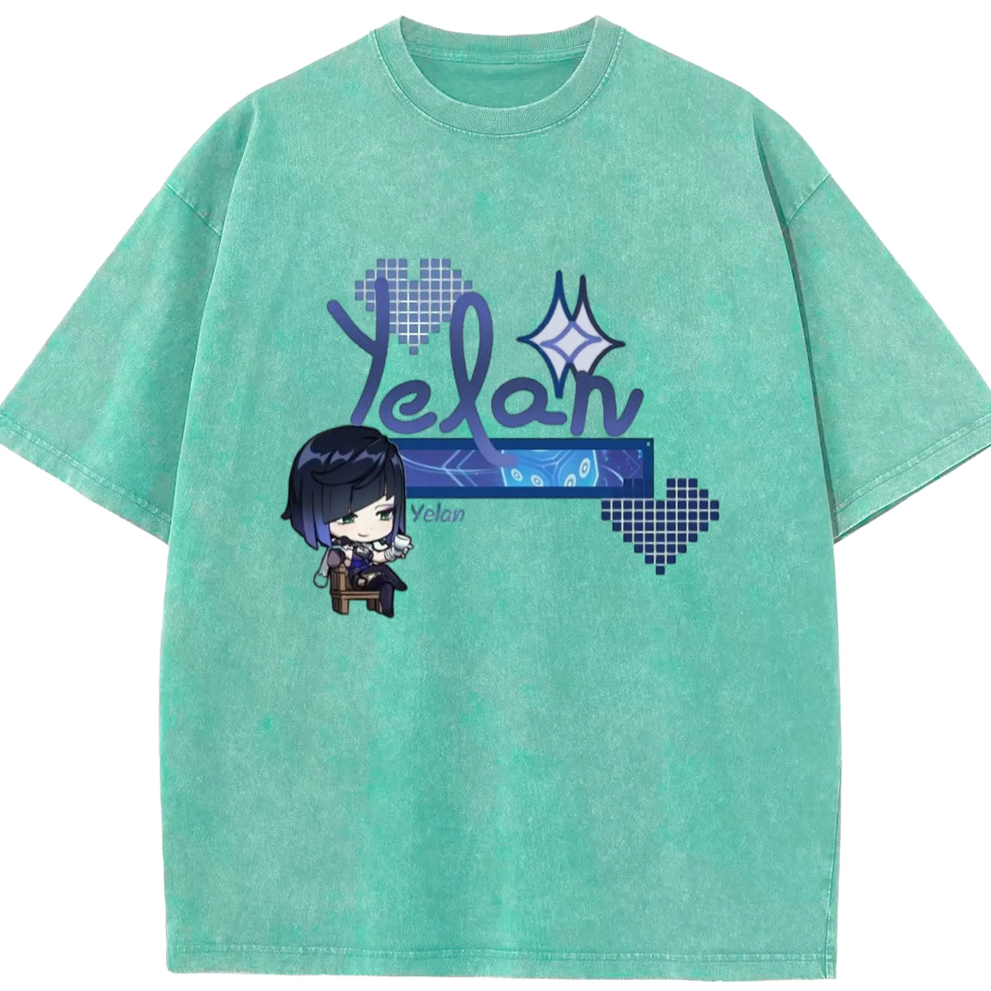 Genshin 璃月 夜蘭 - 綿100% ヴィンテージ風 半袖Tシャツ ・ フロントプリント ・ 柔らか肌触り ・ 通気性 快適 ・ スポーツ カジュアル 外出用
