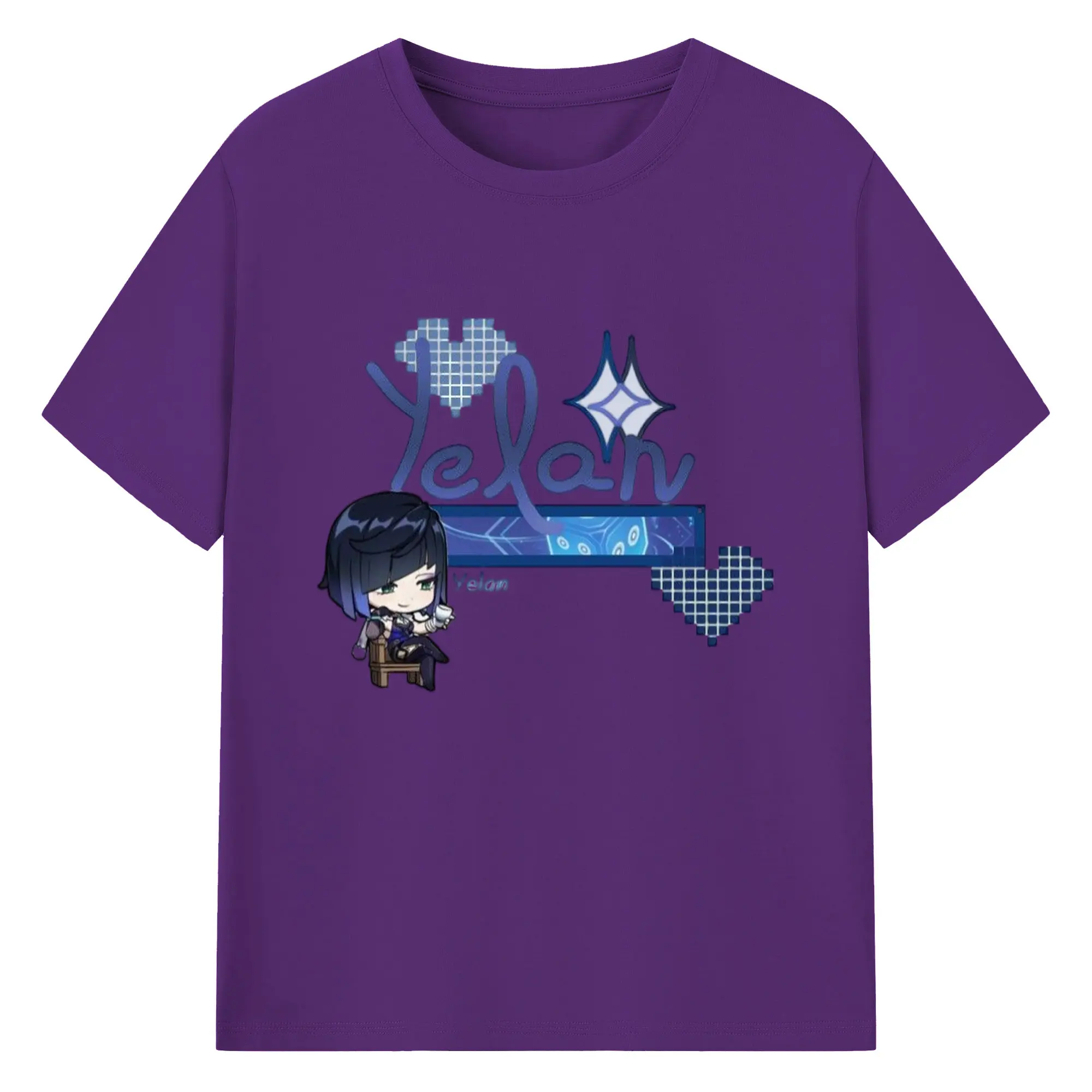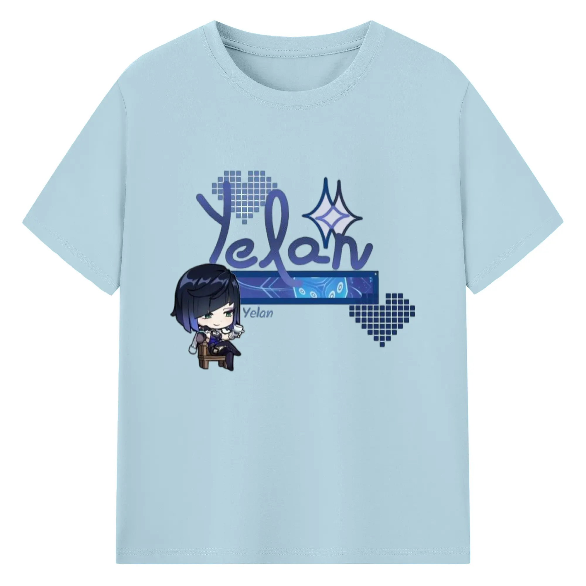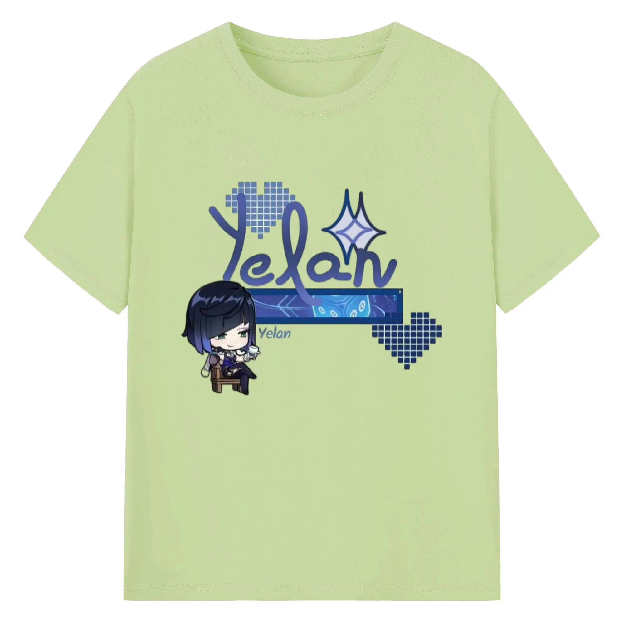 Genshin 璃月 夜蘭 - 綿100% 半袖Tシャツ ・ フロントプリント ・ 快適 通気性 ・ 日常使い 散歩 スポーツ用