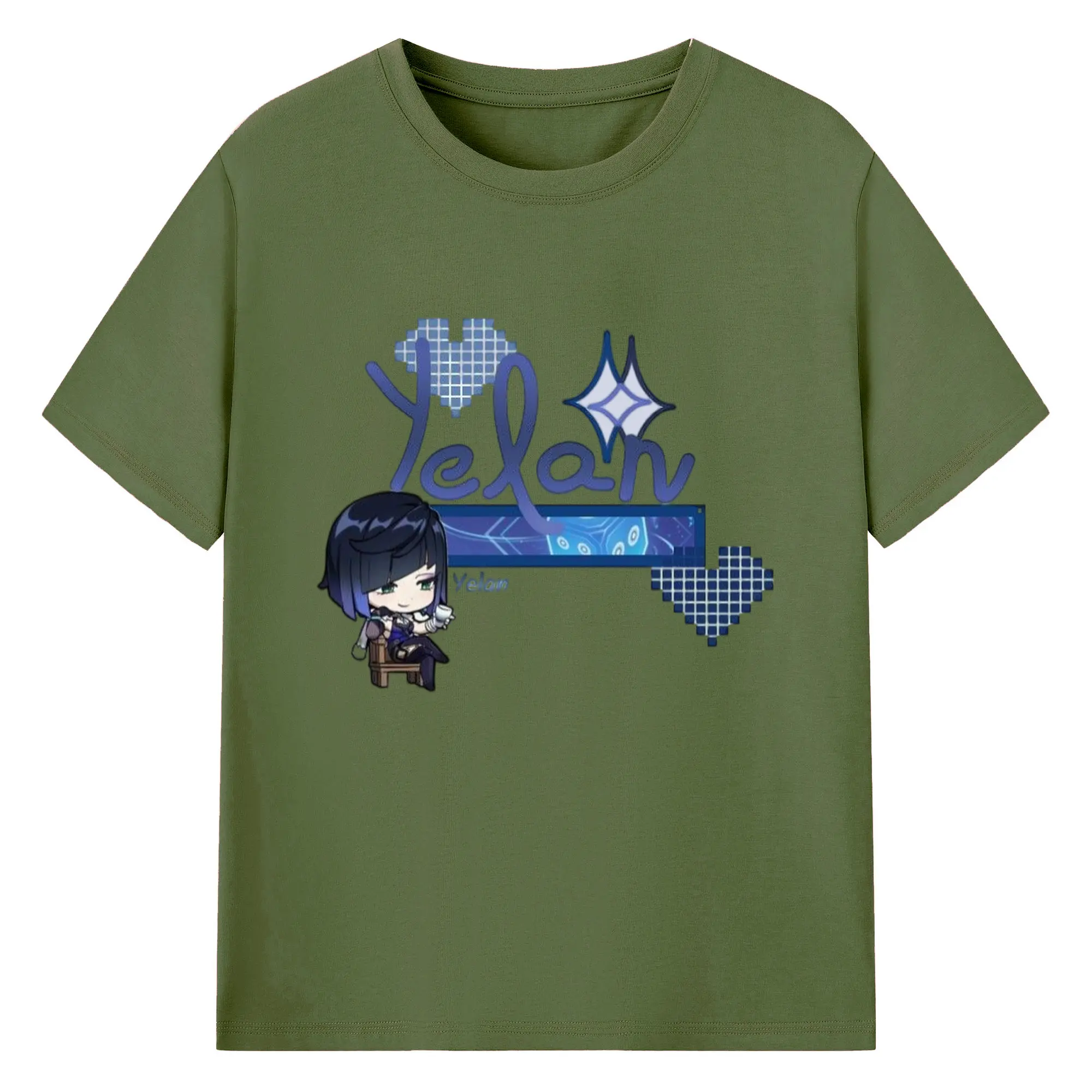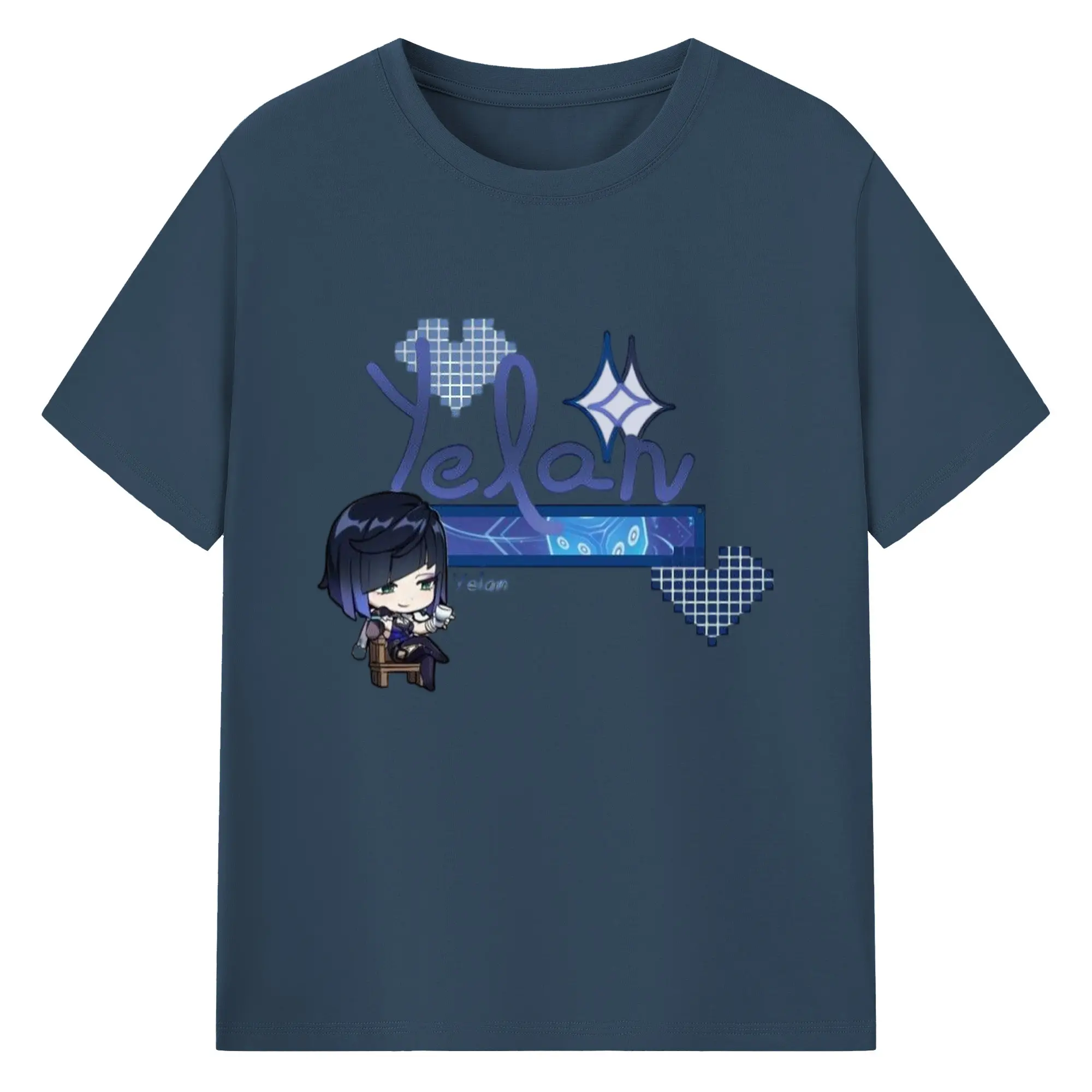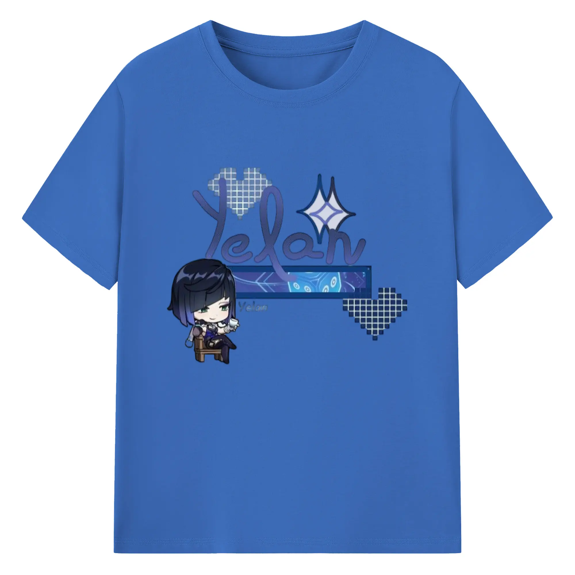 Genshin 璃月 夜蘭 - 綿100% 半袖Tシャツ ・ フロントプリント ・ 快適 通気性 ・ 日常使い 散歩 スポーツ用