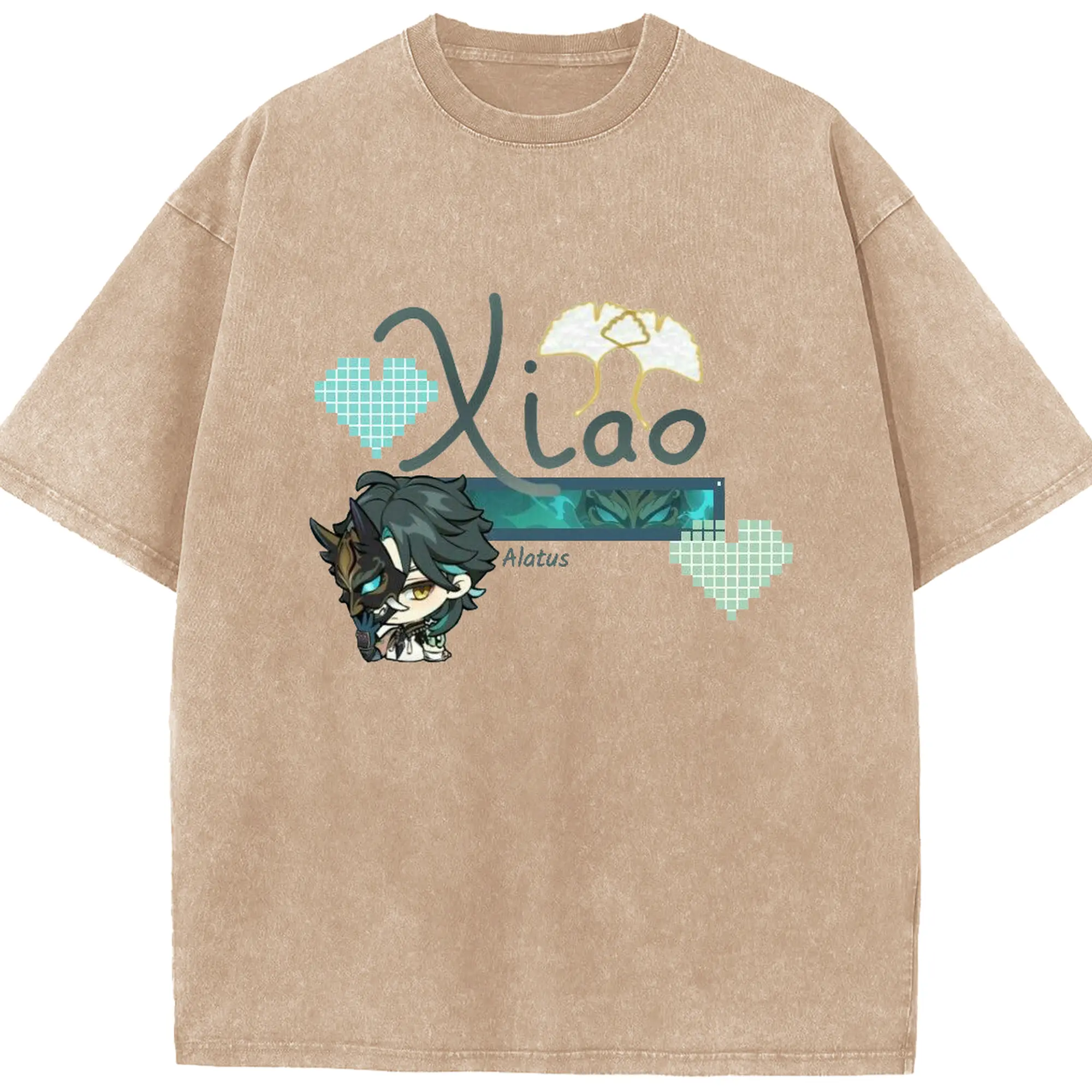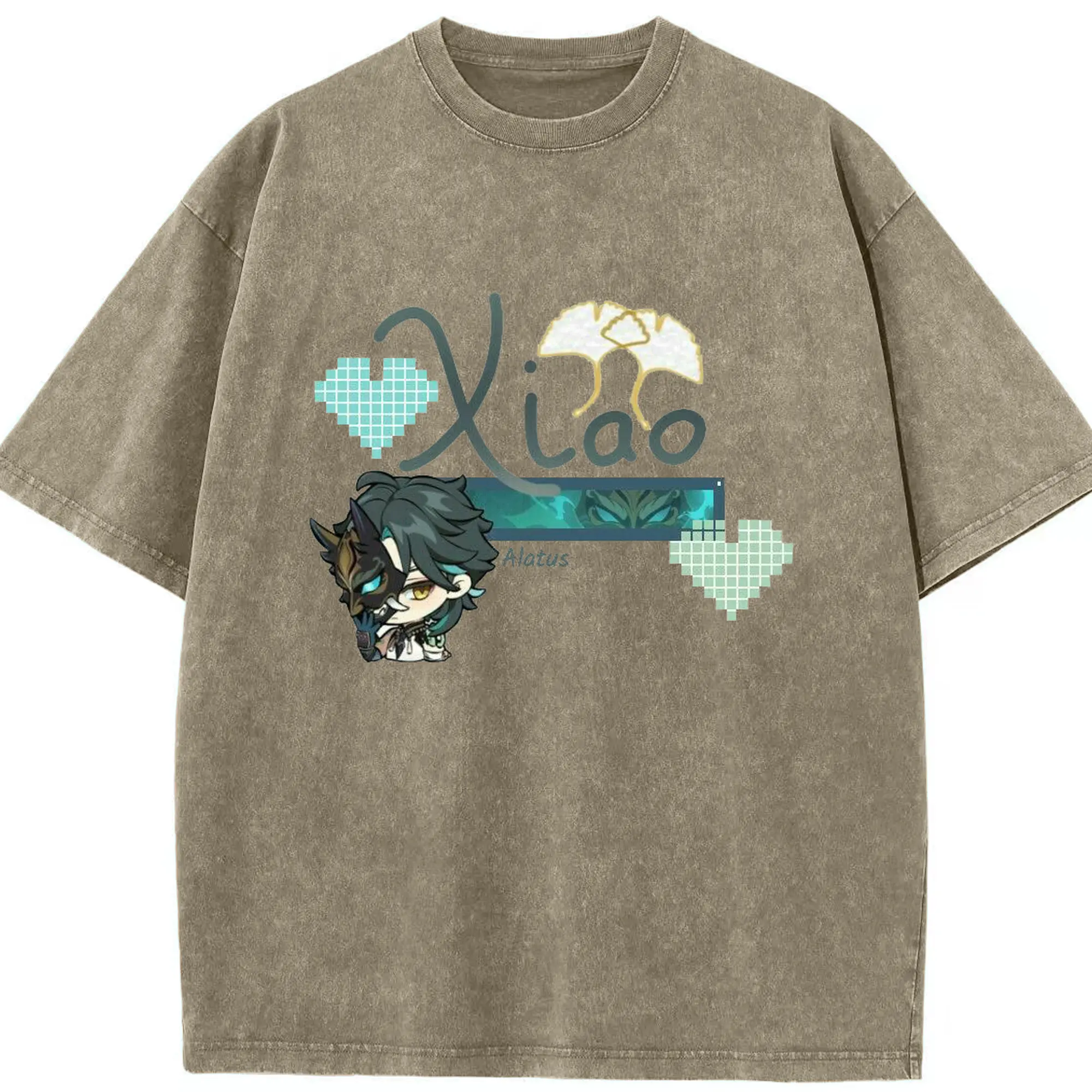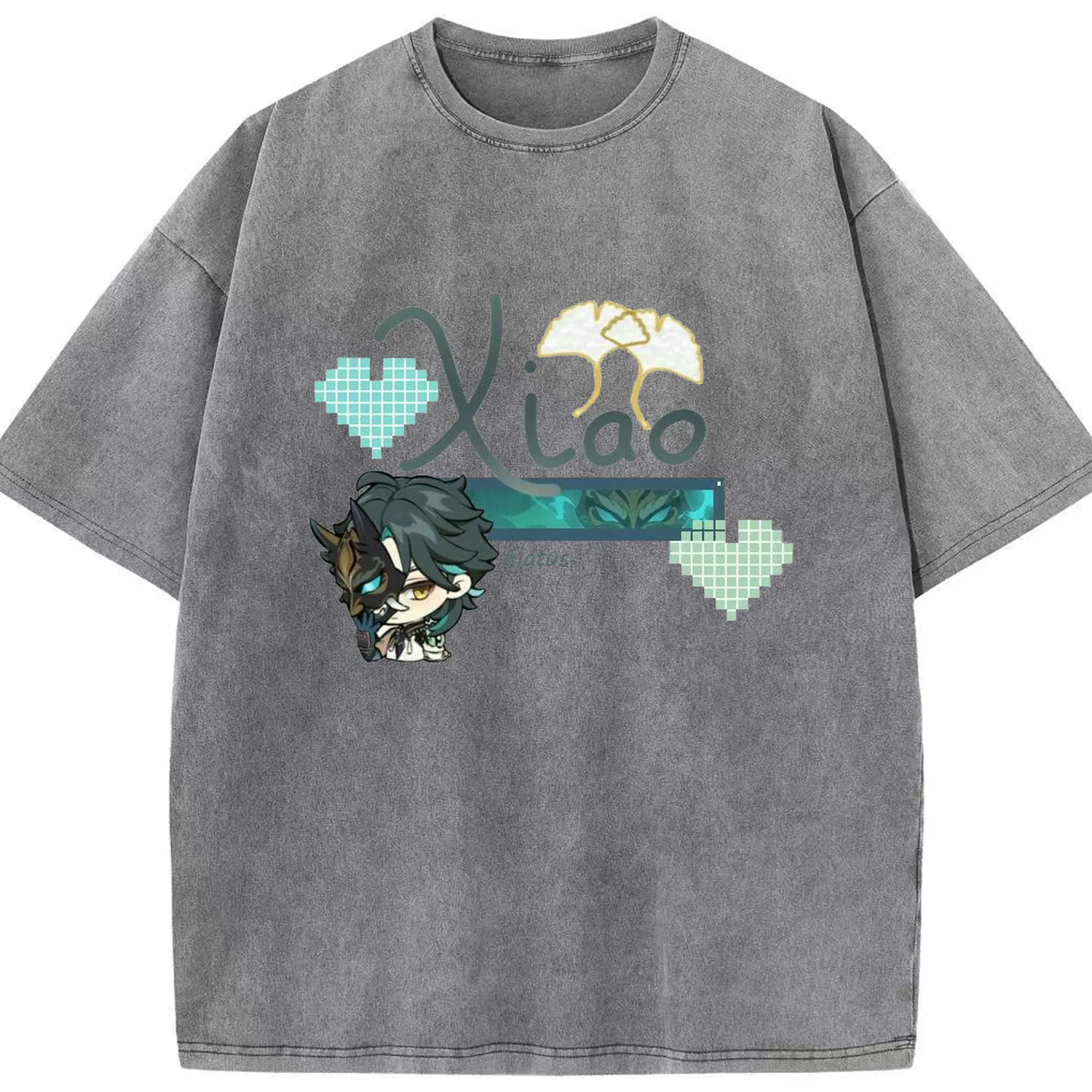 Genshin 璃月 xiao リーユエ ショウ(魈) - 綿100% ヴィンテージ風 半袖Tシャツ ・ フロントプリント ・ 柔らか肌触り ・ 通気性 快適 ・ スポーツ カジュアル 外出用