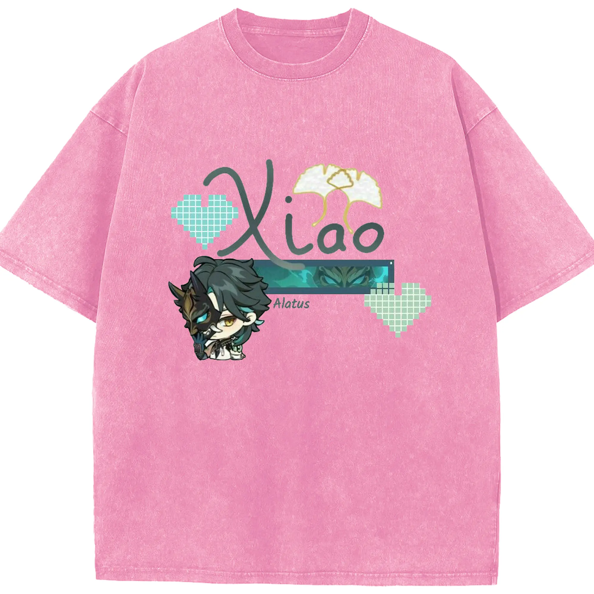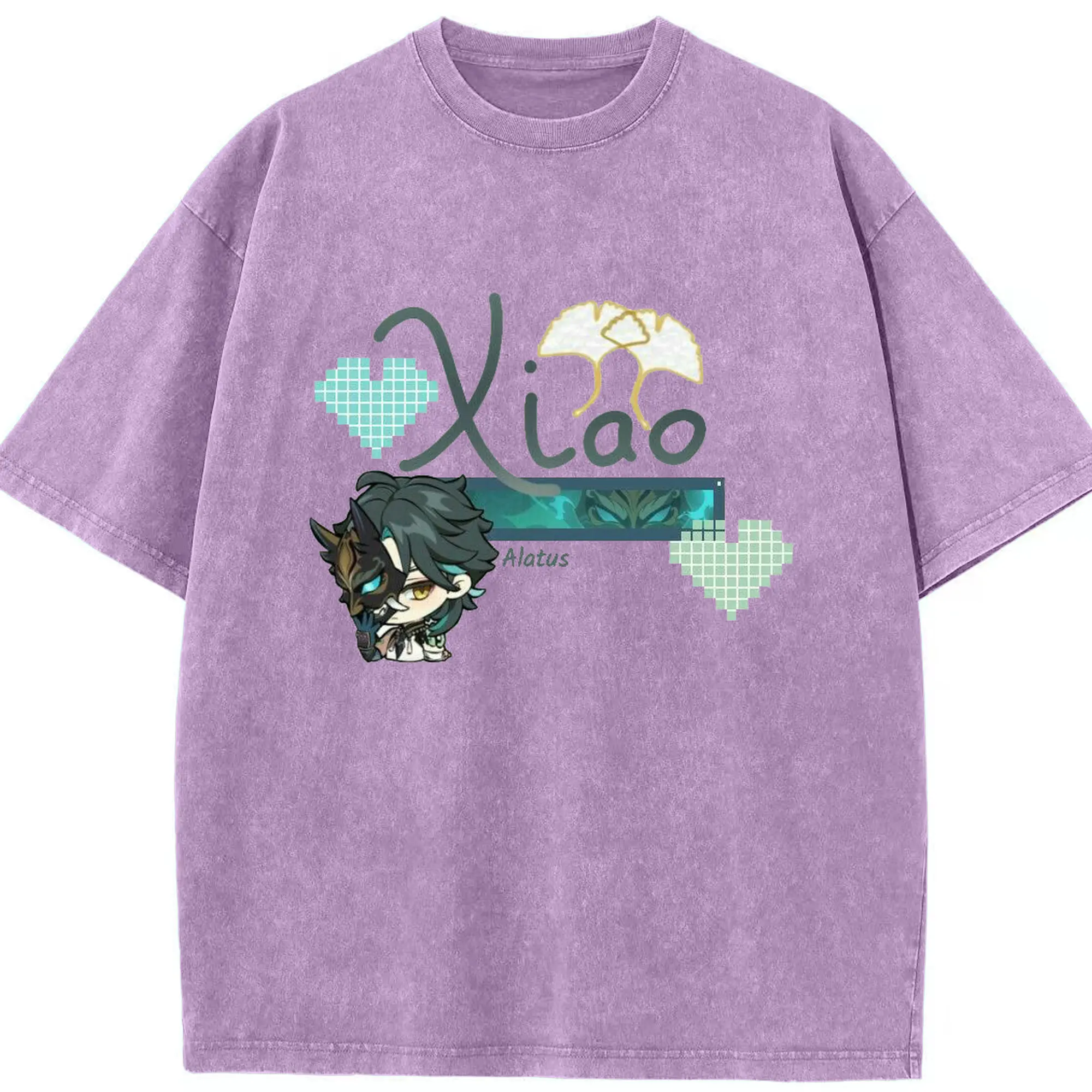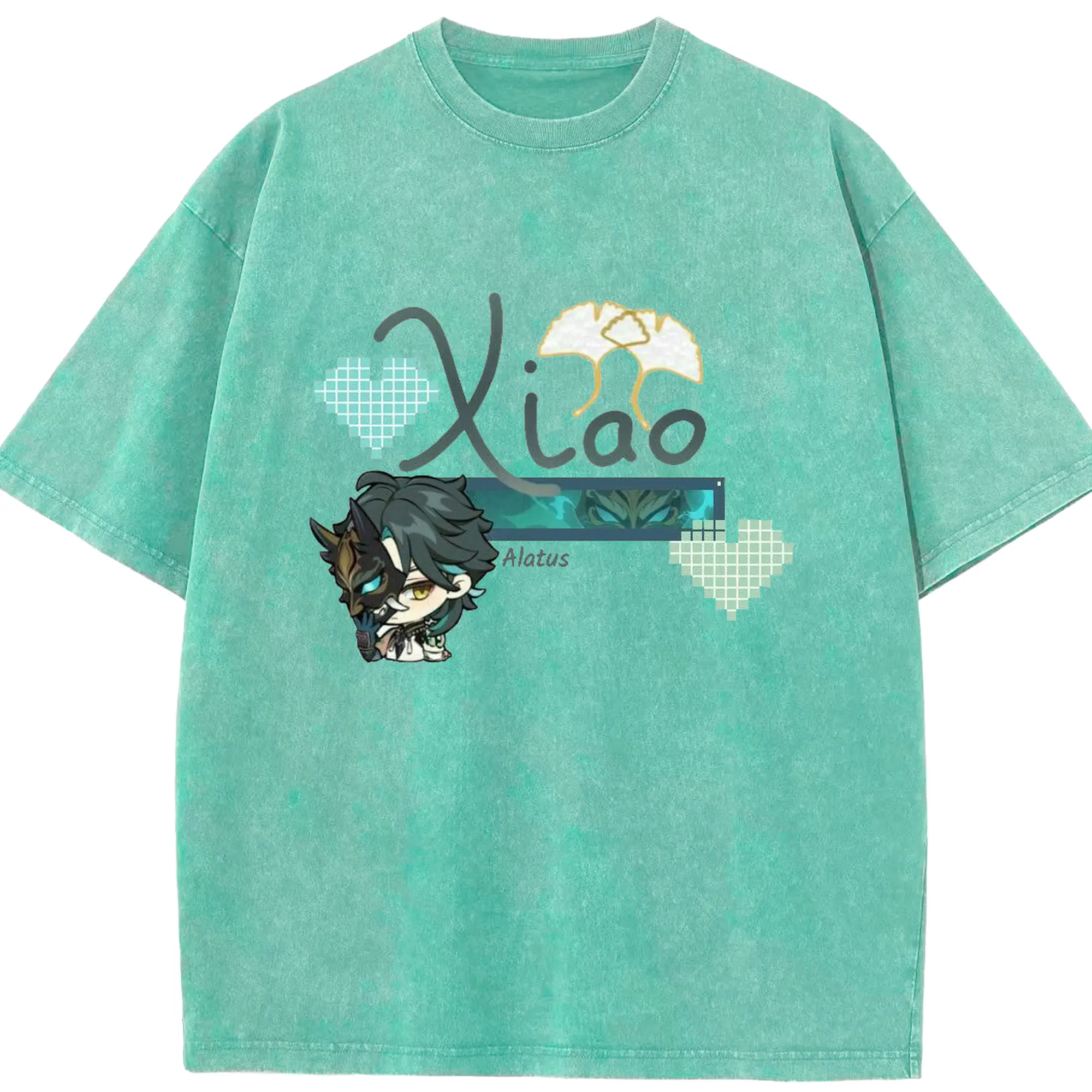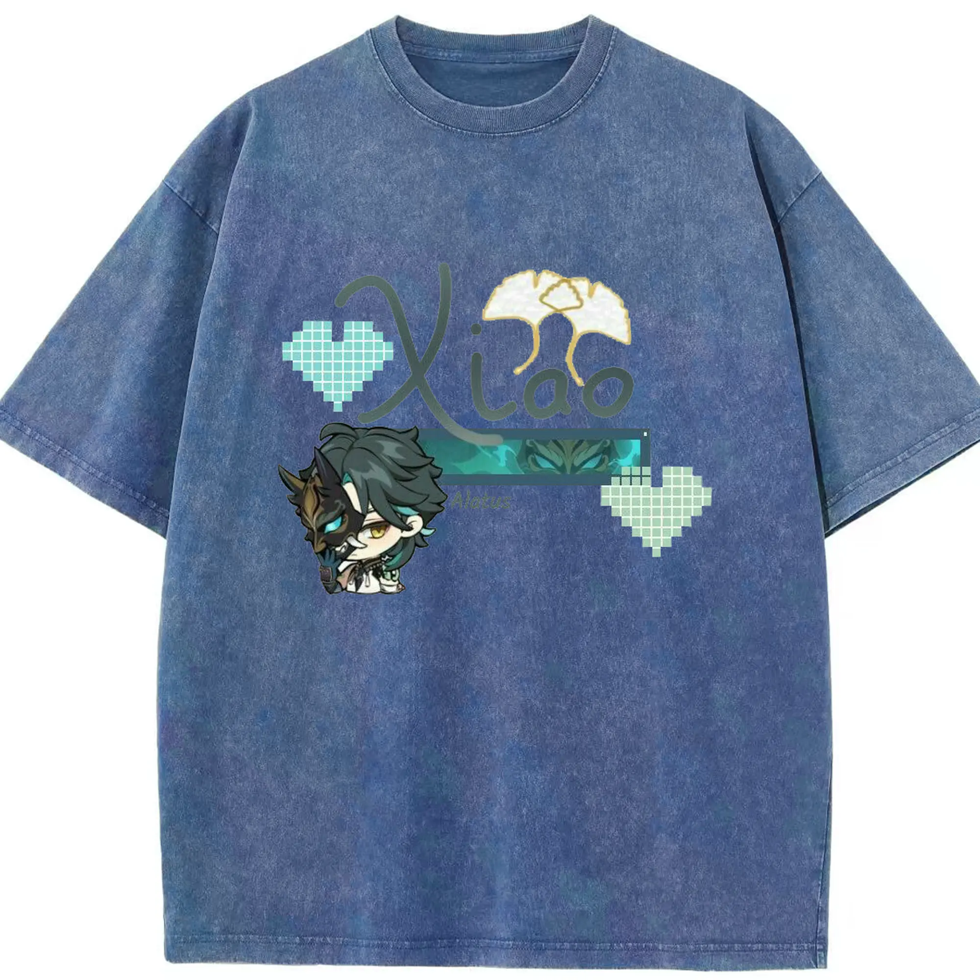 Genshin 璃月 xiao リーユエ ショウ(魈) - 綿100% ヴィンテージ風 半袖Tシャツ ・ フロントプリント ・ 柔らか肌触り ・ 通気性 快適 ・ スポーツ カジュアル 外出用
