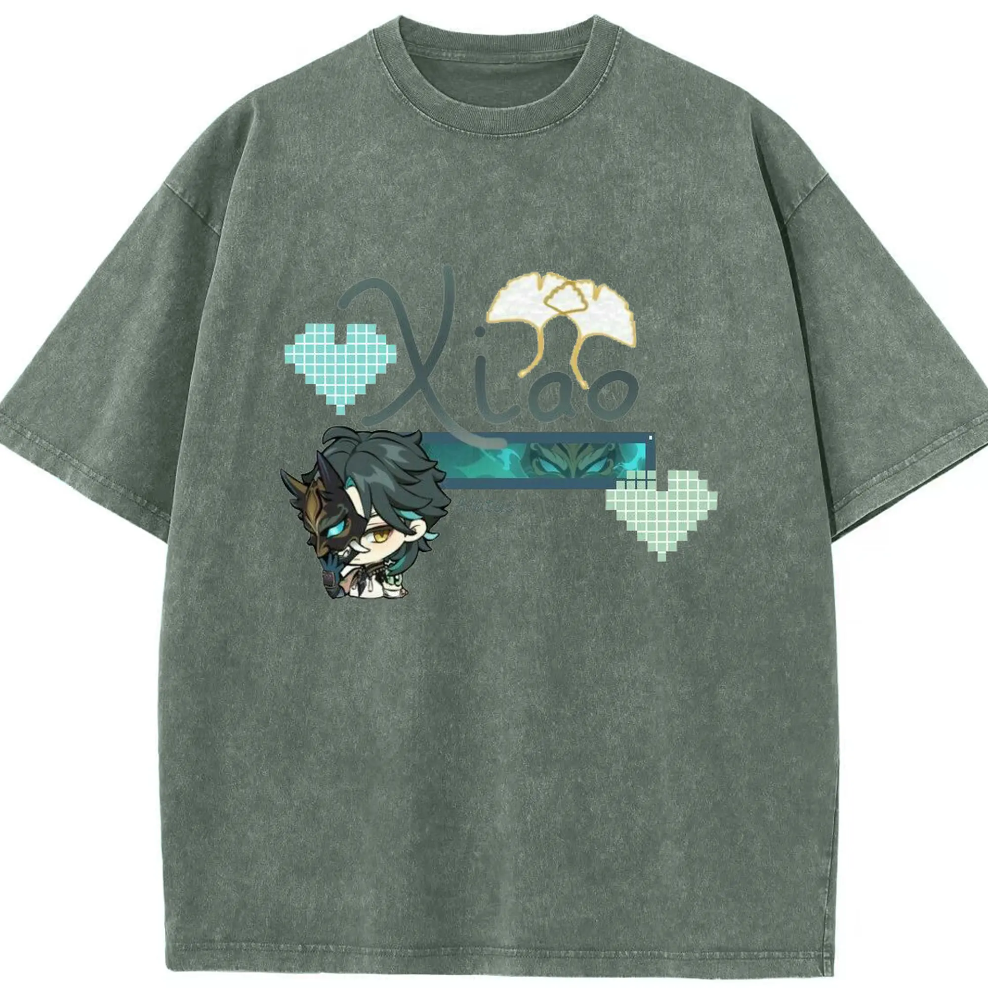 Genshin 璃月 xiao リーユエ ショウ(魈) - 綿100% ヴィンテージ風 半袖Tシャツ ・ フロントプリント ・ 柔らか肌触り ・ 通気性 快適 ・ スポーツ カジュアル 外出用