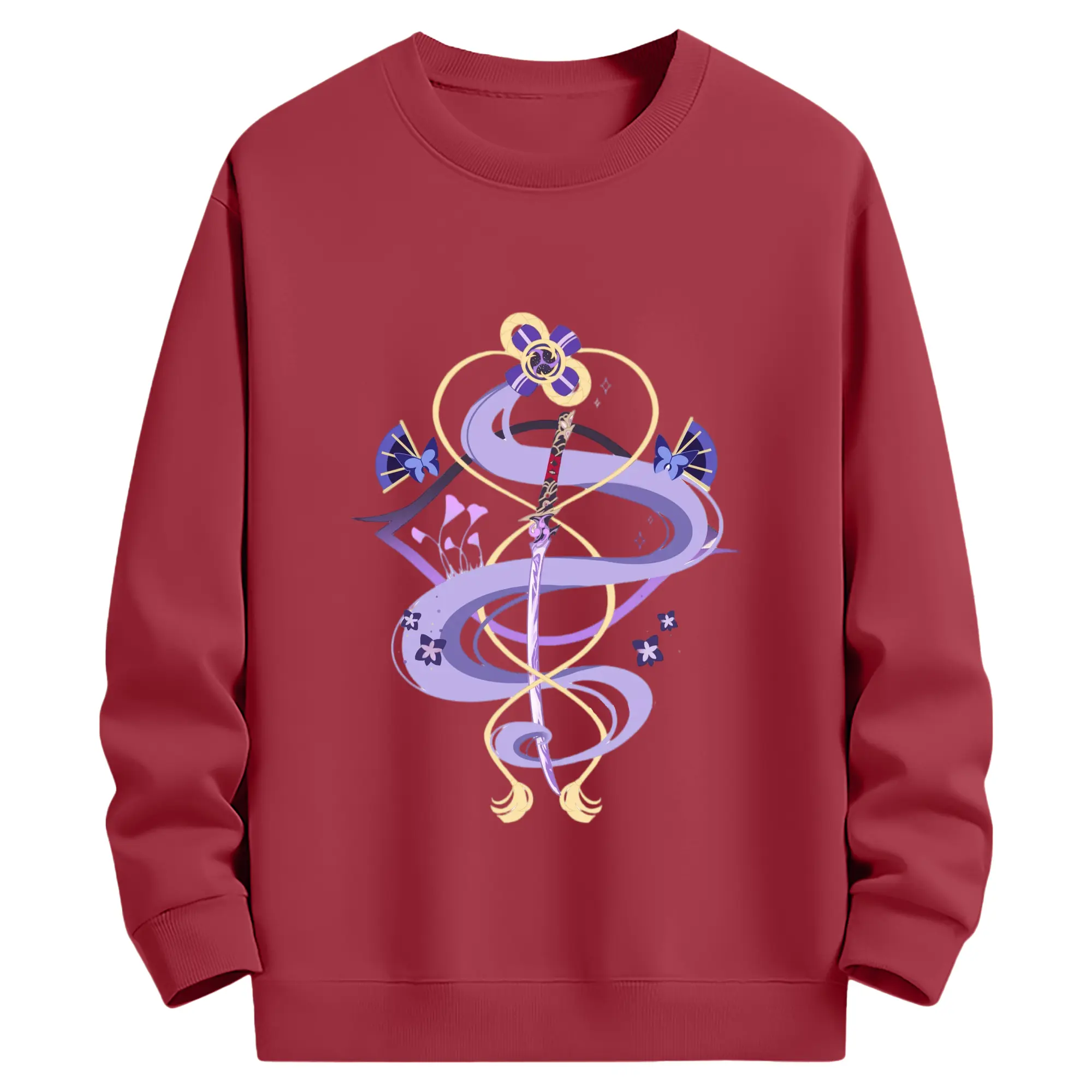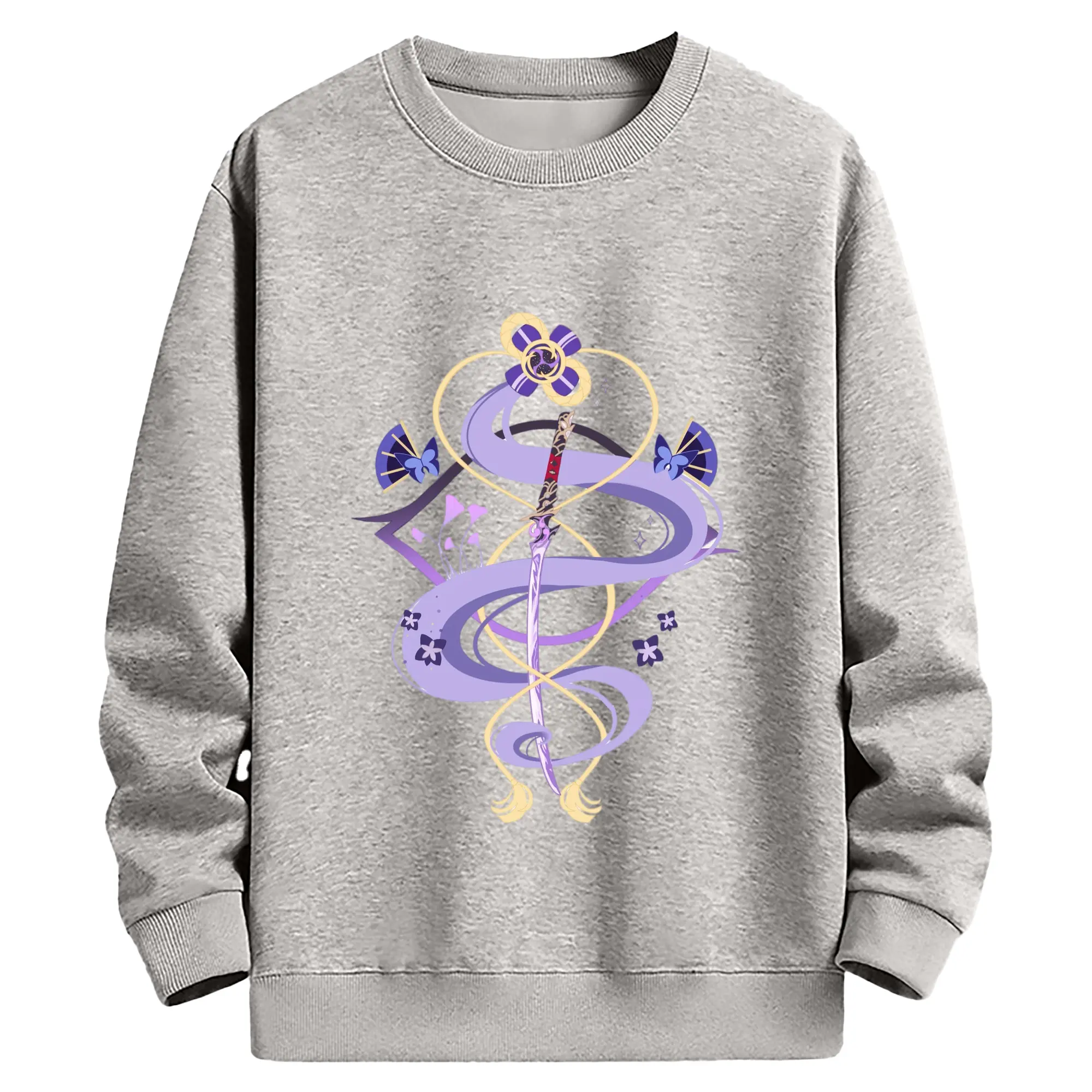 Genshin 稲妻 雷神らいじん ライデンショウグン - 高品質 クルーネック スウェット ・ コットン59% ポリエステル41% ・ ユニセックス 長袖 トレーナー ・ カジュアル デイリー スポーツ 散歩用