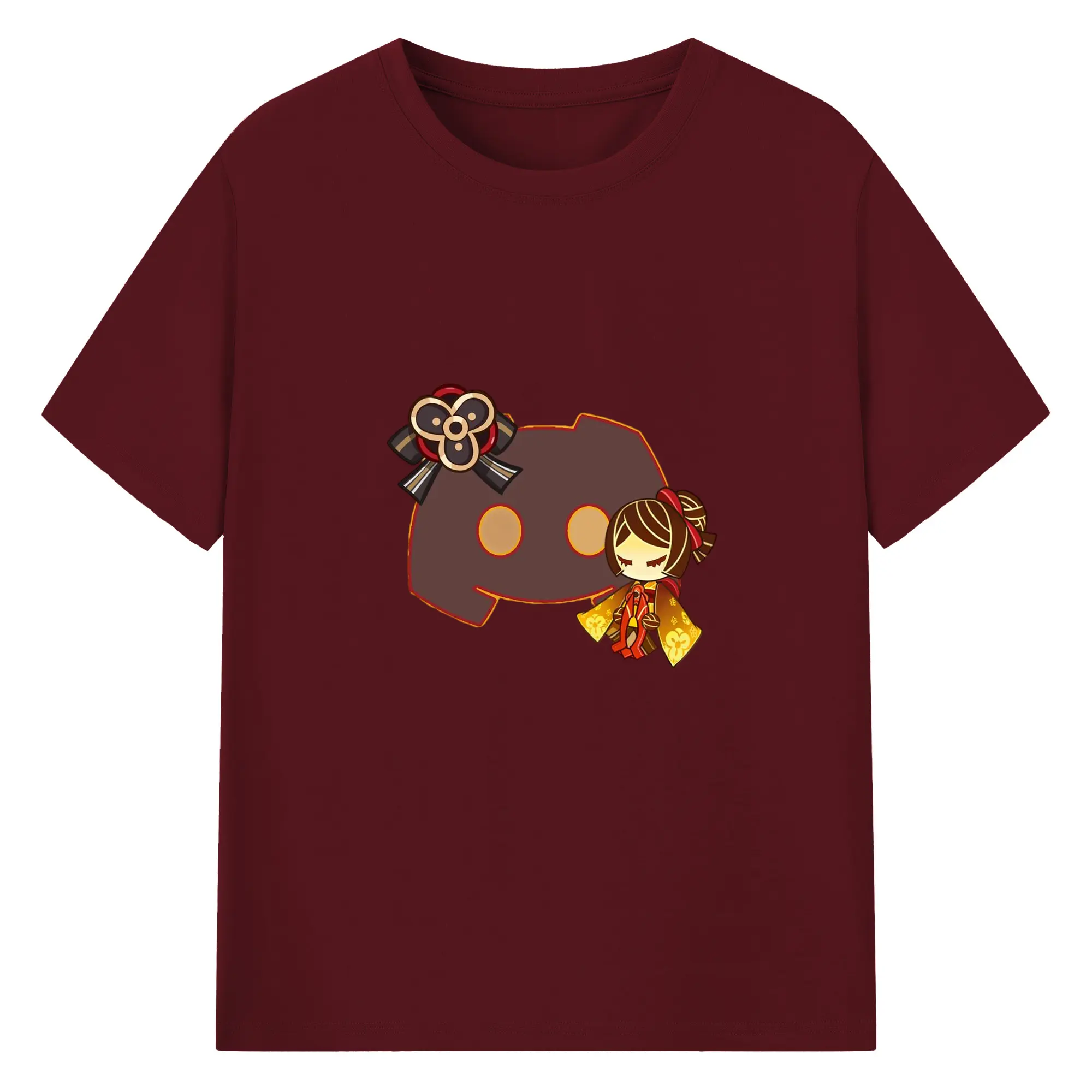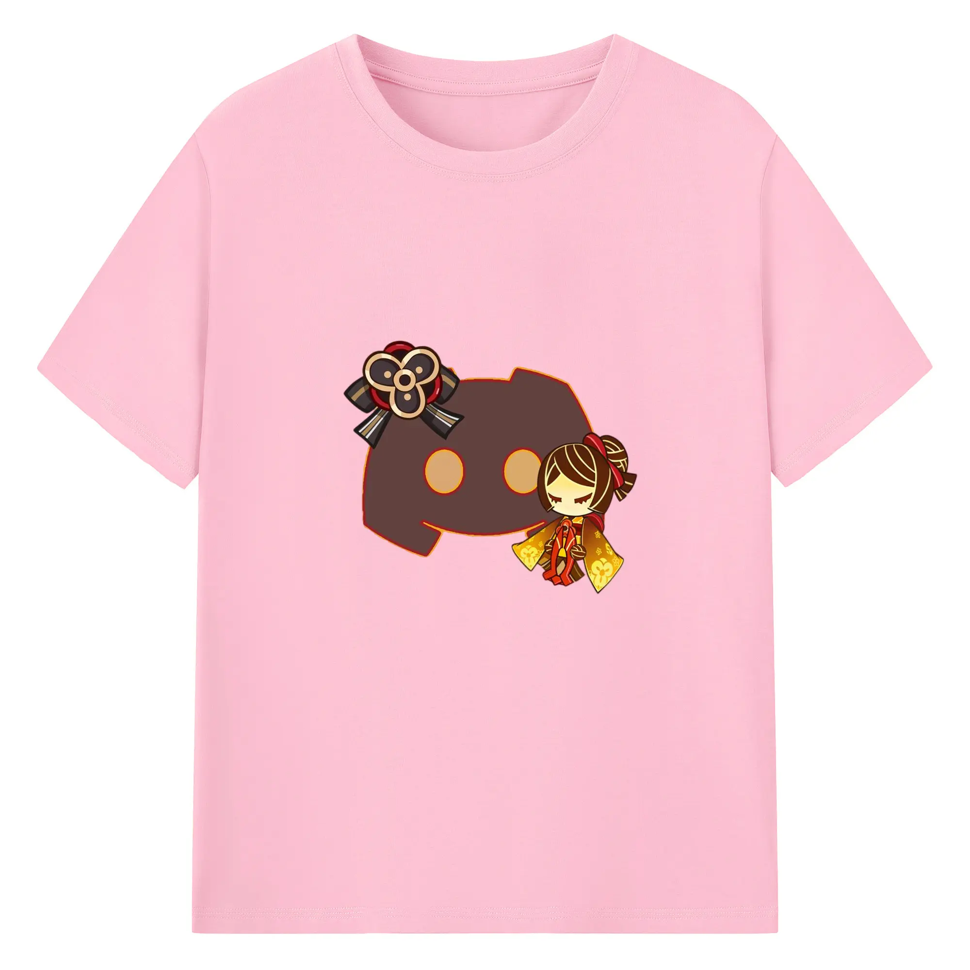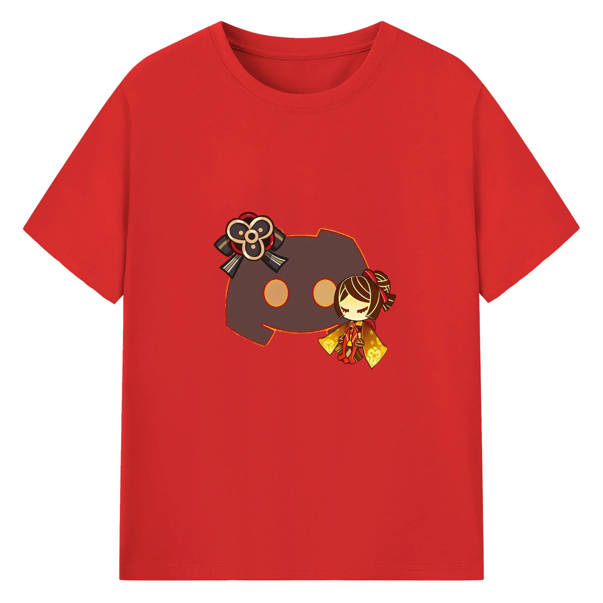Genshi フータオ シンプル原神ロゴ - 綿100% 半袖Tシャツ ・ フロントプリント ・ 快適 通気性 ・ 日常使い 散歩 スポーツ用