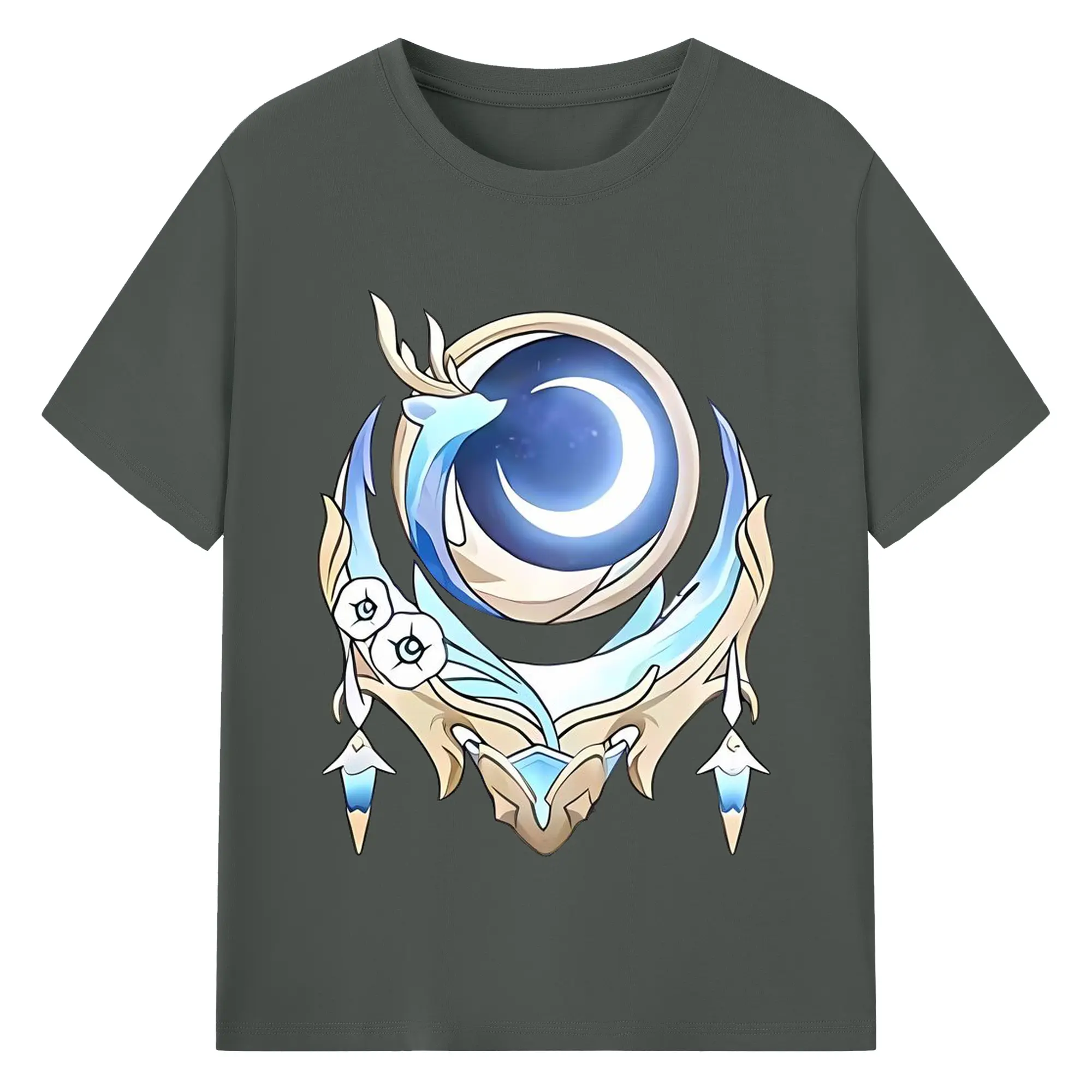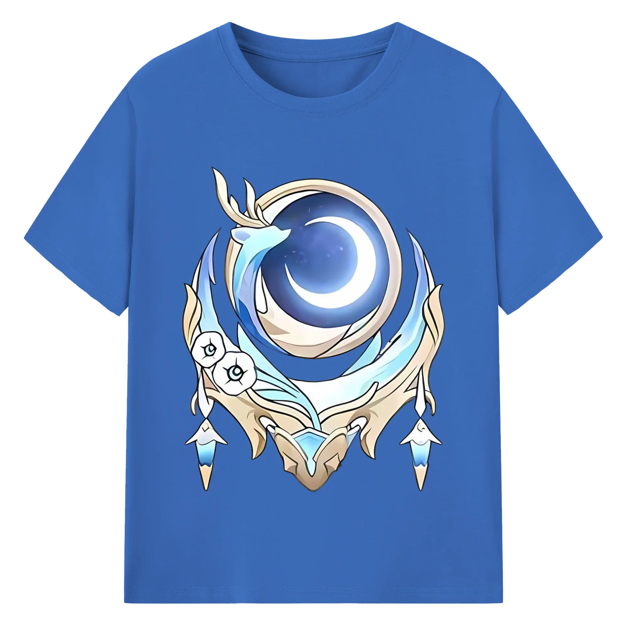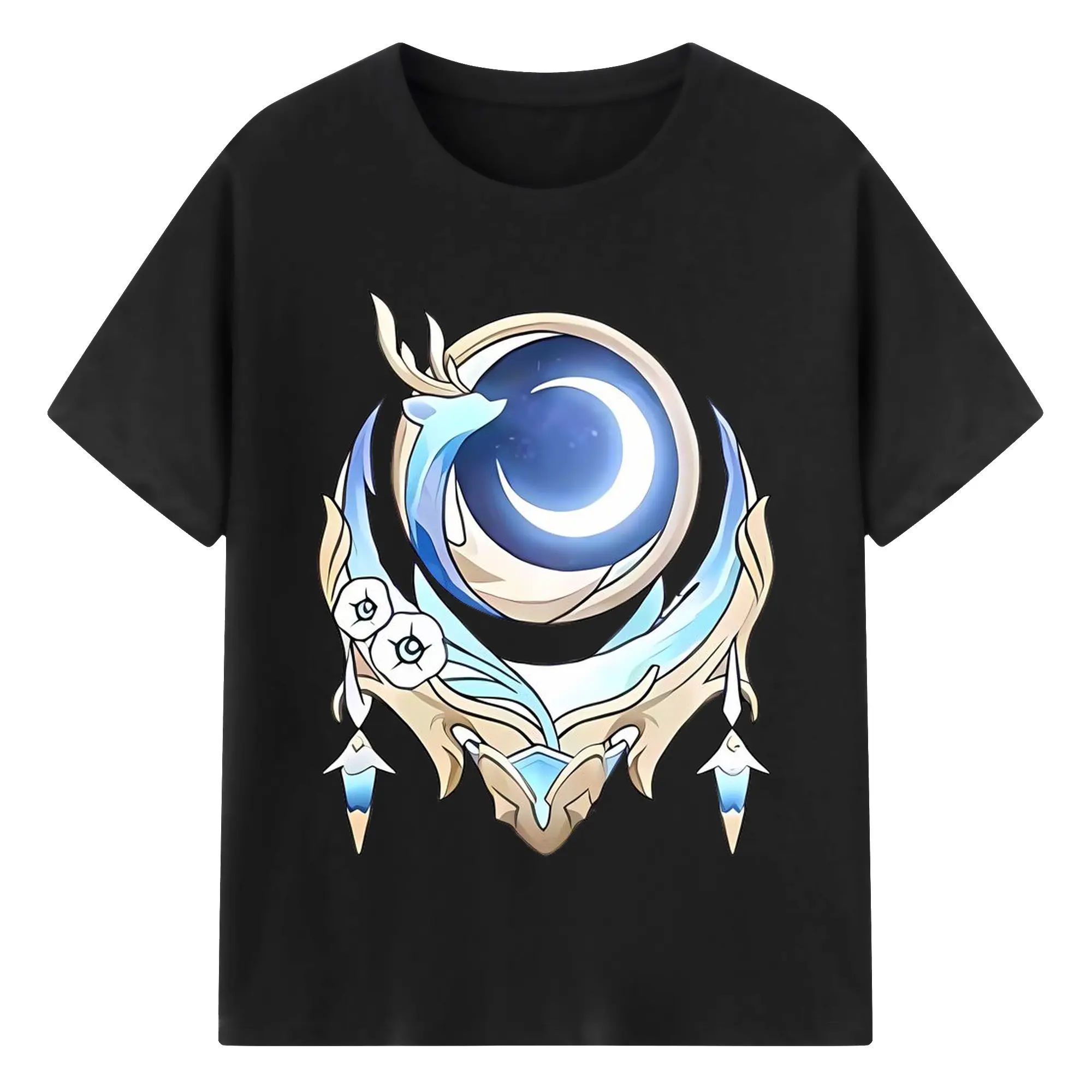 Genshin 空月の歌 - 綿100% 半袖Tシャツ ・ フロントプリント ・ 快適 通気性 ・ 日常使い 散歩 スポーツ用