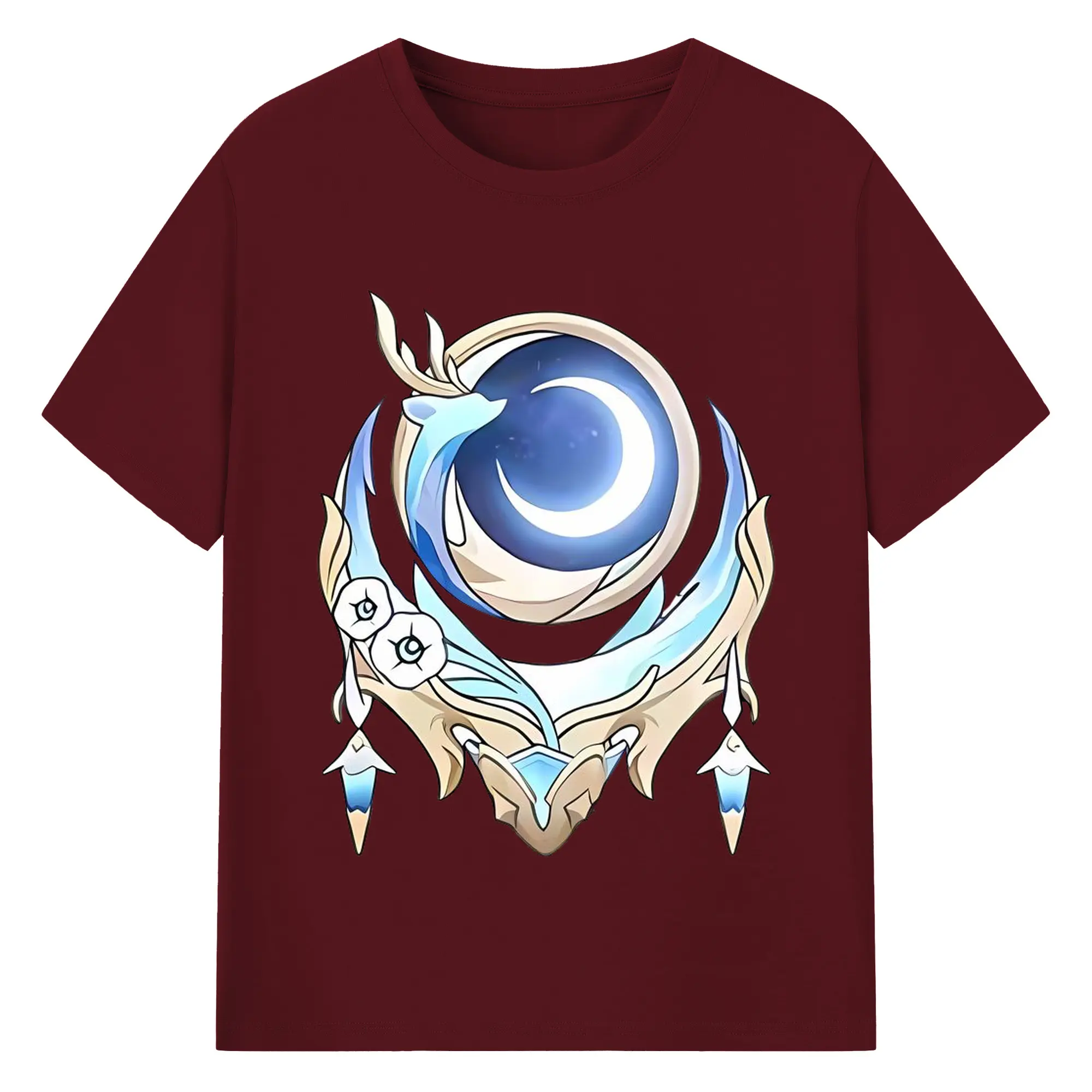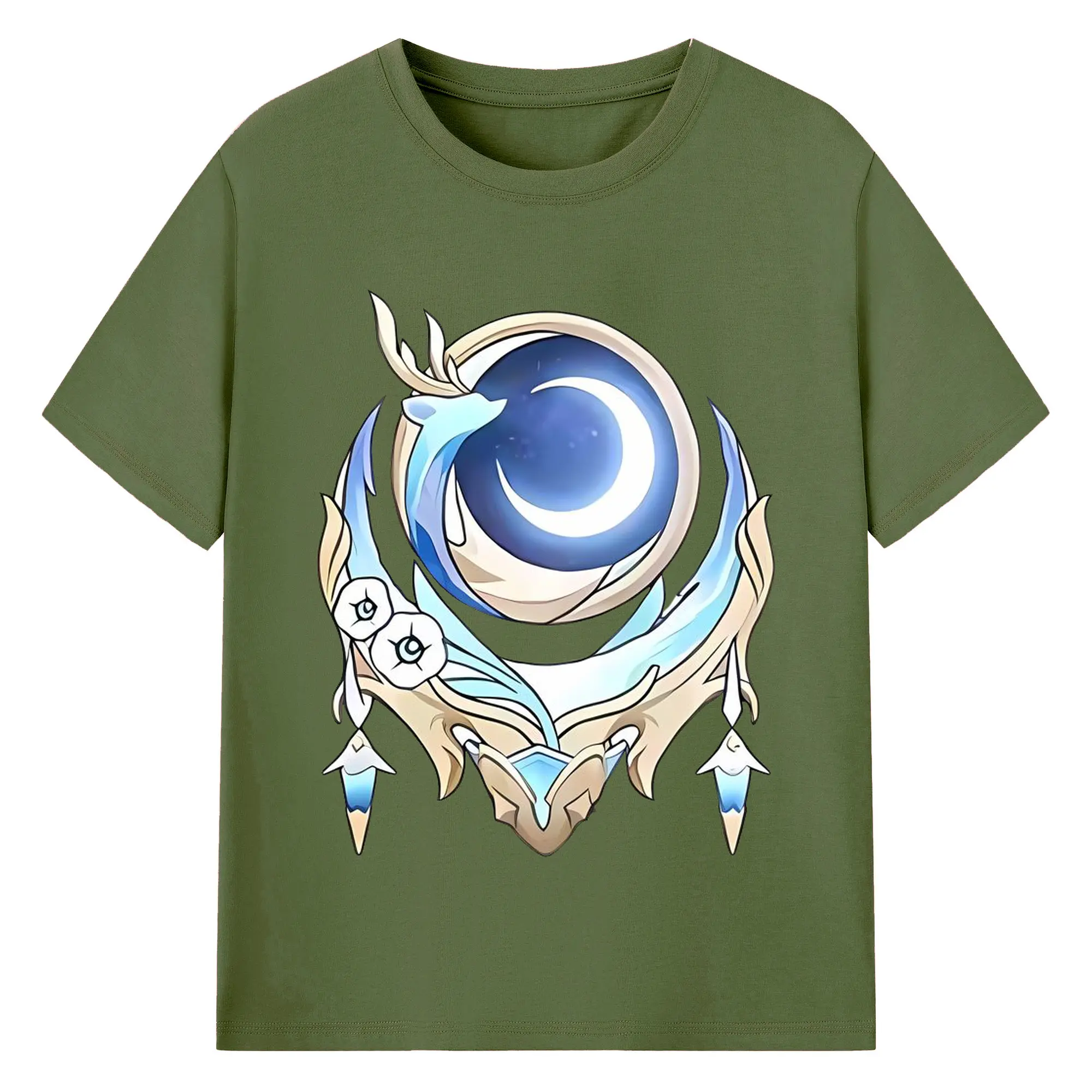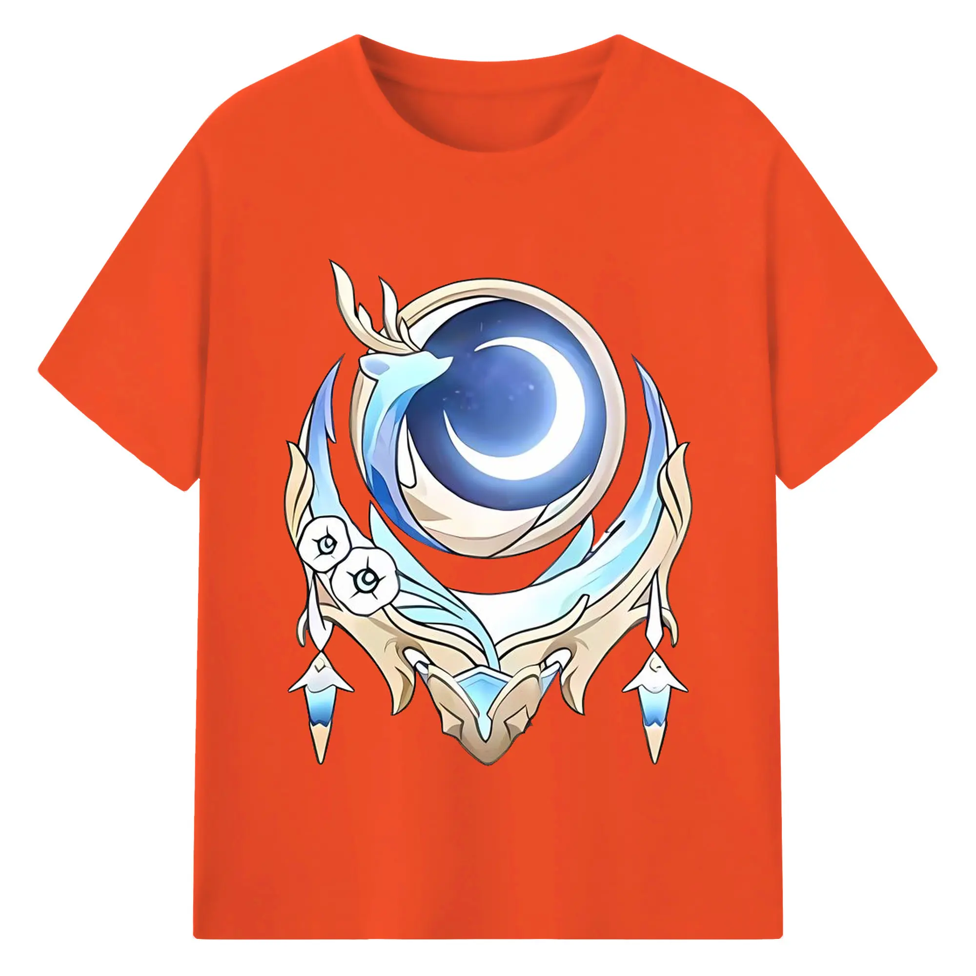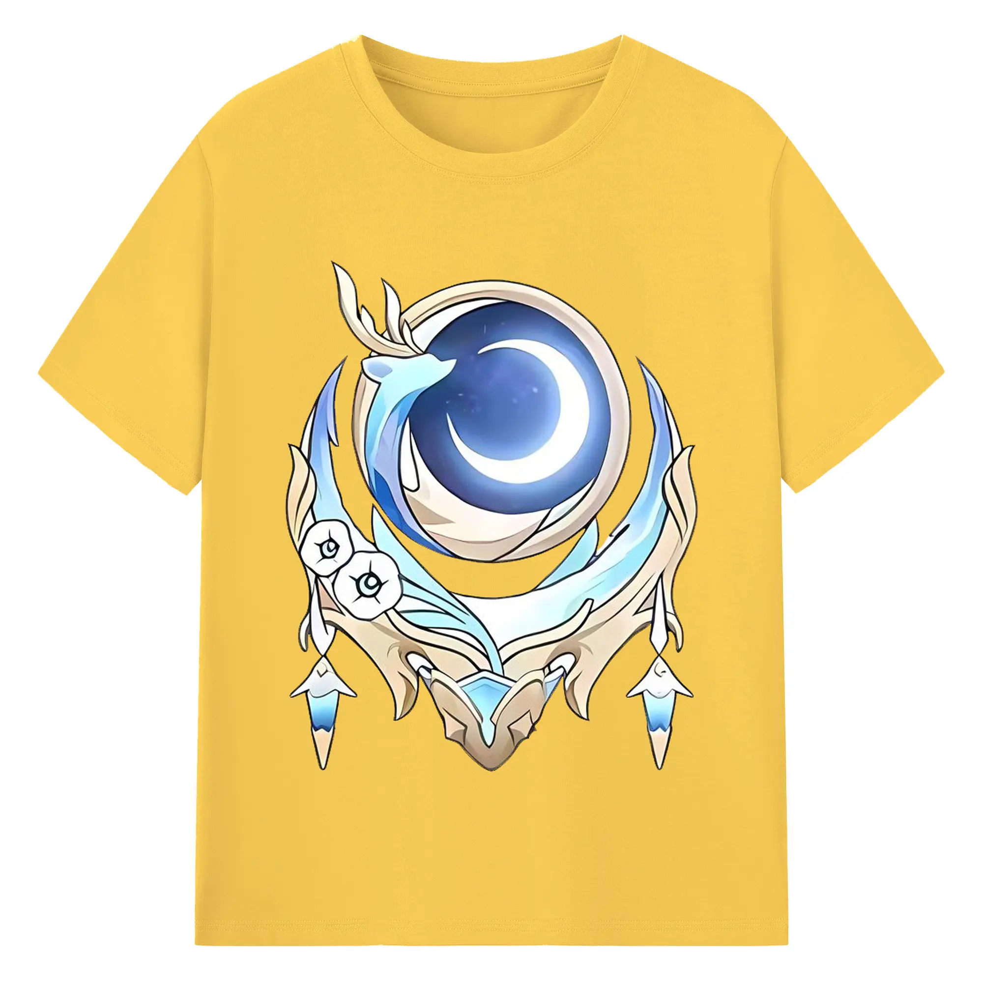 Genshin 空月の歌 - 綿100% 半袖Tシャツ ・ フロントプリント ・ 快適 通気性 ・ 日常使い 散歩 スポーツ用