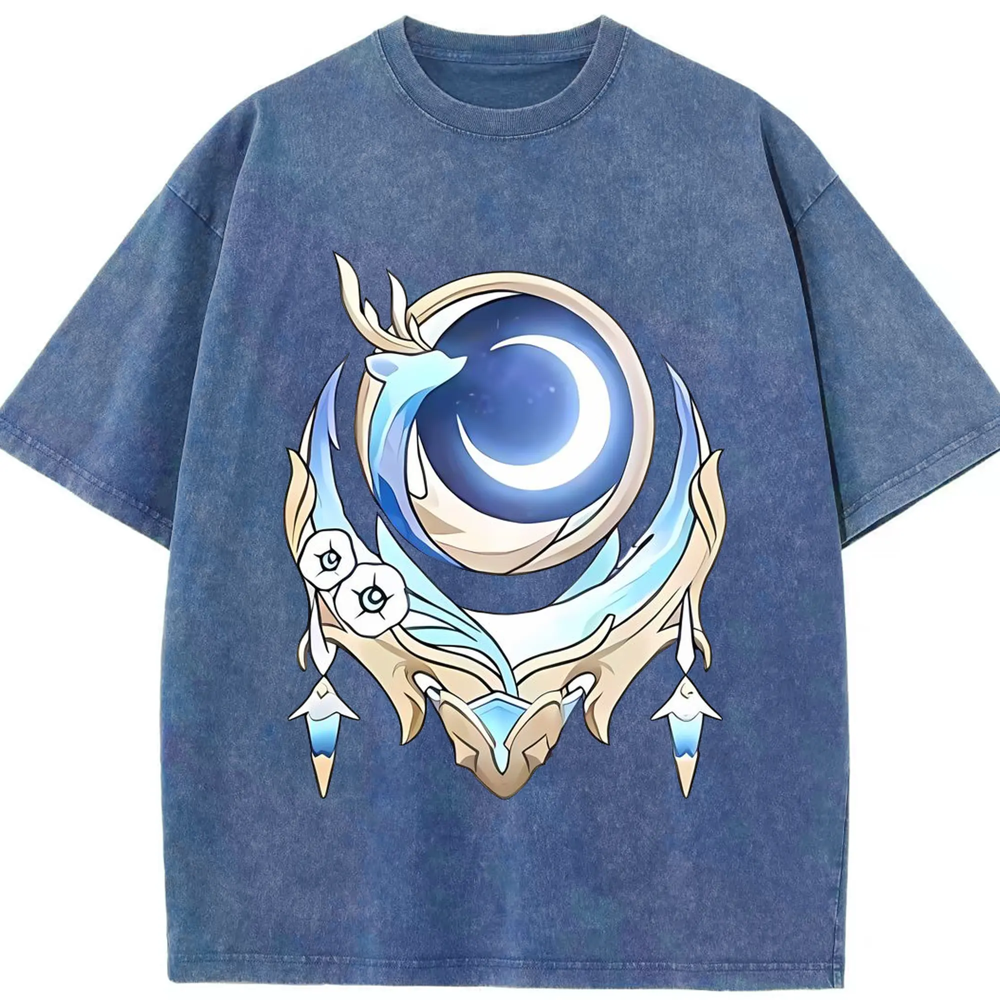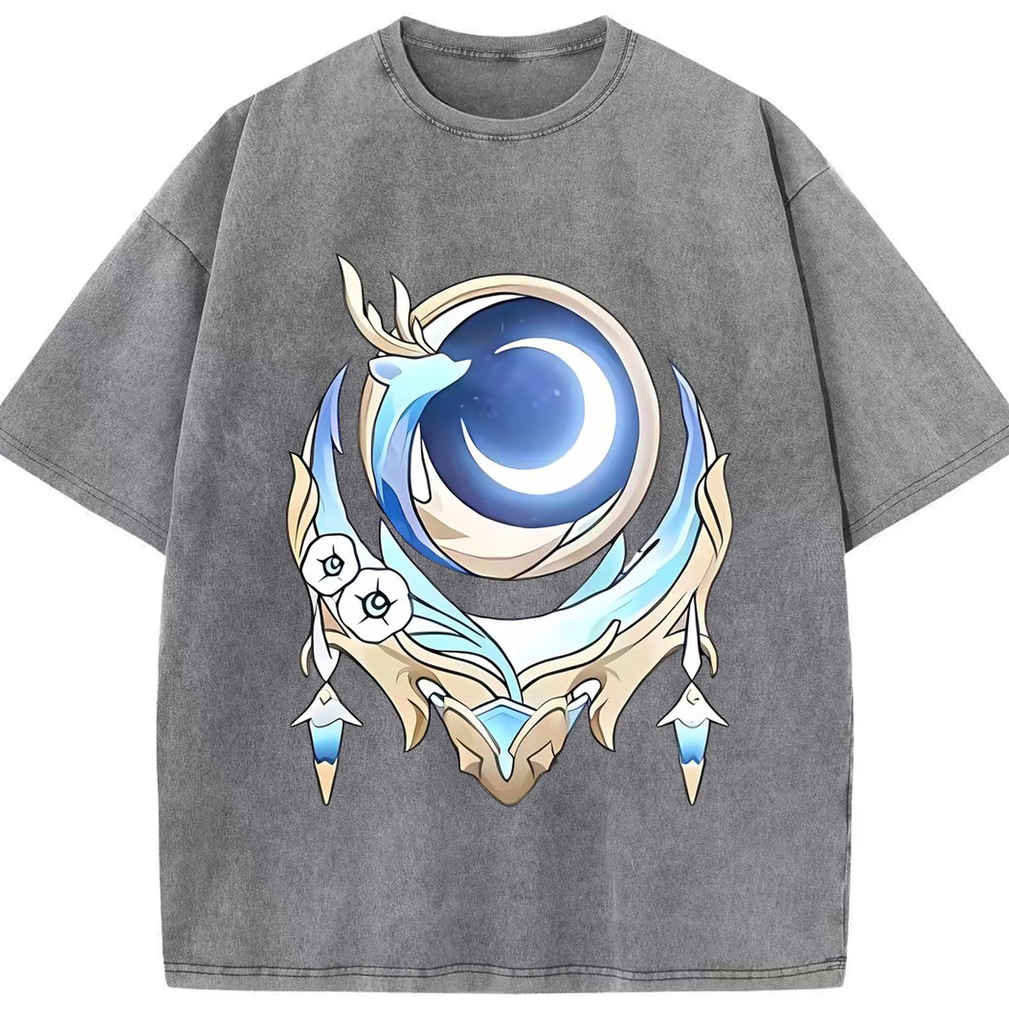 Genshin 空月の歌 - 綿100% ヴィンテージ風 半袖Tシャツ ・ フロントプリント ・ 柔らか肌触り ・ 通気性 快適 ・ スポーツ カジュアル 外出用
