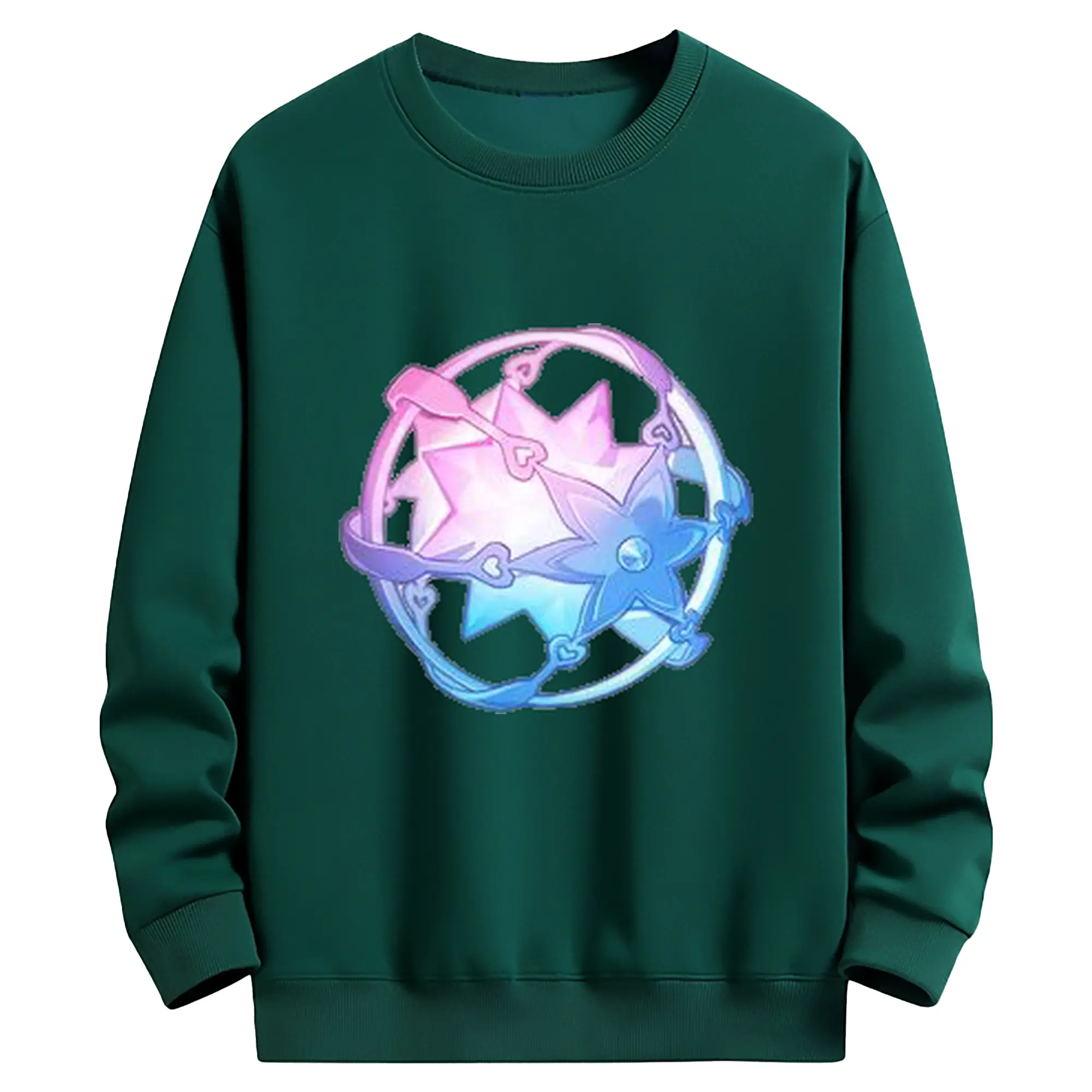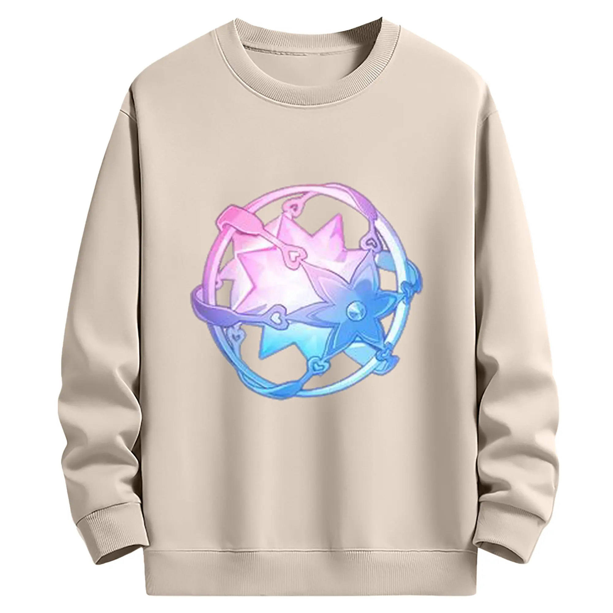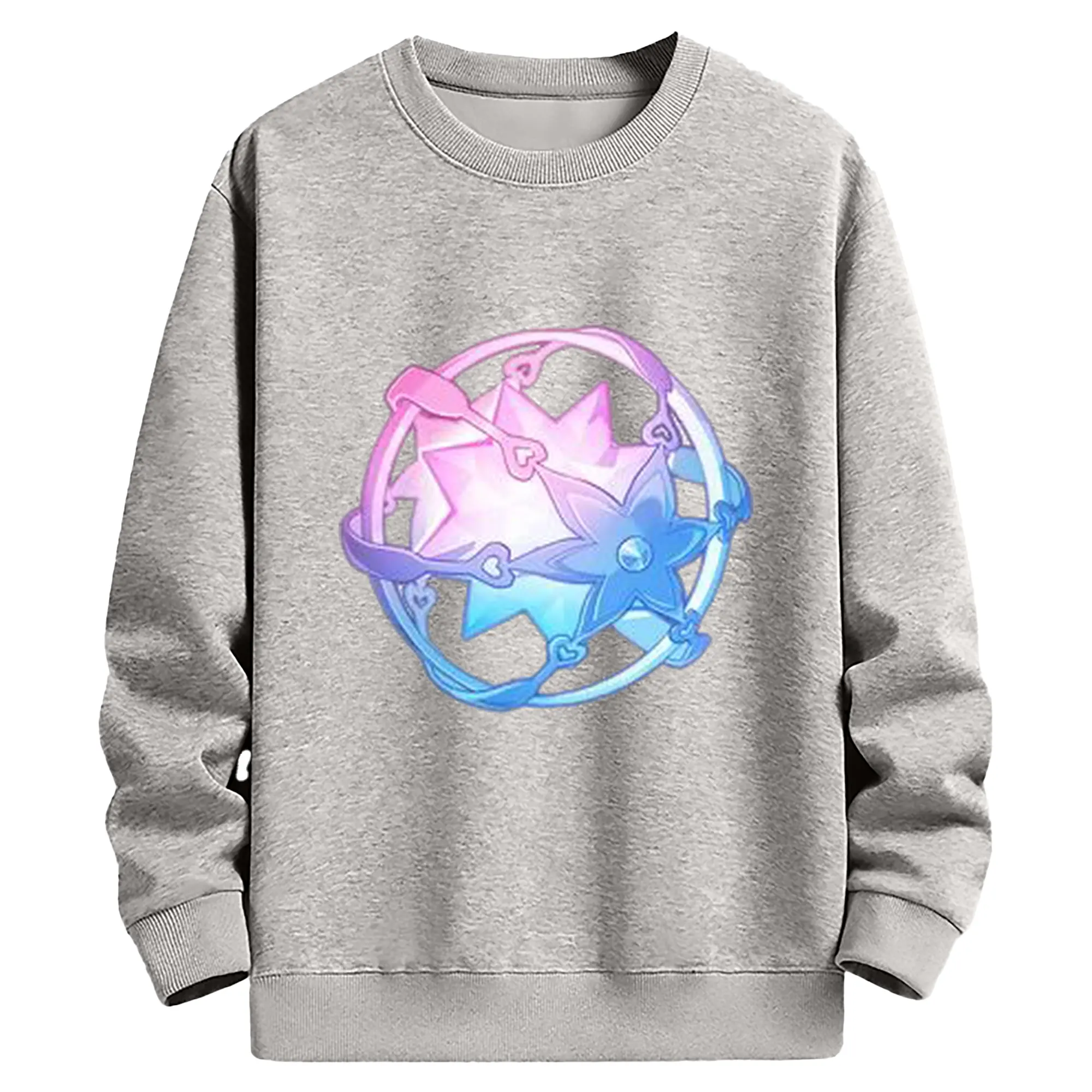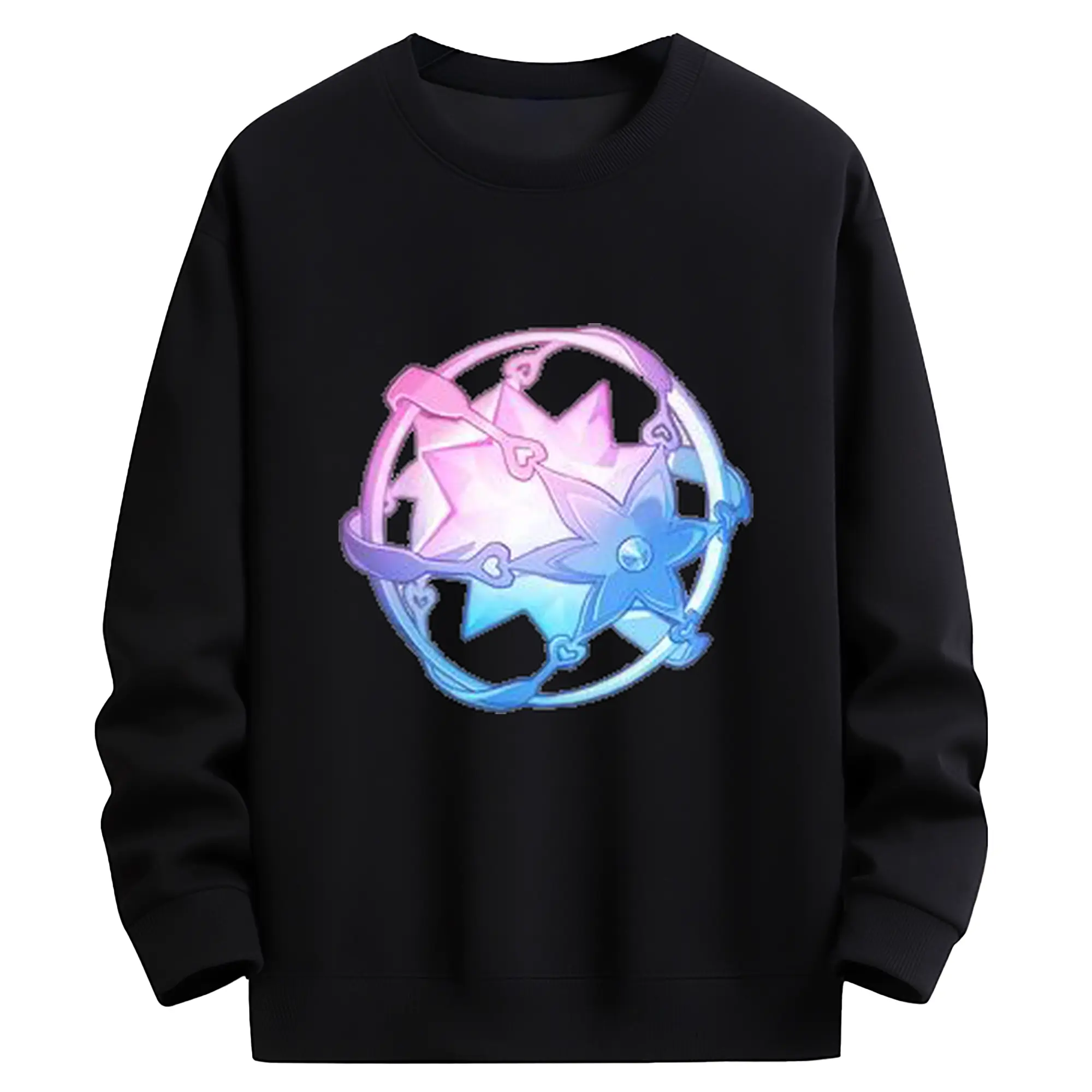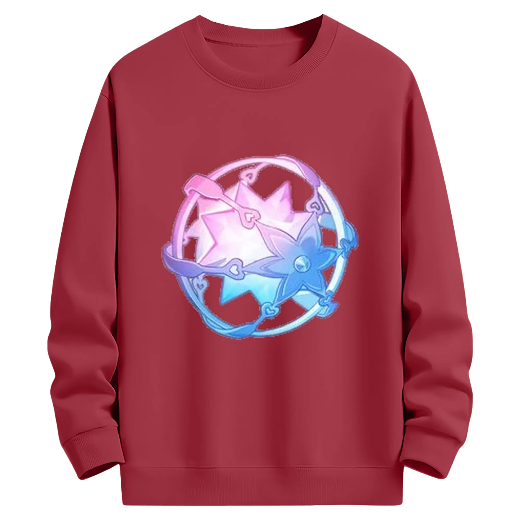 Genshin 紡がれた運命で運気アップ! - 高品質 クルーネック スウェット ・ コットン59% ポリエステル41% ・ ユニセックス 長袖 トレーナー ・ カジュアル デイリー スポーツ 散歩用