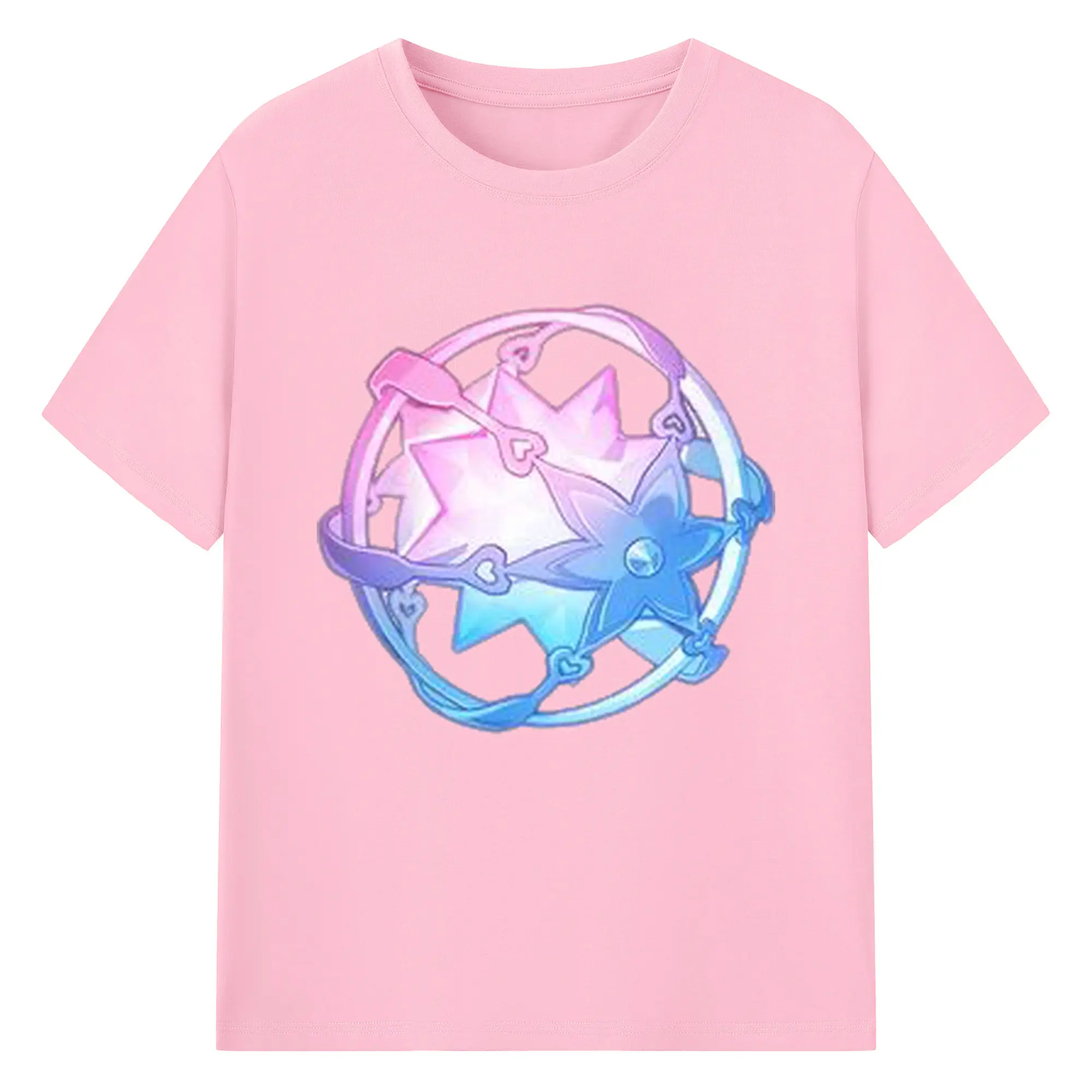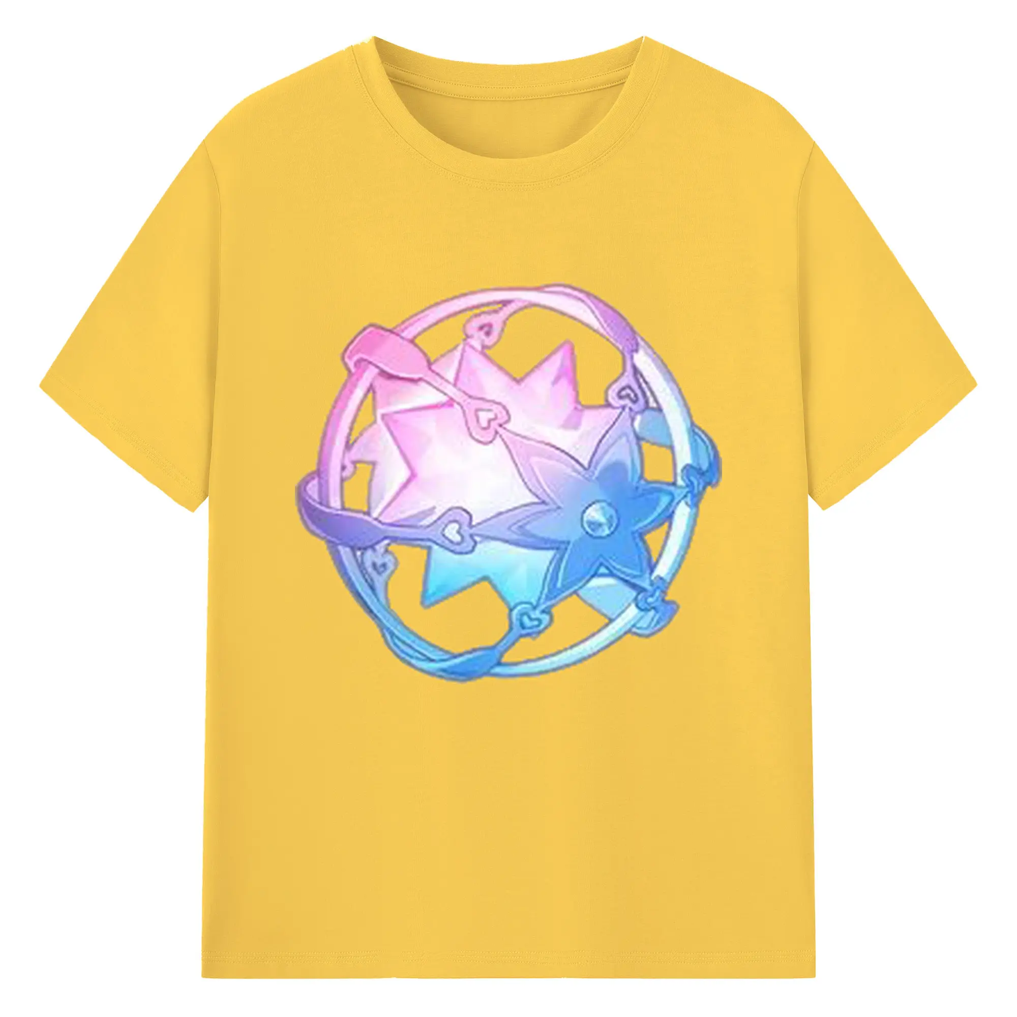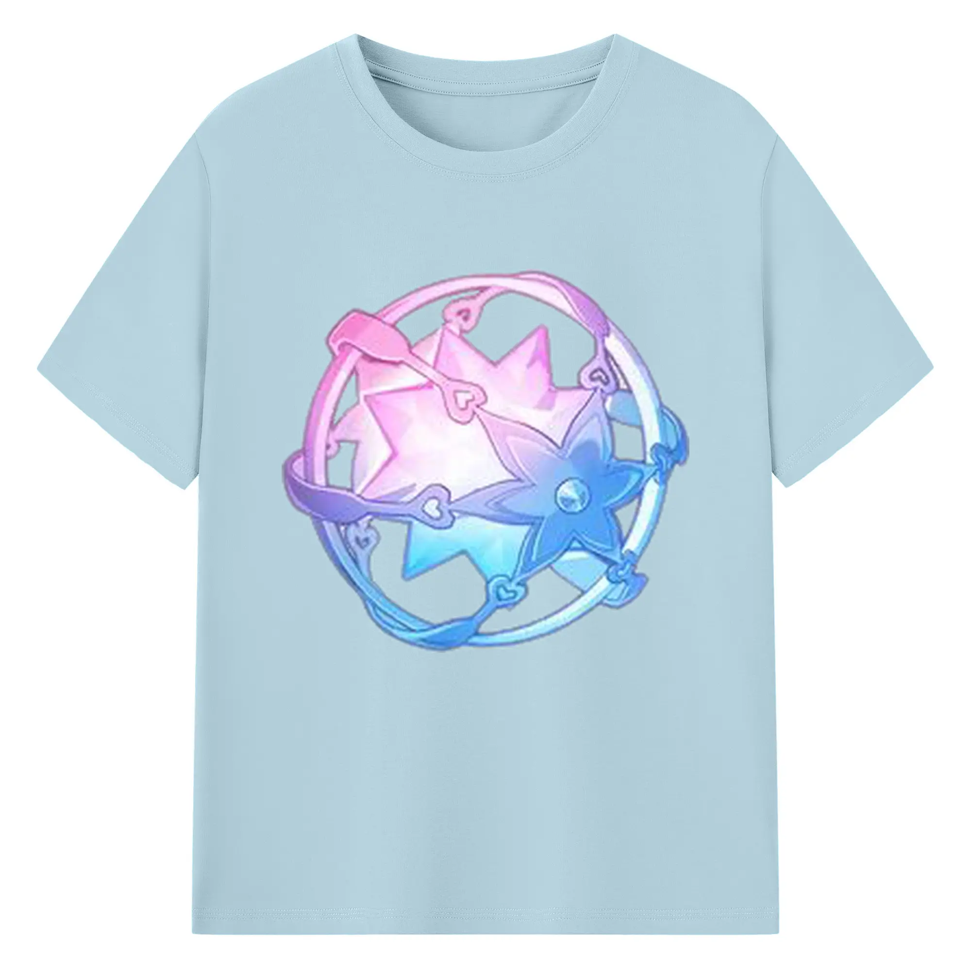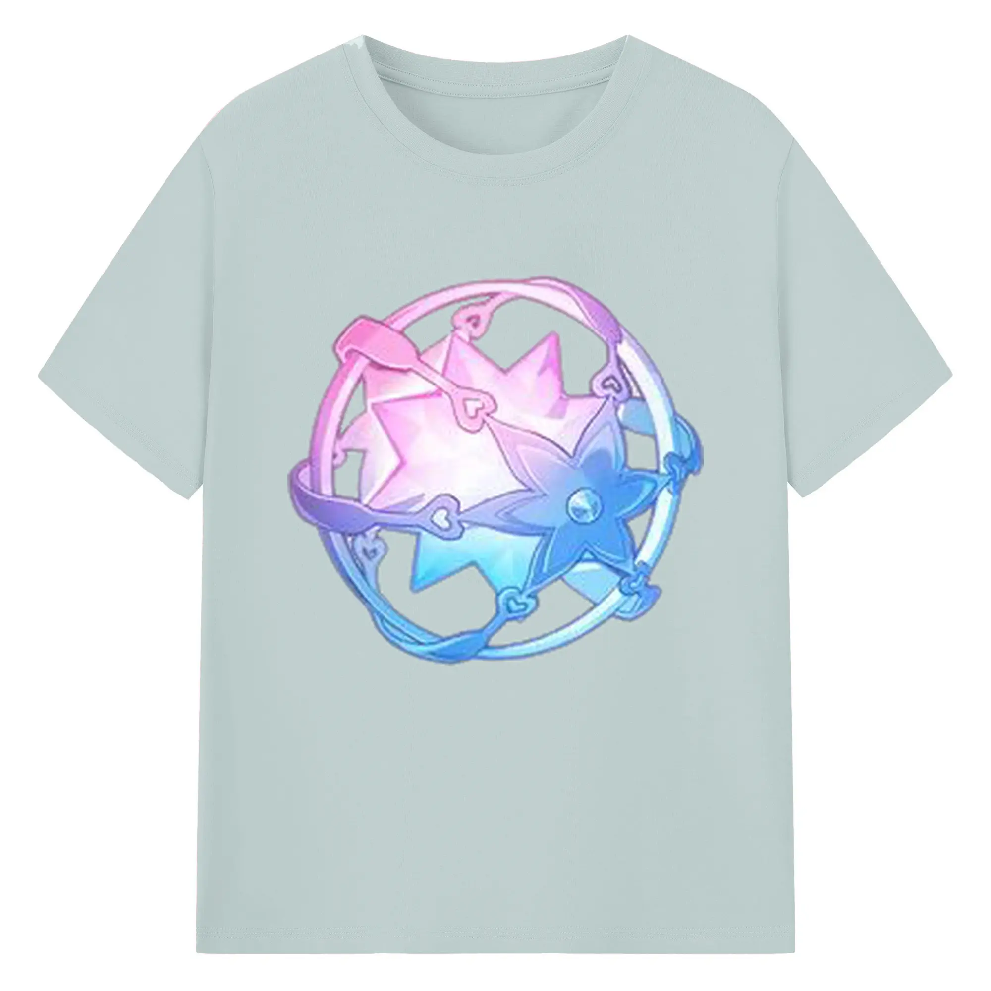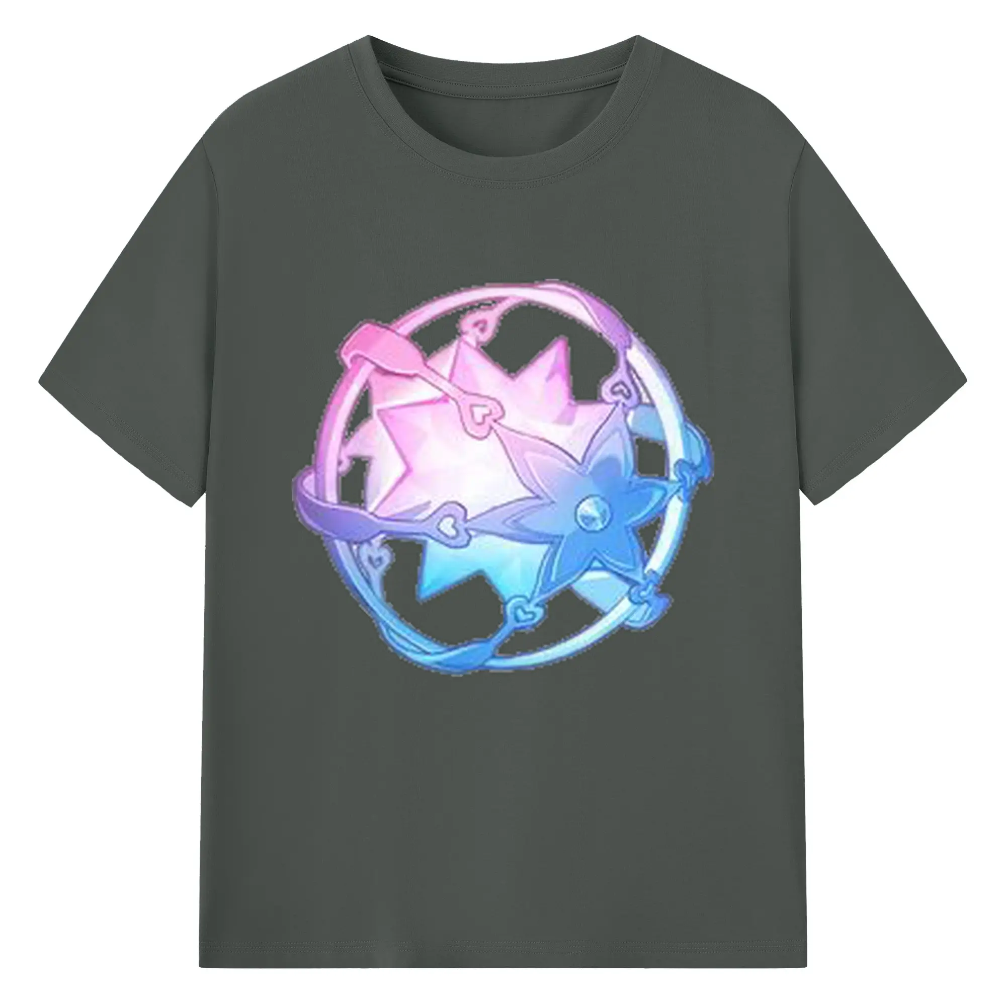 Genshin 紡がれた運命で運気アップ! - 綿100% 半袖Tシャツ ・ フロントプリント ・ 快適 通気性 ・ 日常使い 散歩 スポーツ用