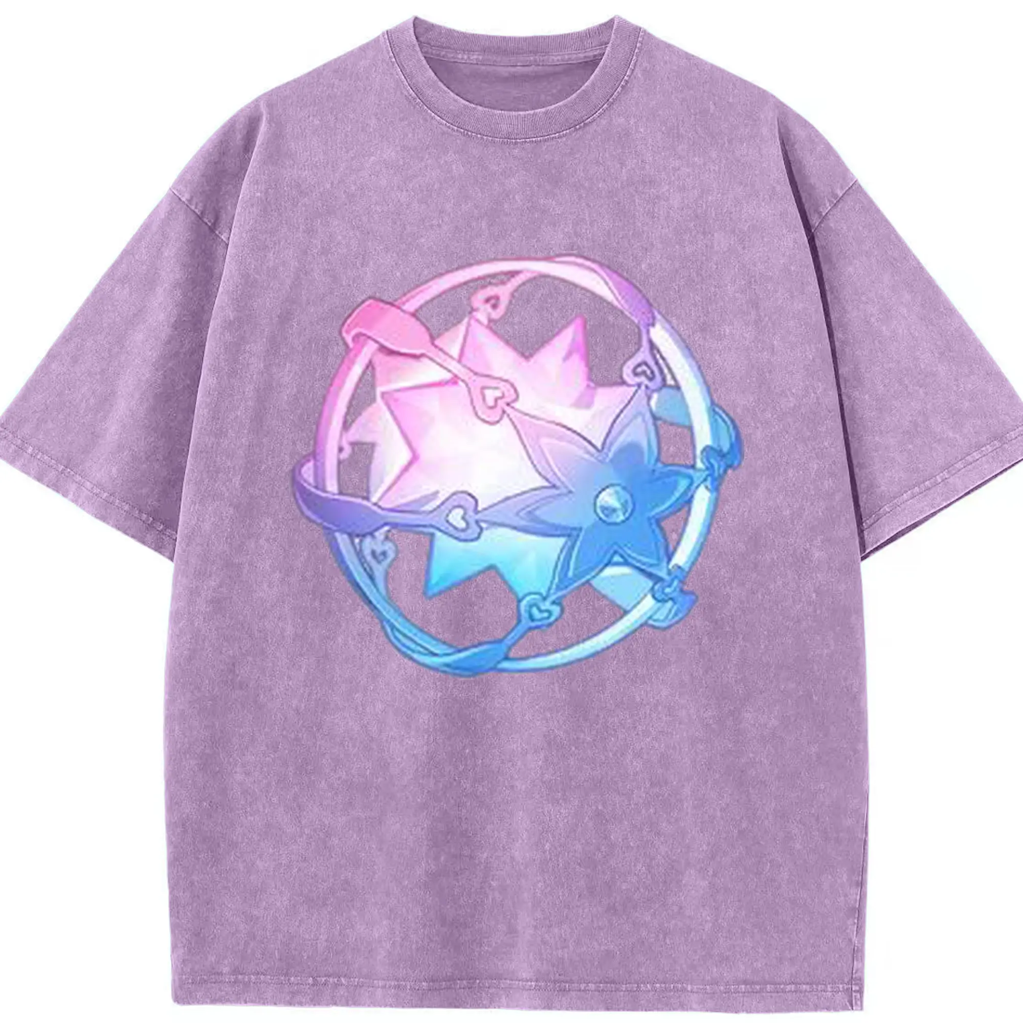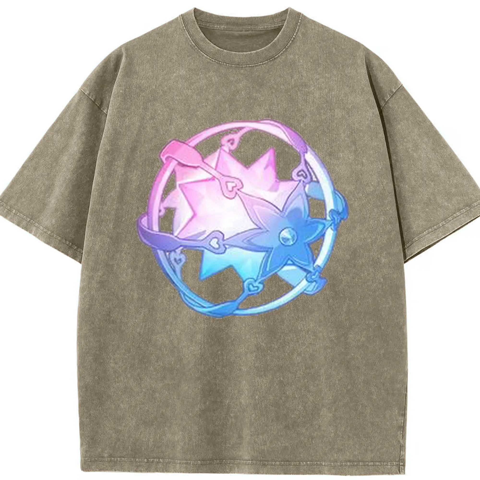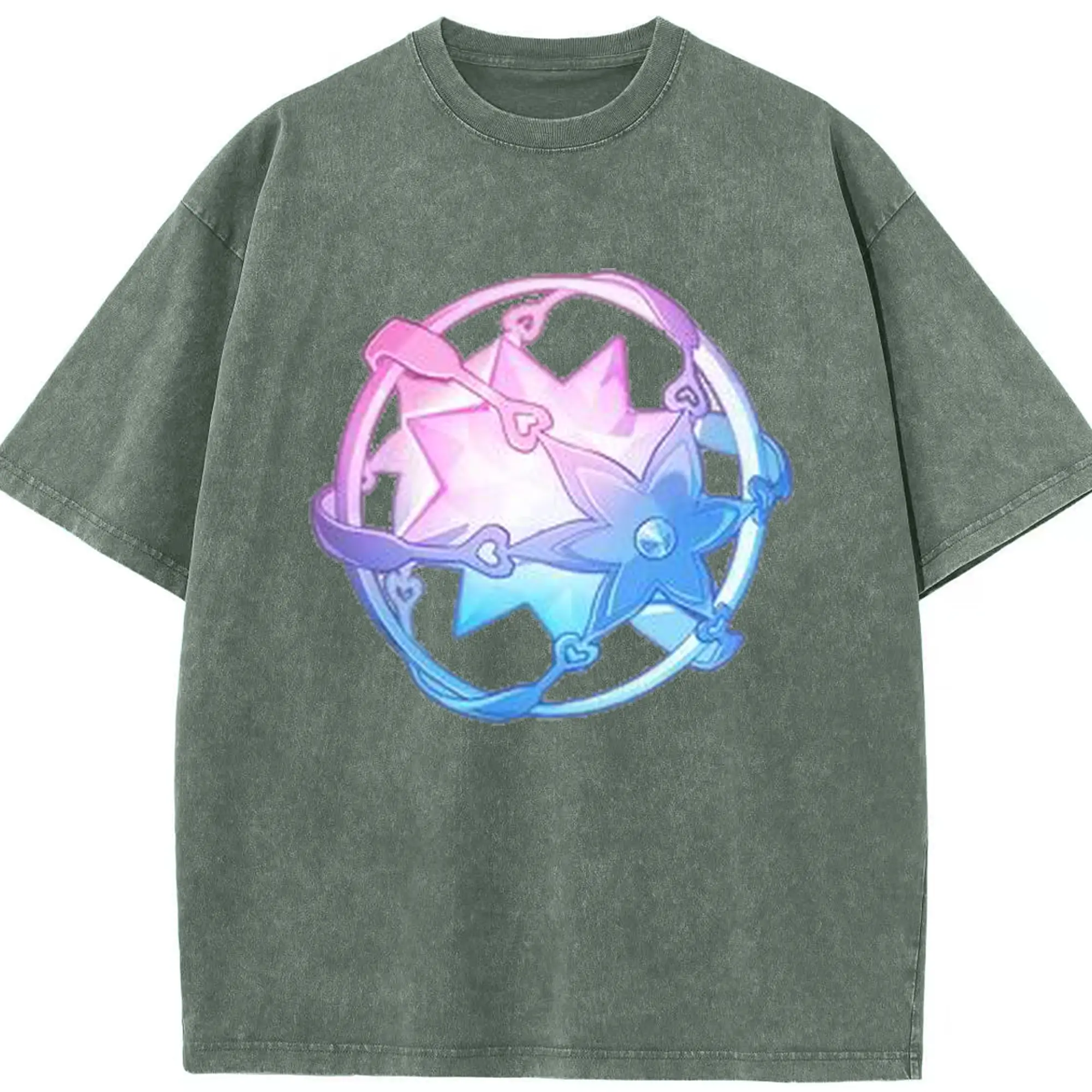 Genshin 紡がれた運命で運気アップ! - 綿100% ヴィンテージ風 半袖Tシャツ ・ フロントプリント ・ 柔らか肌触り ・ 通気性 快適 ・ スポーツ カジュアル 外出用