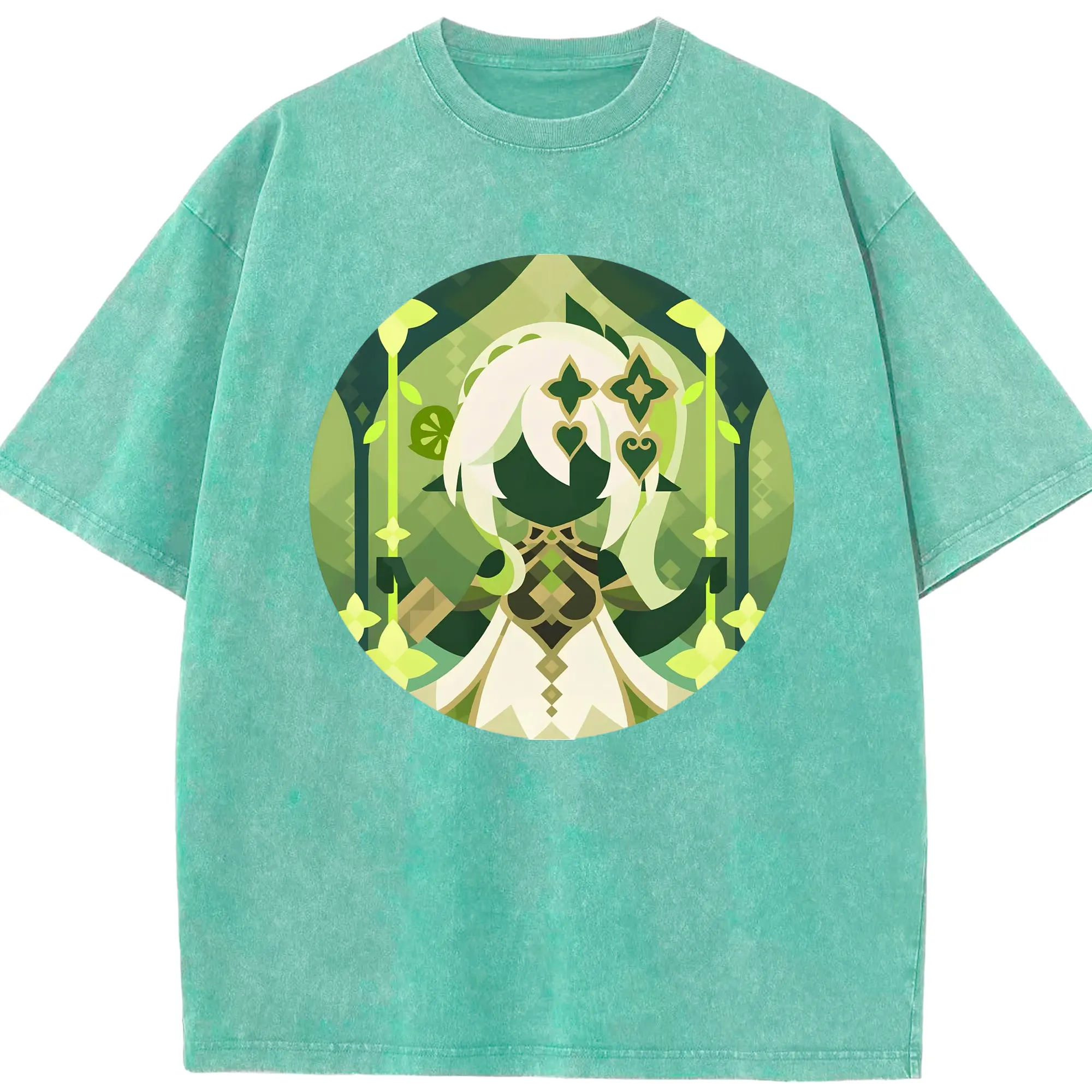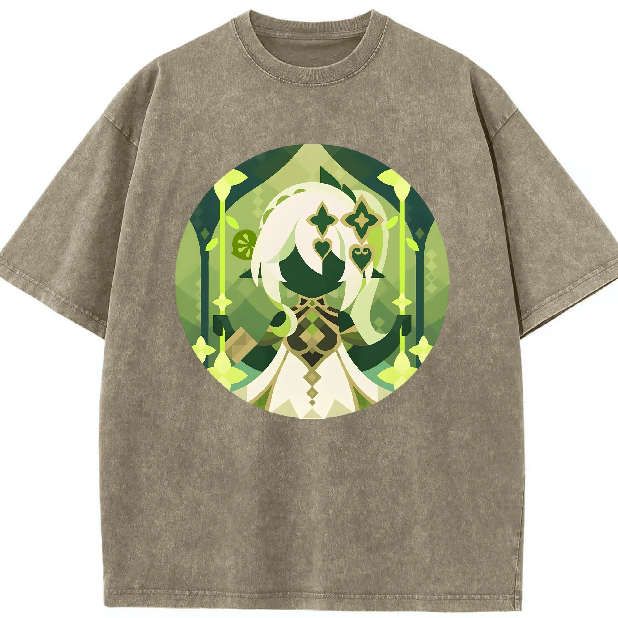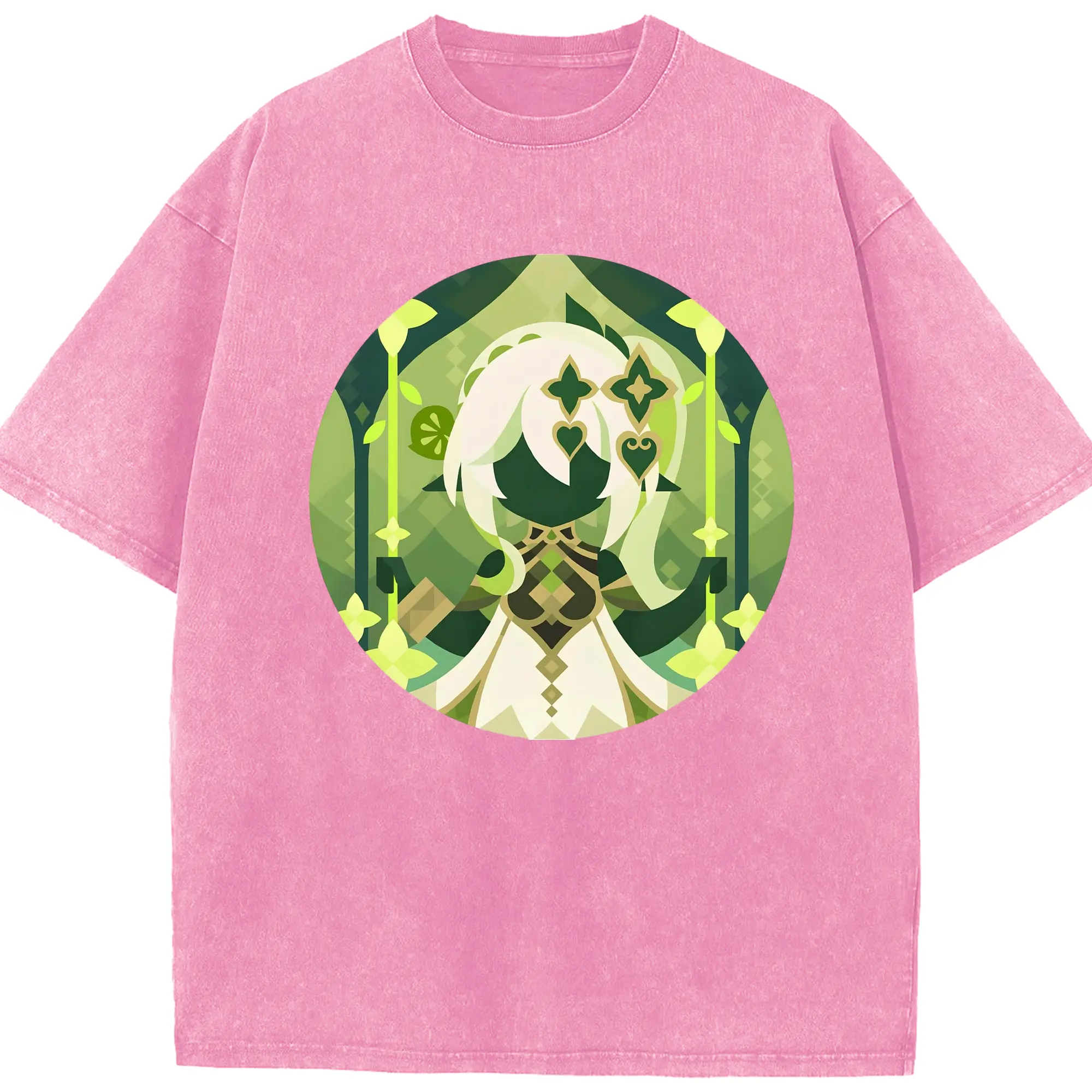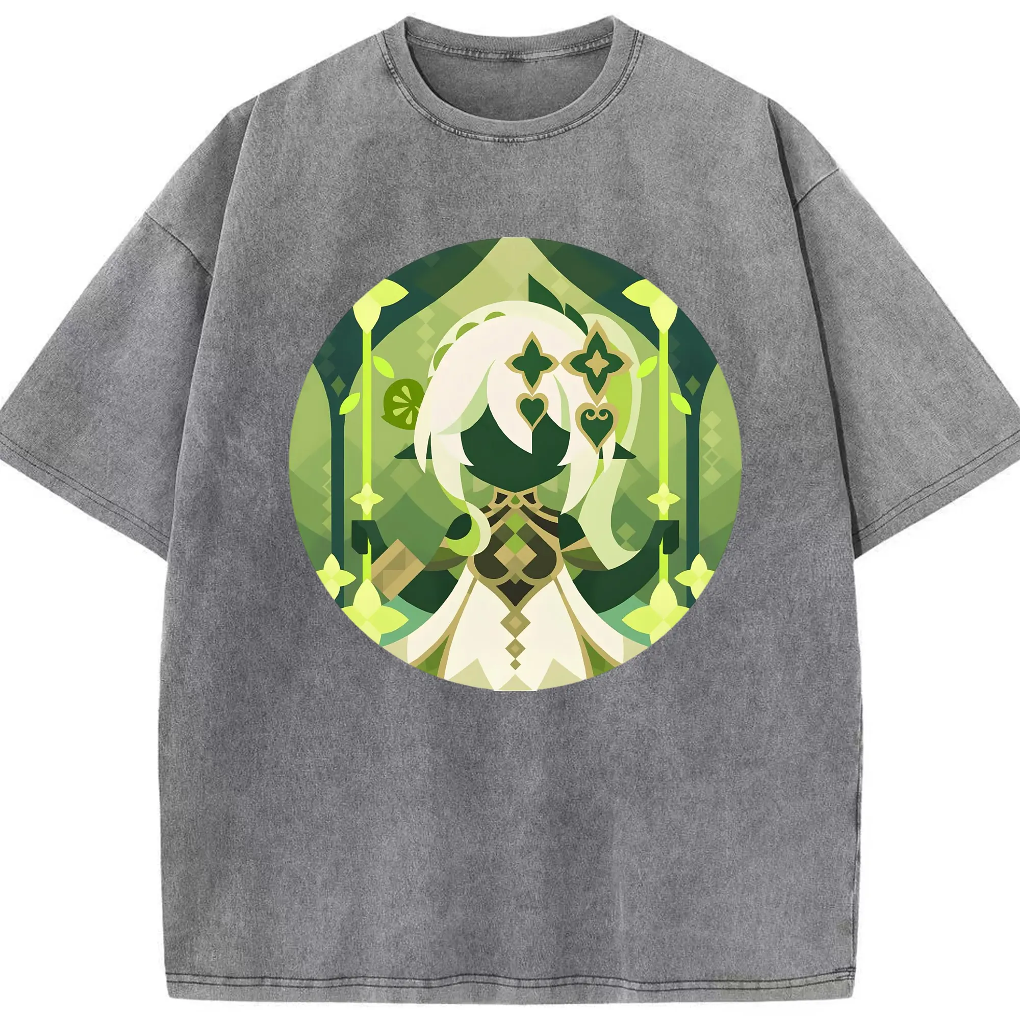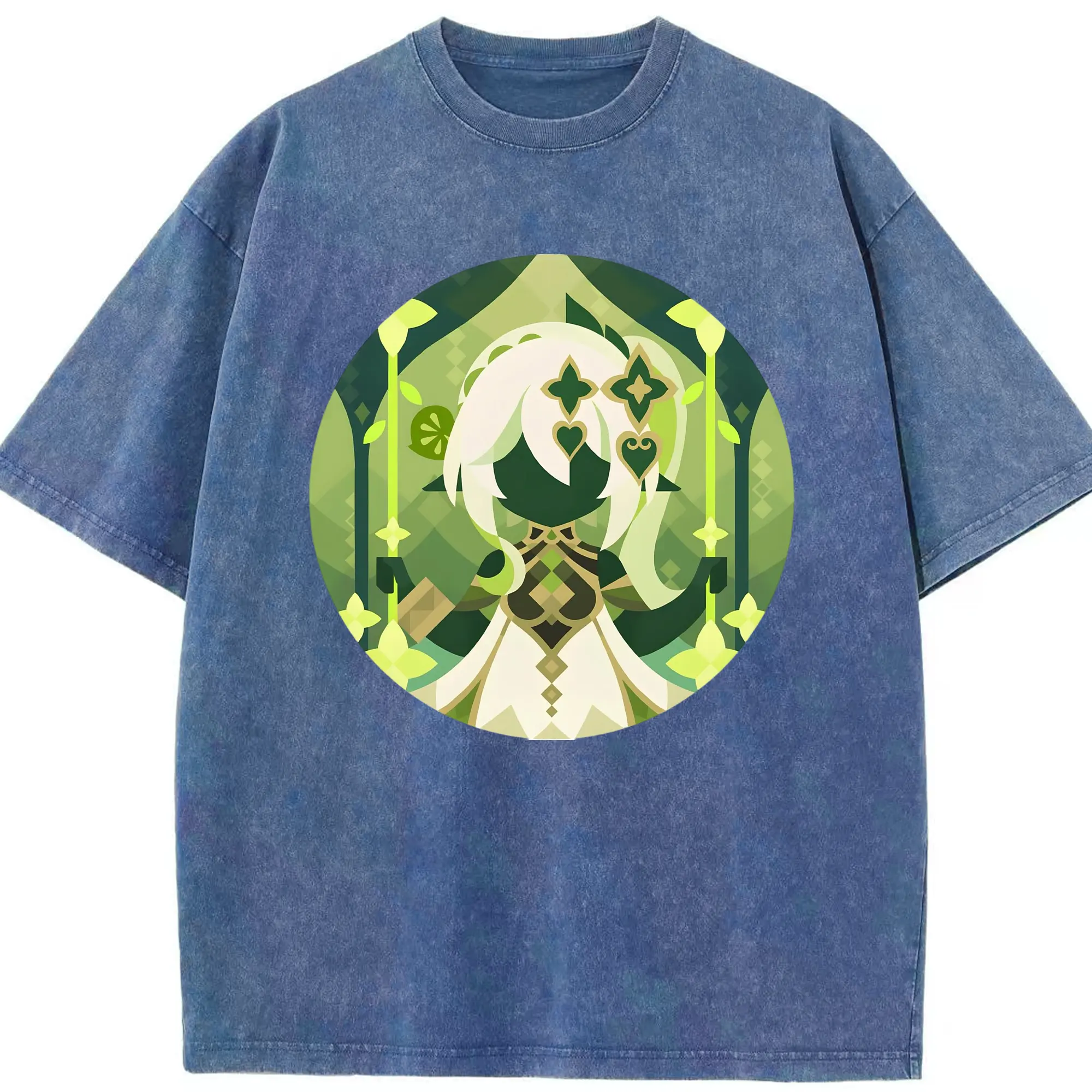 Genshin 草神そうしん ナヒーダ - 綿100% ヴィンテージ風 半袖Tシャツ ・ フロントプリント ・ 柔らか肌触り ・ 通気性 快適 ・ スポーツ カジュアル 外出用