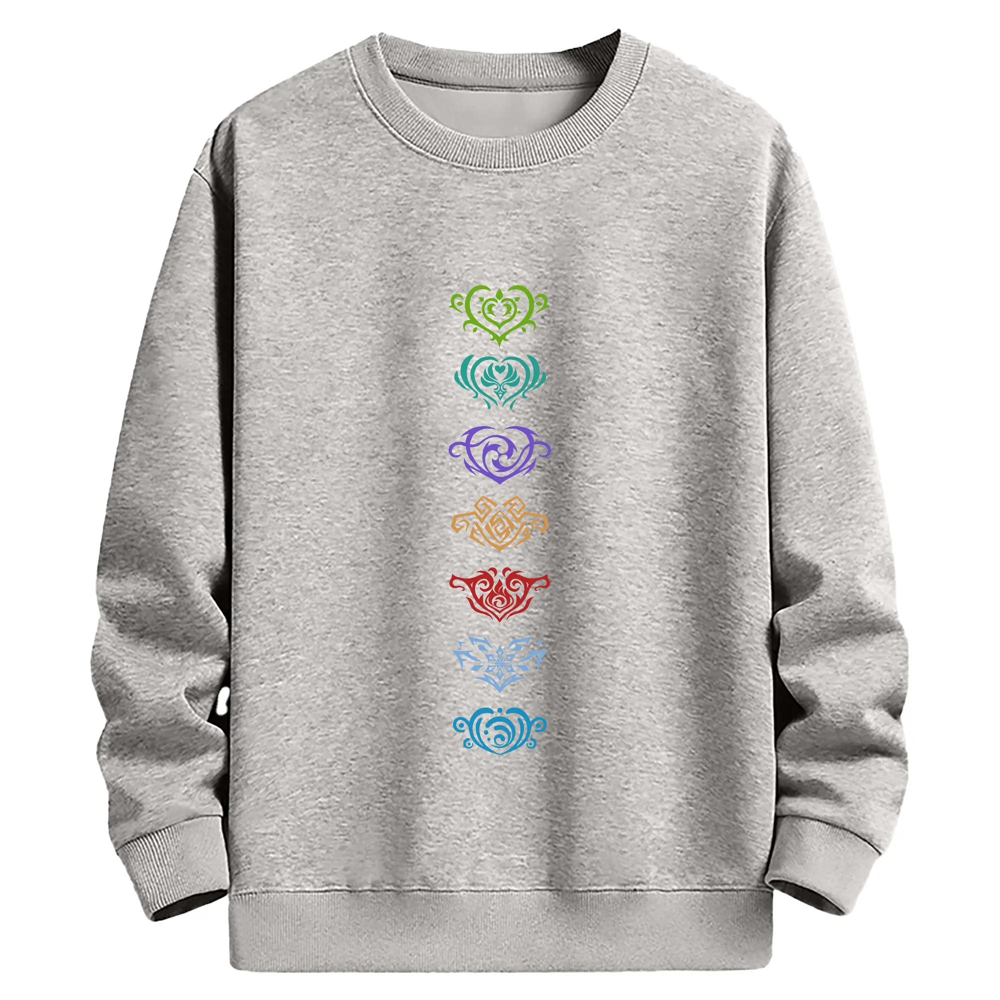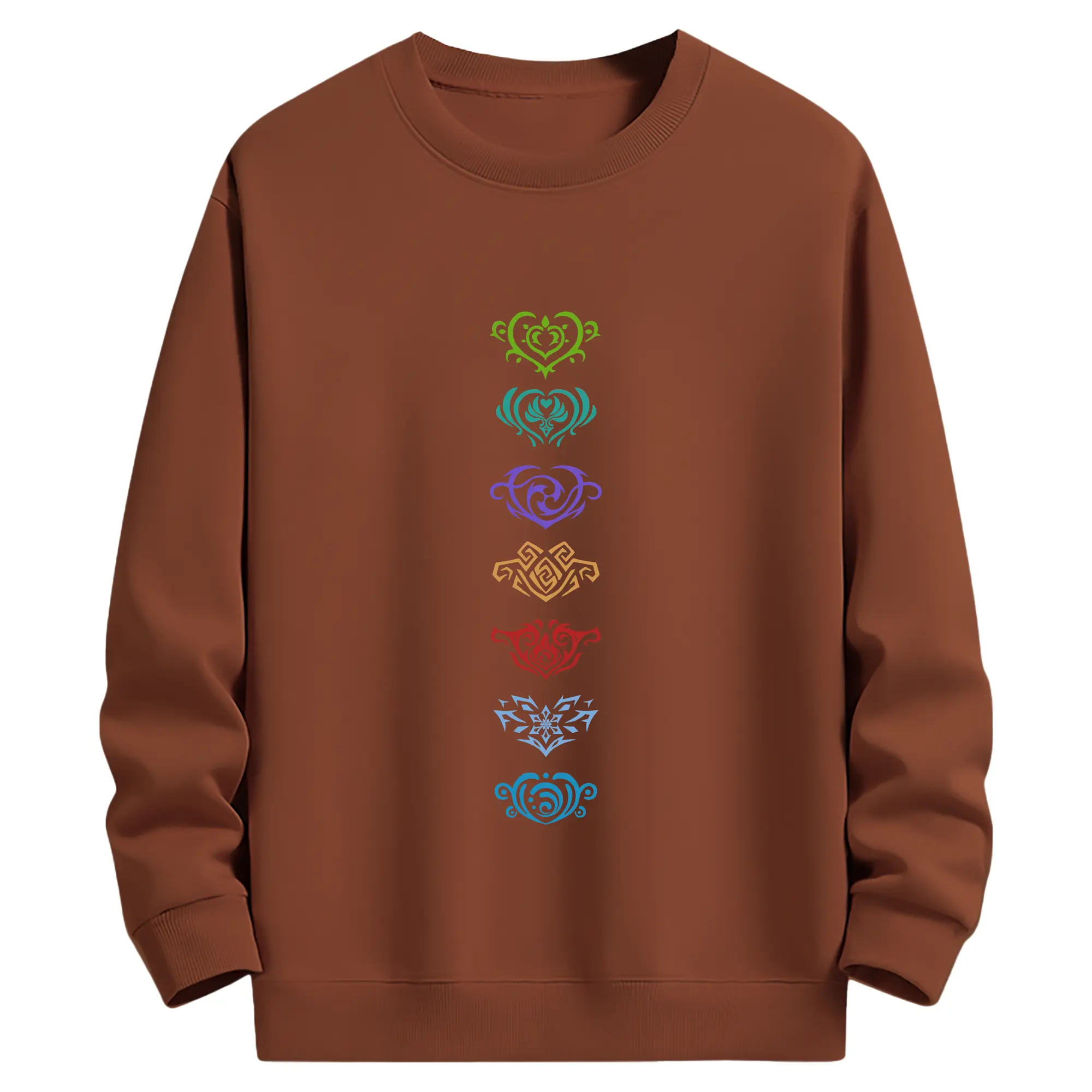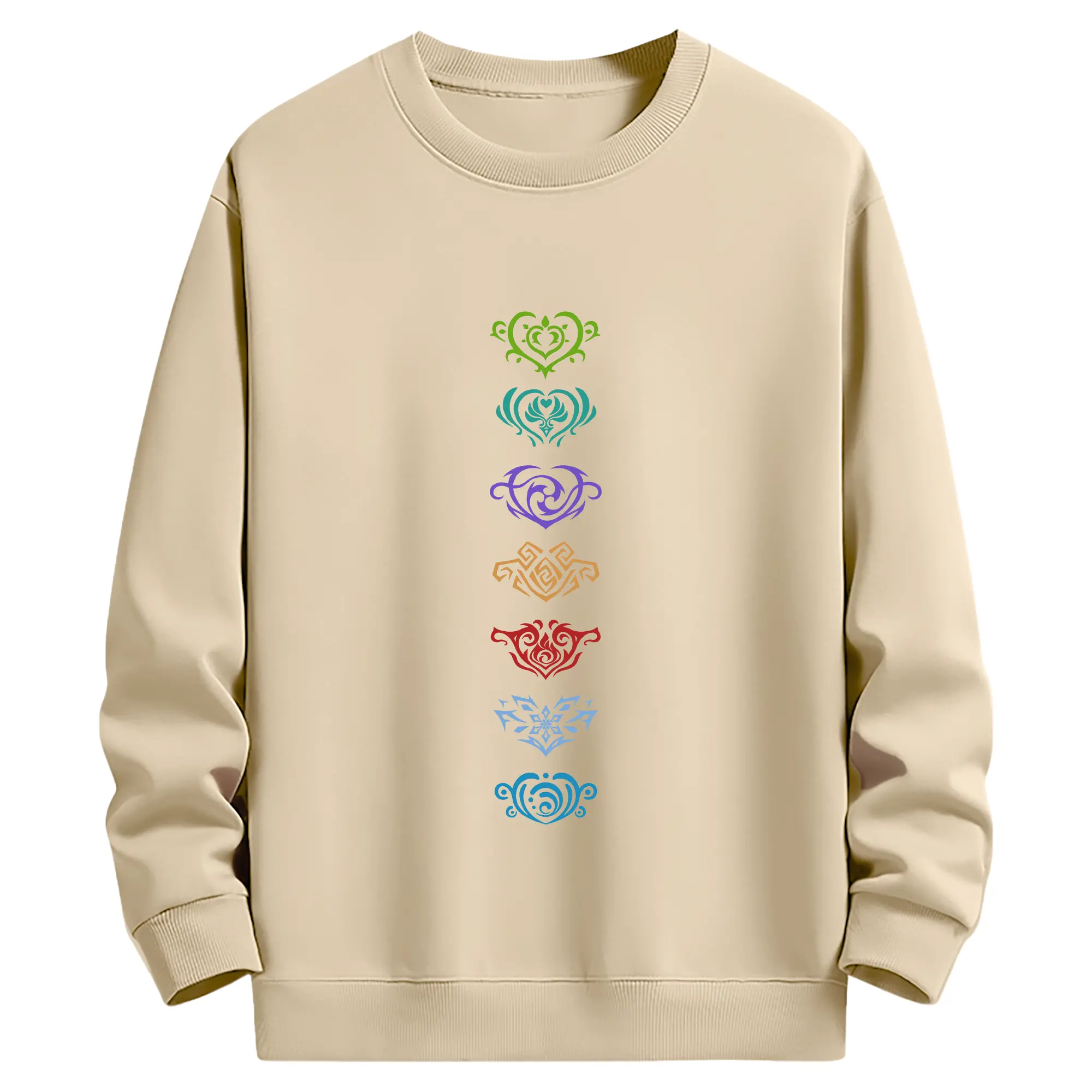 Genshin Genshin 原神の七元素ロゴ - 高品質 クルーネック スウェット ・ コットン59% ポリエステル41% ・ ユニセックス 長袖 トレーナー ・ カジュアル デイリー スポーツ 散歩用