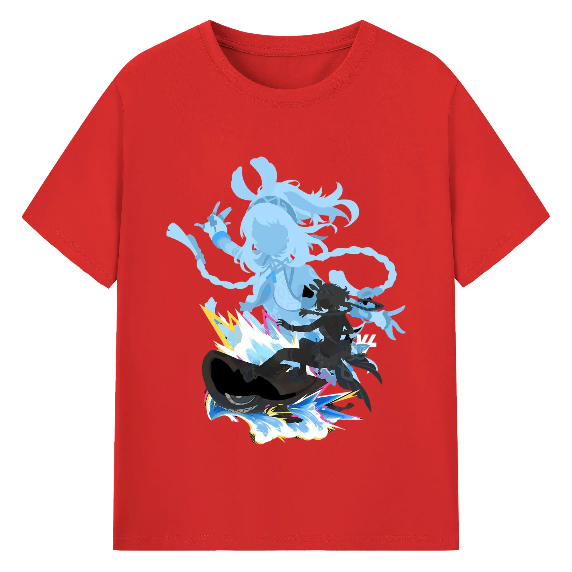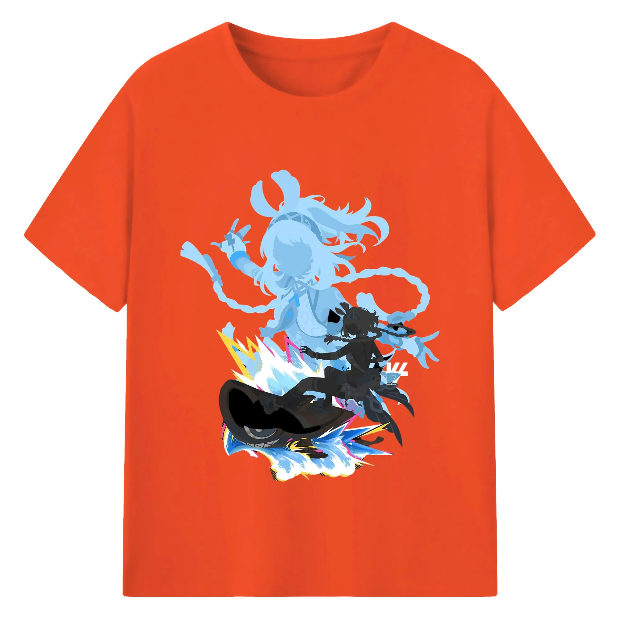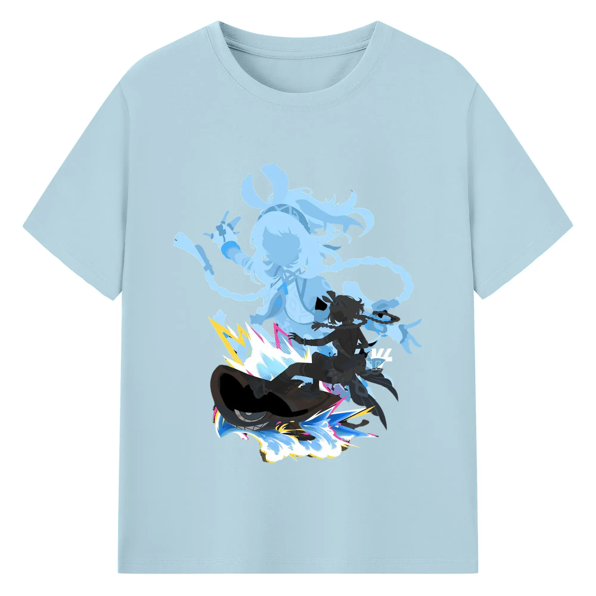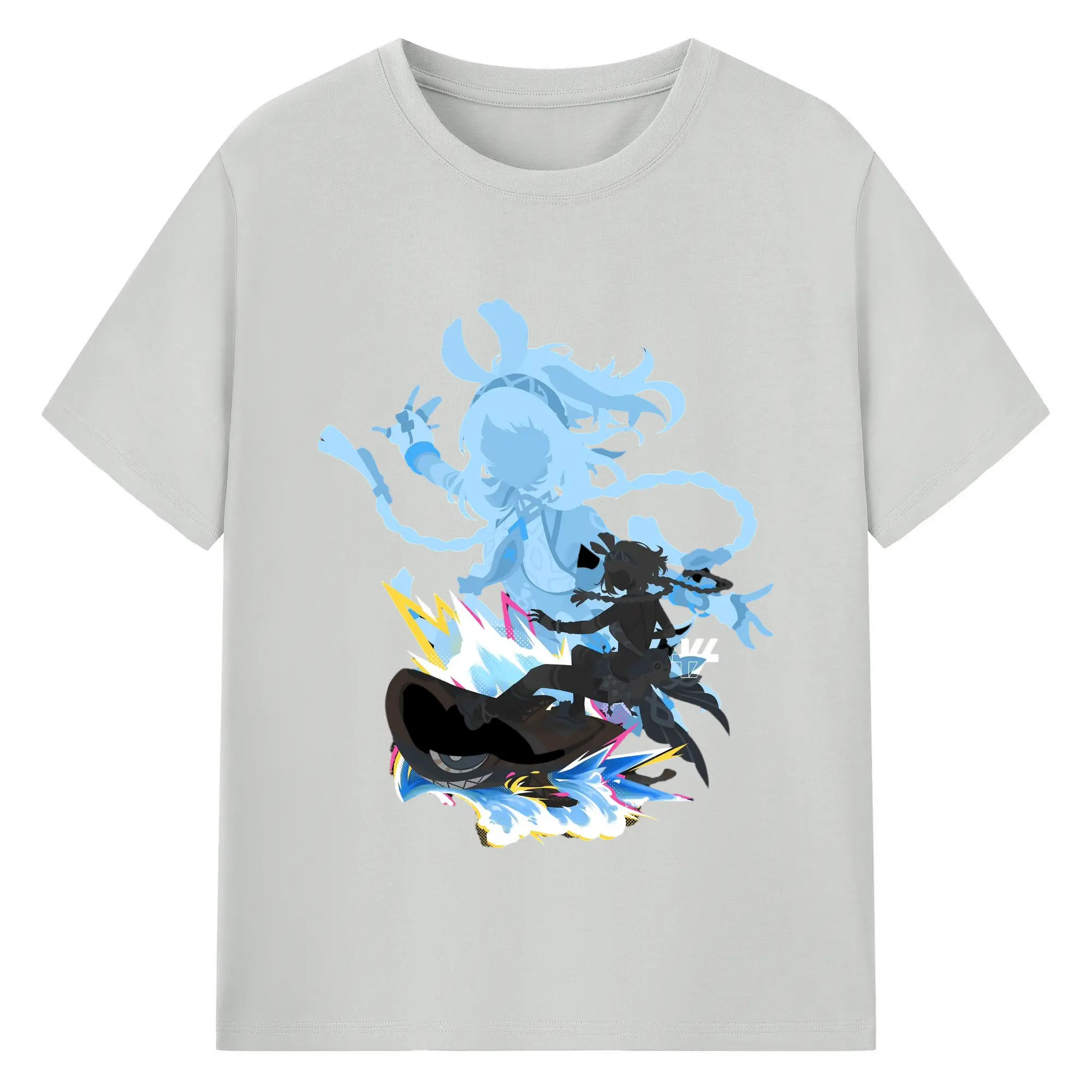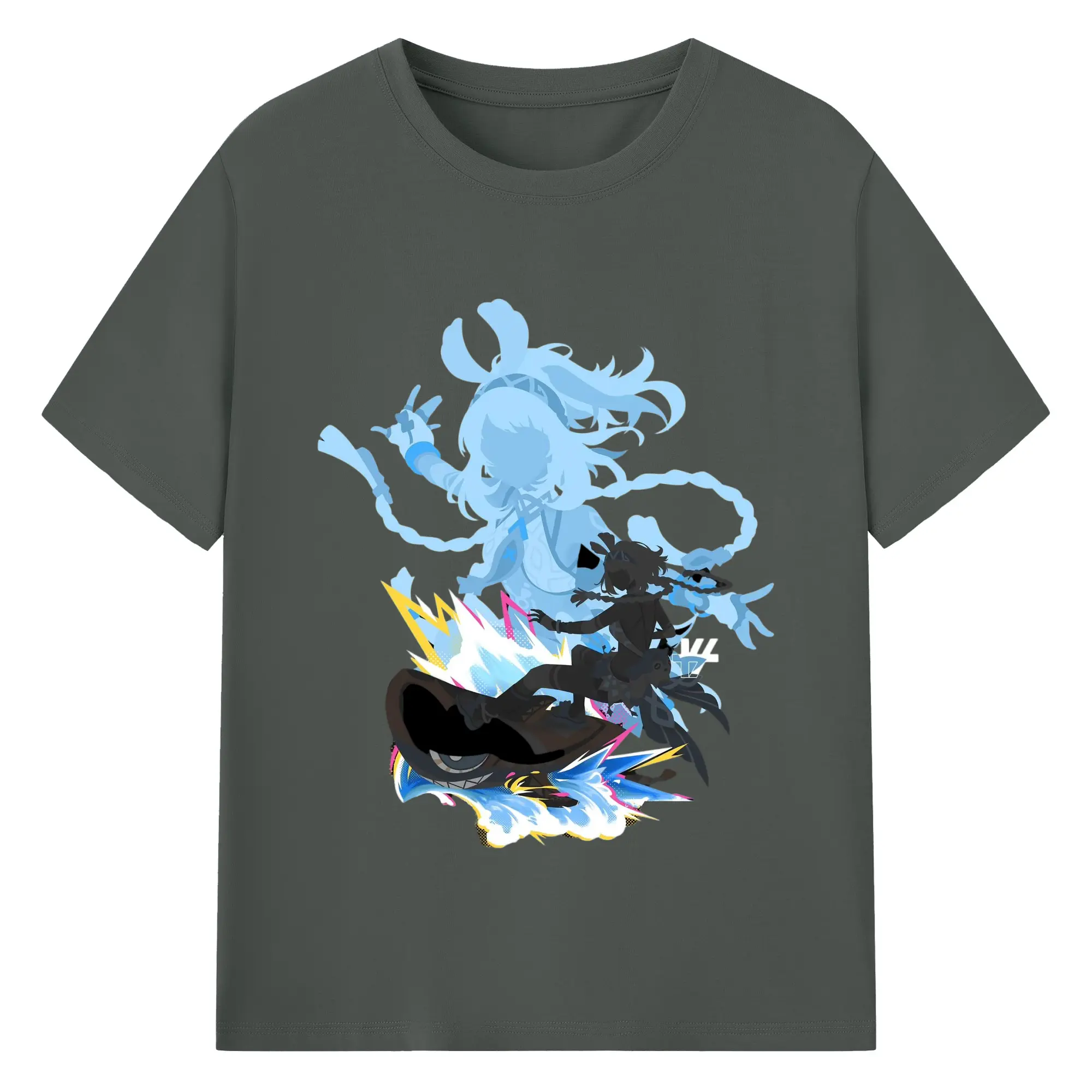 Genshin - 綿100% 半袖Tシャツ ・ フロントプリント ・ 快適 通気性 ・ 日常使い 散歩 スポーツ用