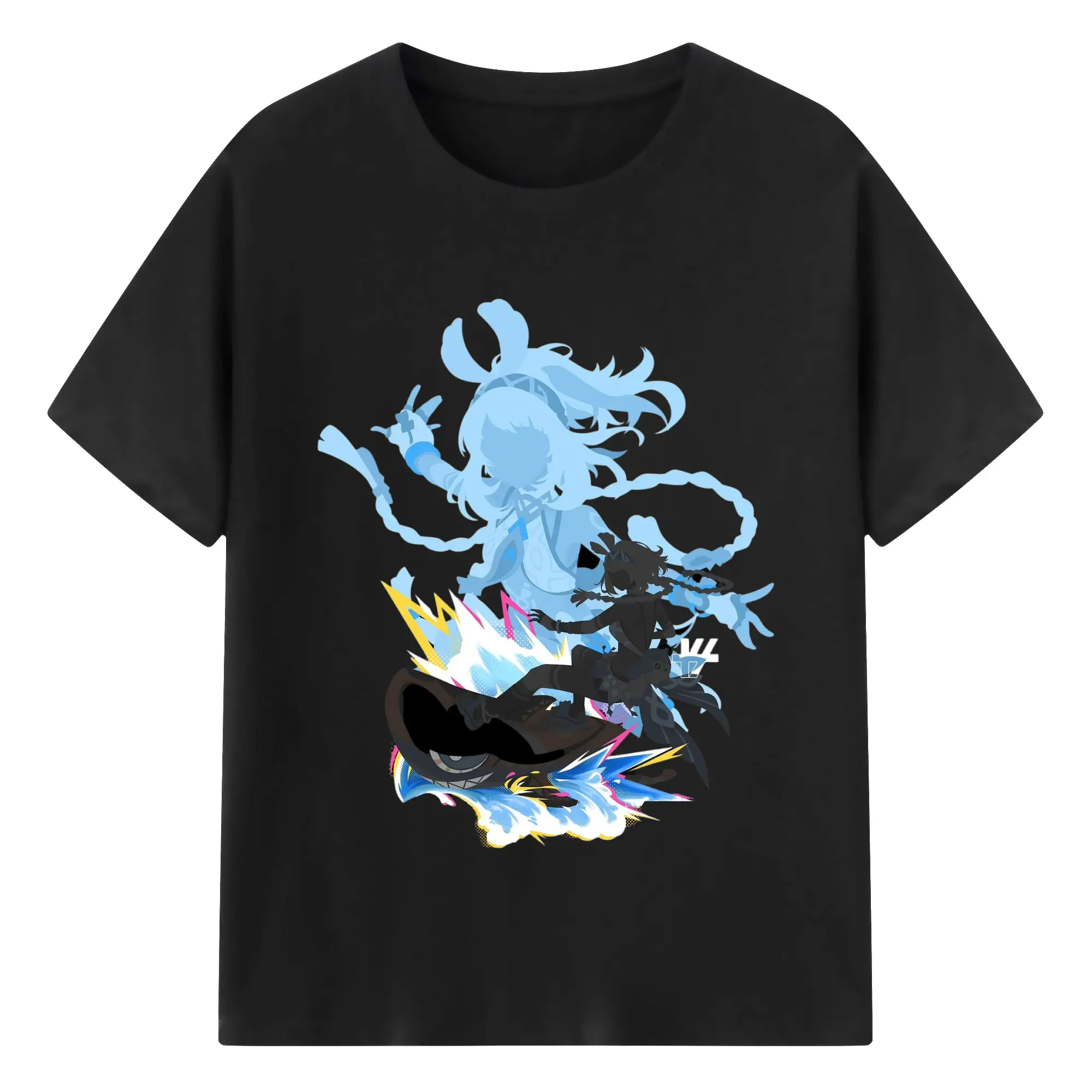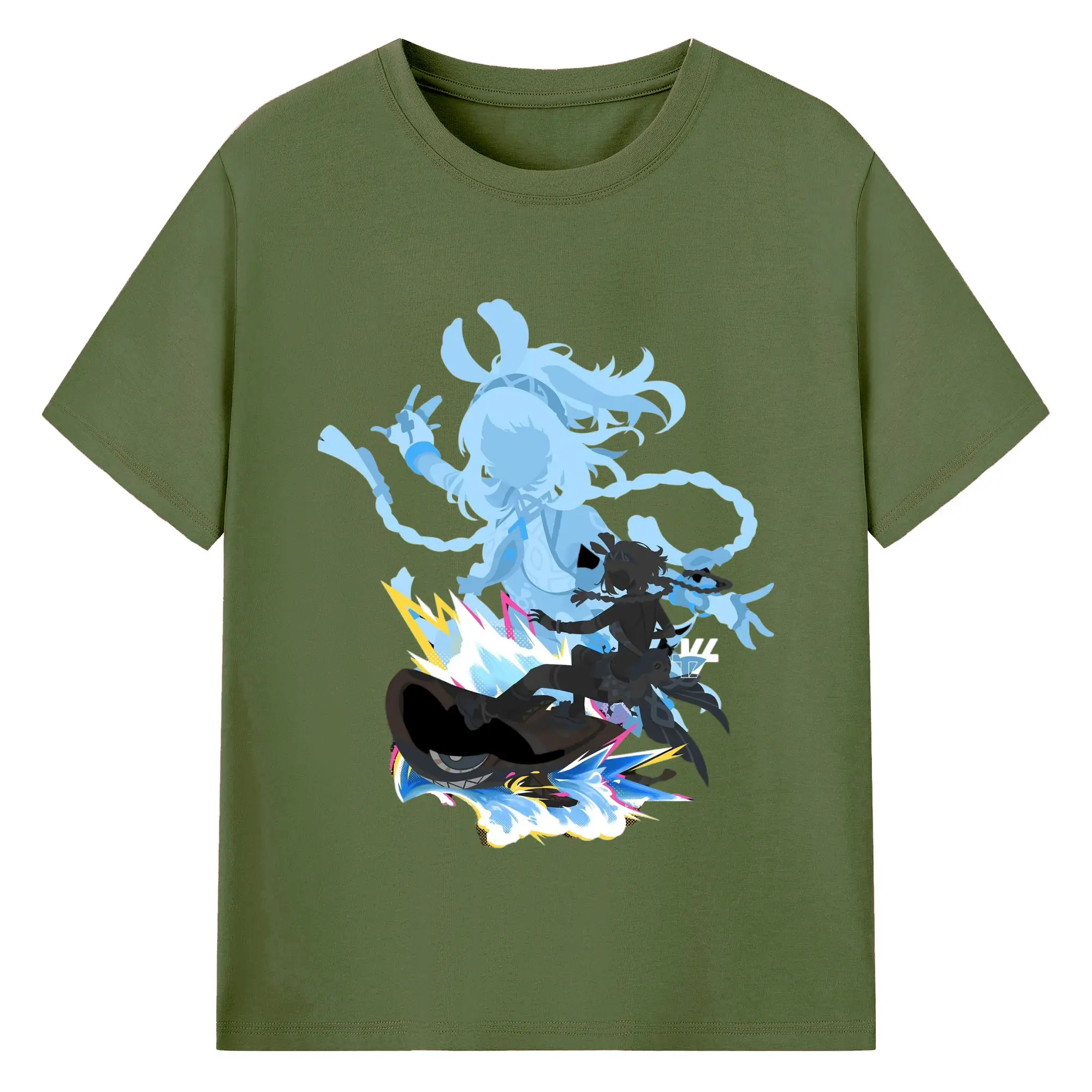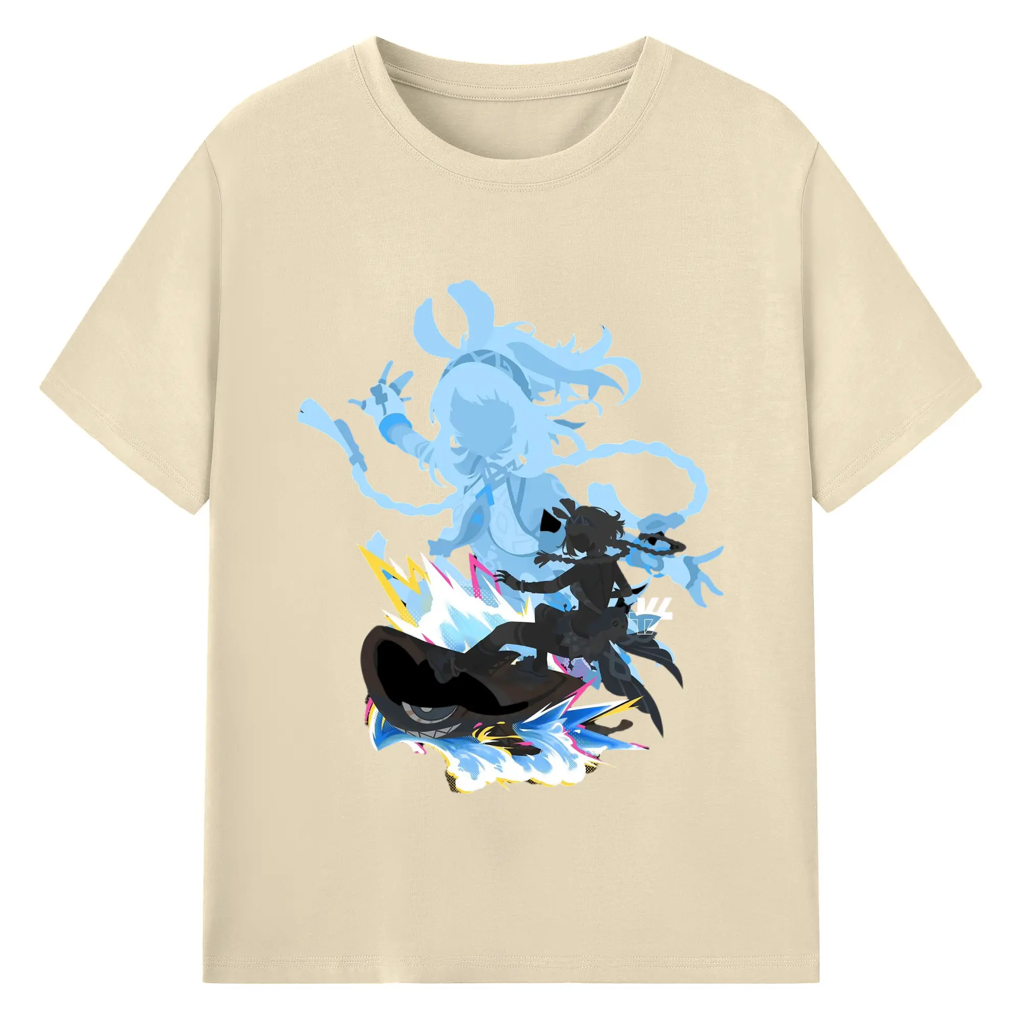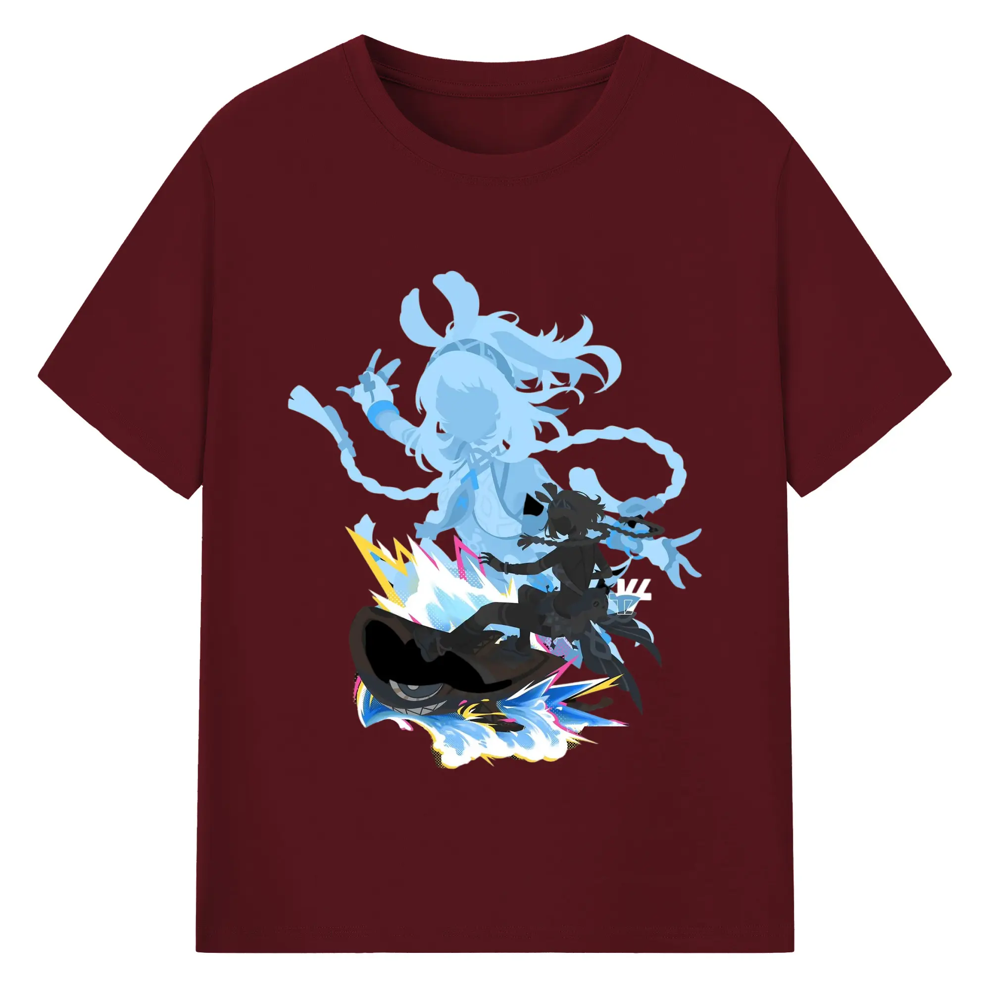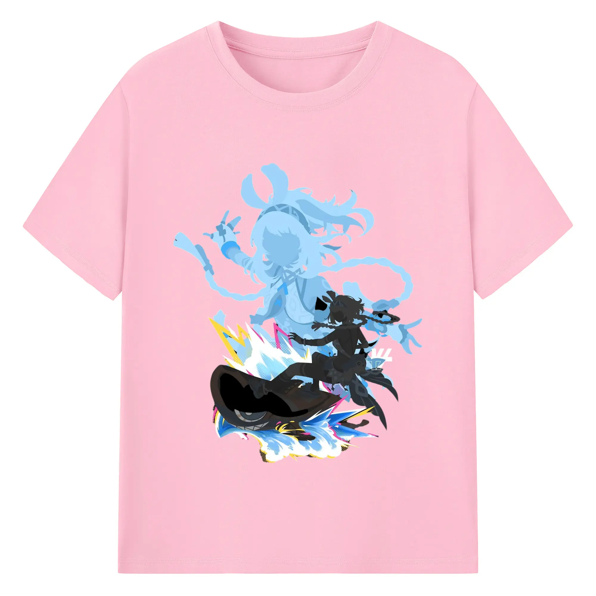 Genshin - 綿100% 半袖Tシャツ ・ フロントプリント ・ 快適 通気性 ・ 日常使い 散歩 スポーツ用
