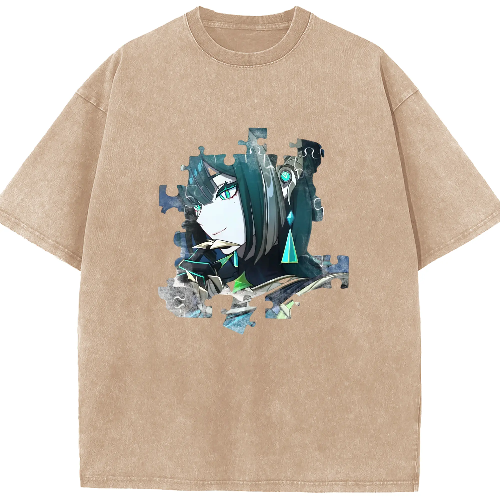 Genshin スメール草神そうしん ナヒーダ - 綿100% ヴィンテージ風 半袖Tシャツ ・ フロントプリント ・ 柔らか肌触り ・ 通気性 快適 ・ スポーツ カジュアル 外出用