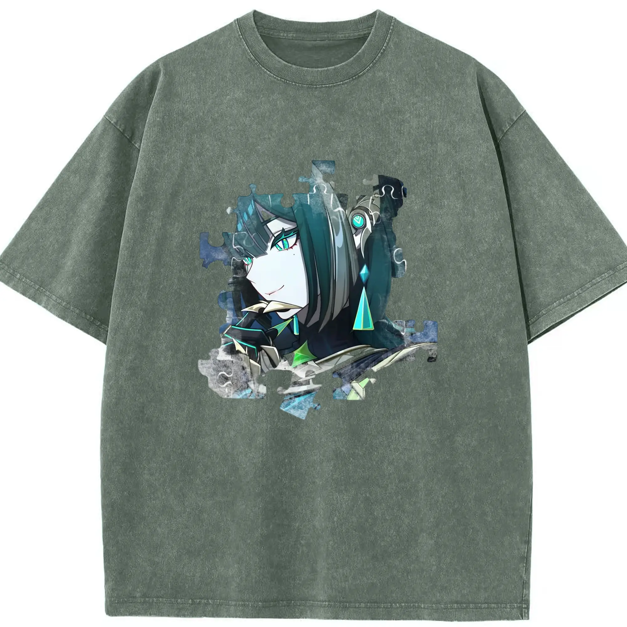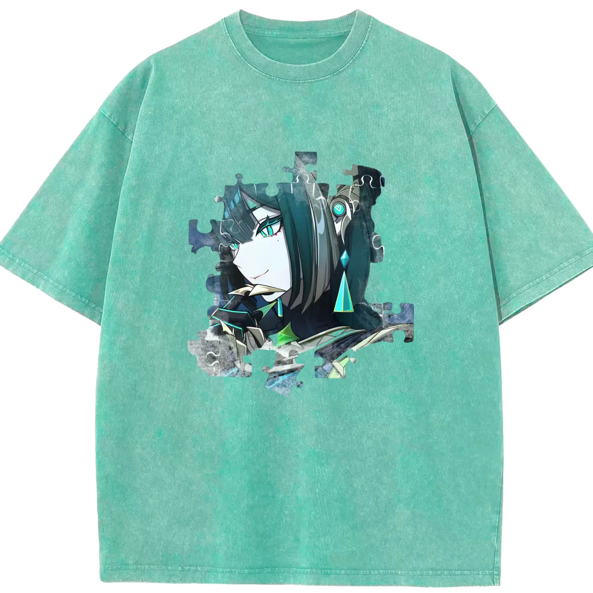 Genshin フォンテーヌ 水神すいじんフォカロルス フリーナ - 綿100% ヴィンテージ風 半袖Tシャツ ・ フロントプリント ・ 柔らか肌触り ・ 通気性 快適 ・ スポーツ カジュアル 外出用