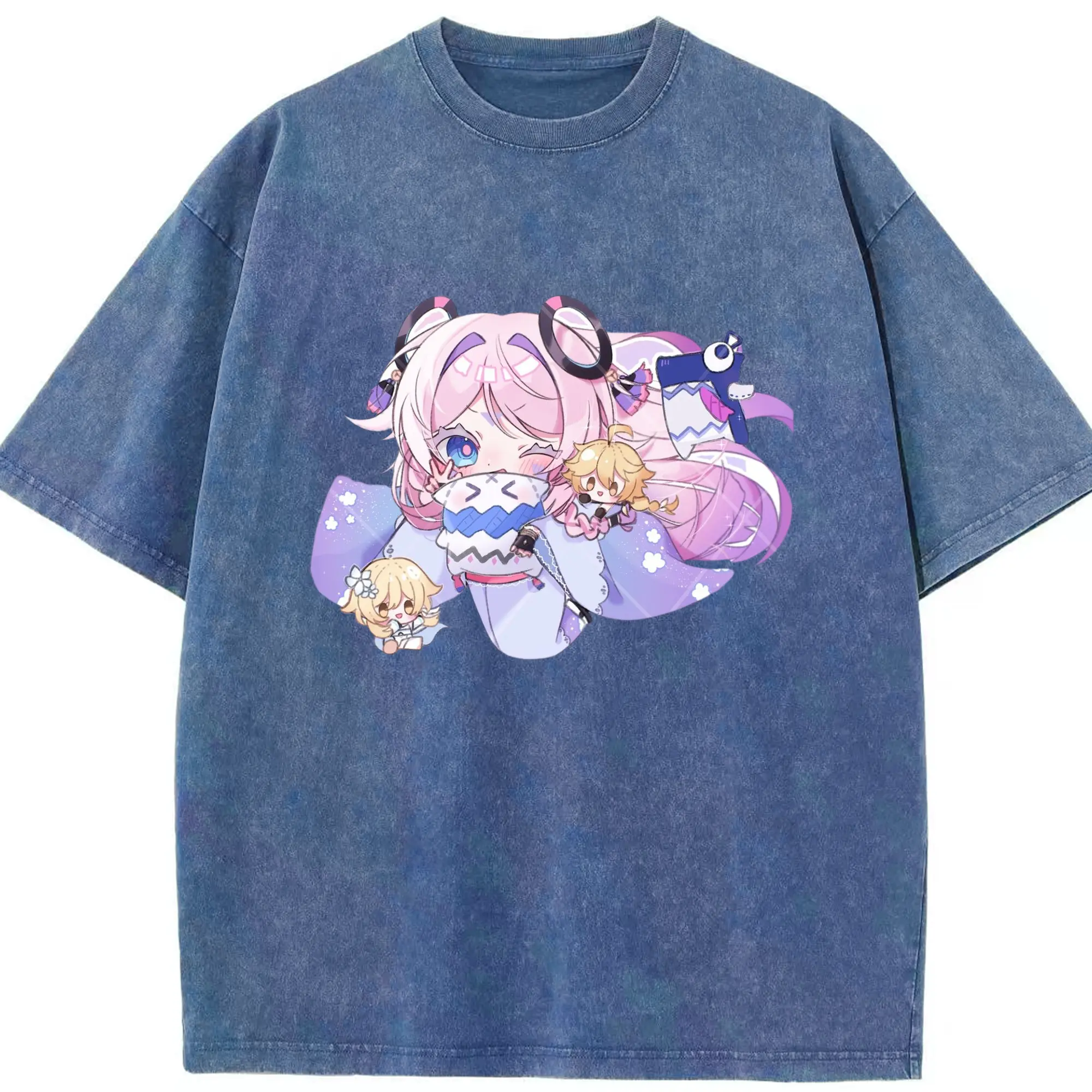 Genshin フォンテーヌ 水神すいじんフォカロルス フリーナ - 綿100% ヴィンテージ風 半袖Tシャツ ・ フロントプリント ・ 柔らか肌触り ・ 通気性 快適 ・ スポーツ カジュアル 外出用