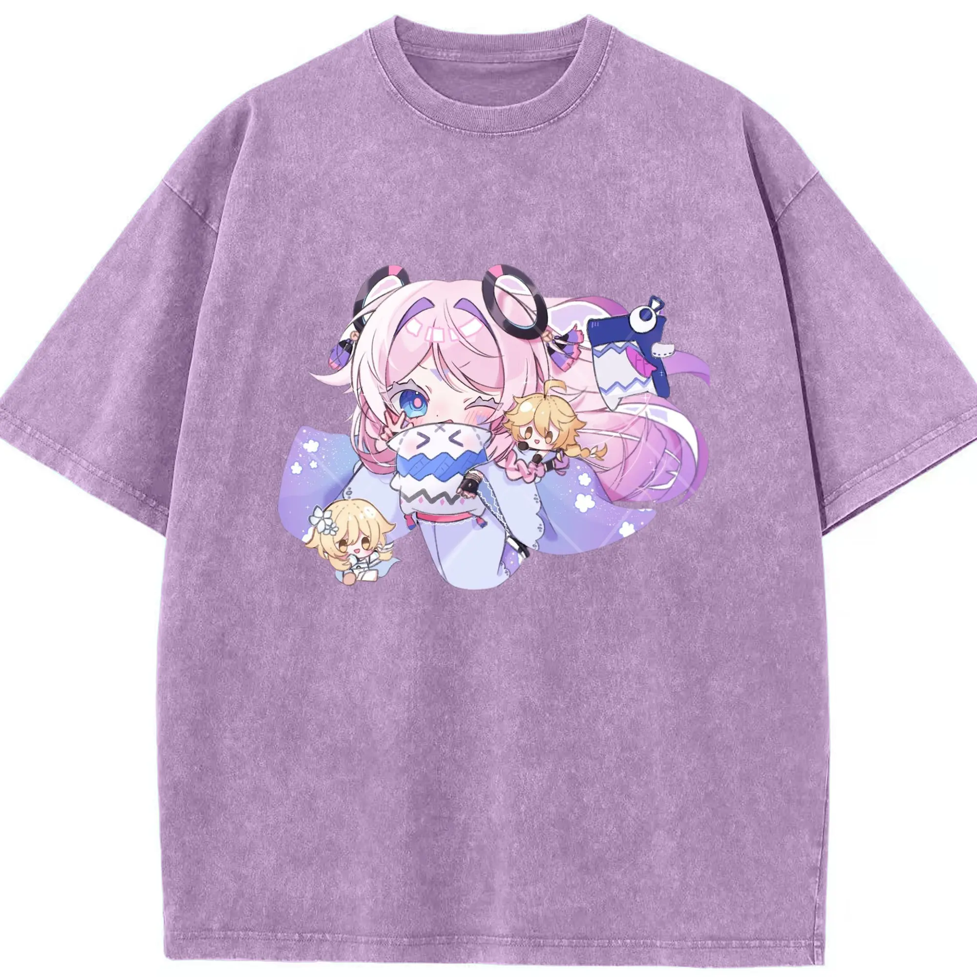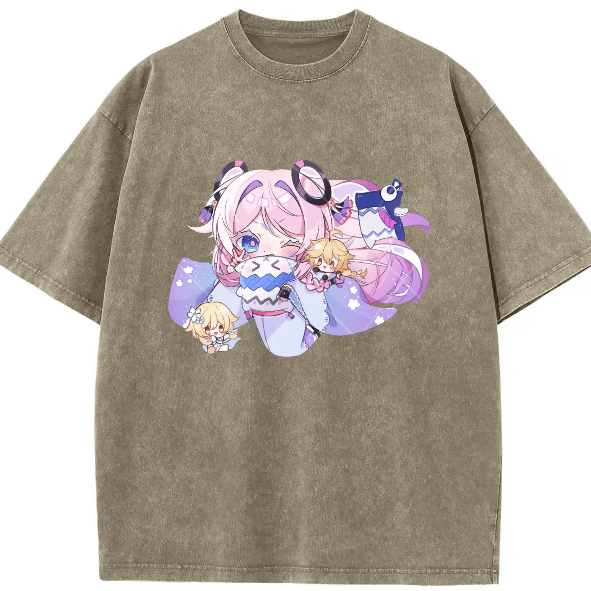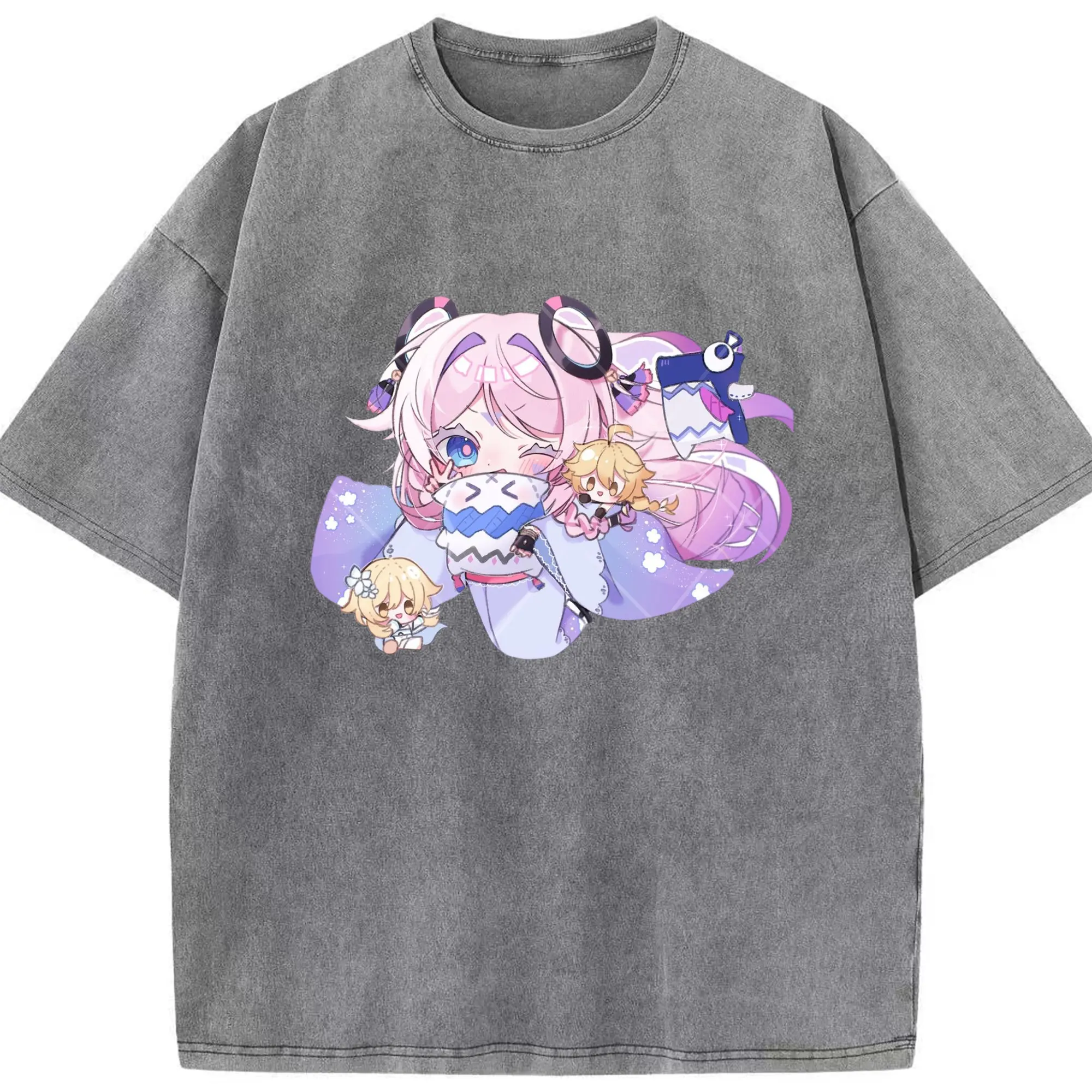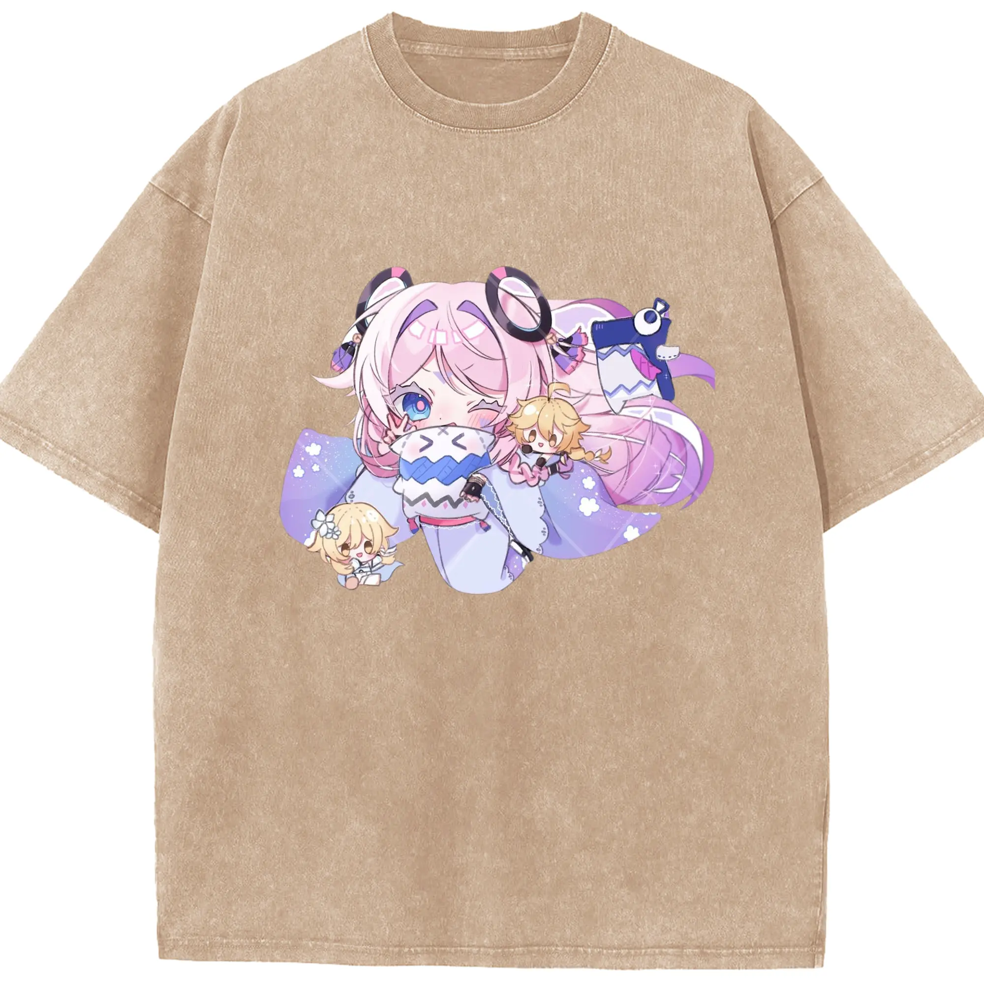 Genshin ナド・クライ クレーちゃん - 綿100% ヴィンテージ風 半袖Tシャツ ・ フロントプリント ・ 柔らか肌触り ・ 通気性 快適 ・ スポーツ カジュアル 外出用