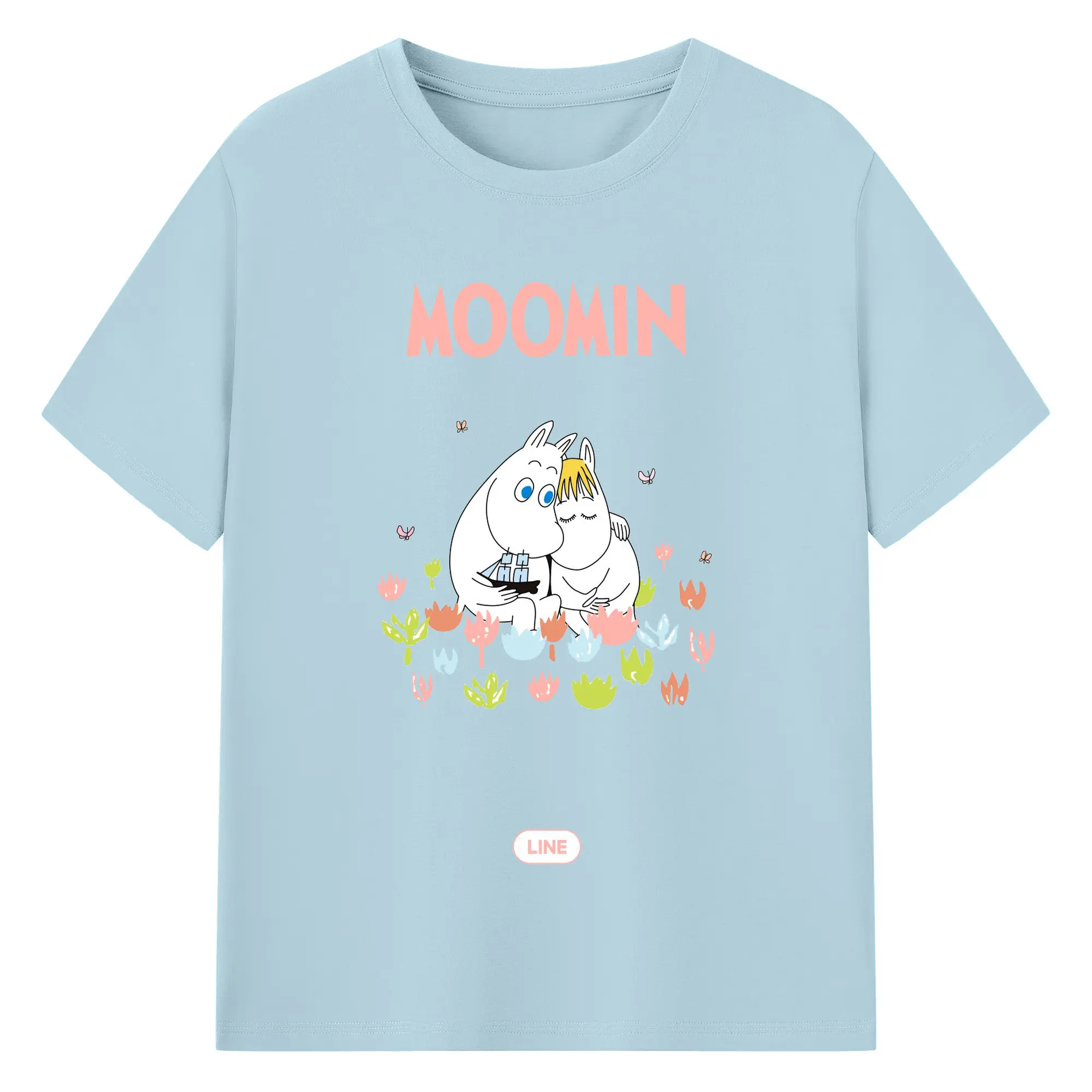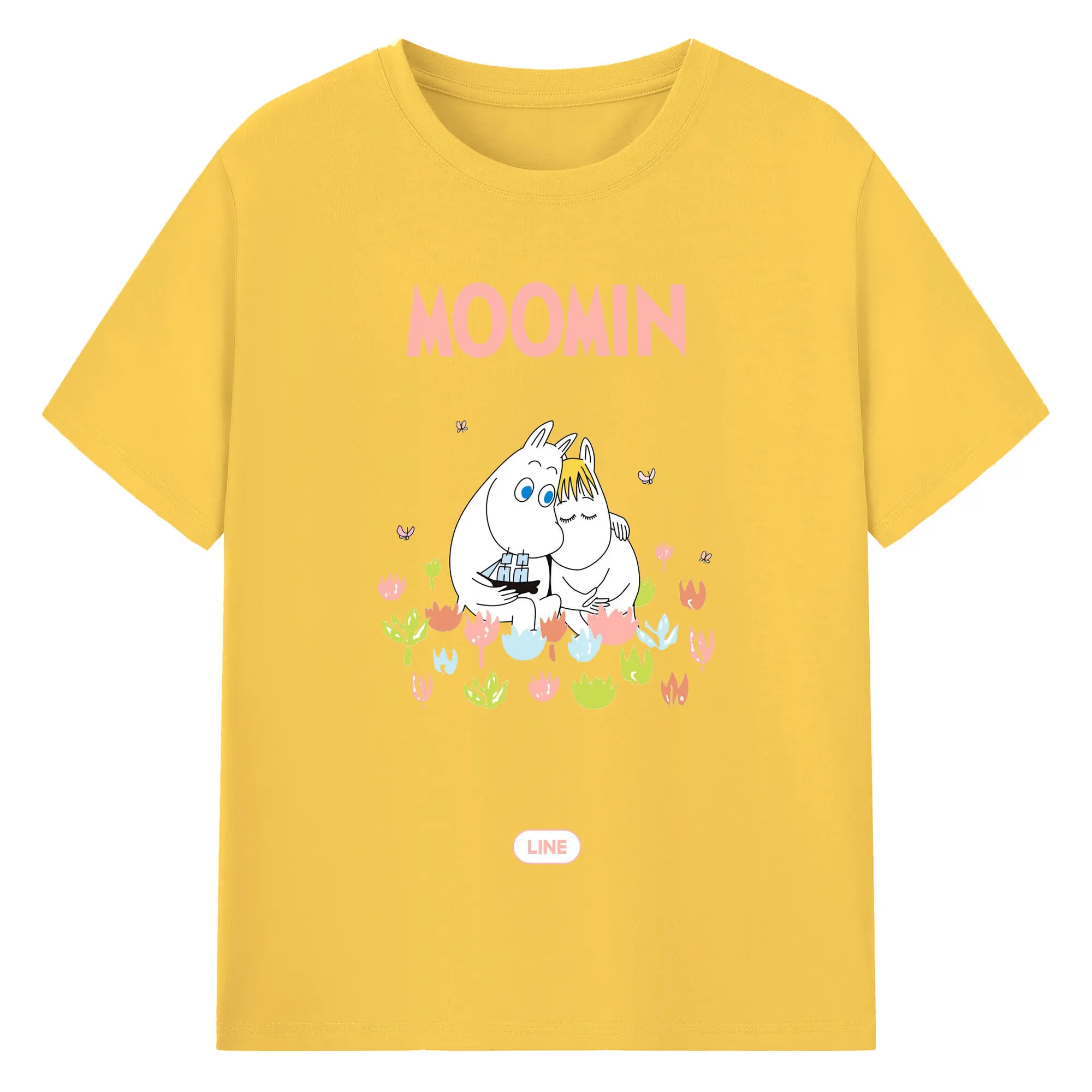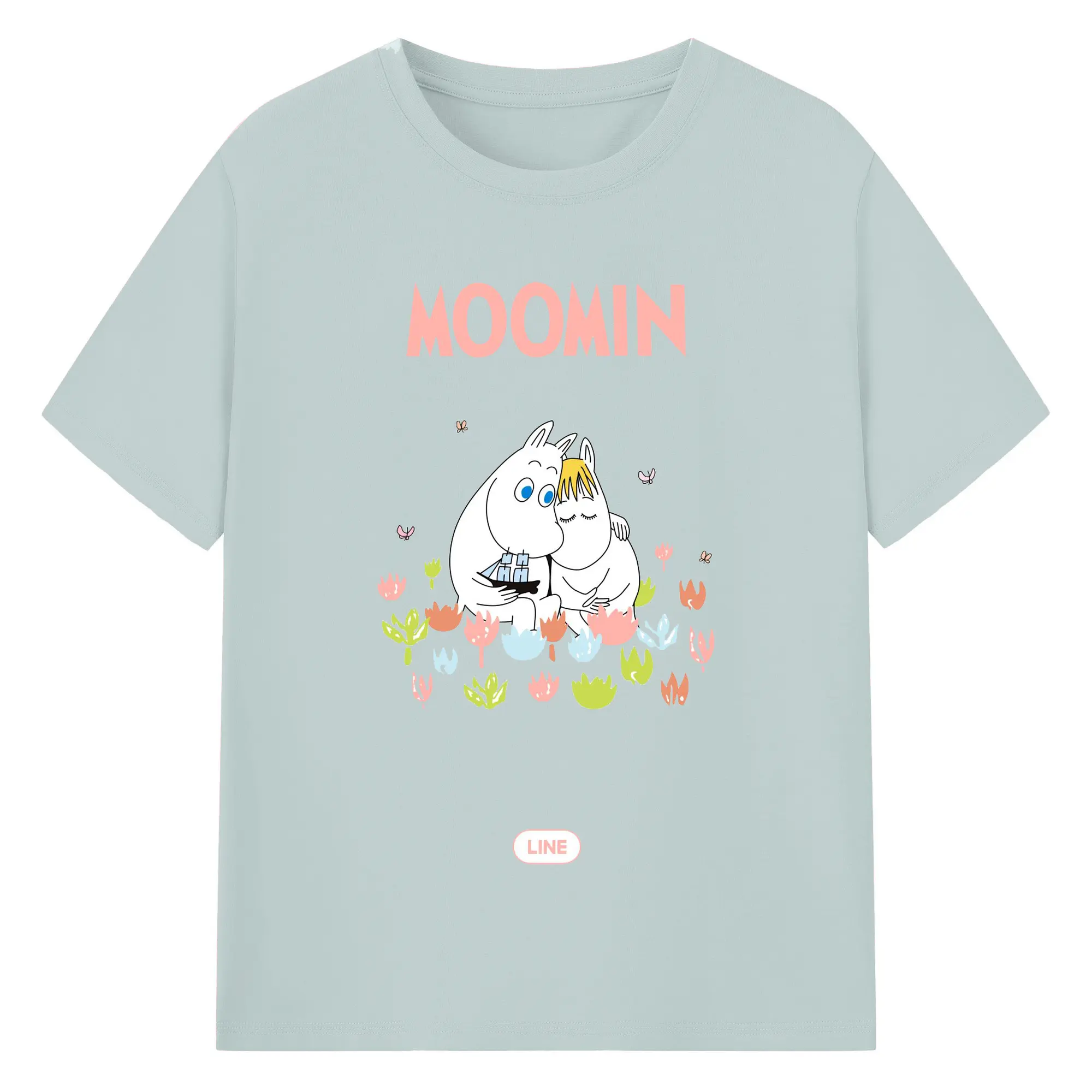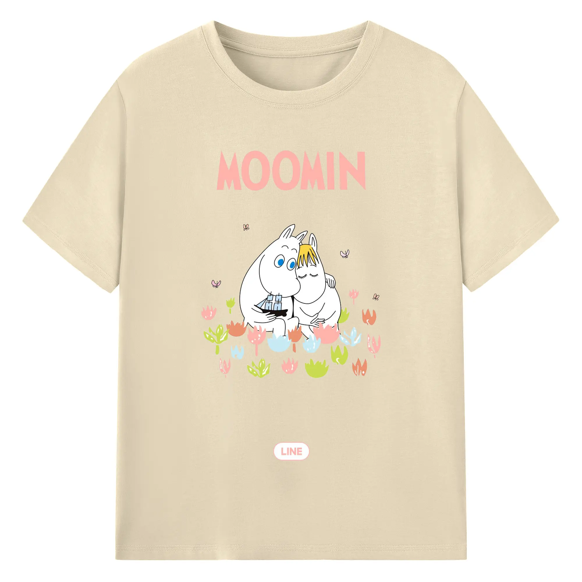 Moomin スノークのおじょあまいじかん ラブラブうさん - 綿100% ヴィンテージ風 半袖Tシャツ ・ フロントプリント ・ 柔らか肌触り ・ 通気性 快適 ・ スポーツ カジュアル 外出用
