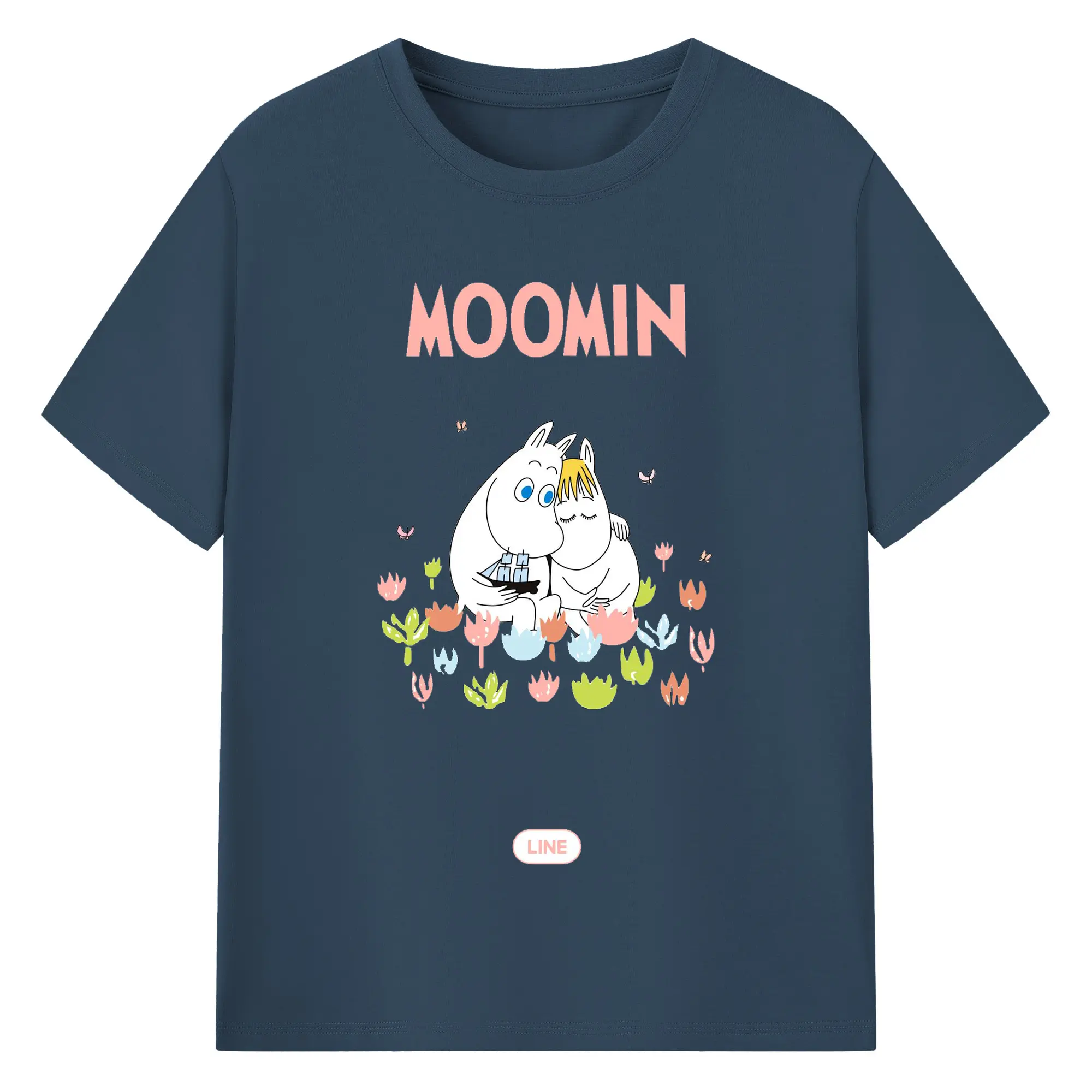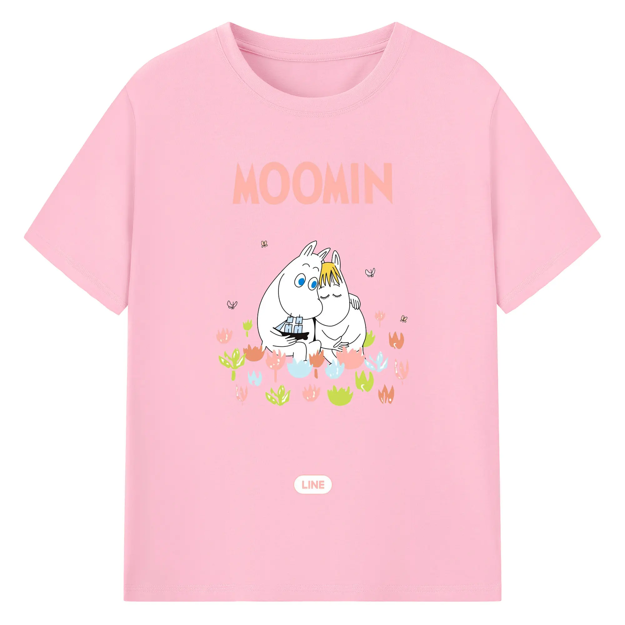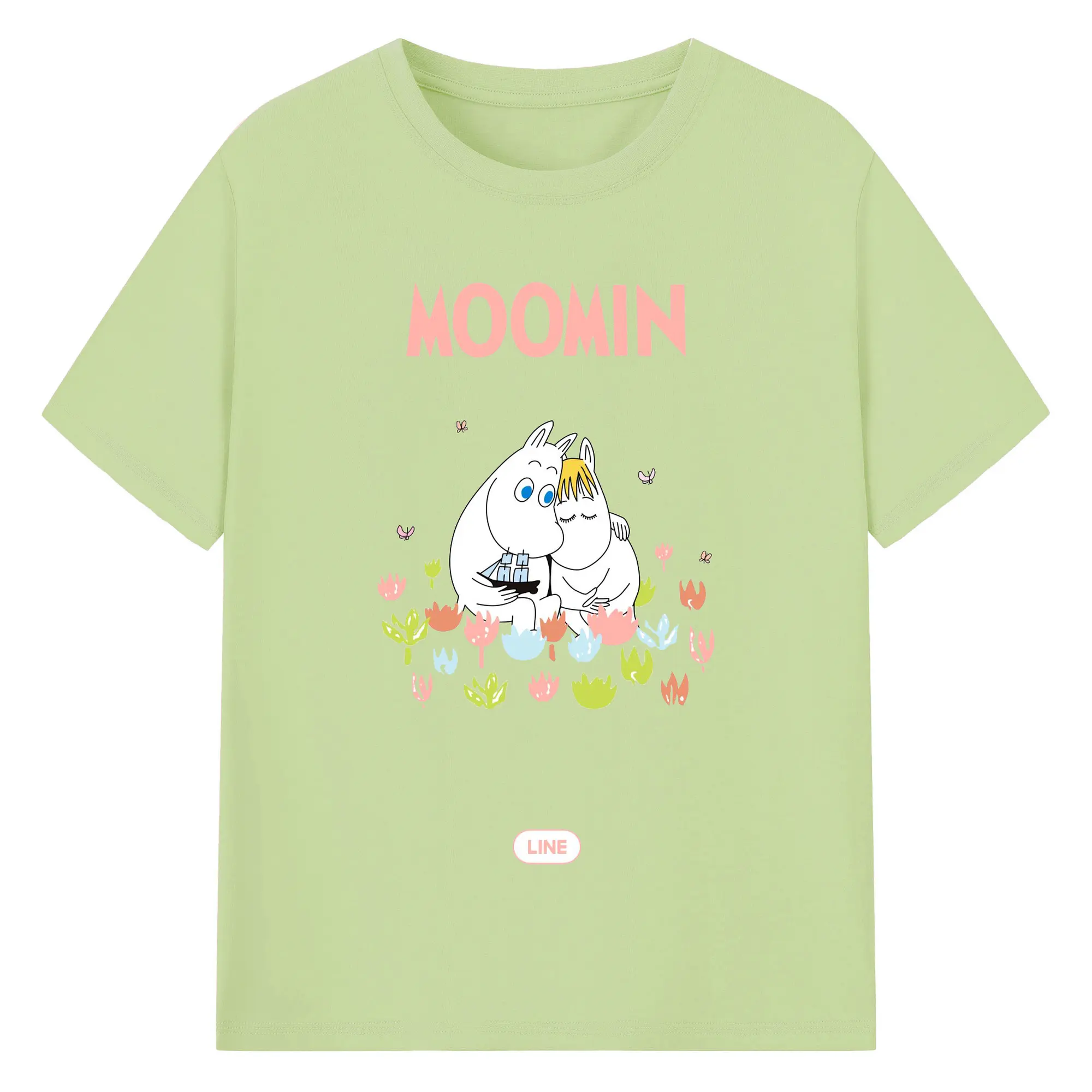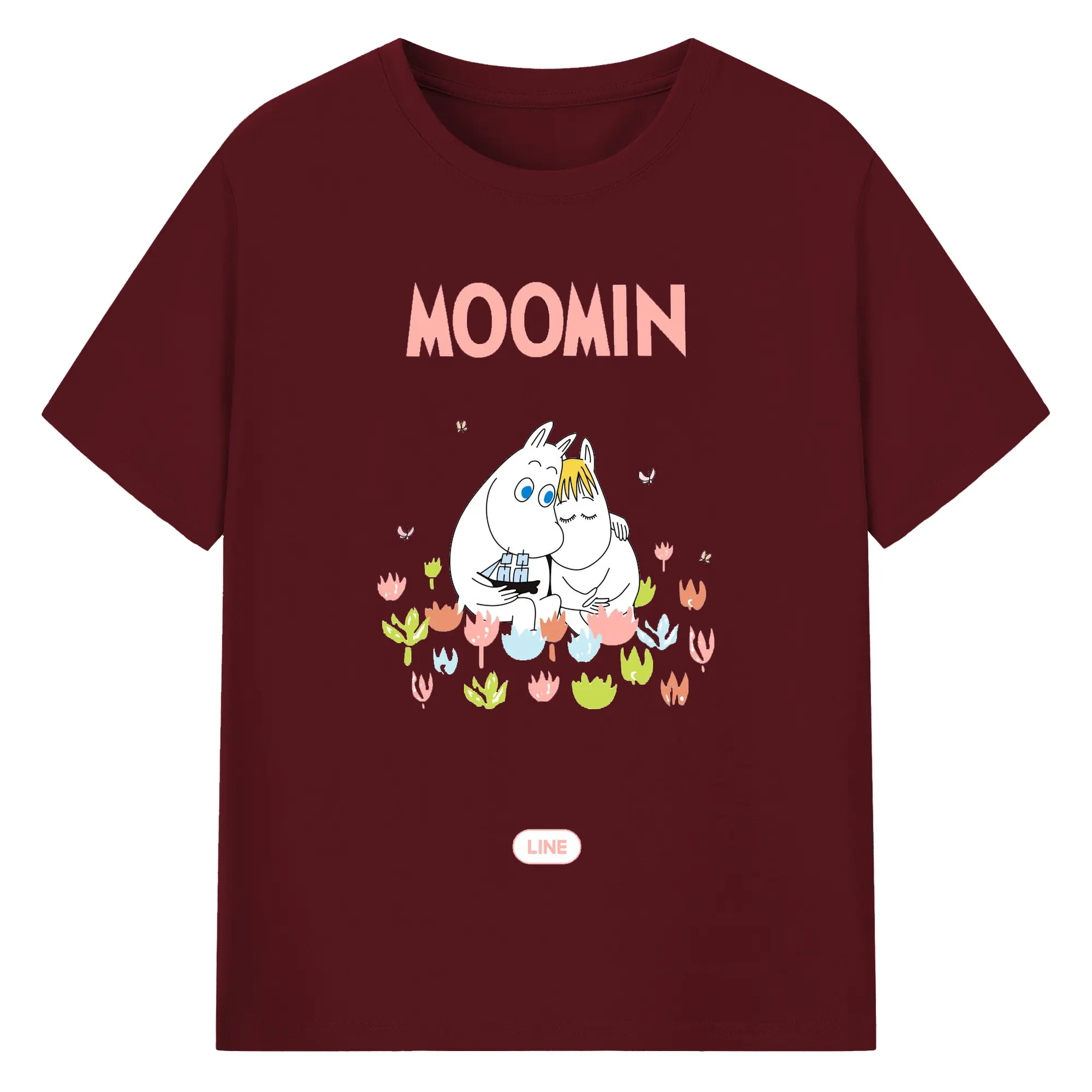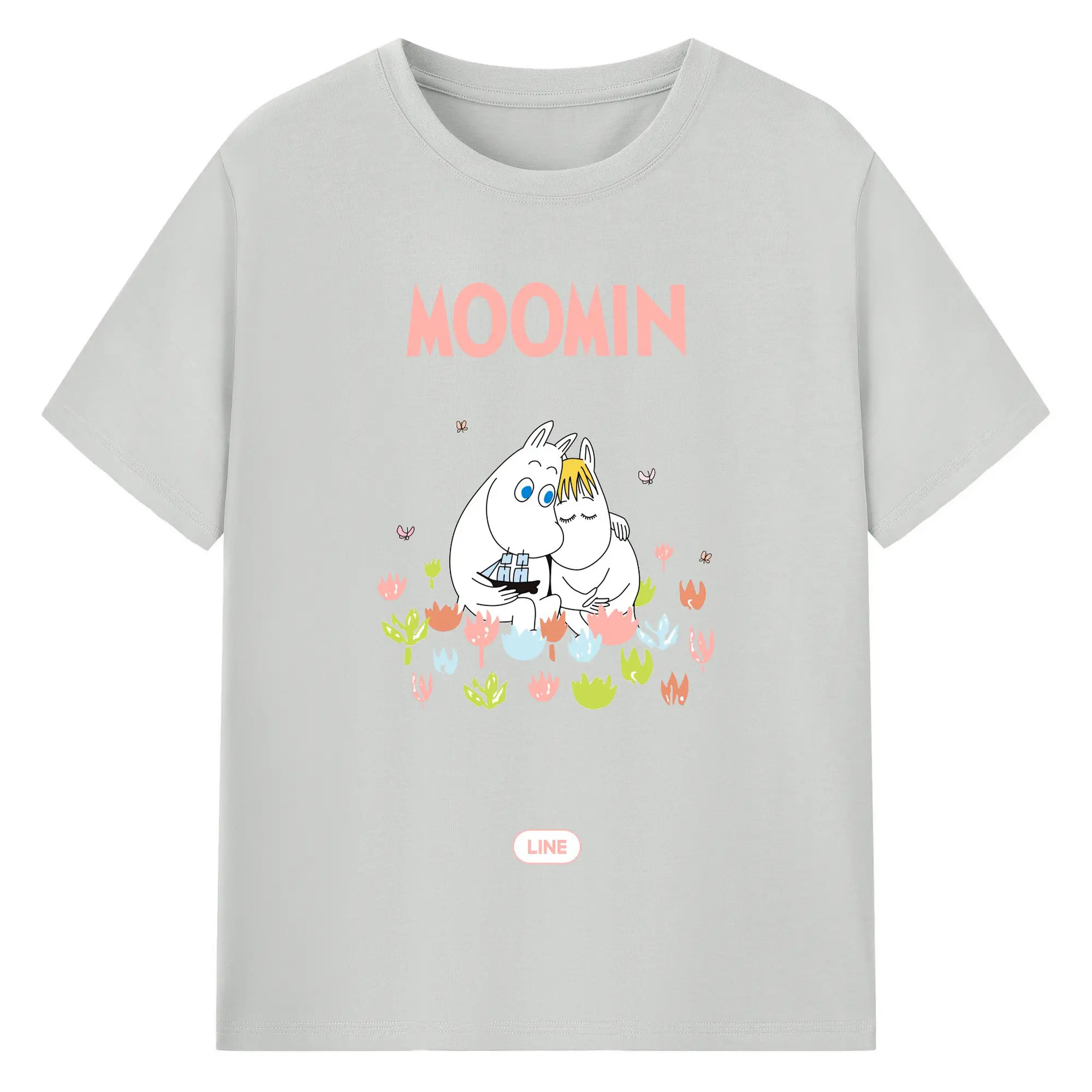 Moomin スノークのおじょあまいじかん ラブラブうさん - 綿100% ヴィンテージ風 半袖Tシャツ ・ フロントプリント ・ 柔らか肌触り ・ 通気性 快適 ・ スポーツ カジュアル 外出用