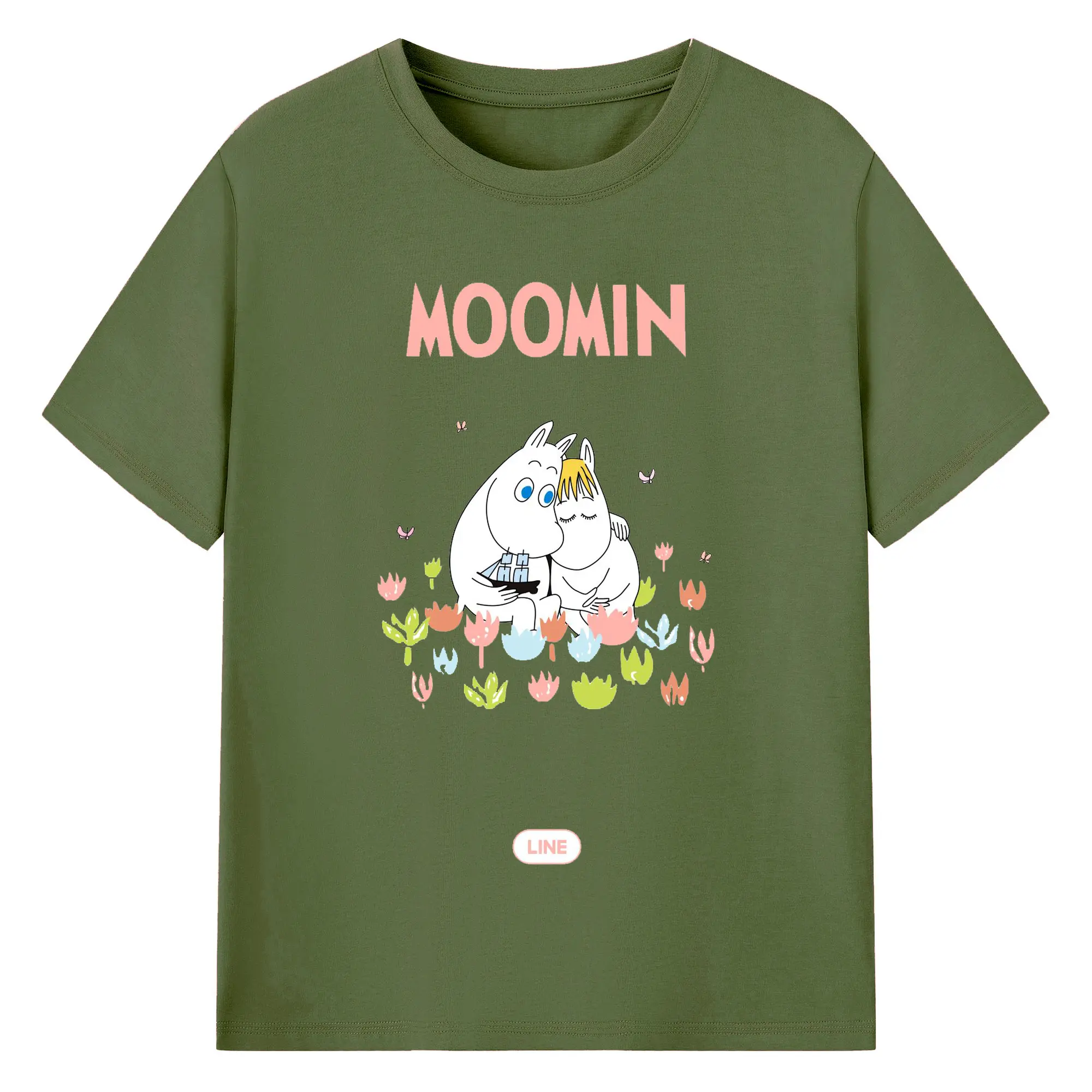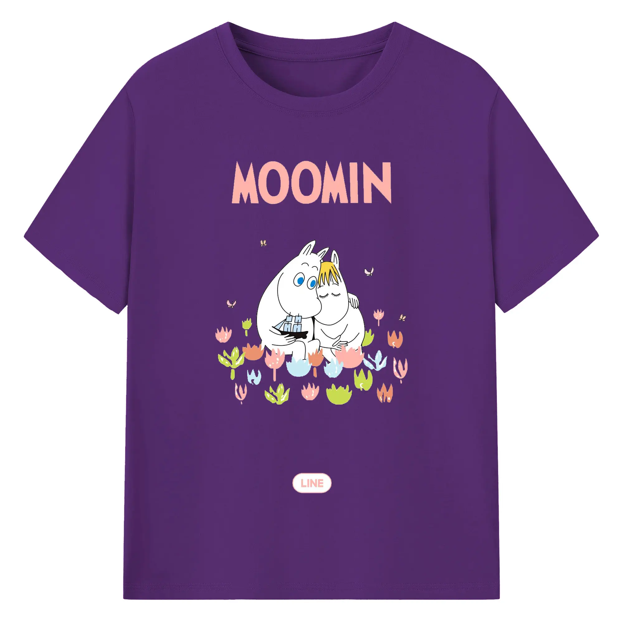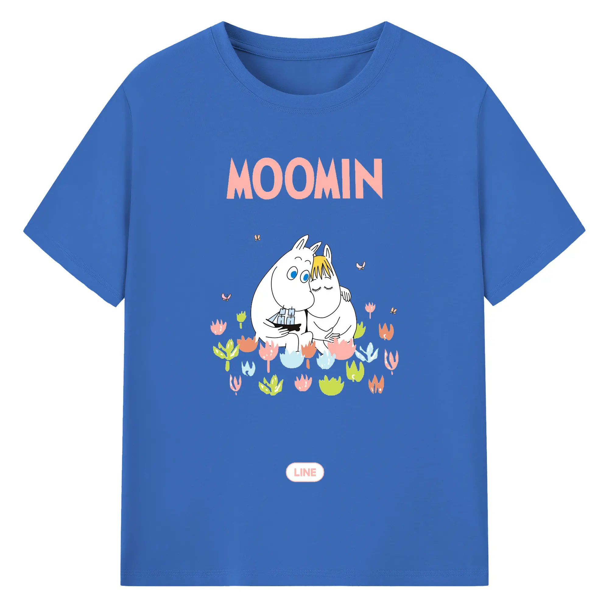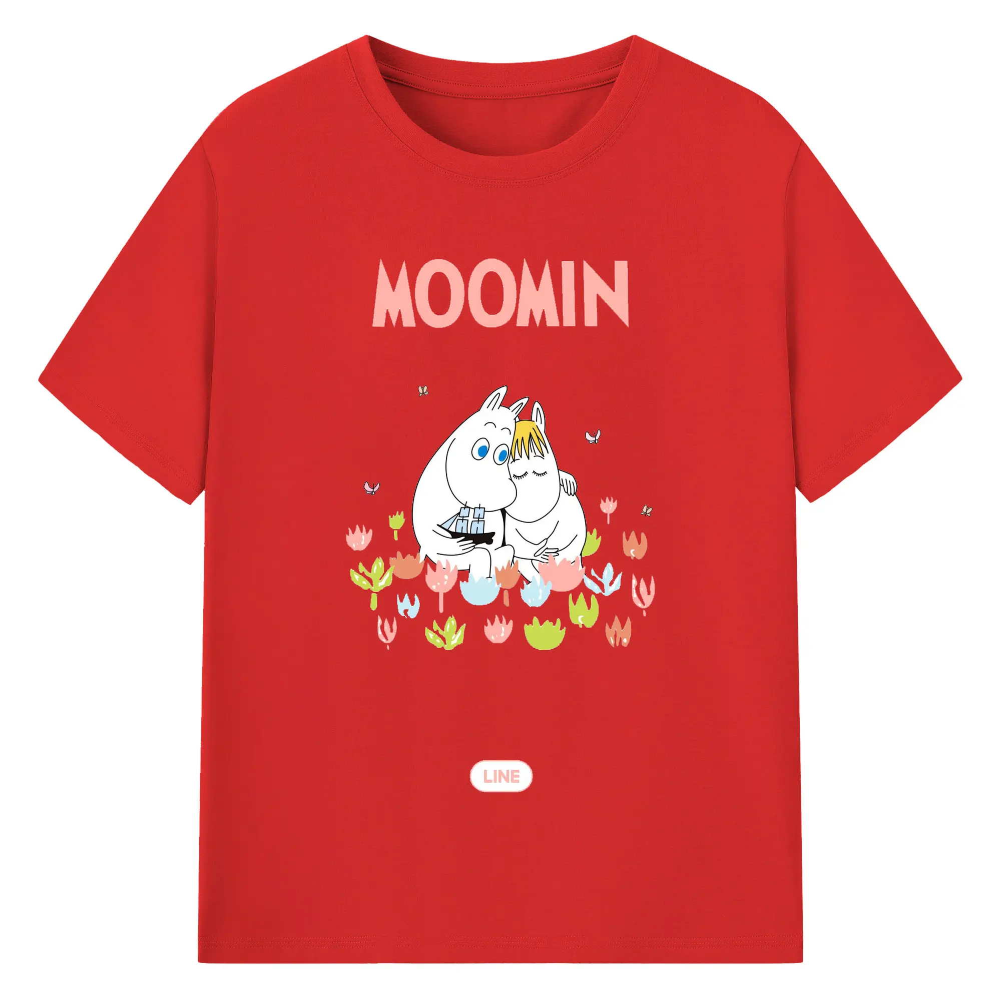 Moomin スノークのおじょあまいじかん ラブラブうさん - 綿100% ヴィンテージ風 半袖Tシャツ ・ フロントプリント ・ 柔らか肌触り ・ 通気性 快適 ・ スポーツ カジュアル 外出用