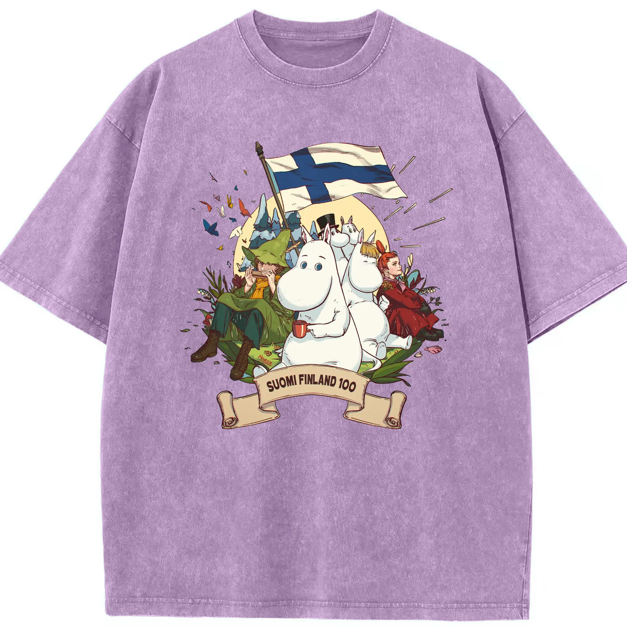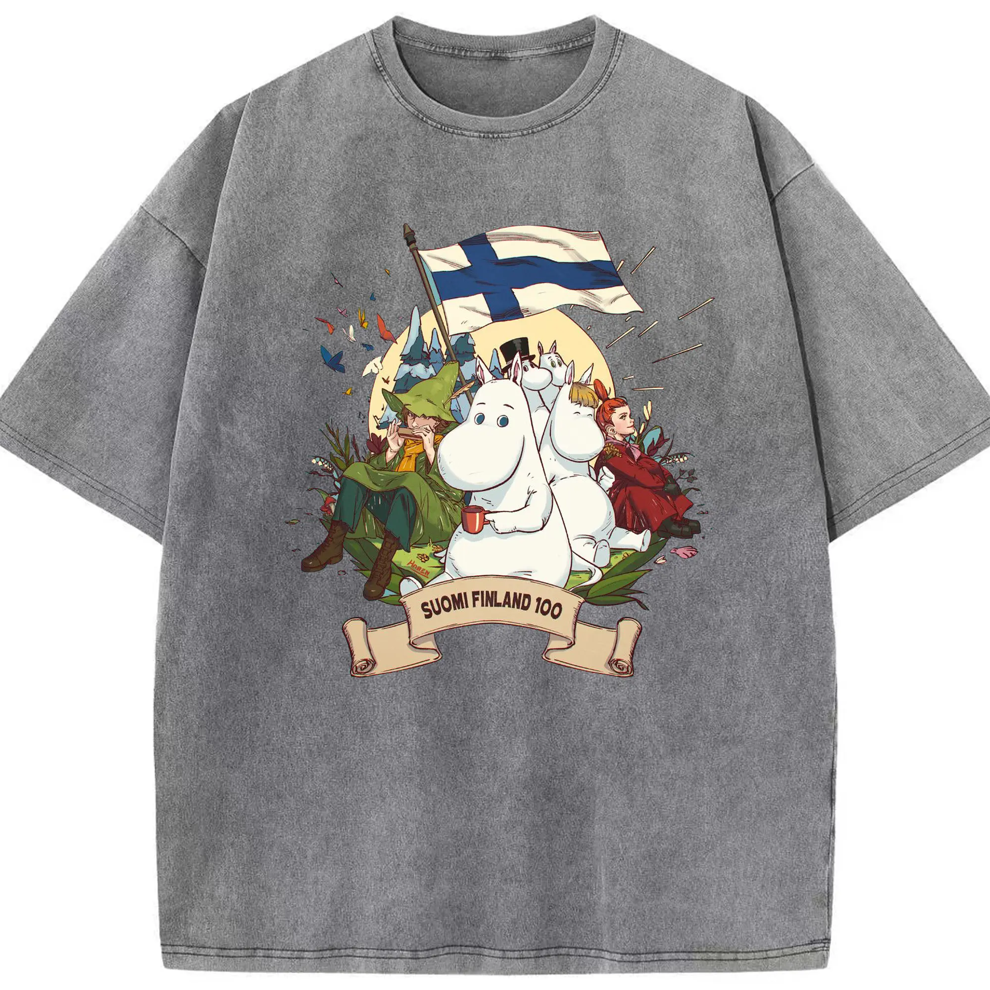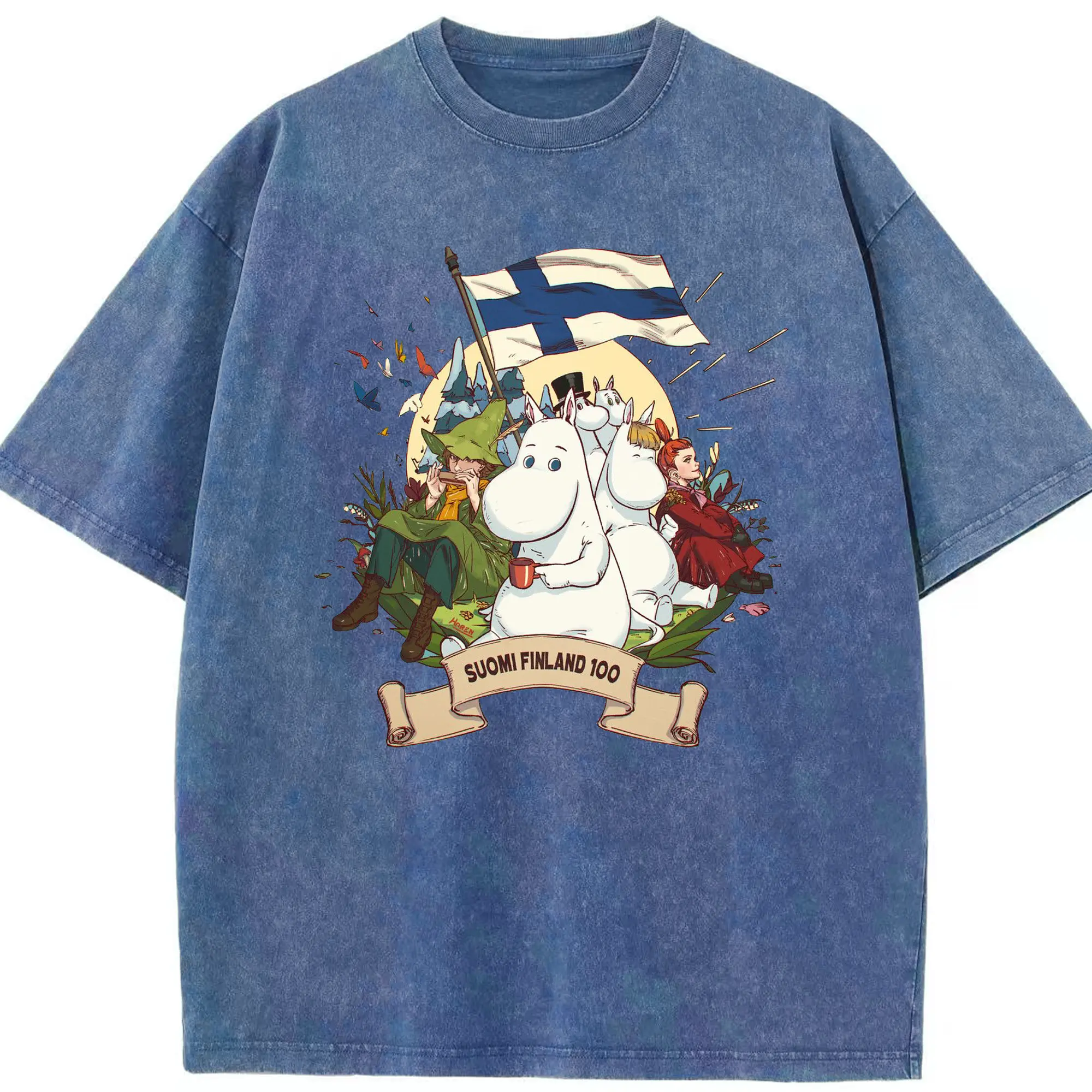 Moomin トーベ・ヤンソン フィンランド絵本 - 綿100% 半袖Tシャツ ・ フロントプリント ・ 快適 通気性 ・ 日常使い 散歩 スポーツ用