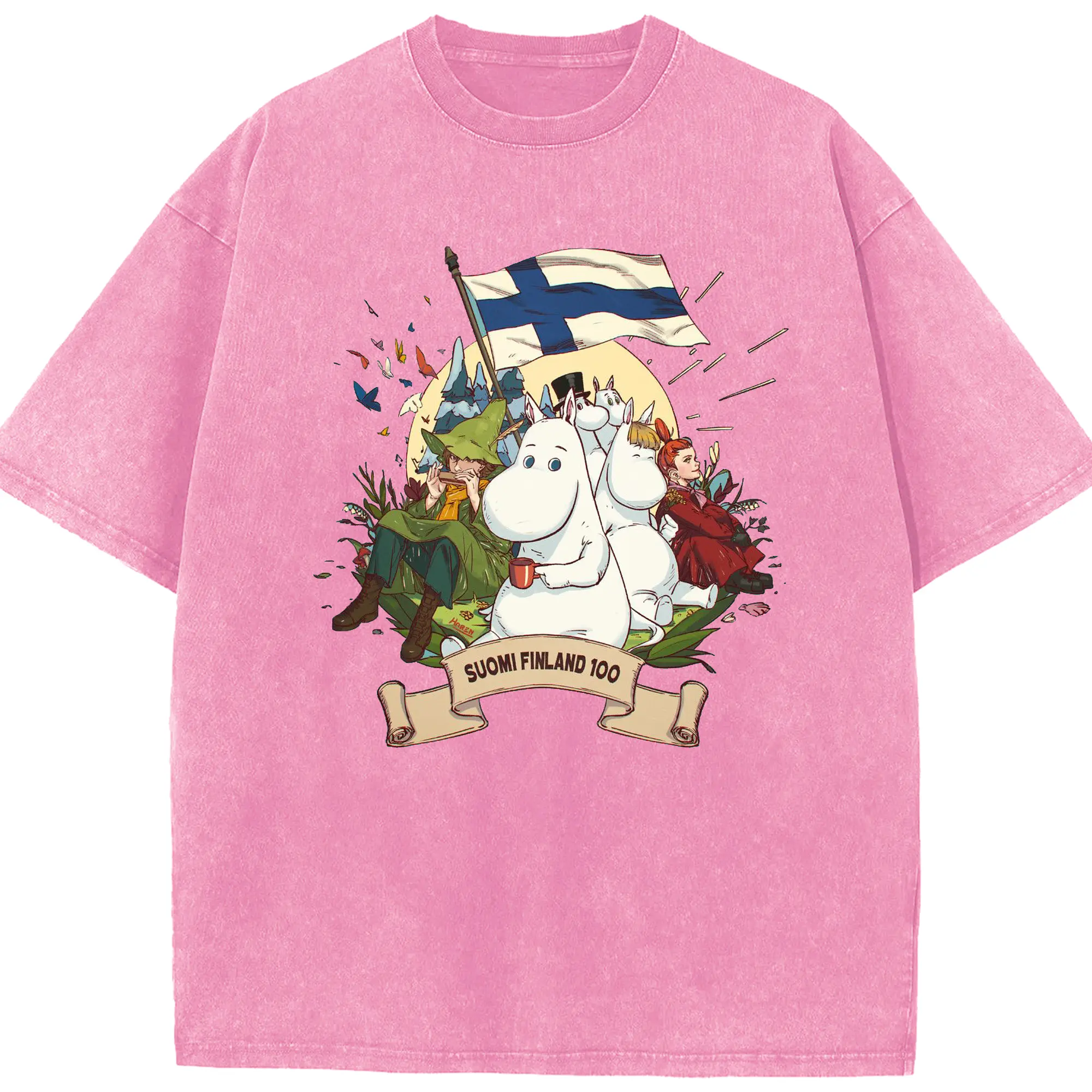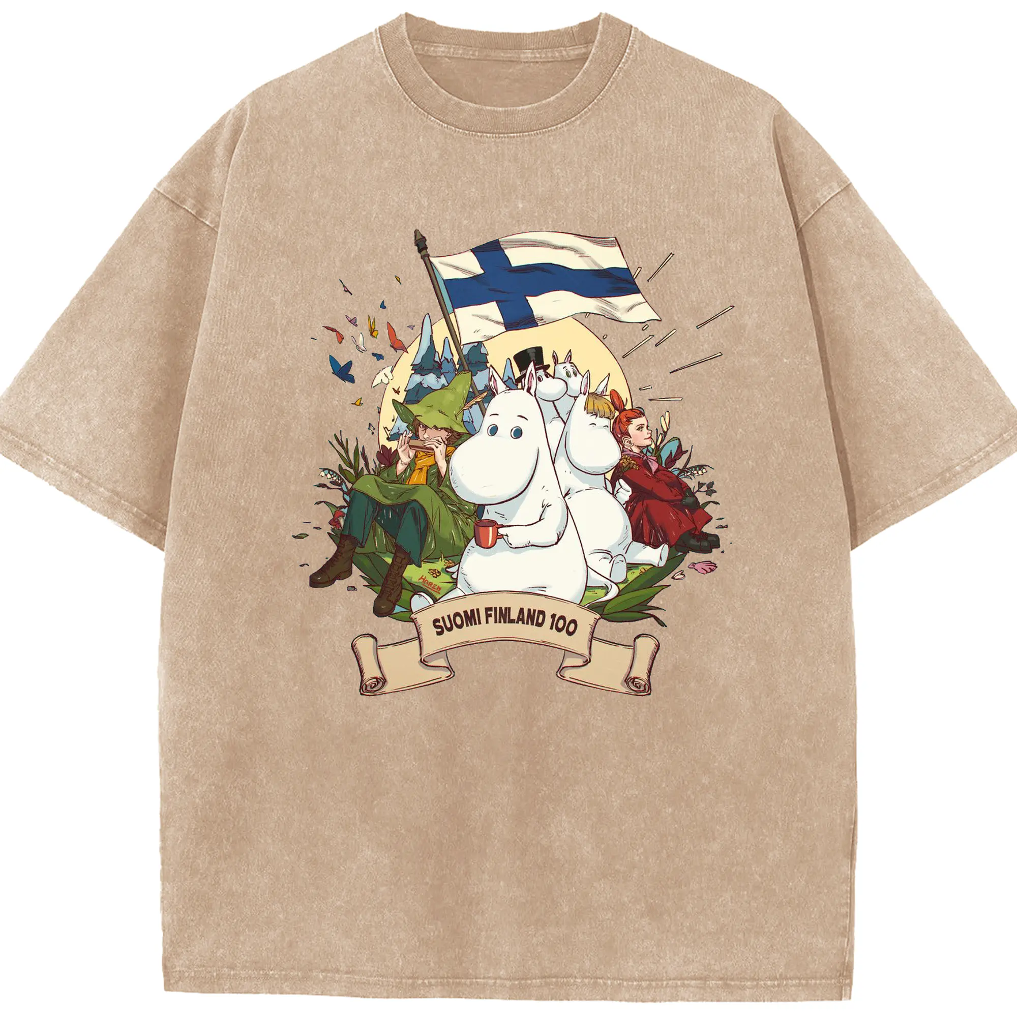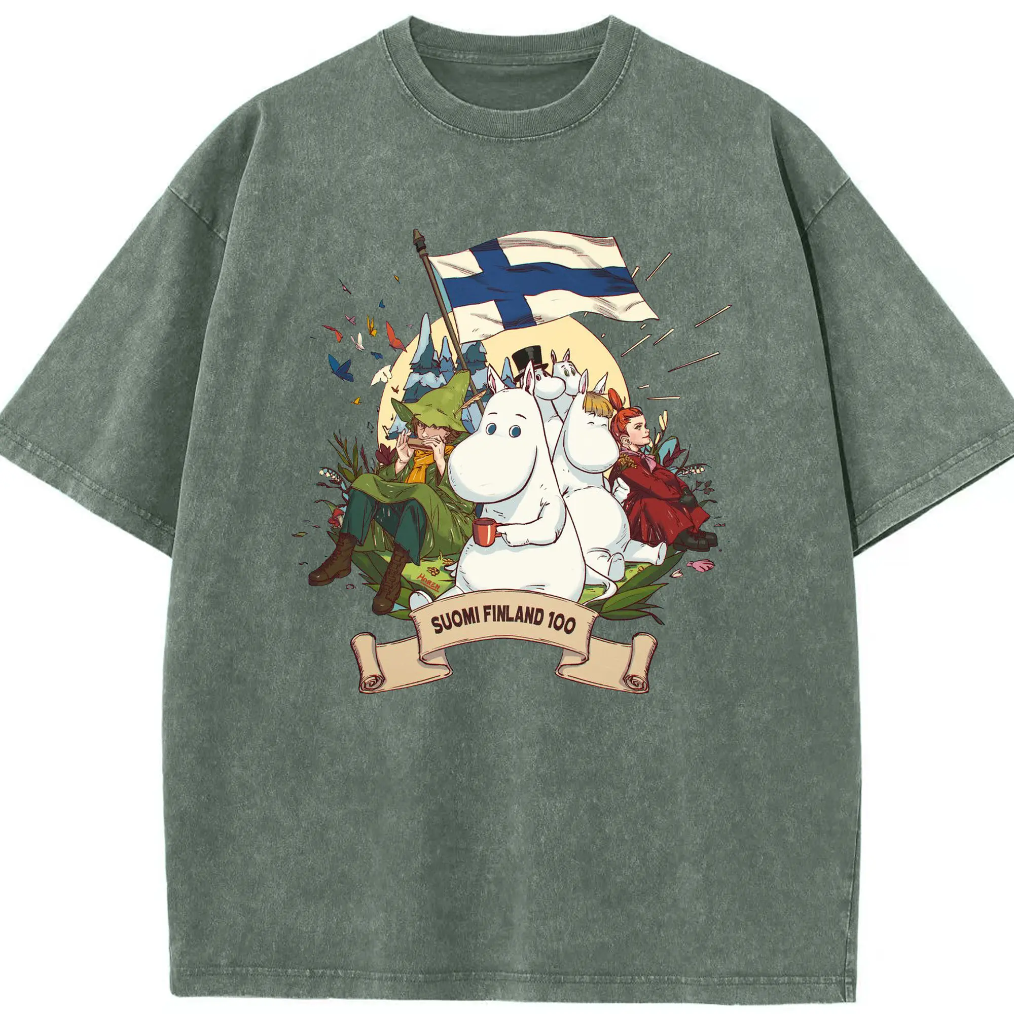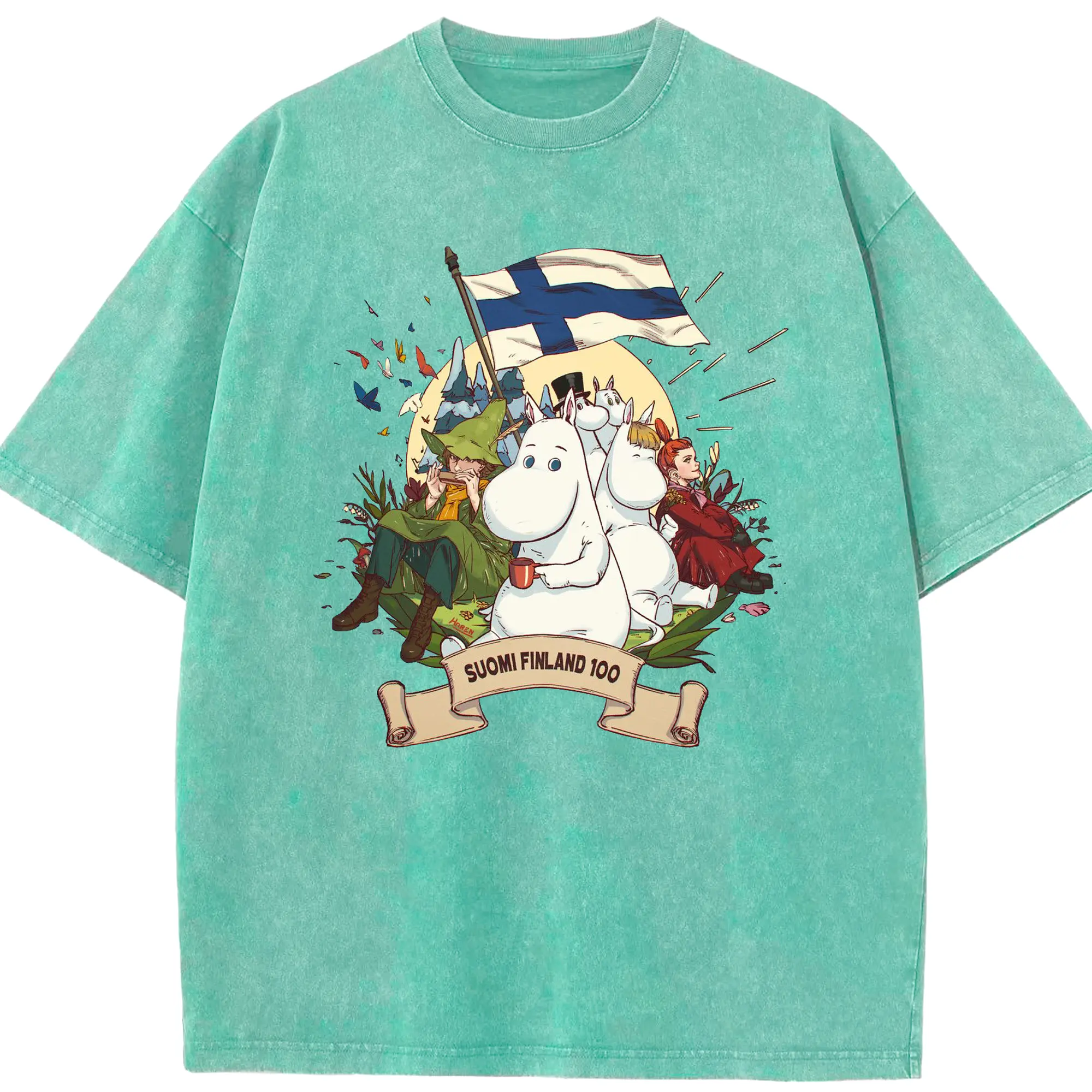 Moomin トーベ・ヤンソン フィンランド絵本 - 綿100% 半袖Tシャツ ・ フロントプリント ・ 快適 通気性 ・ 日常使い 散歩 スポーツ用