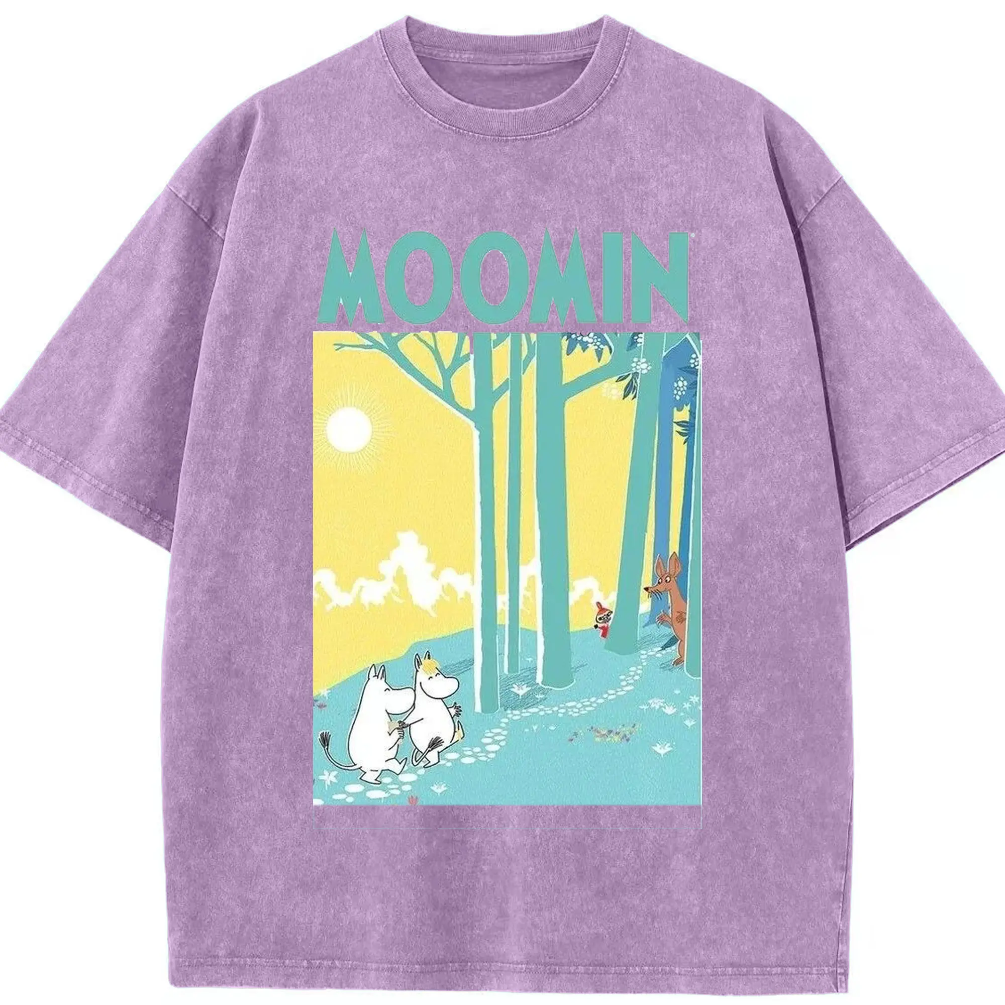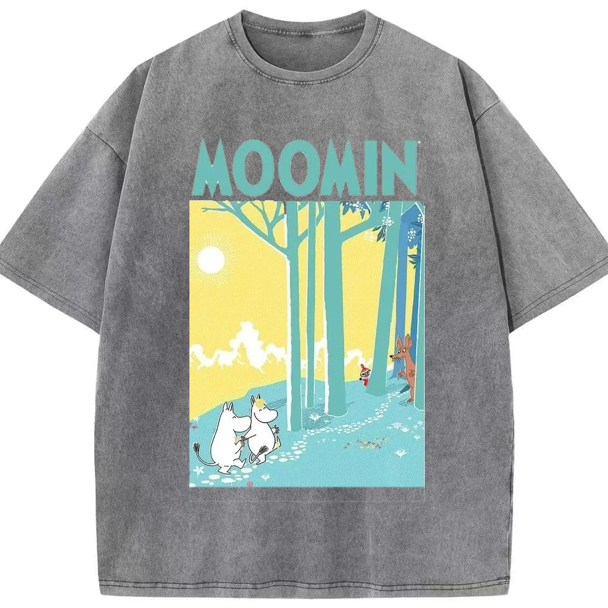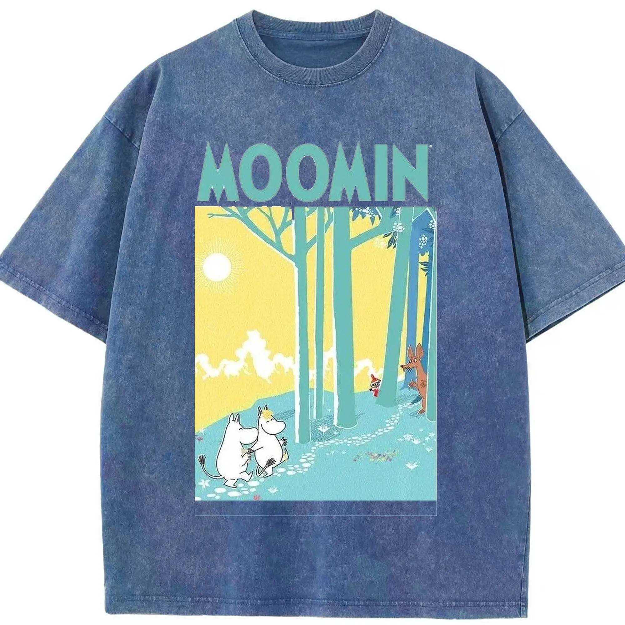 Moomin フィンランド絵本 森の中へ - 綿100% 半袖Tシャツ ・ フロントプリント ・ 快適 通気性 ・ 日常使い 散歩 スポーツ用
