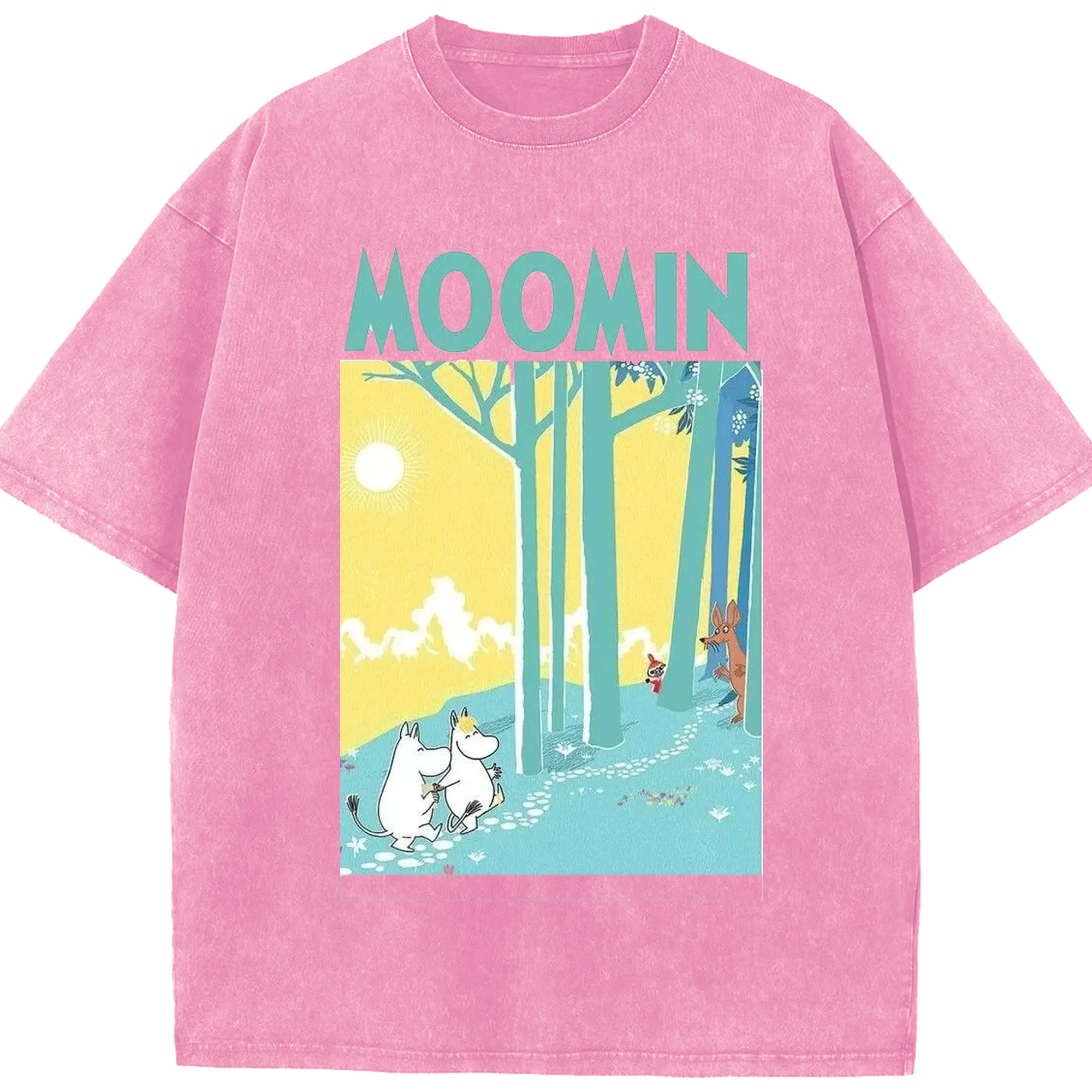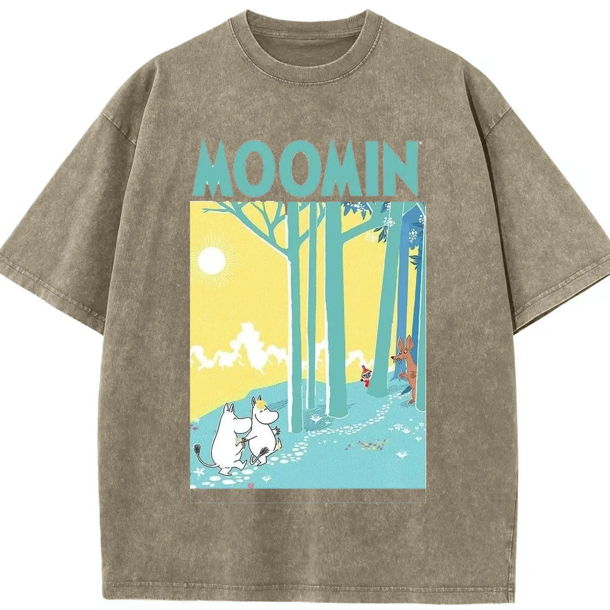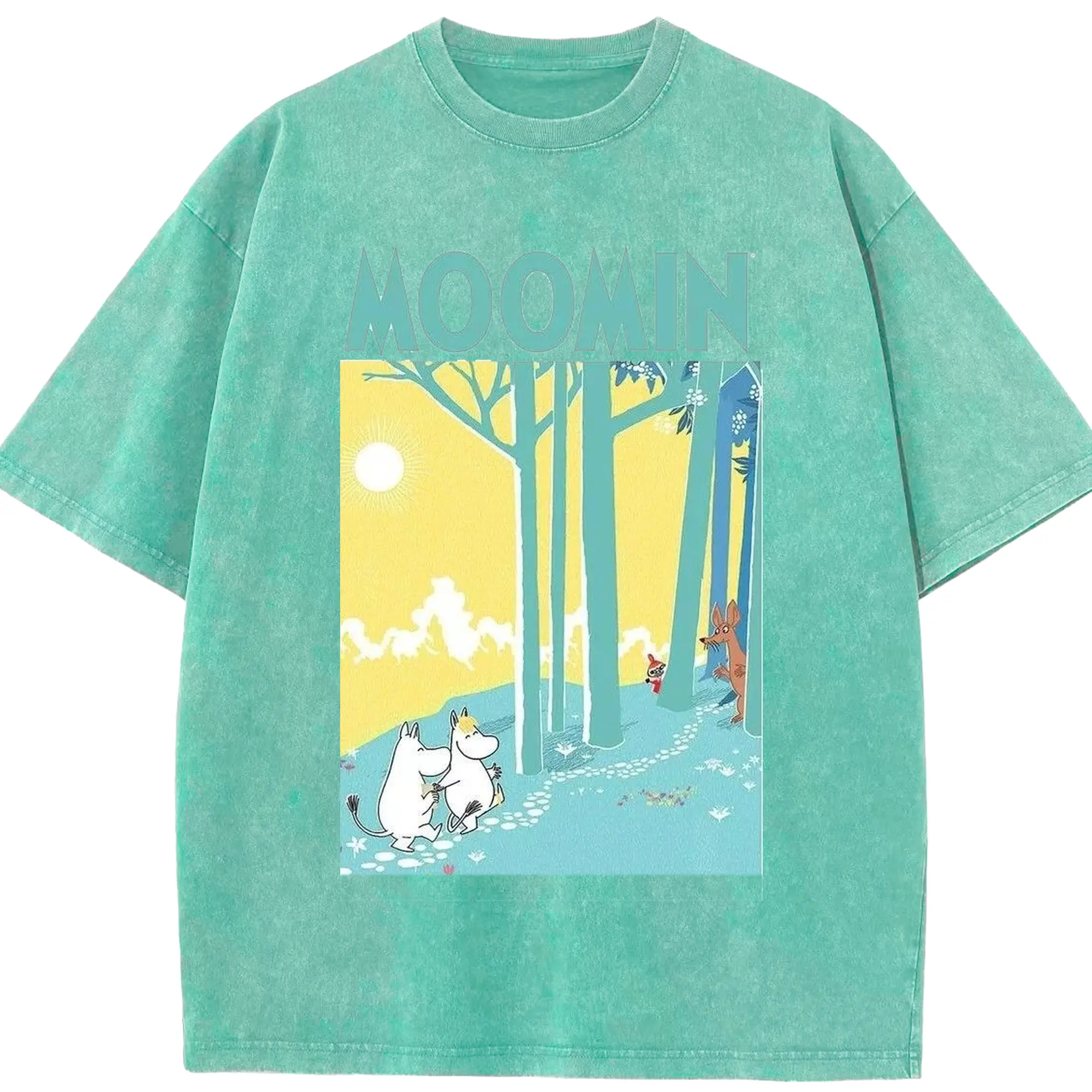 Moomin フィンランド絵本 森の中へ - 綿100% 半袖Tシャツ ・ フロントプリント ・ 快適 通気性 ・ 日常使い 散歩 スポーツ用