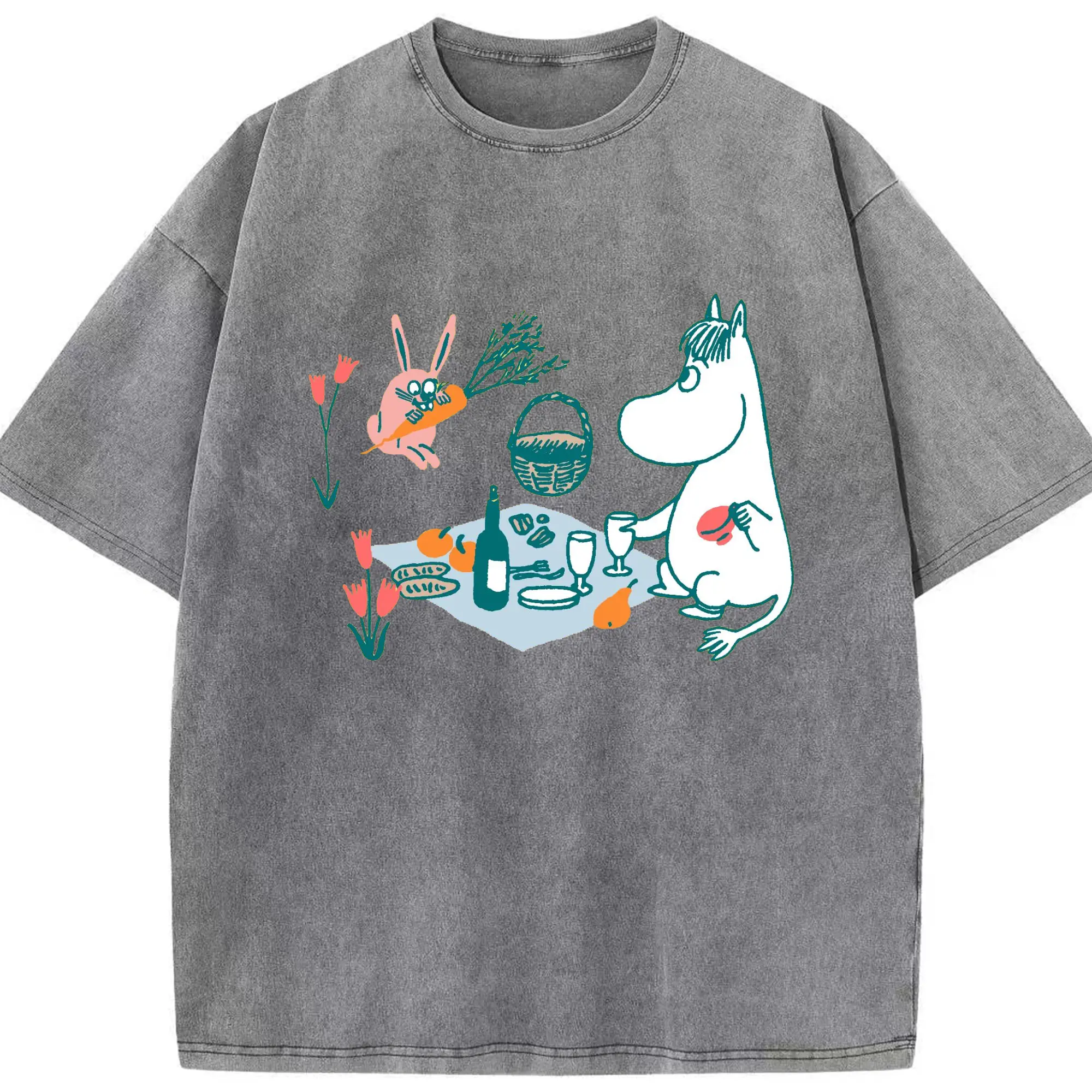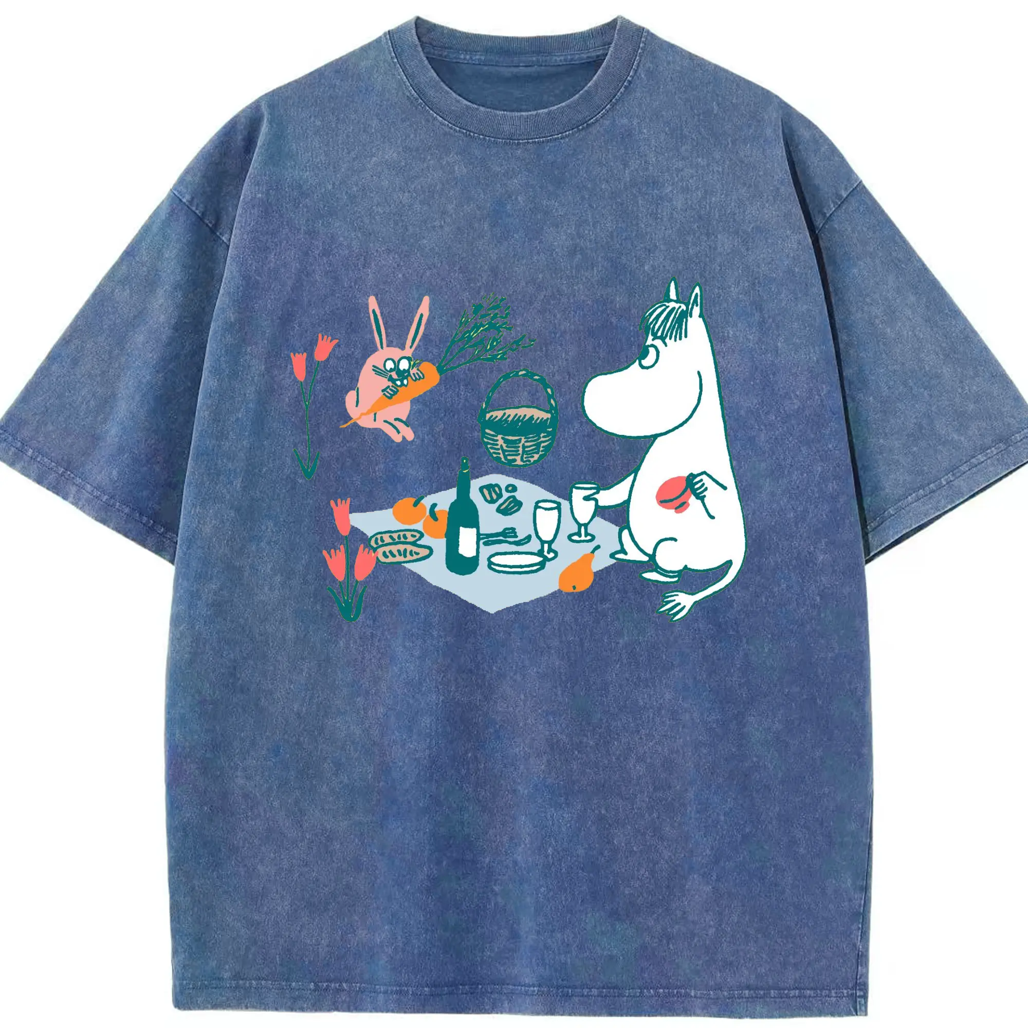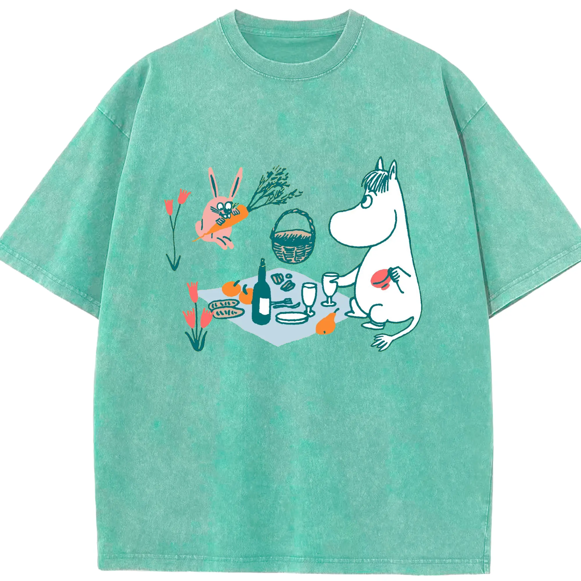 Moomin ムーミンとゆったり時間 - 綿100% 半袖Tシャツ ・ フロントプリント ・ 快適 通気性 ・ 日常使い 散歩 スポーツ用
