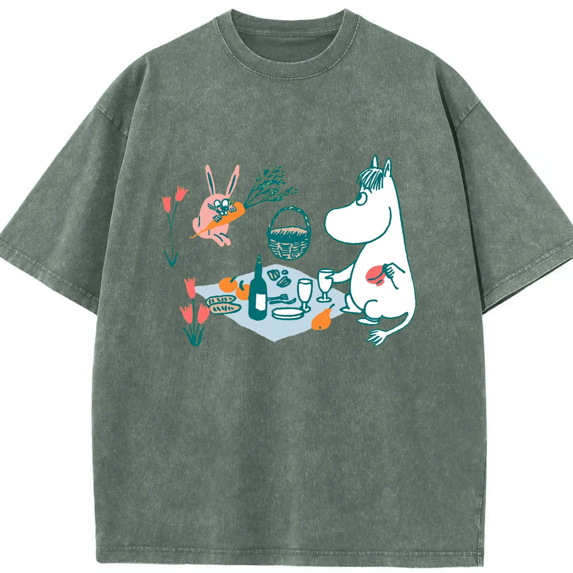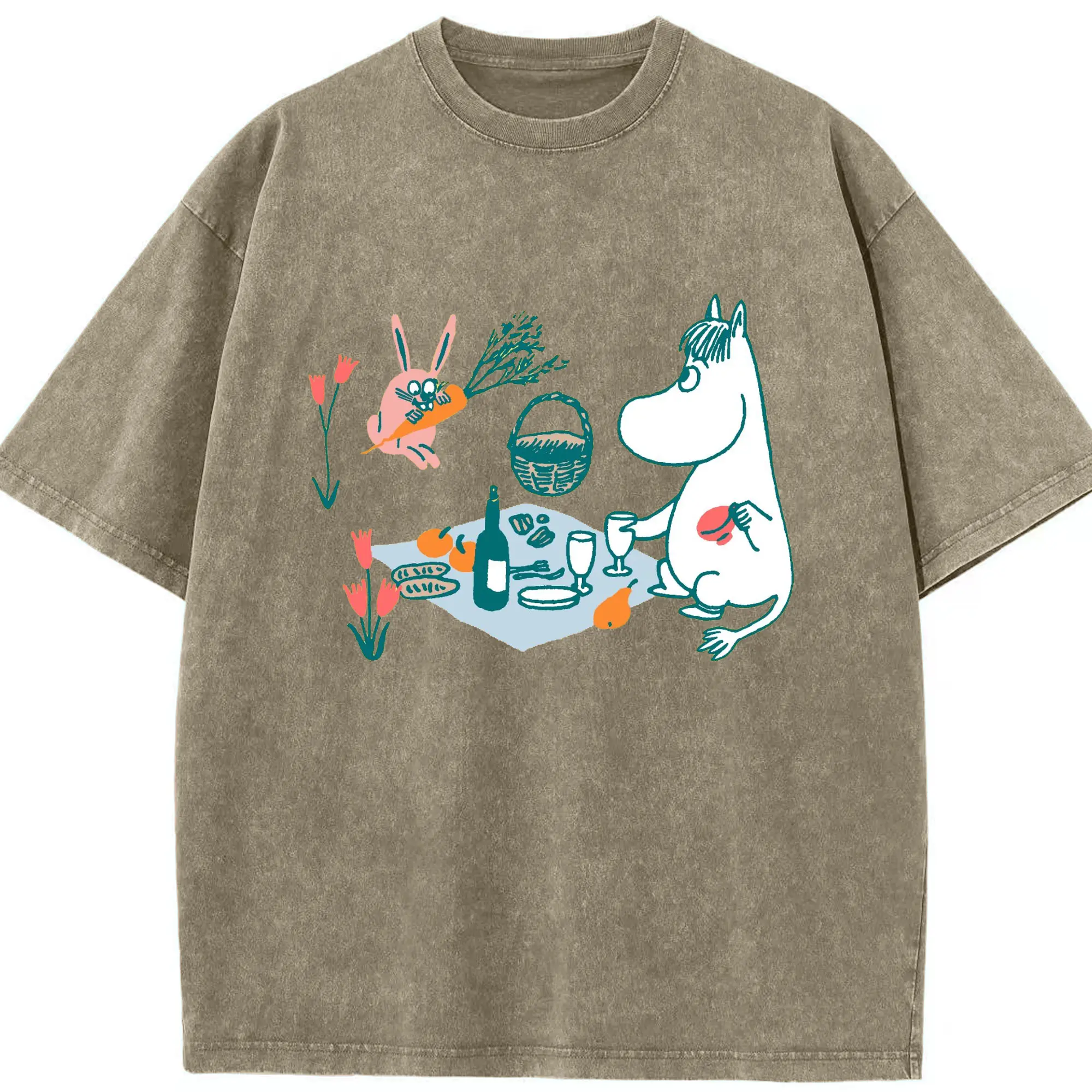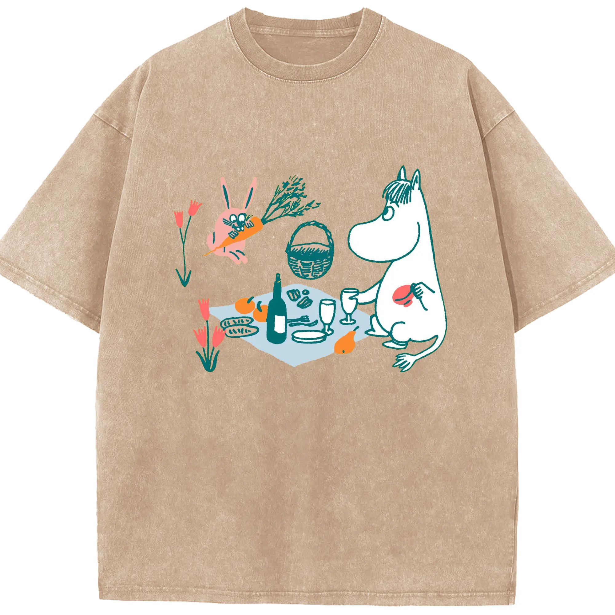 Moomin ムーミンとゆったり時間 - 綿100% 半袖Tシャツ ・ フロントプリント ・ 快適 通気性 ・ 日常使い 散歩 スポーツ用