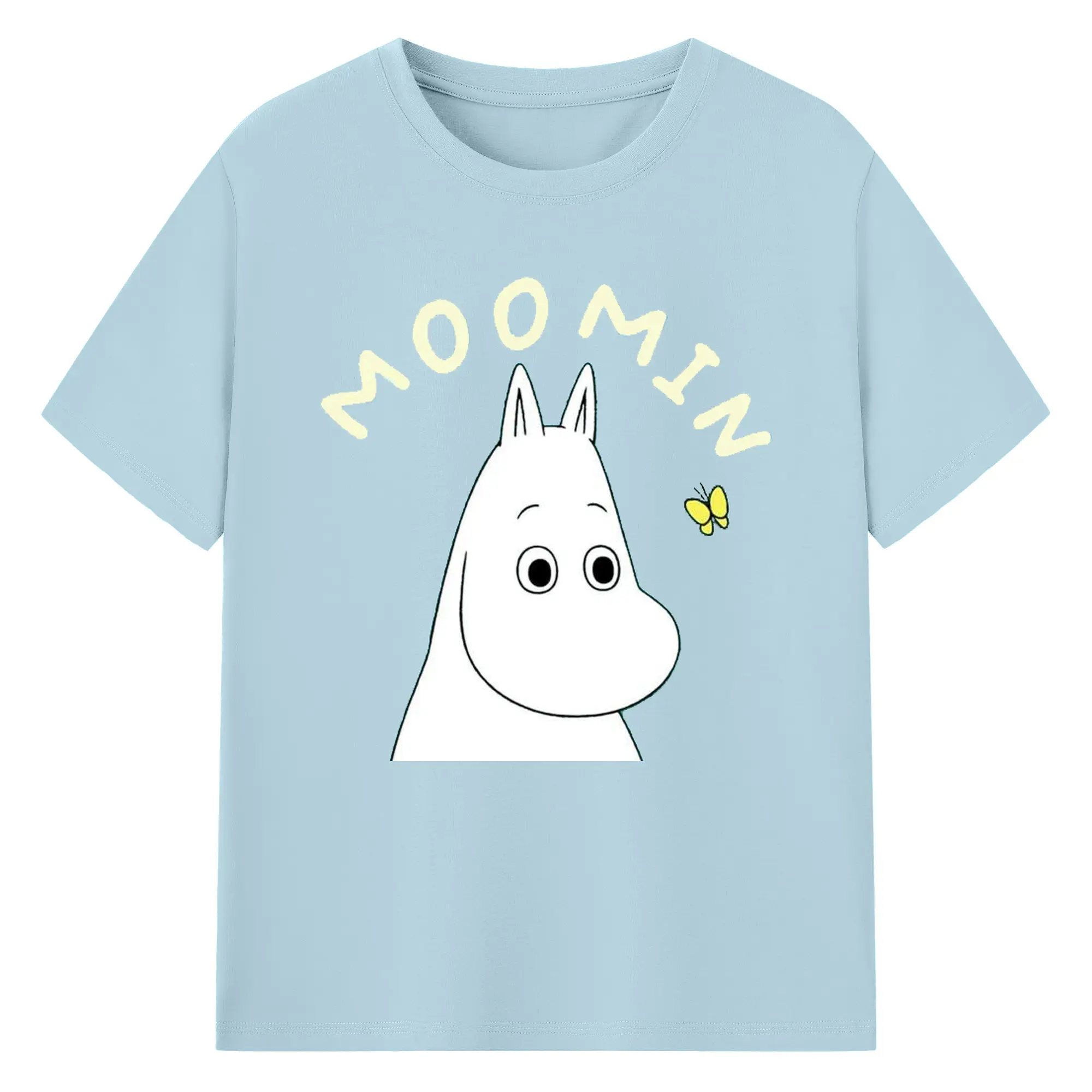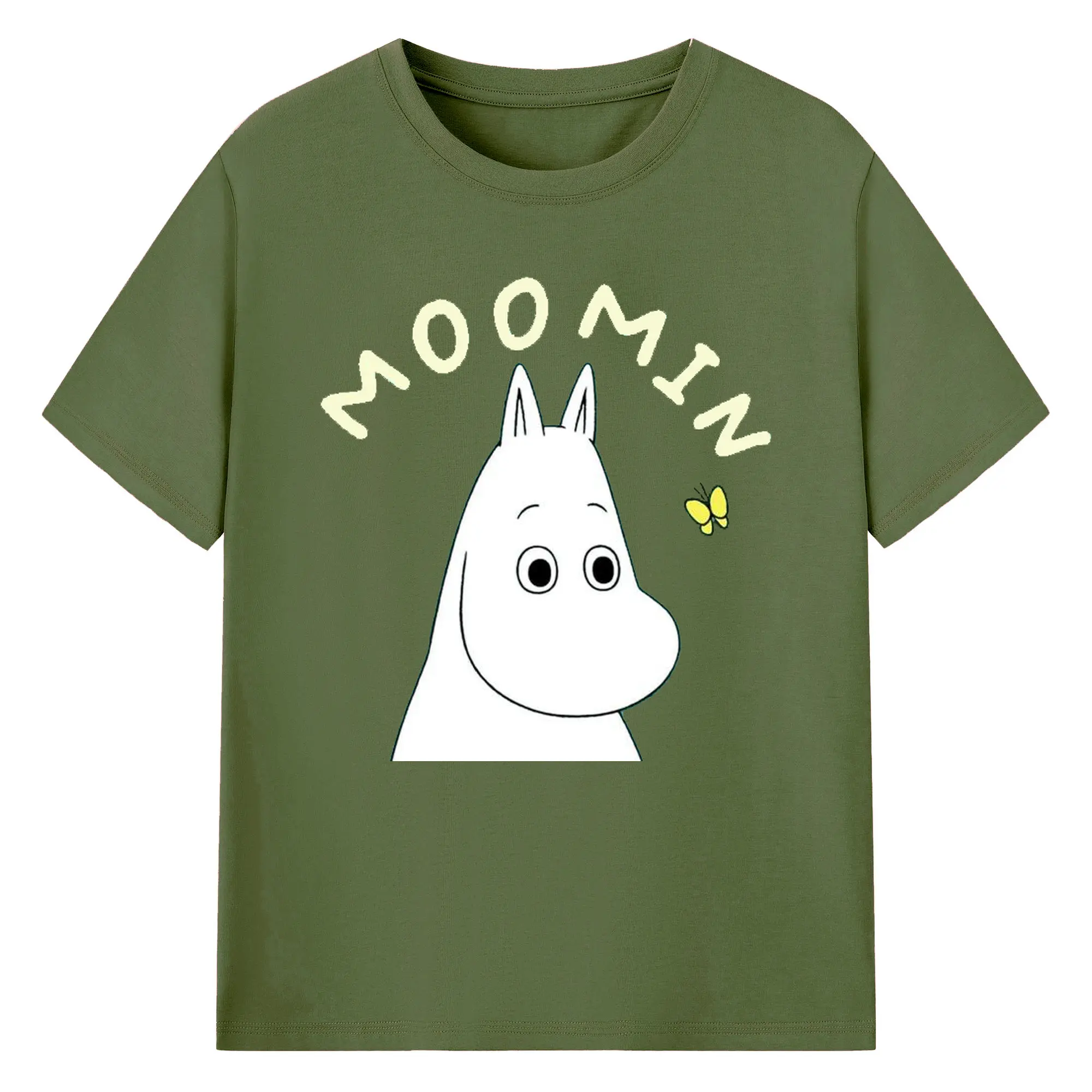 Moomin ムーミンと蝶の世界 - 綿100% ヴィンテージ風 半袖Tシャツ ・ フロントプリント ・ 柔らか肌触り ・ 通気性 快適 ・ スポーツ カジュアル 外出用