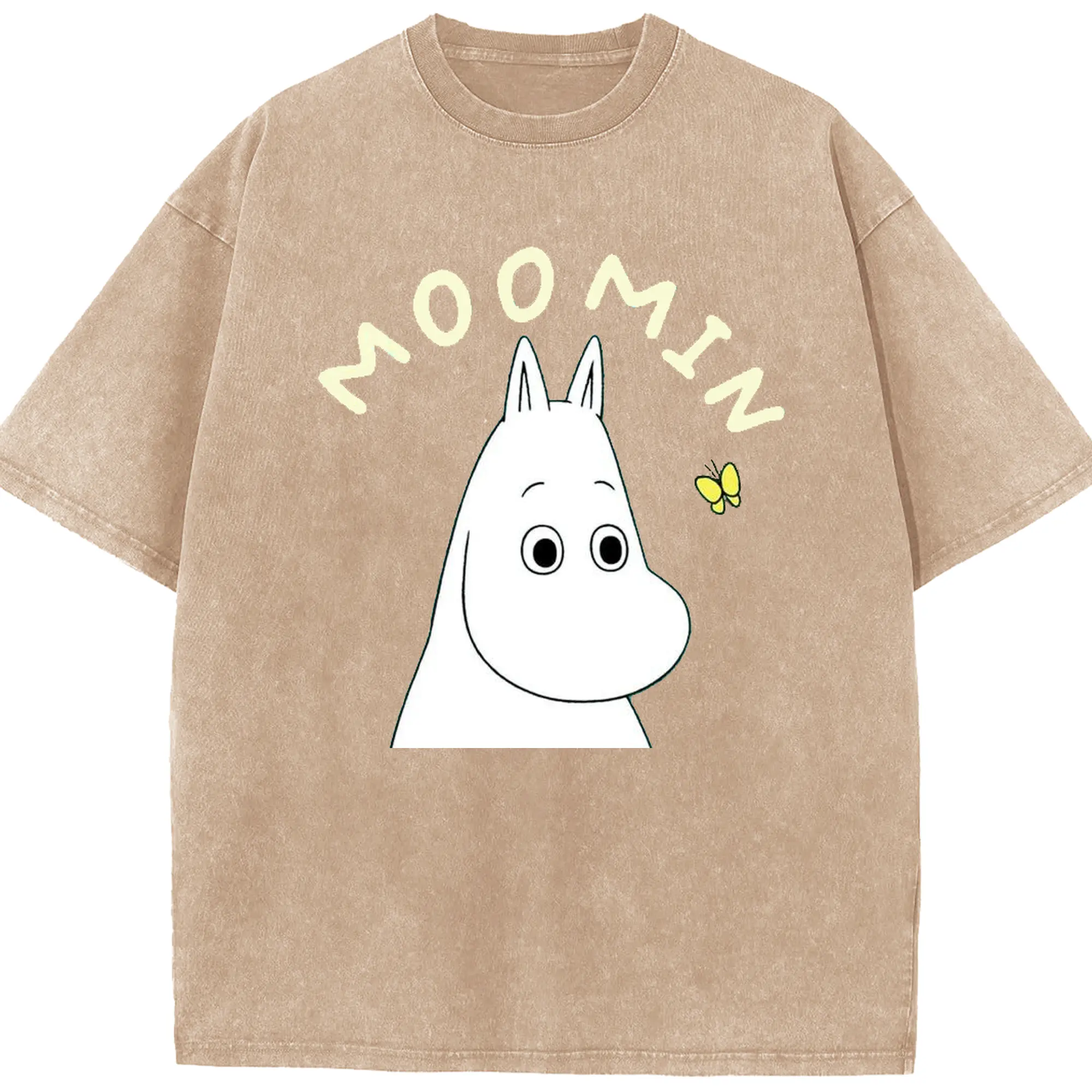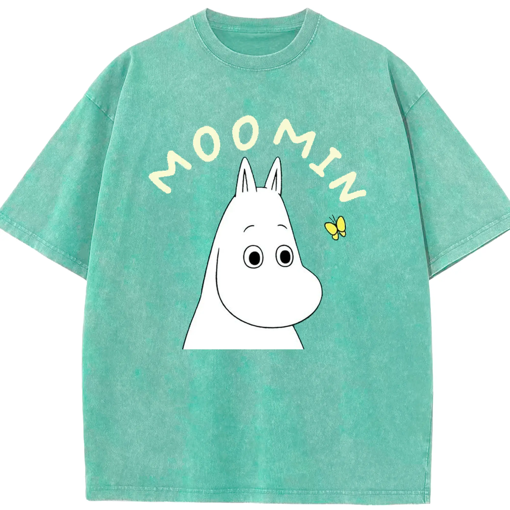 Moomin ムーミンと蝶の世界 - 綿100% 半袖Tシャツ ・ フロントプリント ・ 快適 通気性 ・ 日常使い 散歩 スポーツ用