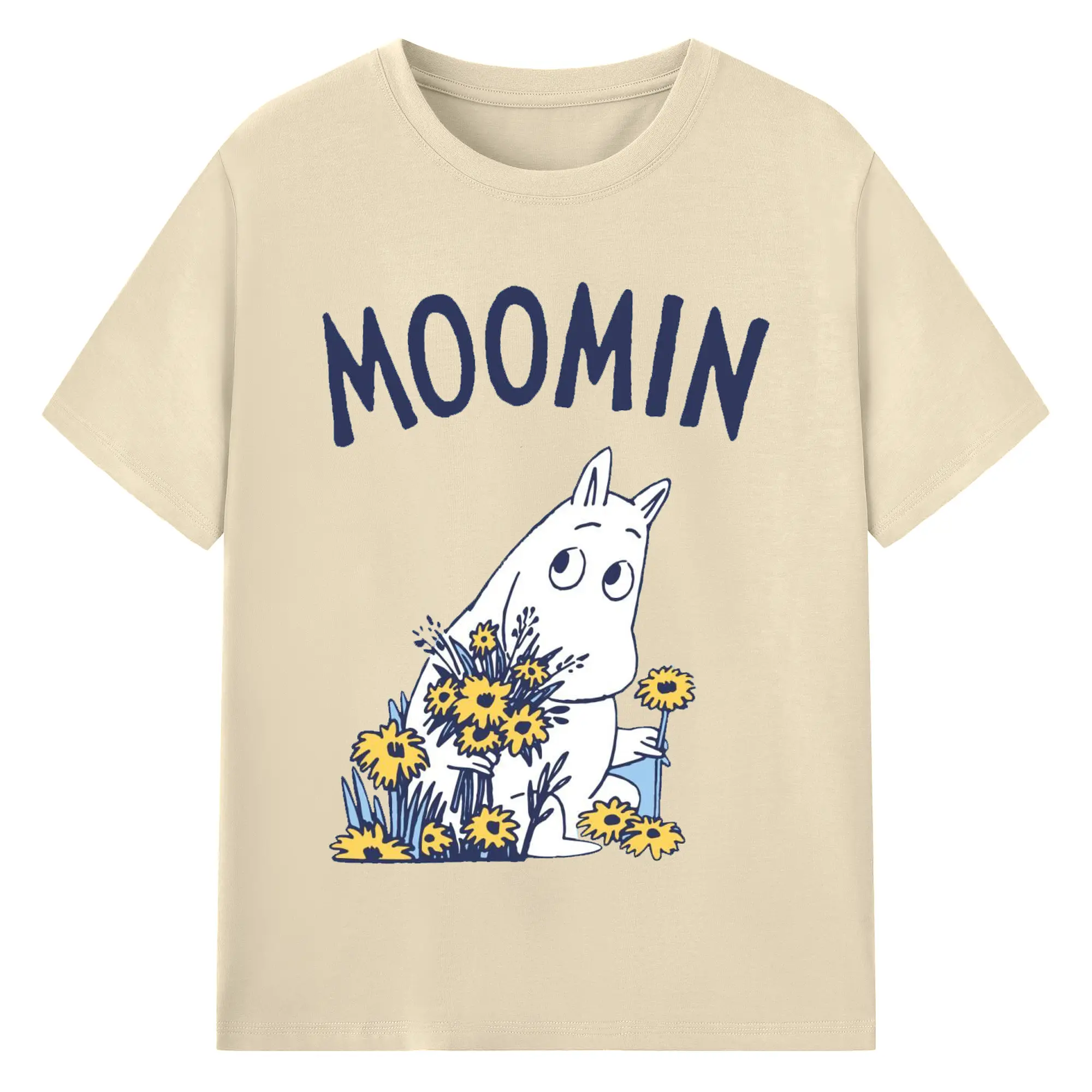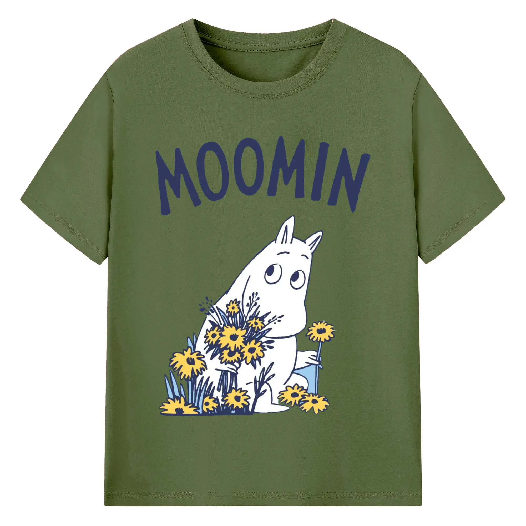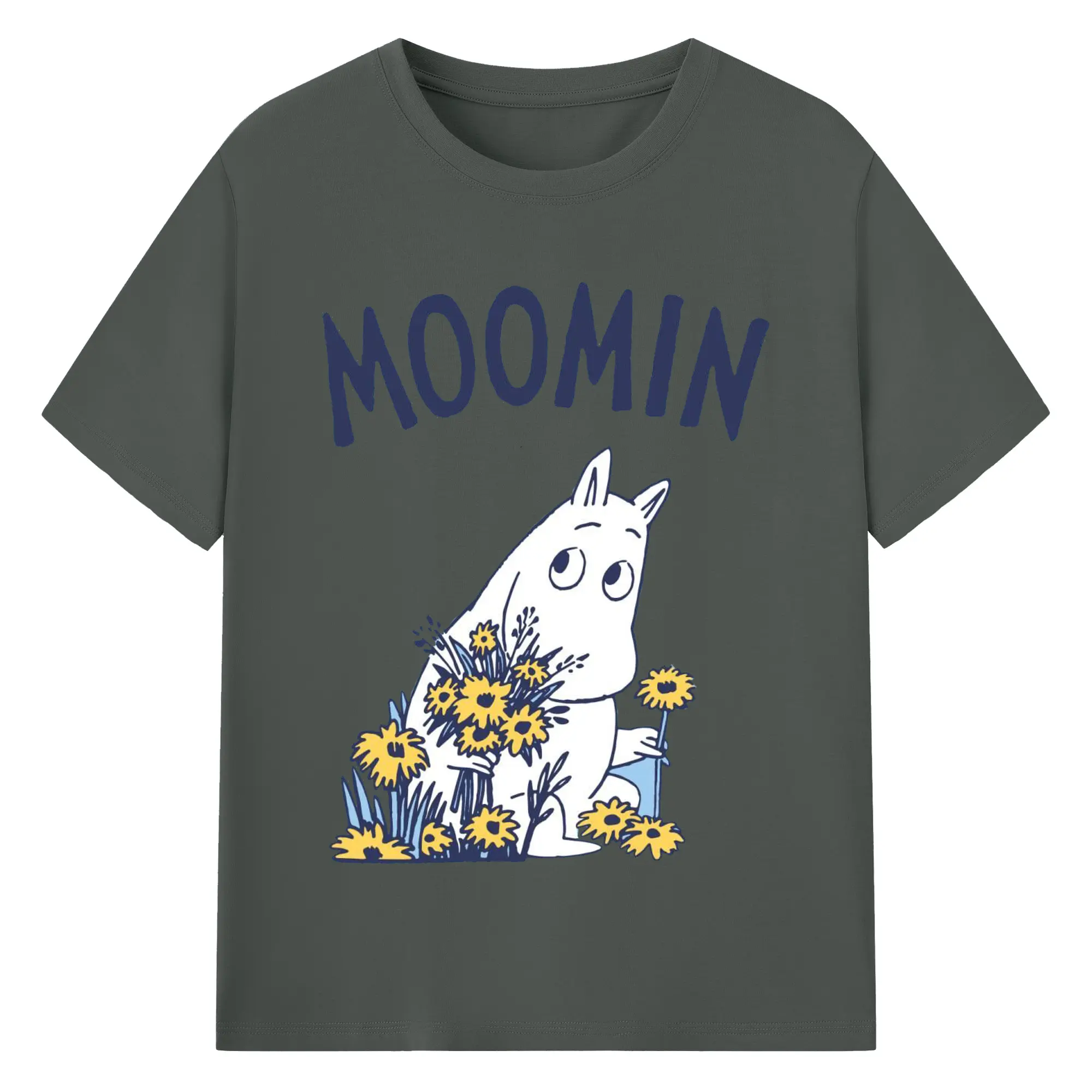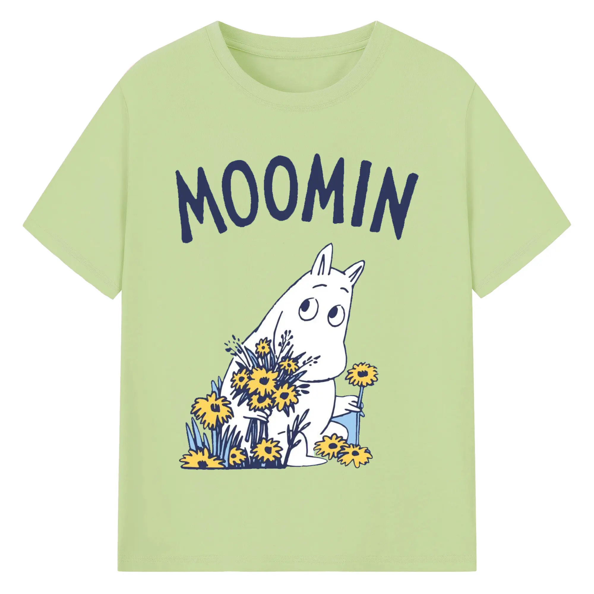 Moomin ムーミンの花と緑の世界 - 綿100% ヴィンテージ風 半袖Tシャツ ・ フロントプリント ・ 柔らか肌触り ・ 通気性 快適 ・ スポーツ カジュアル 外出用