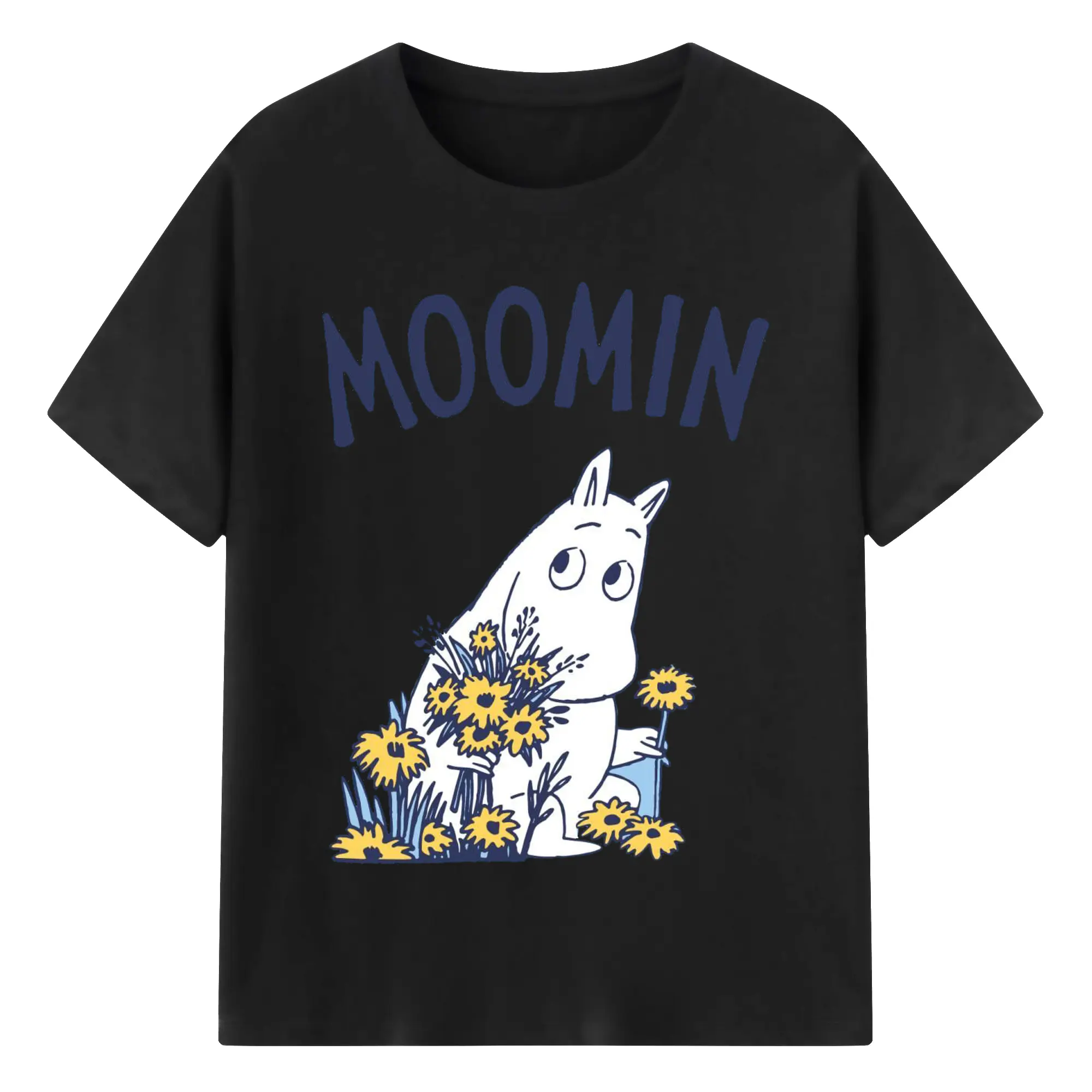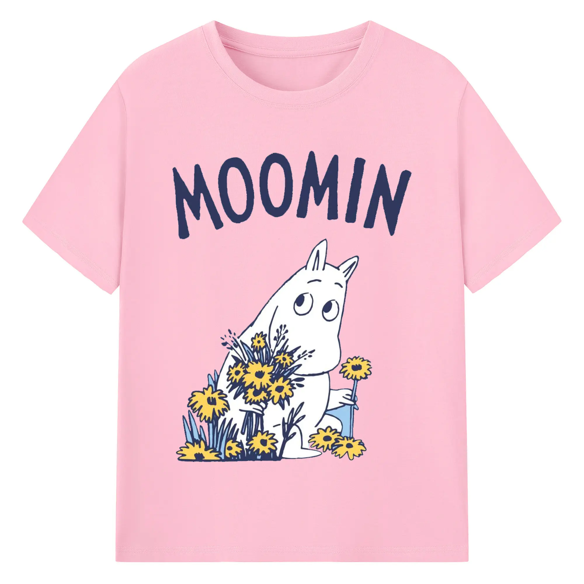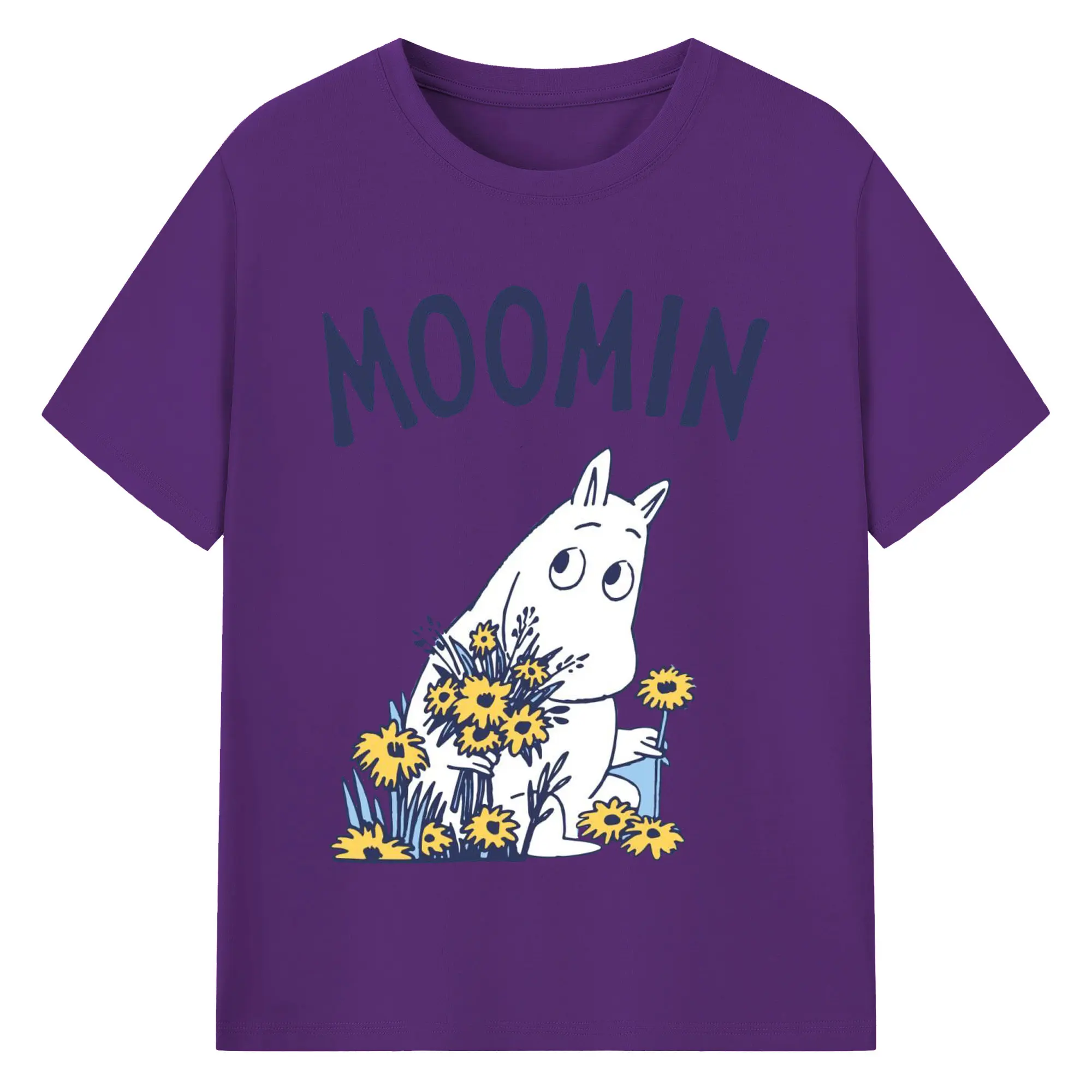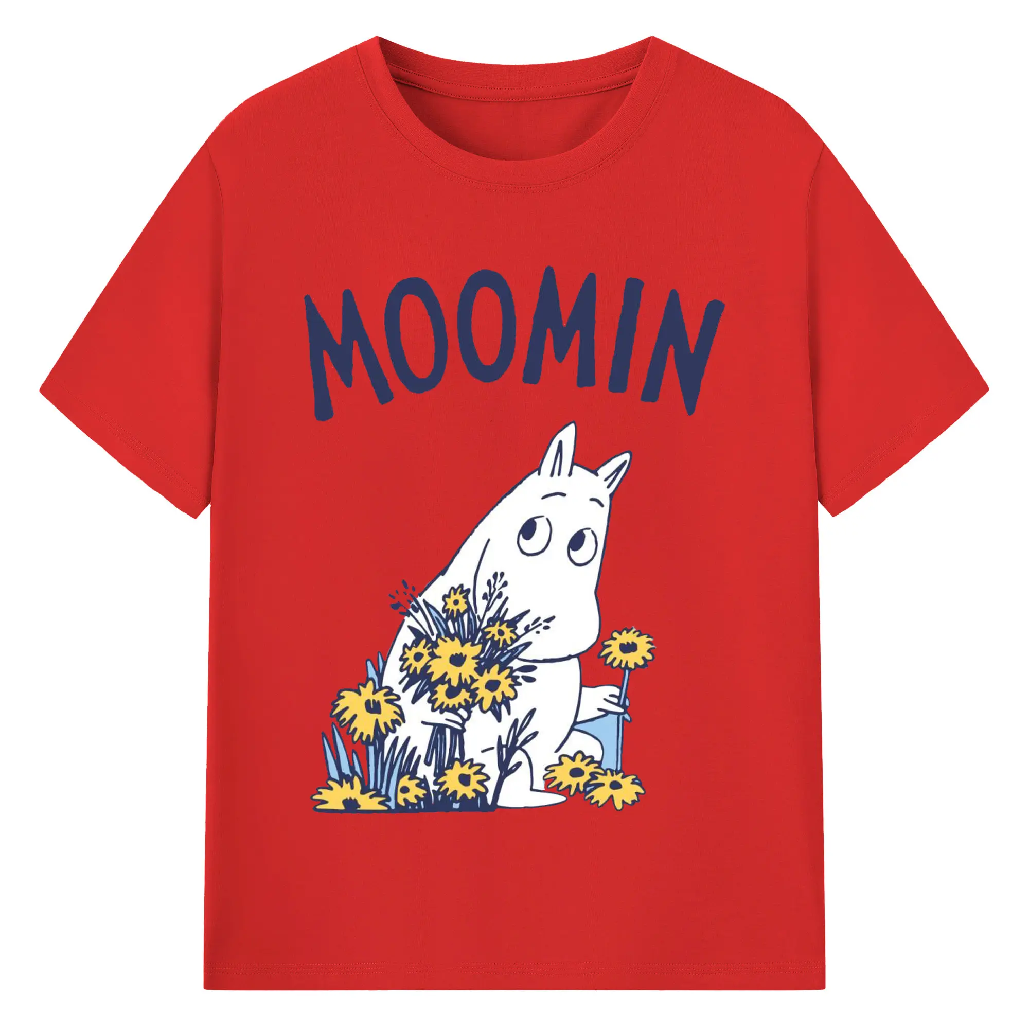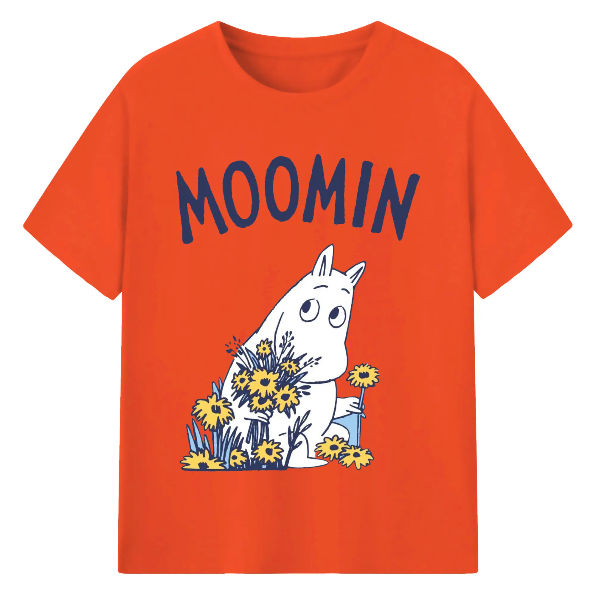 Moomin ムーミンの花と緑の世界 - 綿100% ヴィンテージ風 半袖Tシャツ ・ フロントプリント ・ 柔らか肌触り ・ 通気性 快適 ・ スポーツ カジュアル 外出用