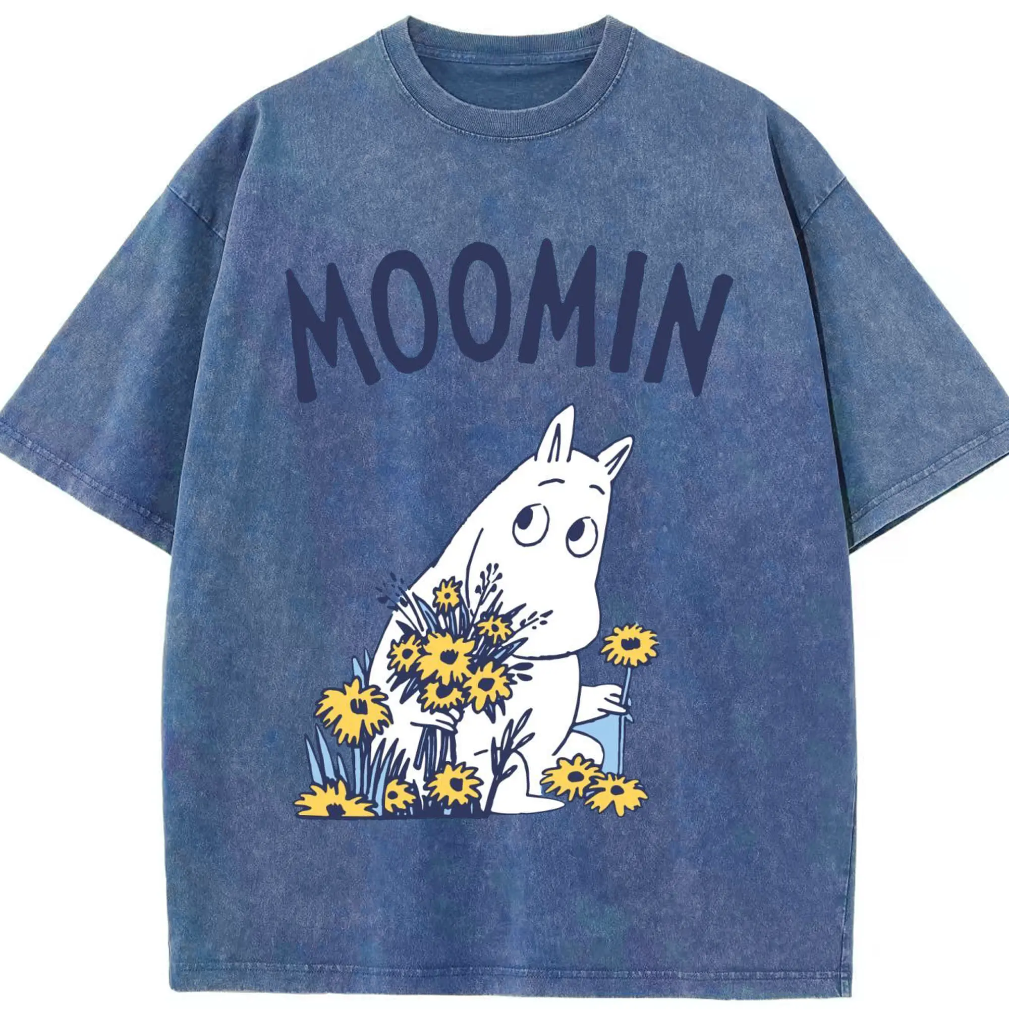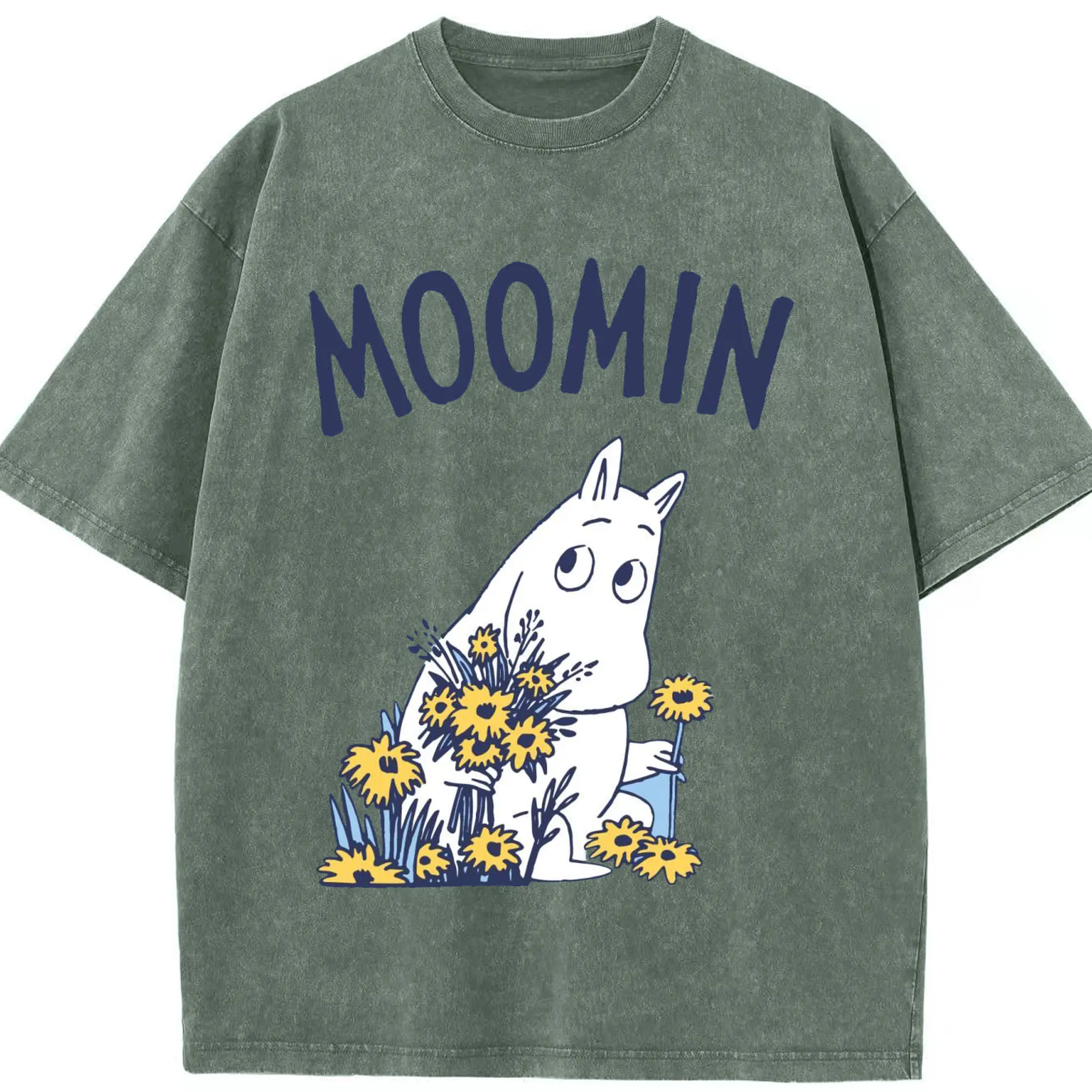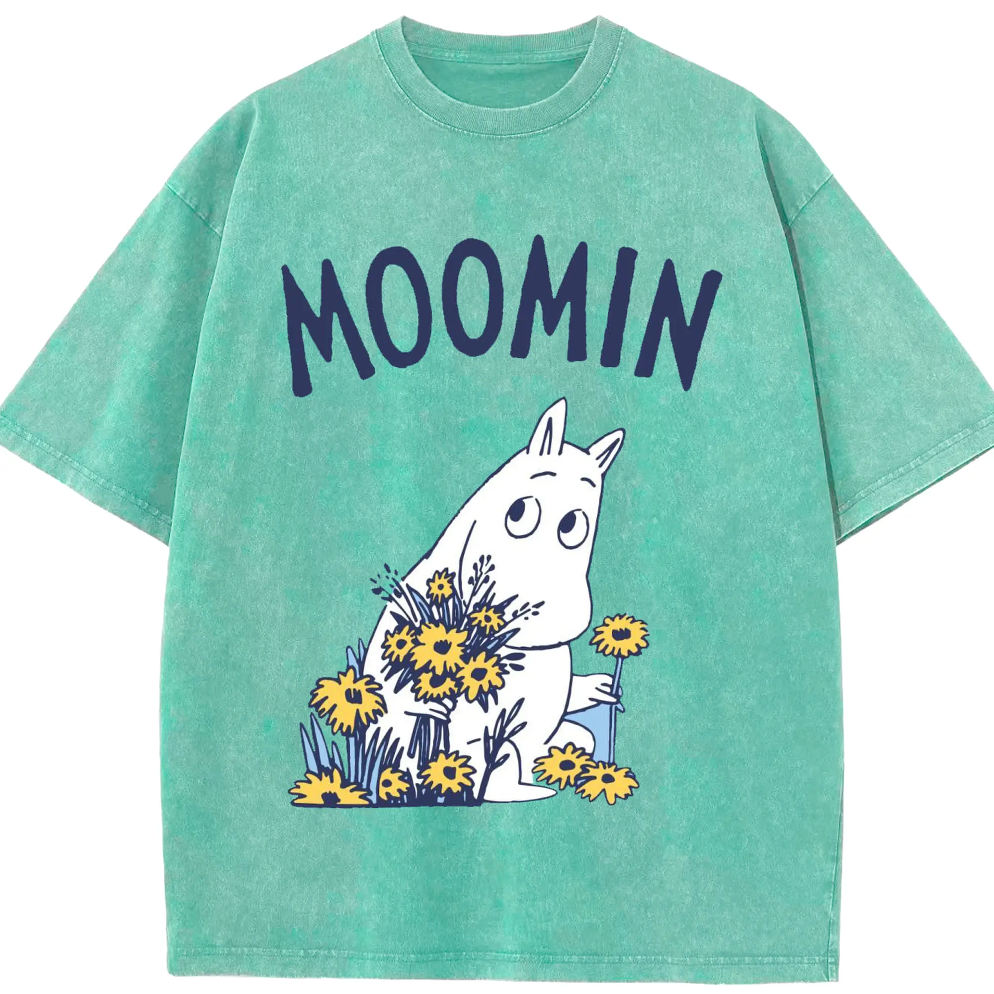 Moomin ムーミンの花と緑の世界 - 綿100% 半袖Tシャツ ・ フロントプリント ・ 快適 通気性 ・ 日常使い 散歩 スポーツ用