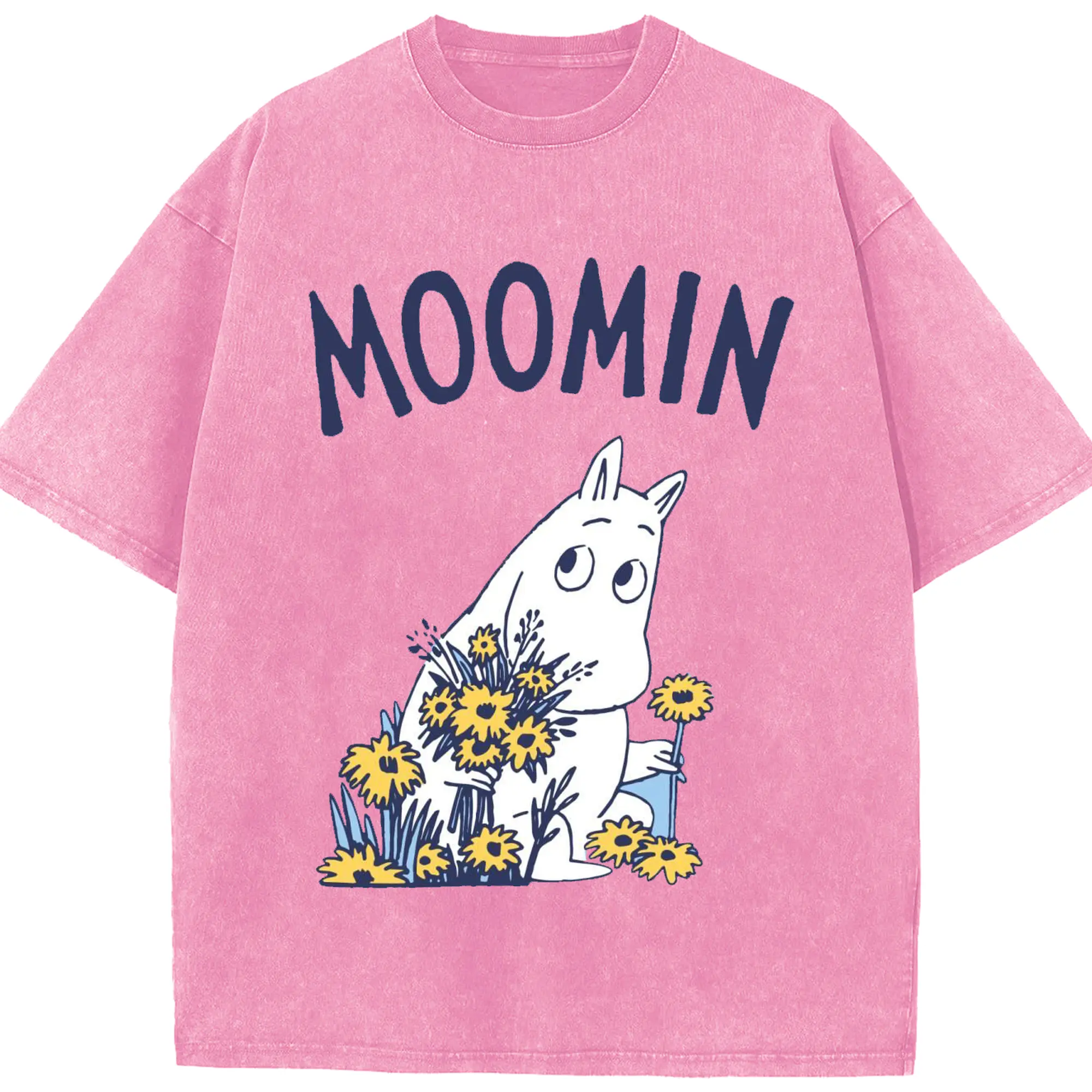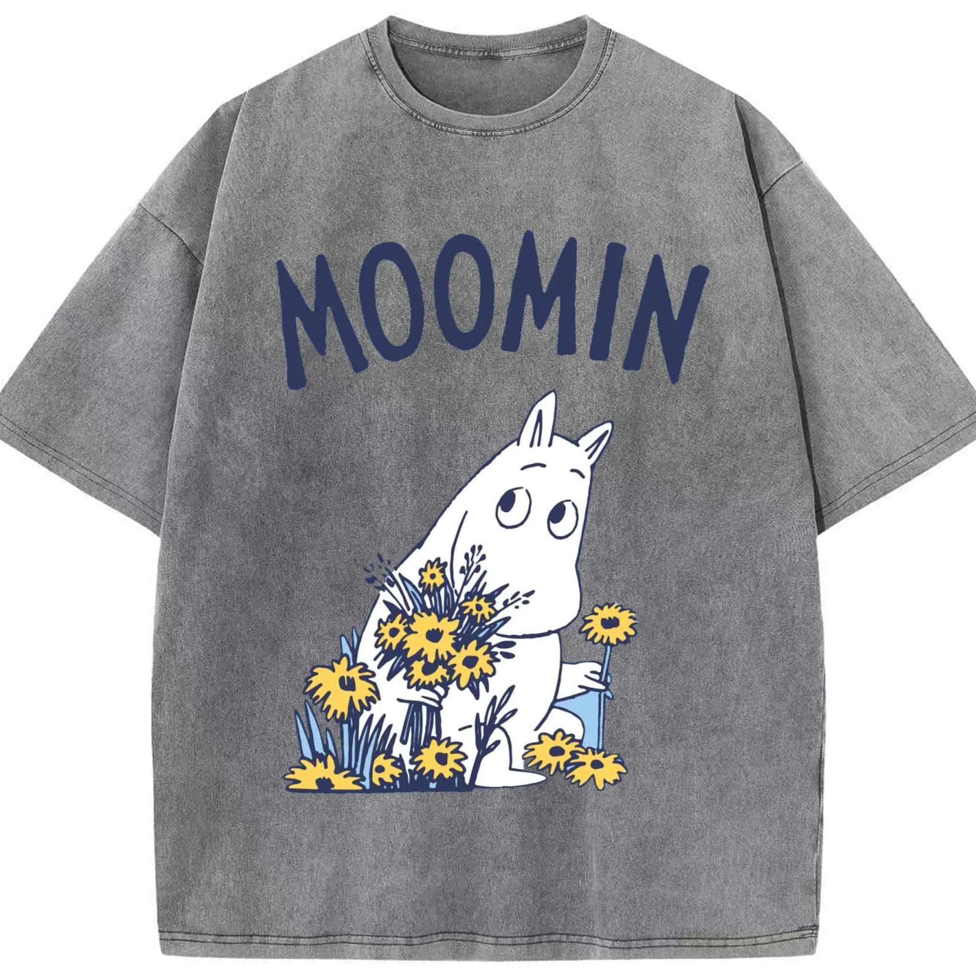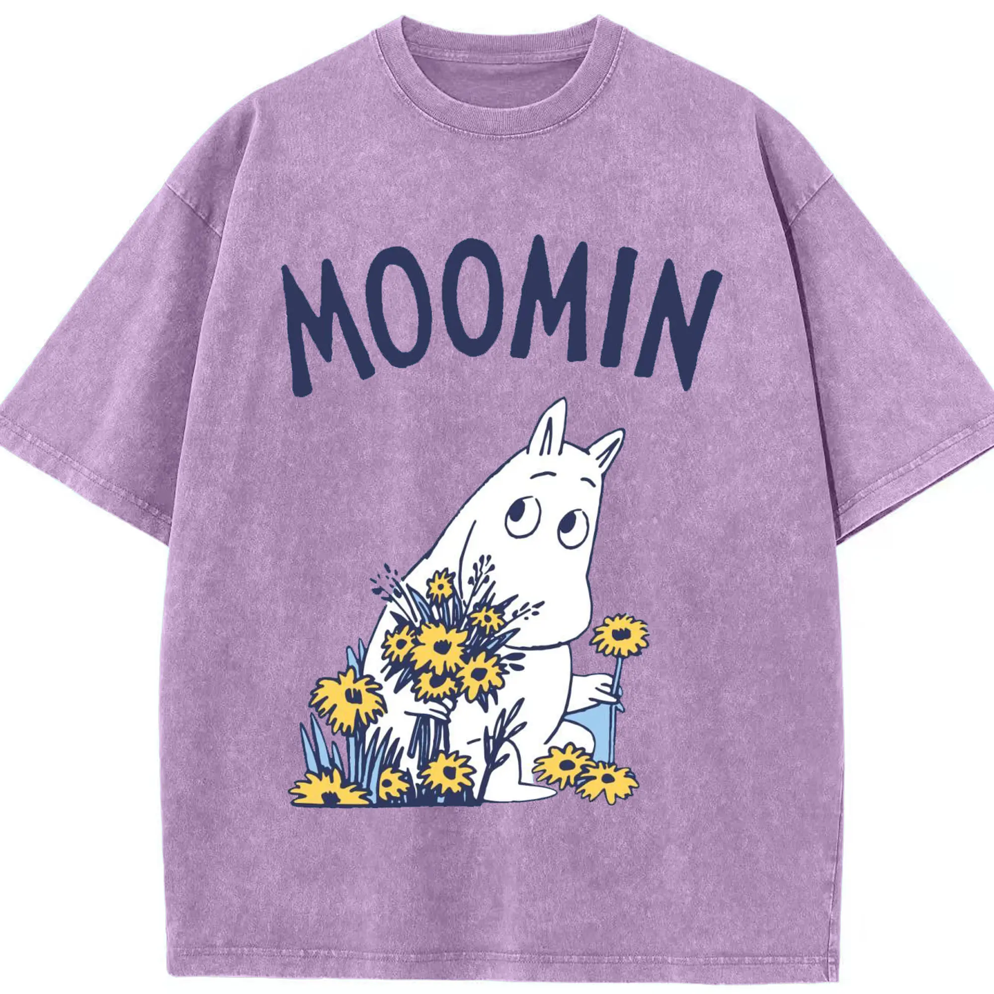 Moomin ムーミンの花と緑の世界 - 綿100% 半袖Tシャツ ・ フロントプリント ・ 快適 通気性 ・ 日常使い 散歩 スポーツ用