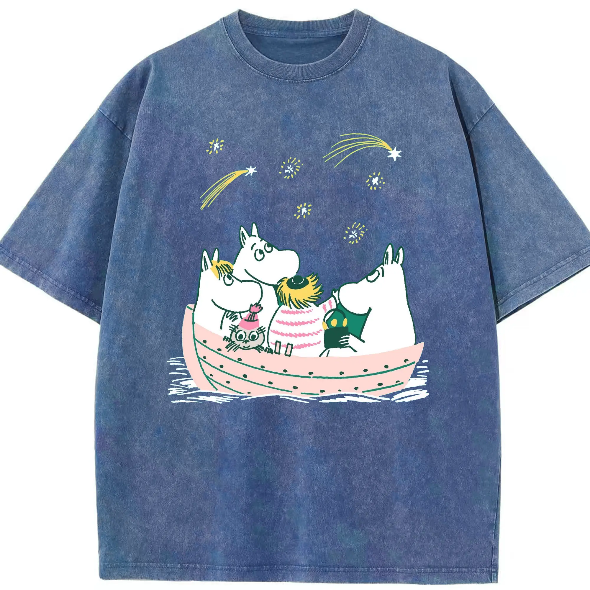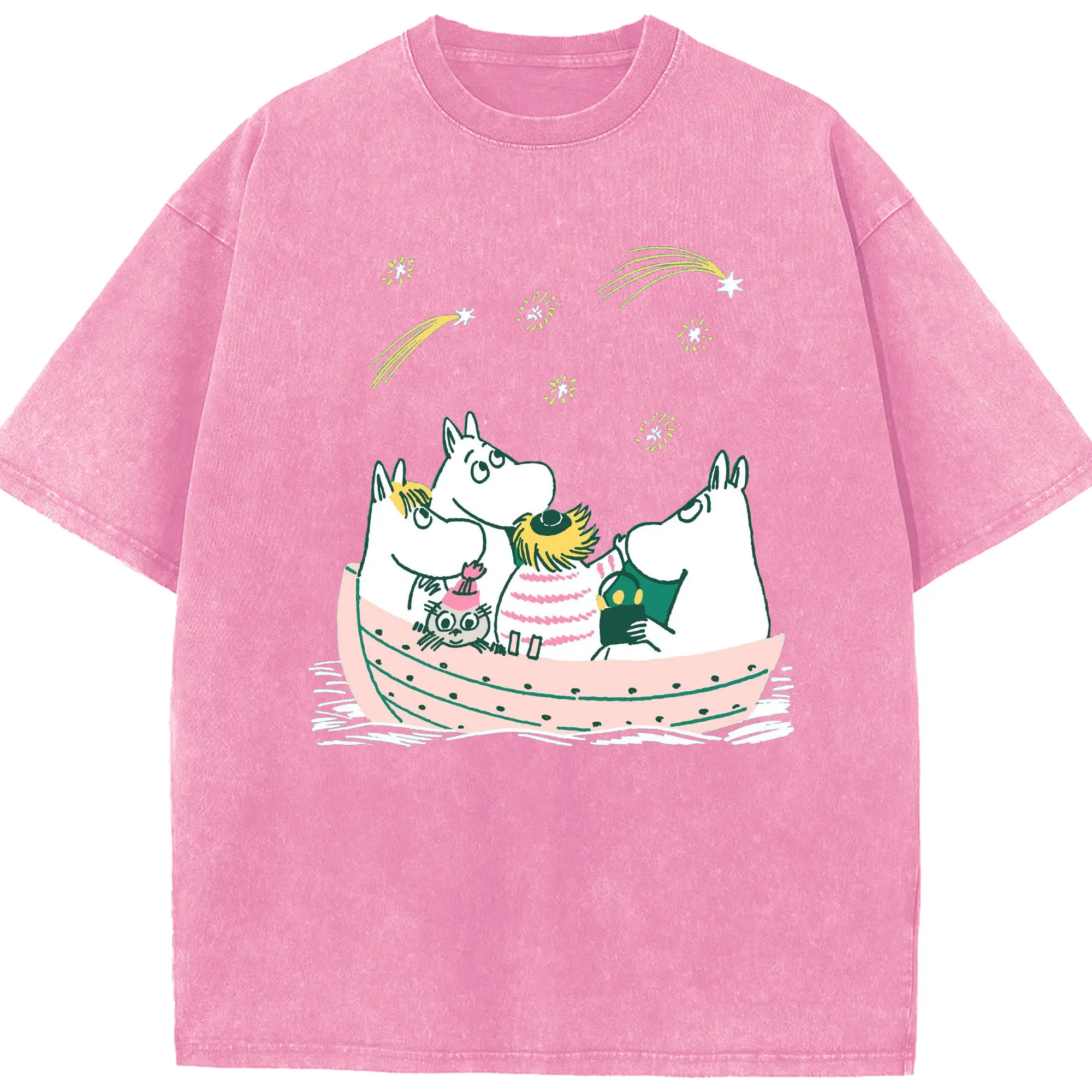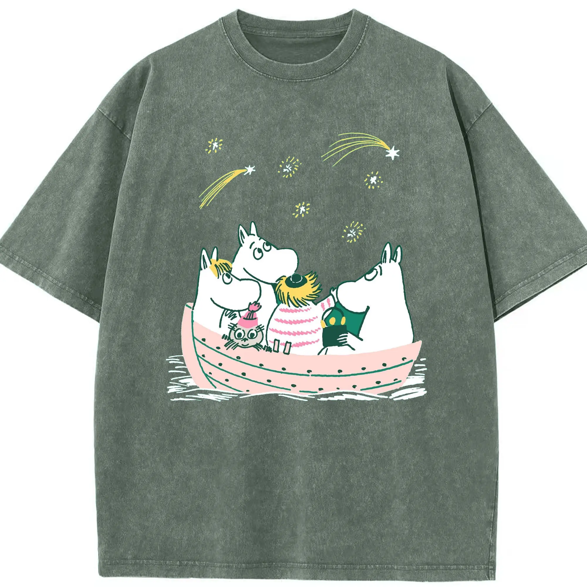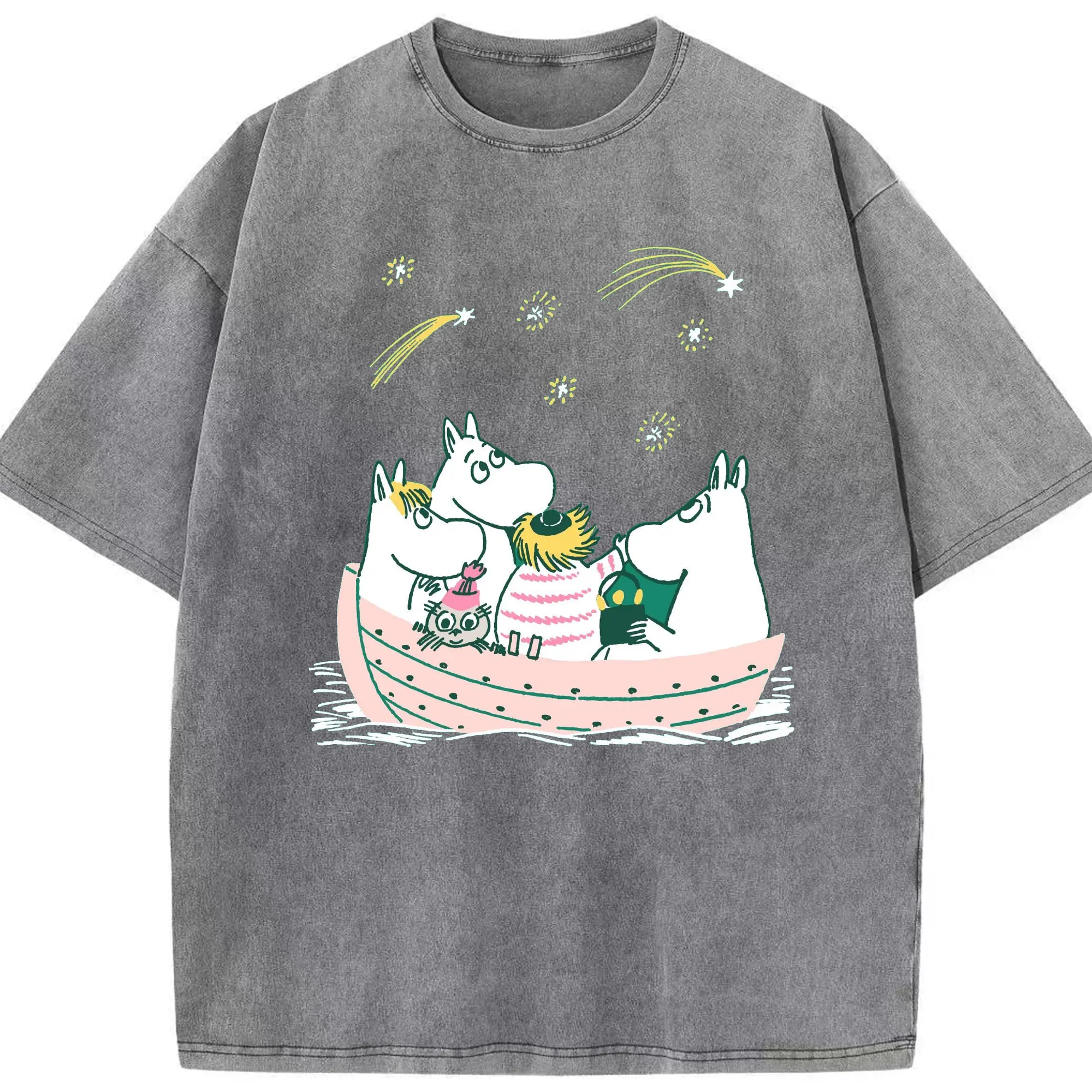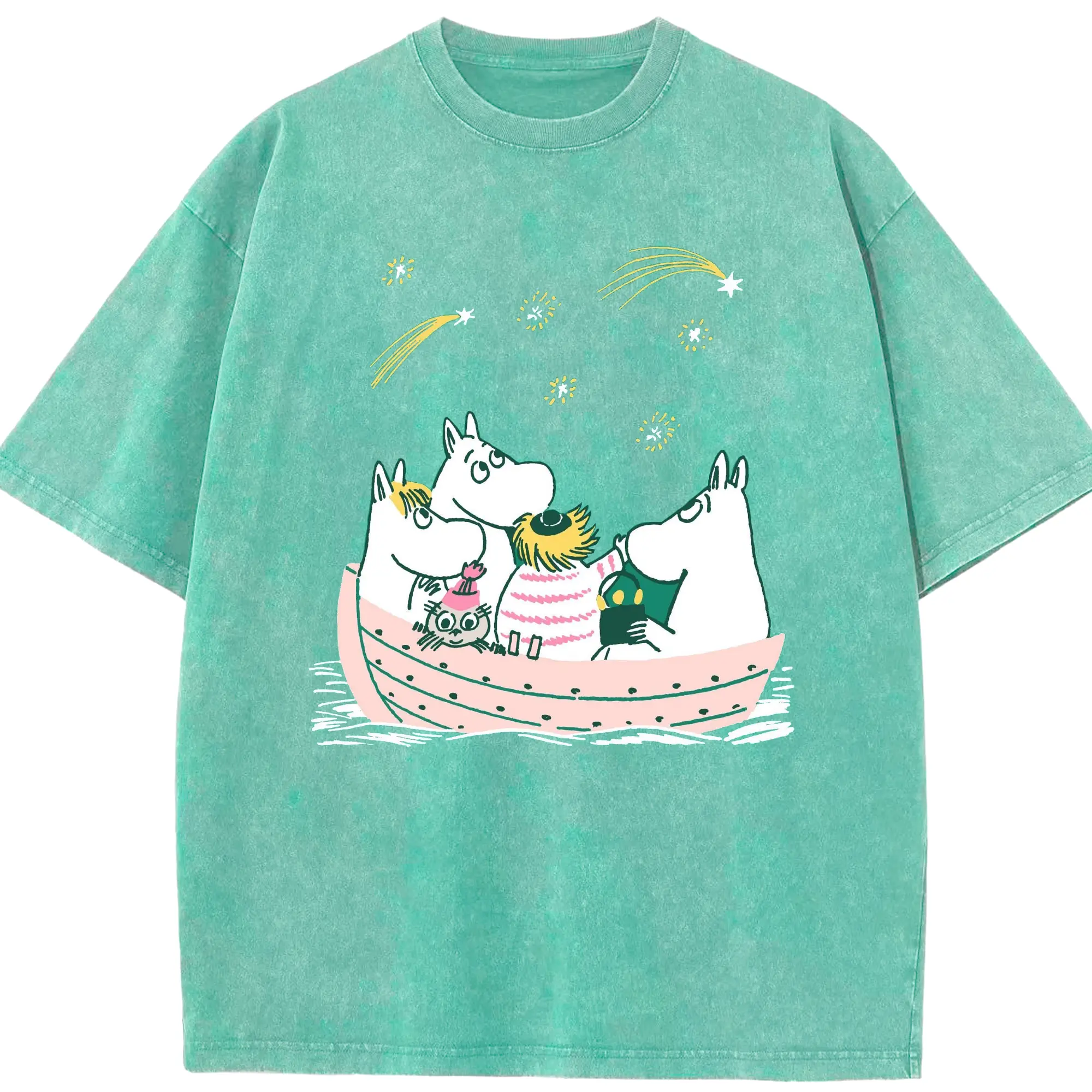 Moomin ムーミンコミックス ニョロニョロ - 綿100% 半袖Tシャツ ・ フロントプリント ・ 快適 通気性 ・ 日常使い 散歩 スポーツ用