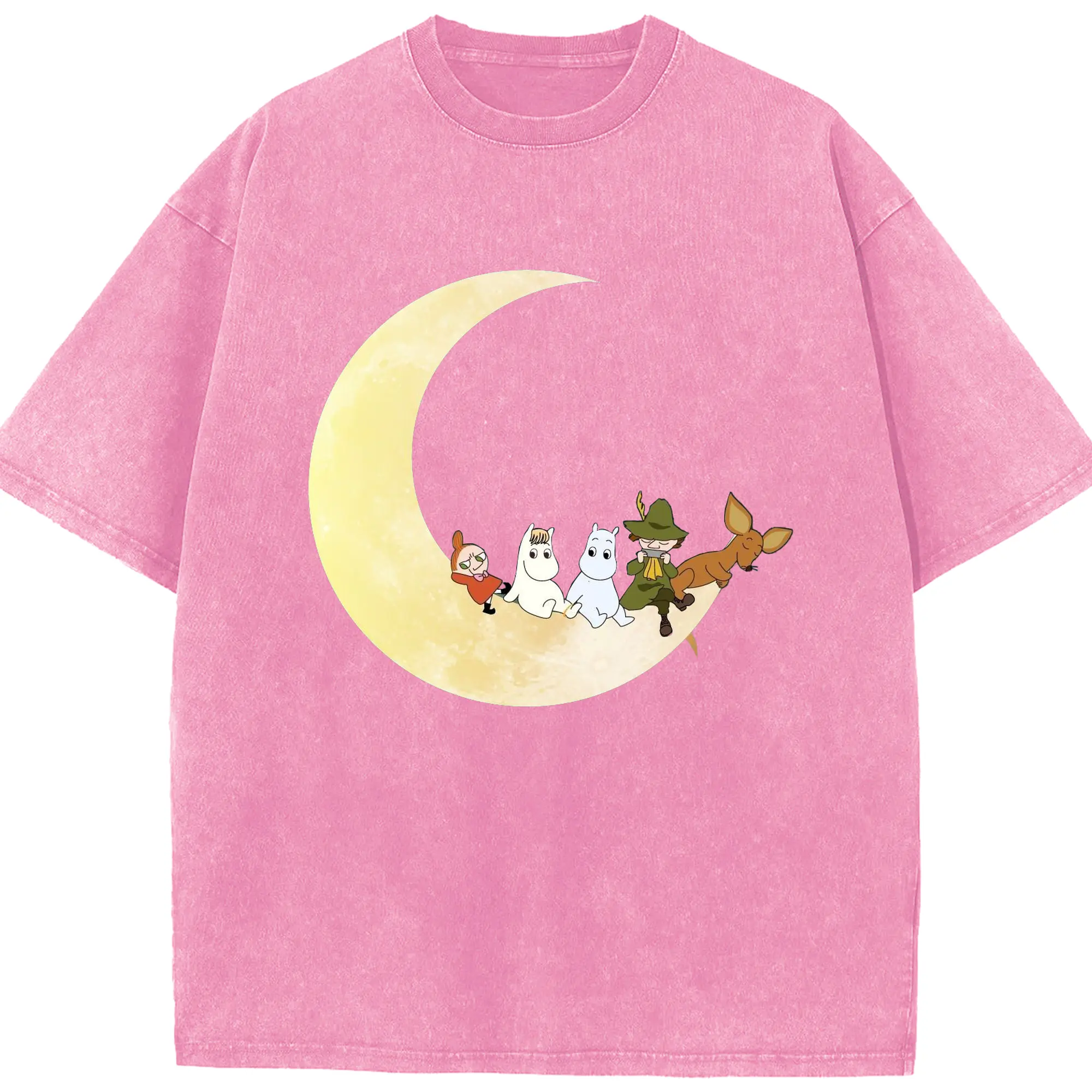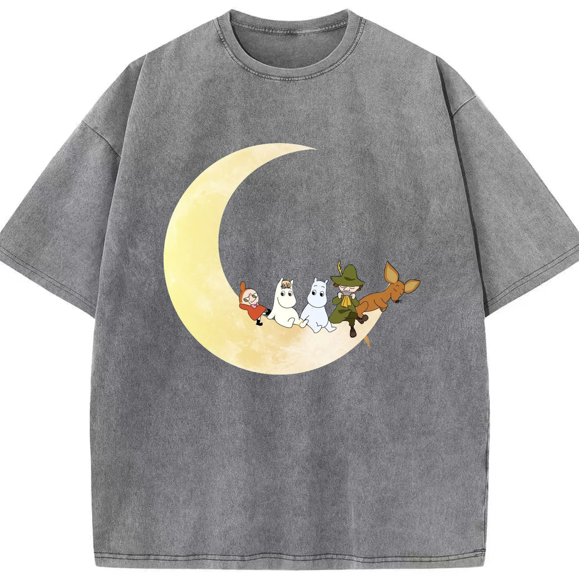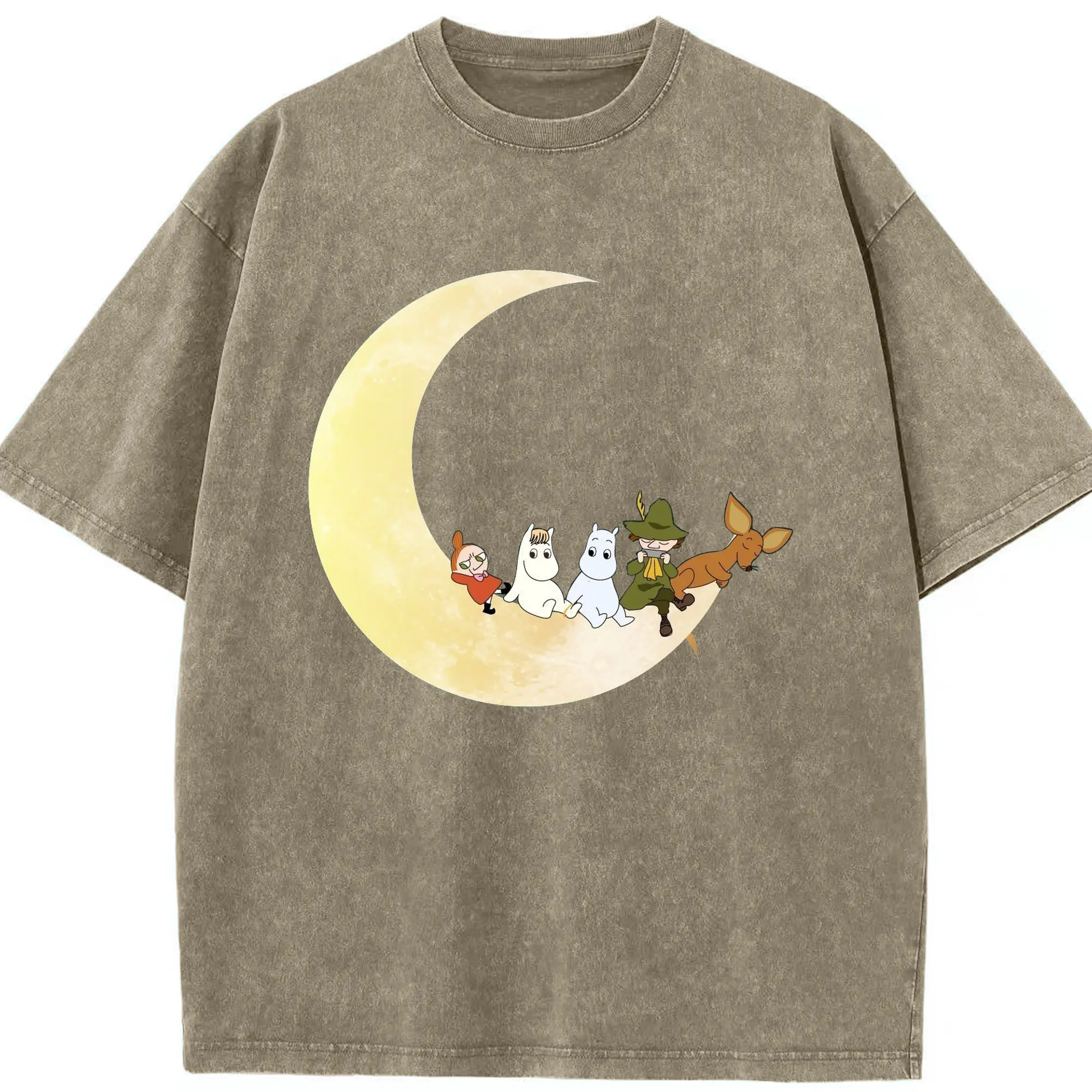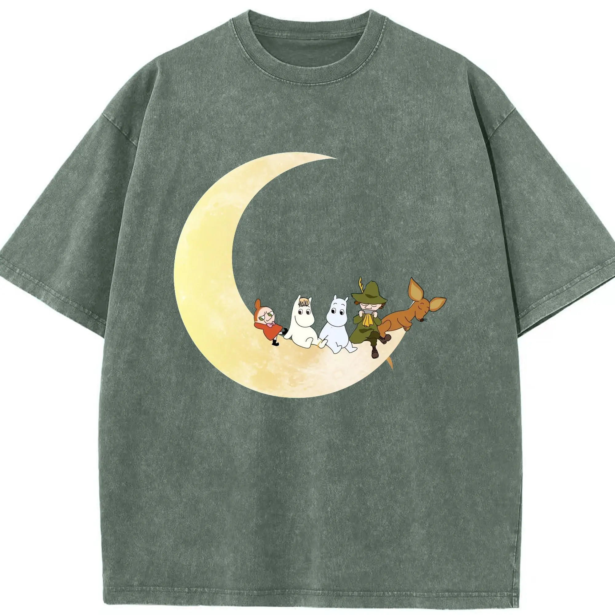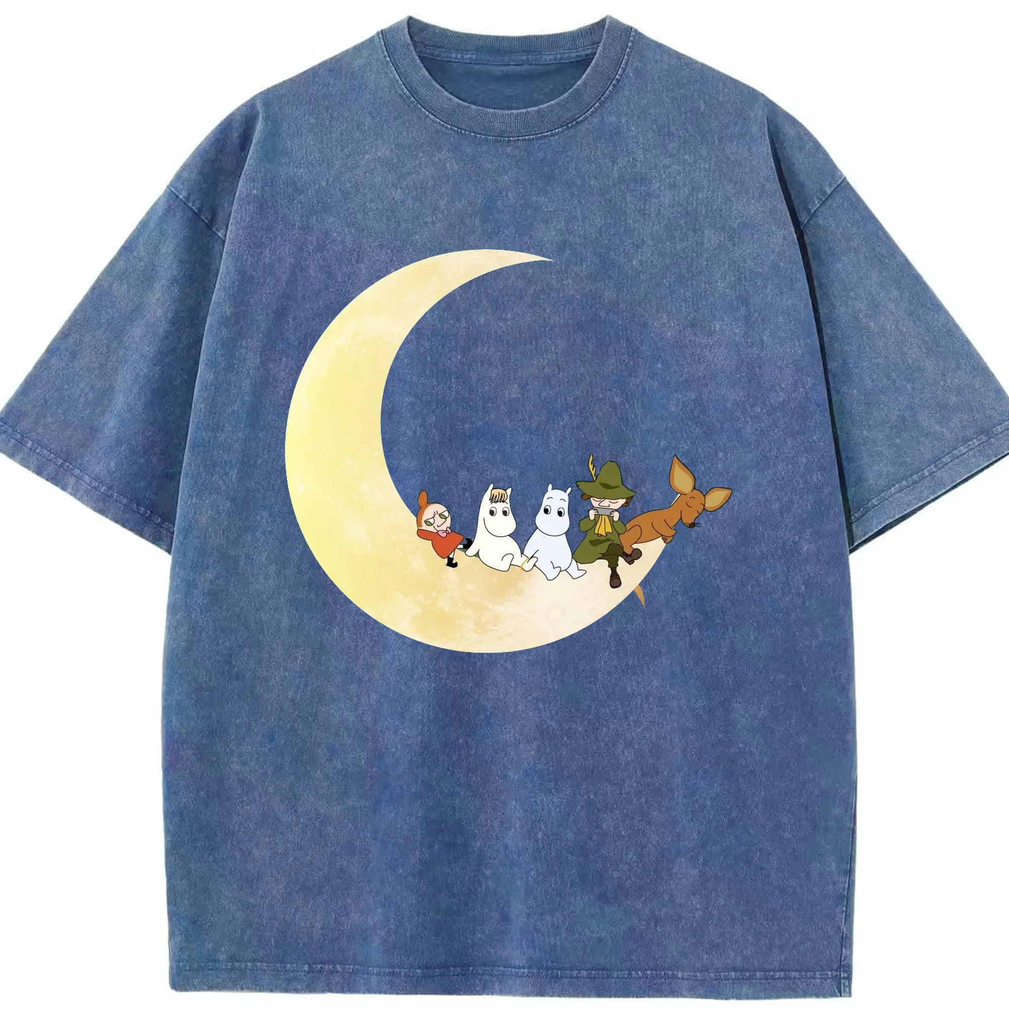Moomin ムーミン谷のなかまたち ムーミンやしきからムーミンたちが次々と出てくる! - 綿100% 半袖Tシャツ ・ フロントプリント ・ 快適 通気性 ・ 日常使い 散歩 スポーツ用