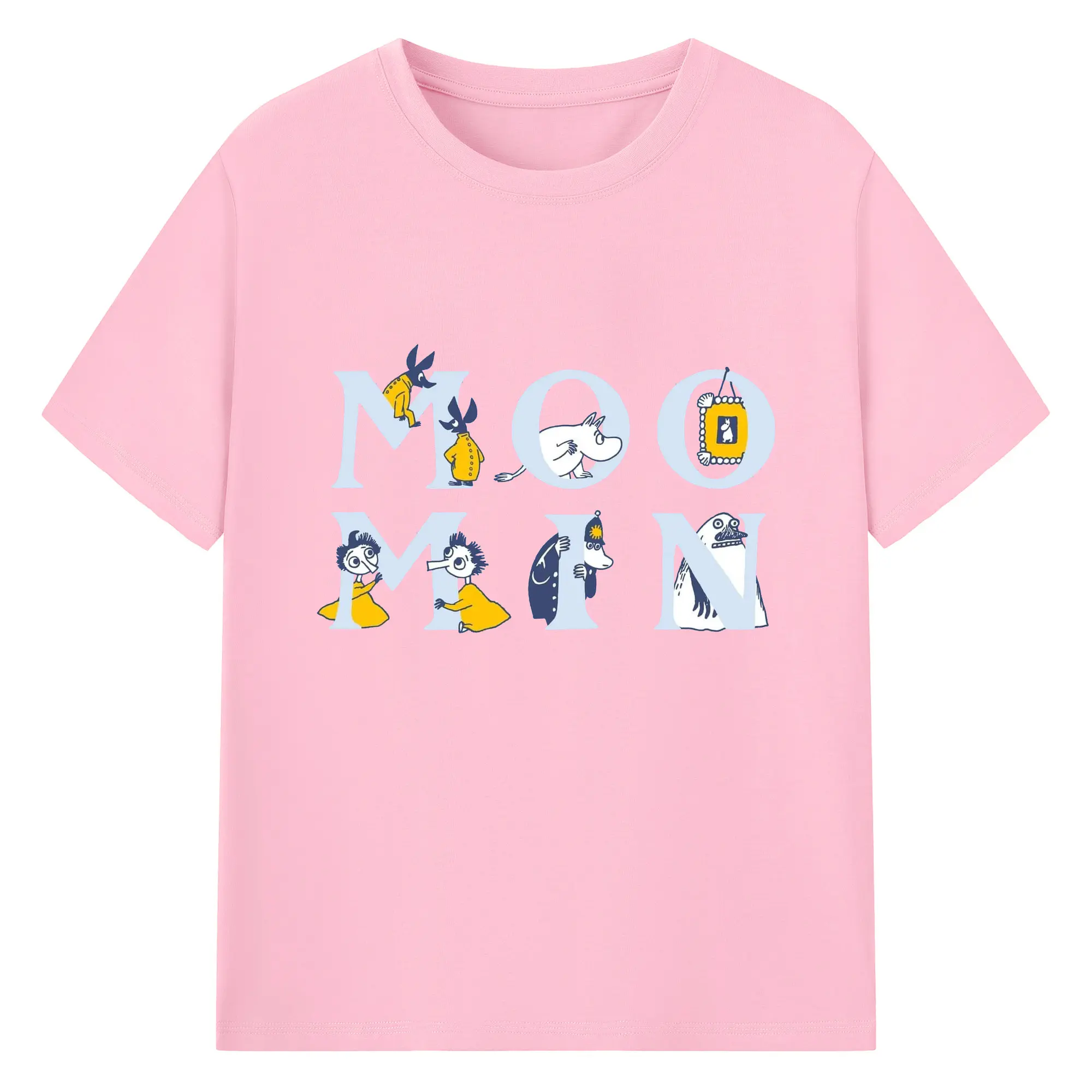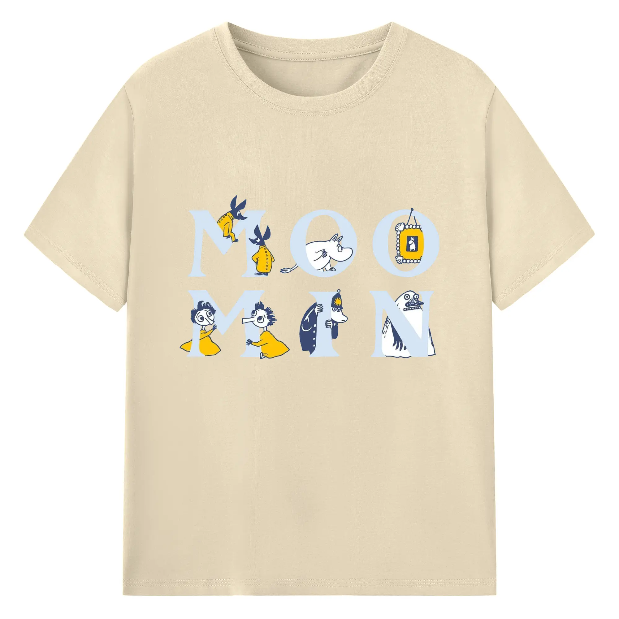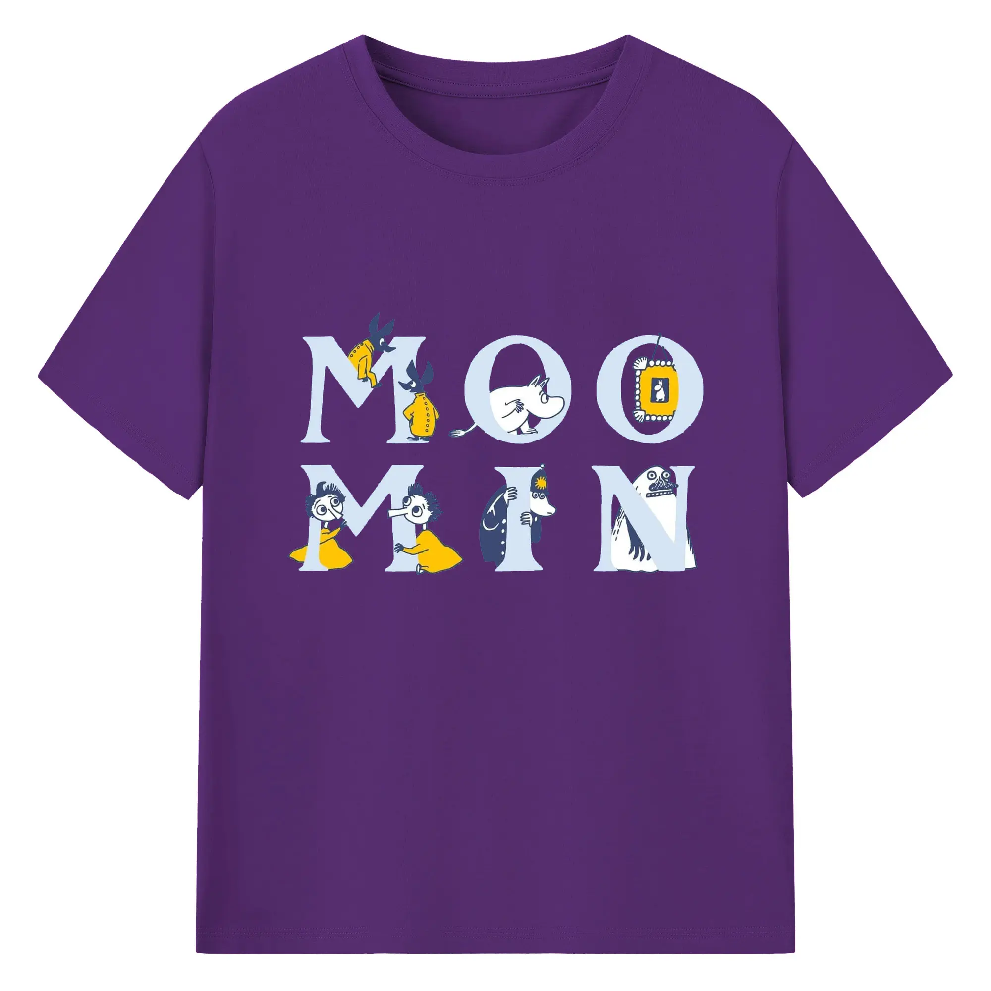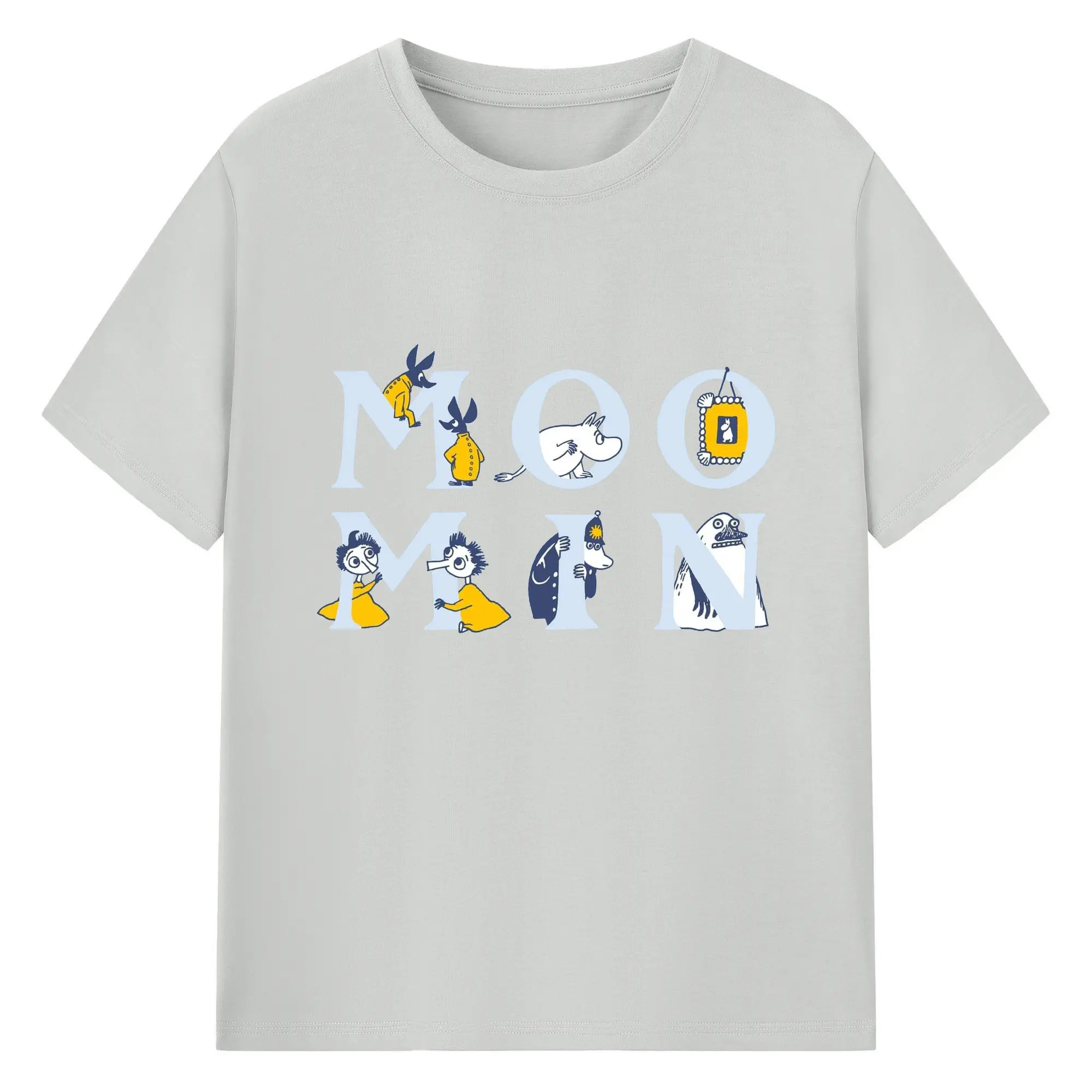 Moomin リトルミイムーミンロゴ - 綿100% ヴィンテージ風 半袖Tシャツ ・ フロントプリント ・ 柔らか肌触り ・ 通気性 快適 ・ スポーツ カジュアル 外出用