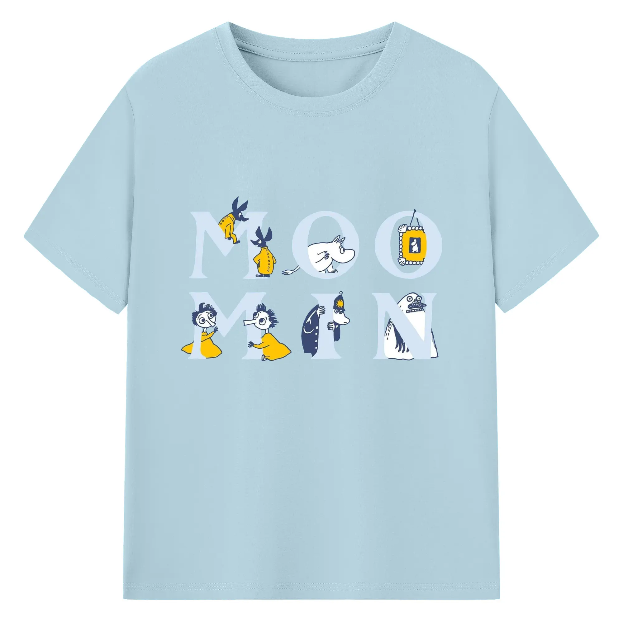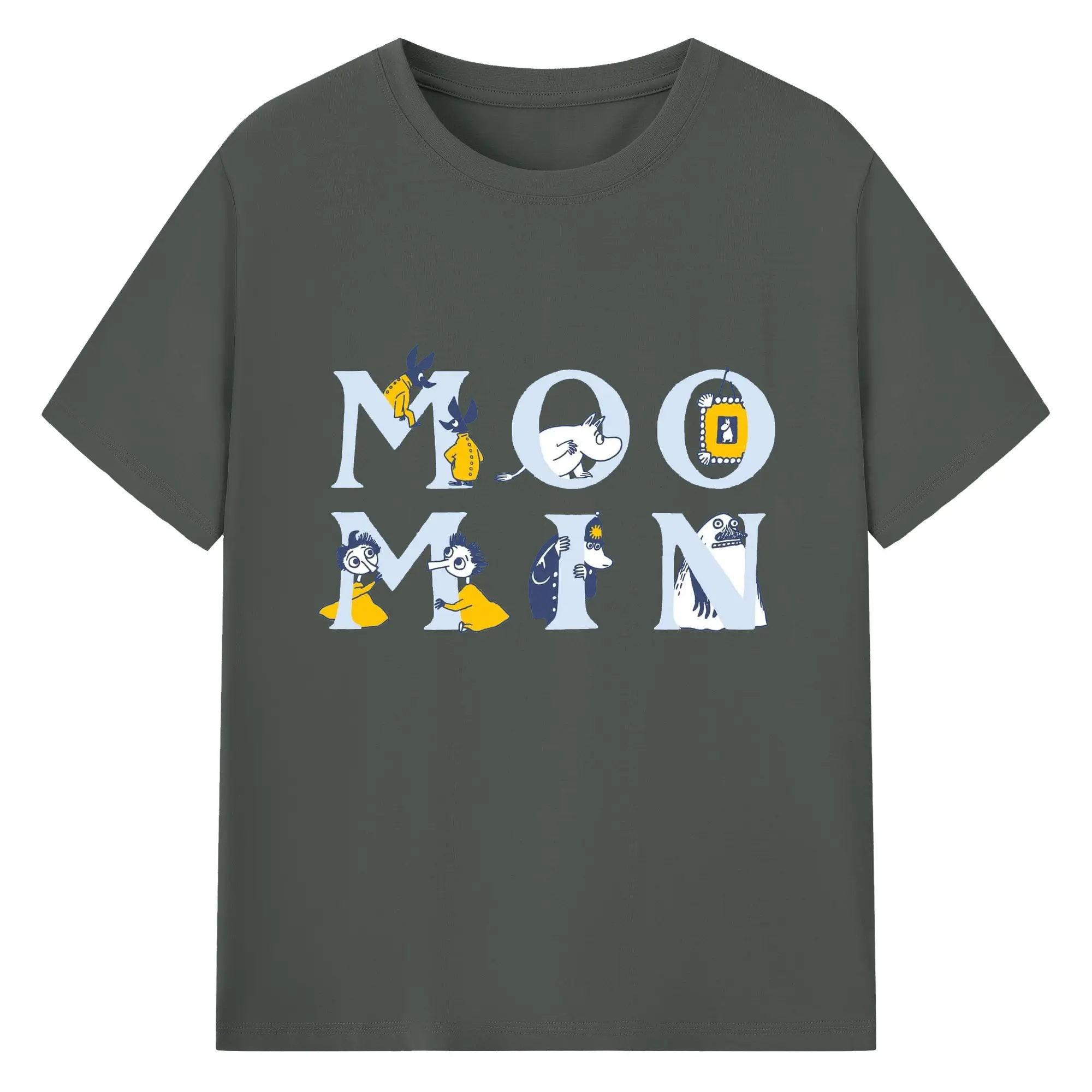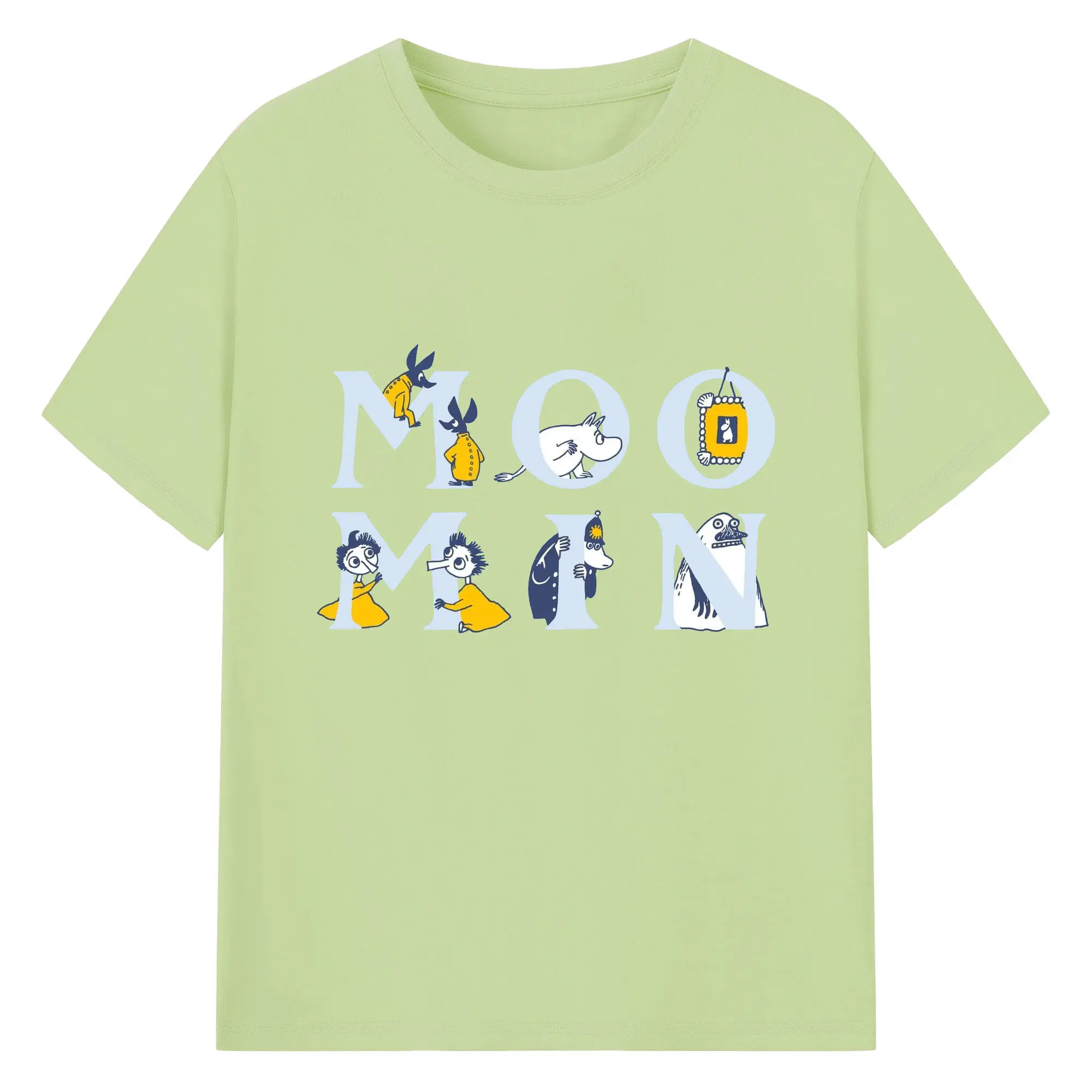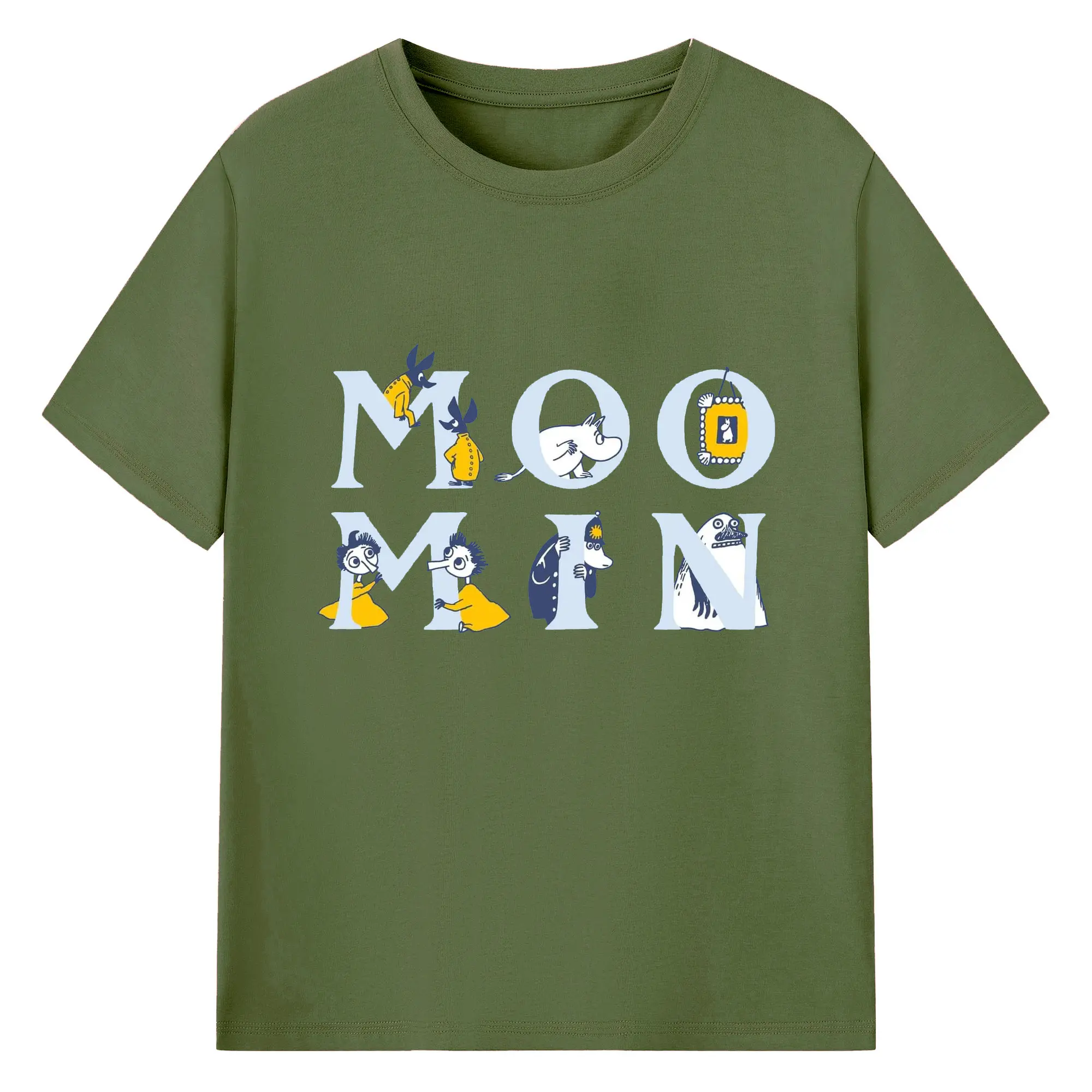 Moomin リトルミイムーミンロゴ - 綿100% ヴィンテージ風 半袖Tシャツ ・ フロントプリント ・ 柔らか肌触り ・ 通気性 快適 ・ スポーツ カジュアル 外出用
