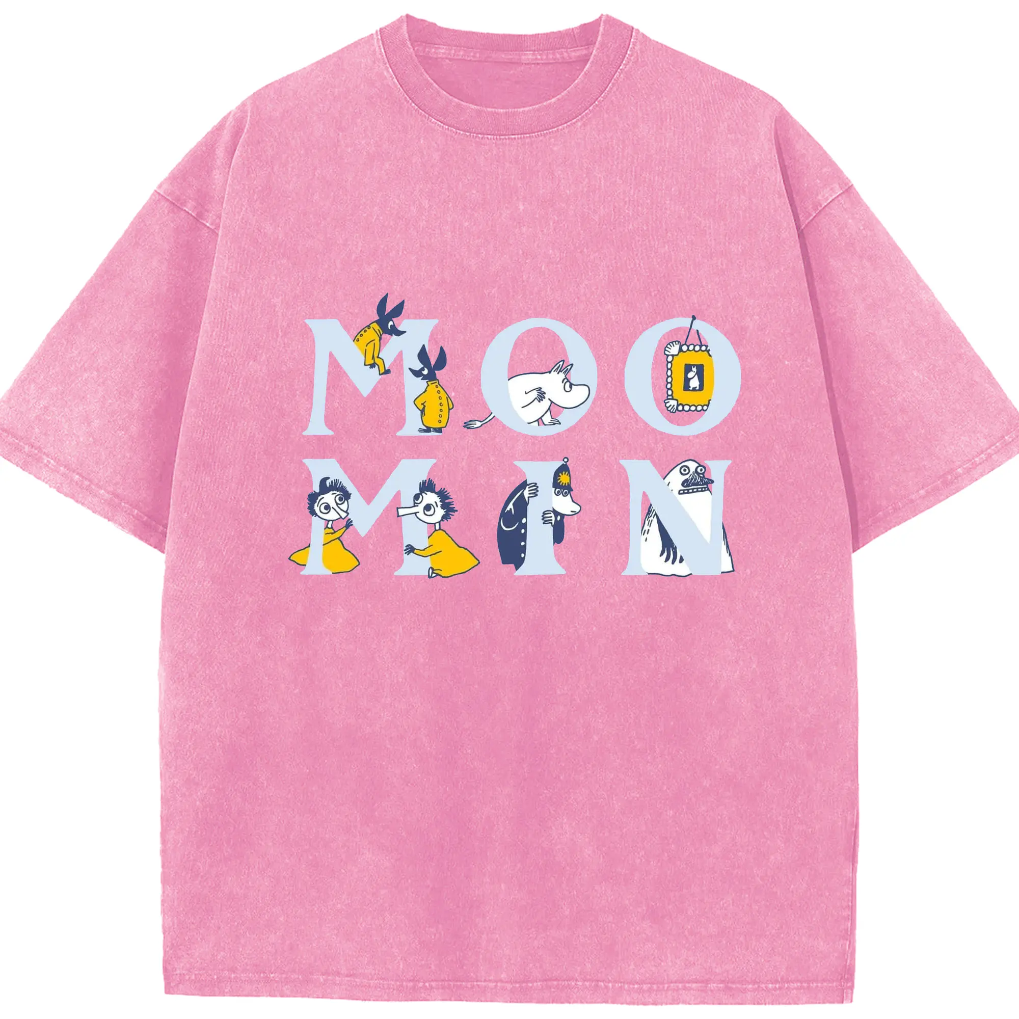 Moomin リトルミイムーミンロゴ - 綿100% 半袖Tシャツ ・ フロントプリント ・ 快適 通気性 ・ 日常使い 散歩 スポーツ用
