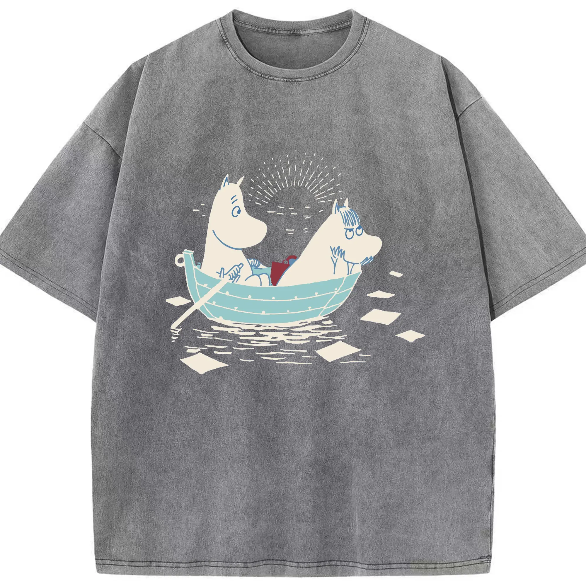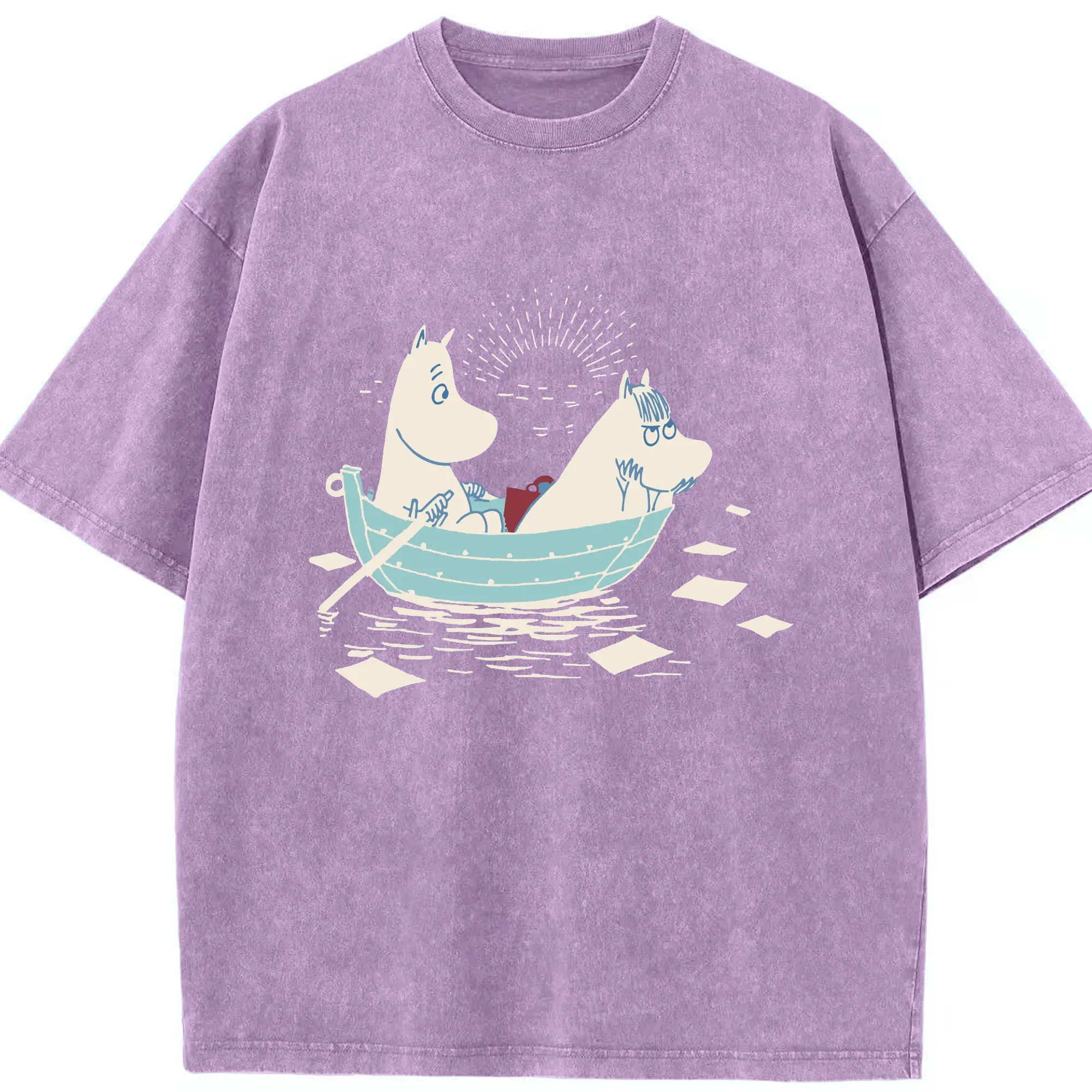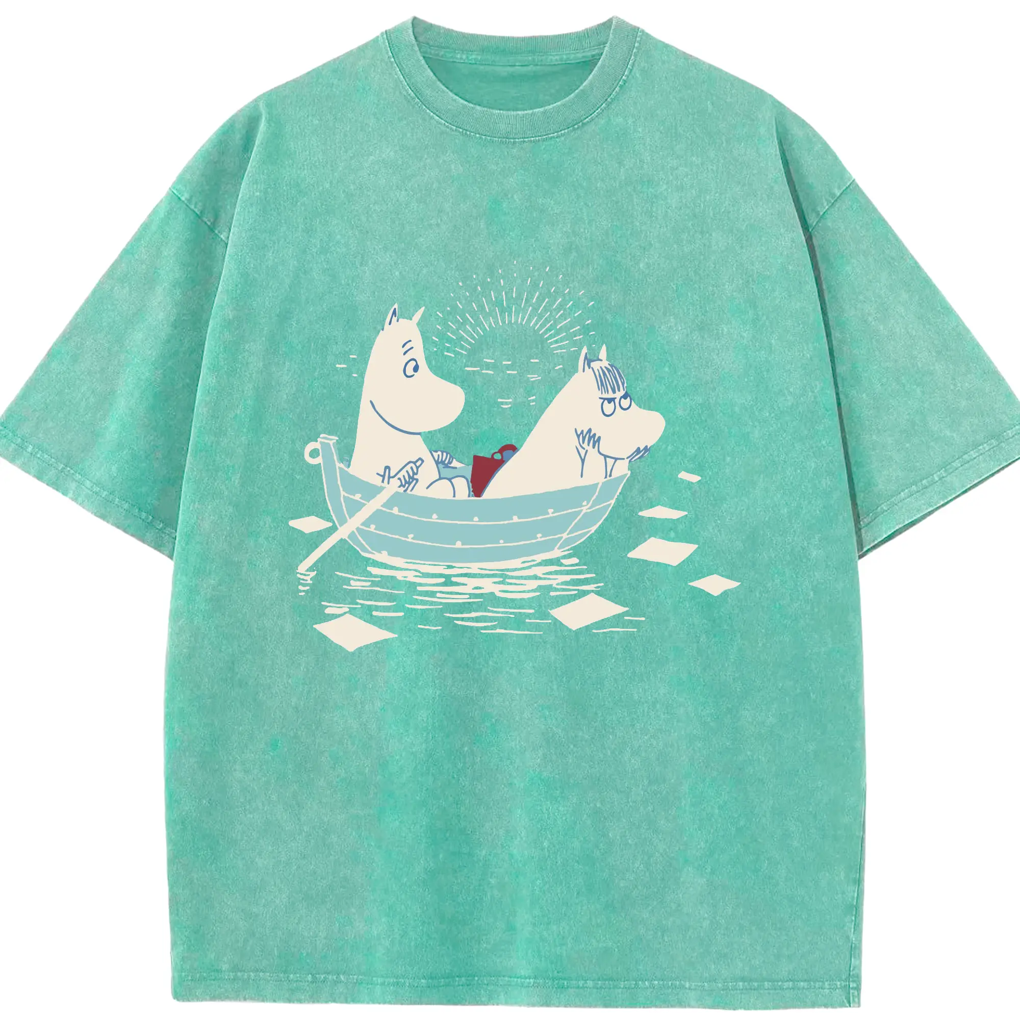 Moomin 恋の季節 ハッピーカップルフィンランド絵本 - 綿100% 半袖Tシャツ ・ フロントプリント ・ 快適 通気性 ・ 日常使い 散歩 スポーツ用
