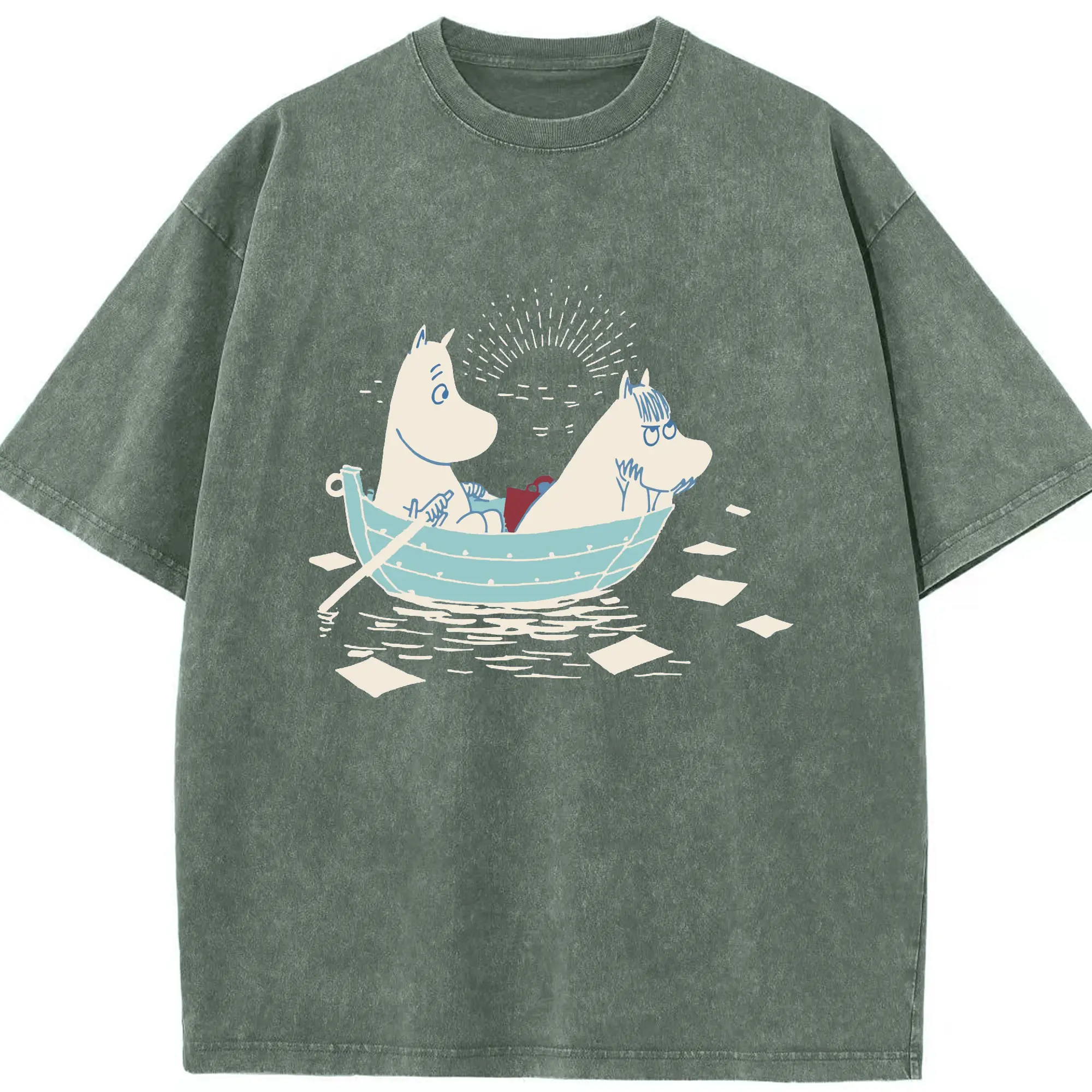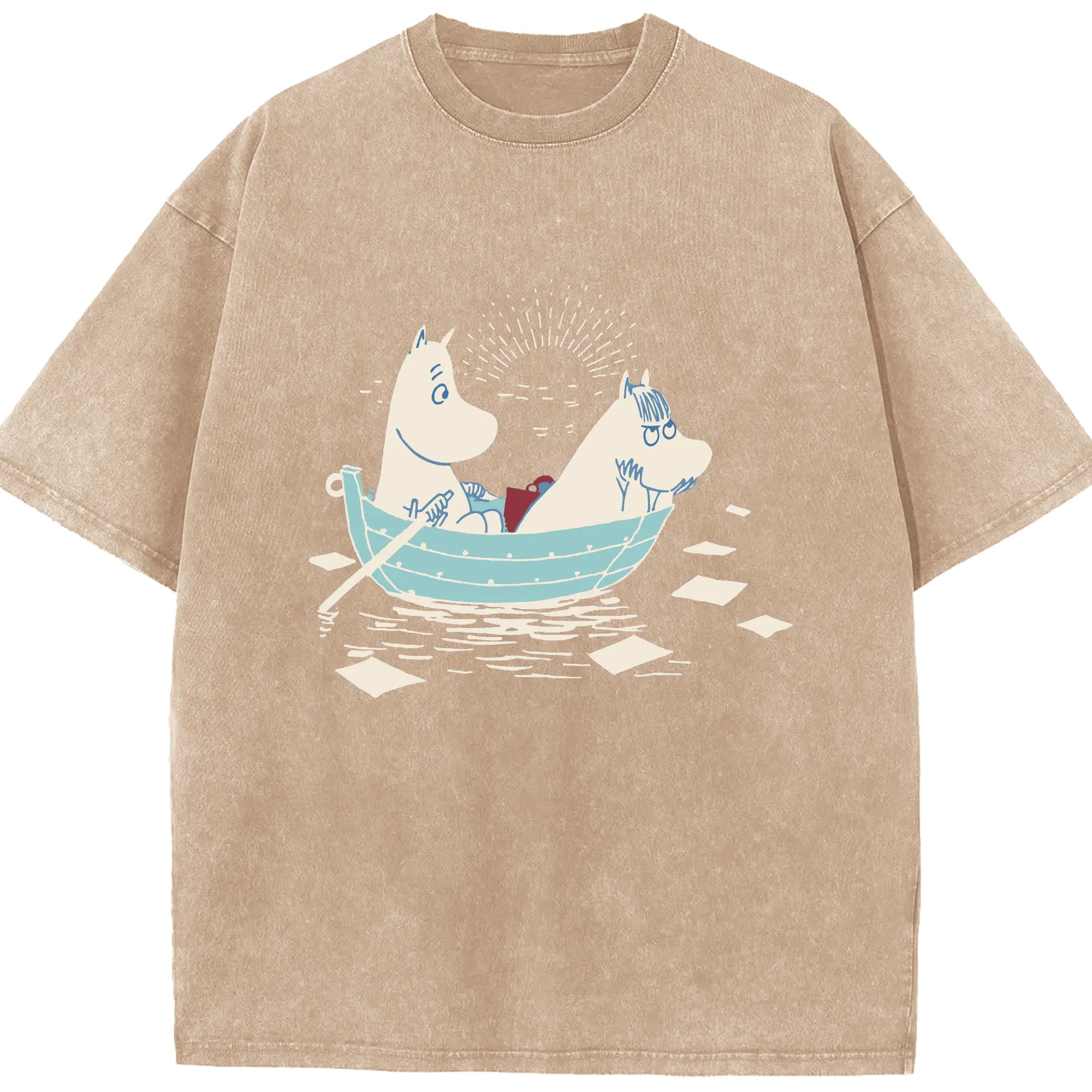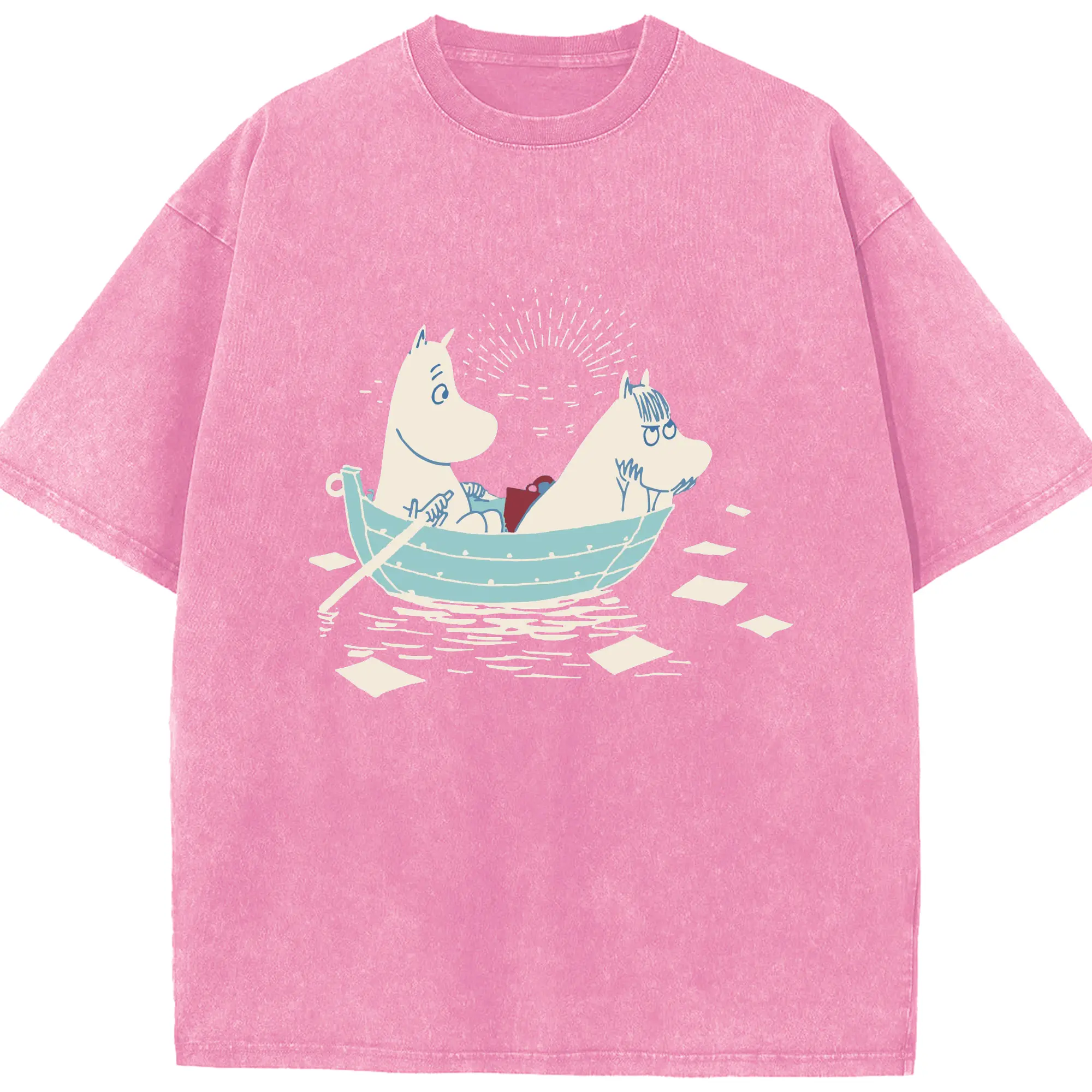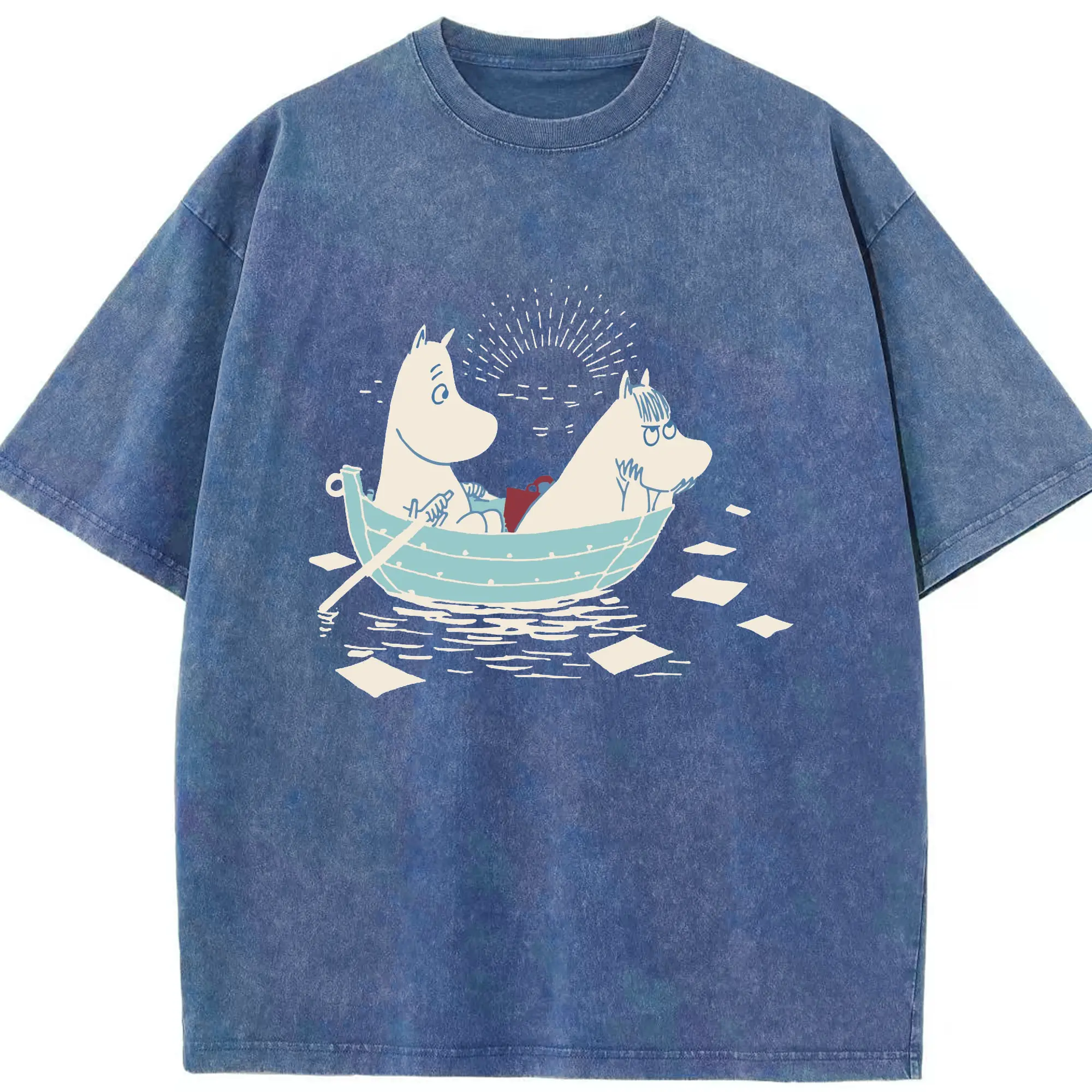 Moomin 恋の季節 ハッピーカップルフィンランド絵本 - 綿100% 半袖Tシャツ ・ フロントプリント ・ 快適 通気性 ・ 日常使い 散歩 スポーツ用