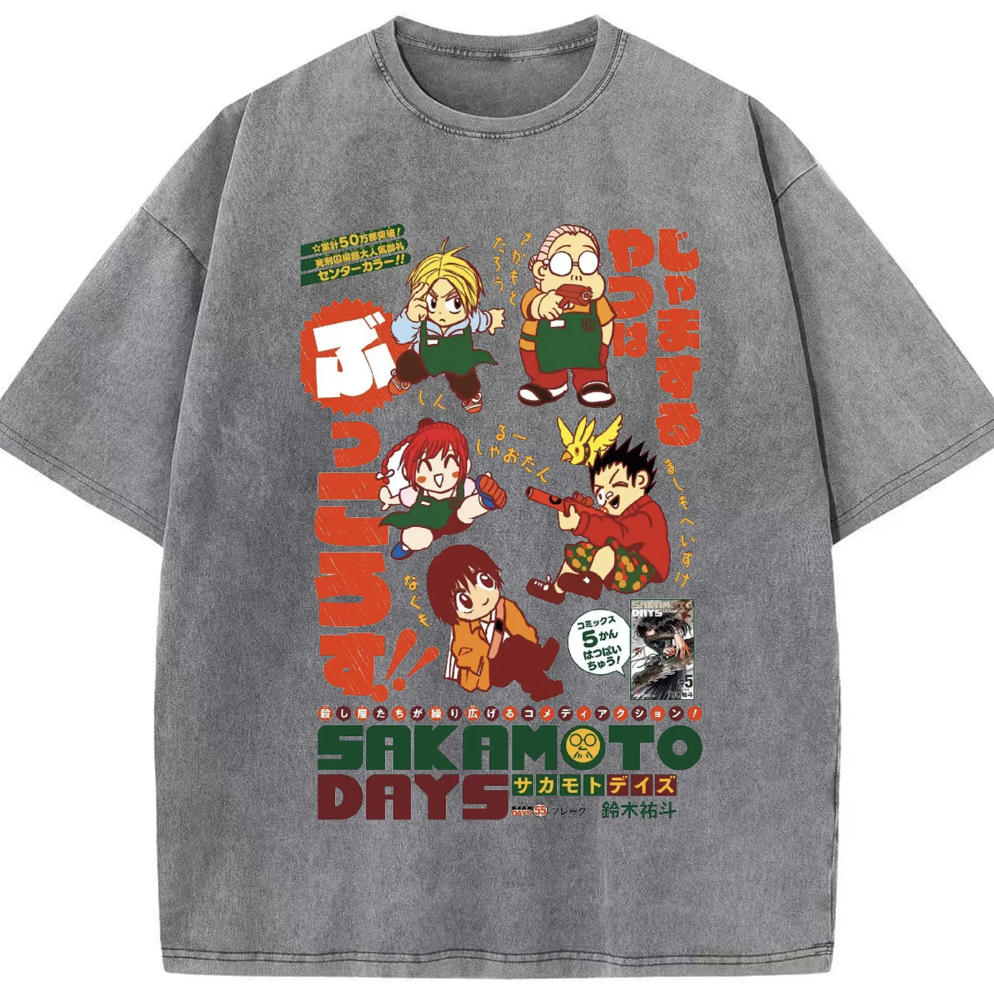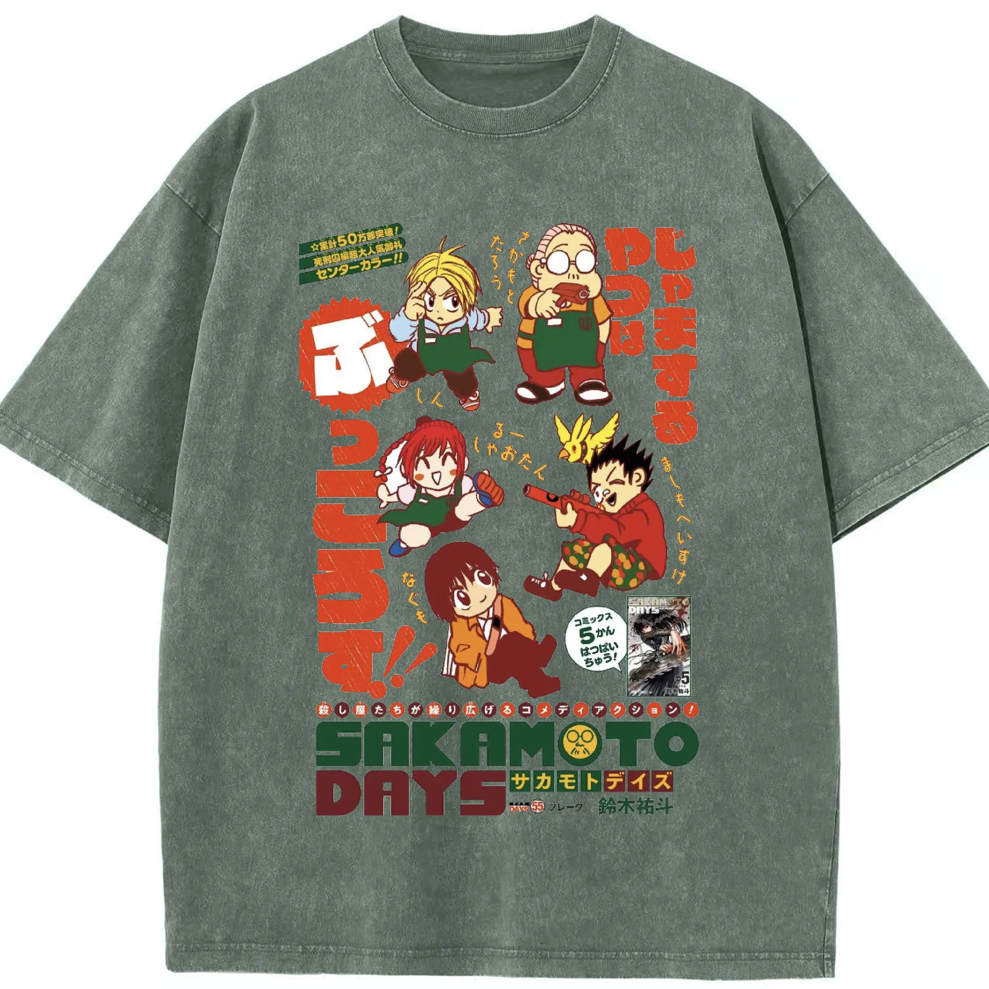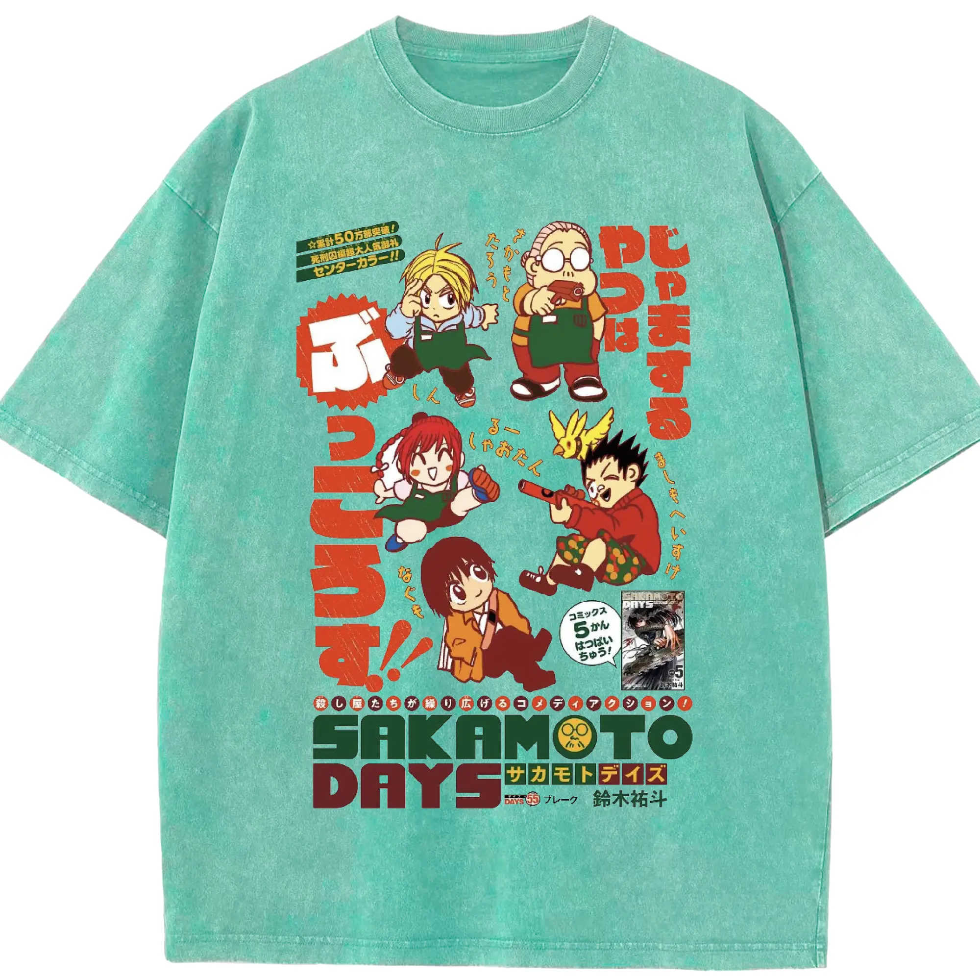 Sakamoto Days デフォルメ 坂本家族 - 綿100% 半袖Tシャツ ・ フロントプリント ・ 快適 通気性 ・ 日常使い 散歩 スポーツ用