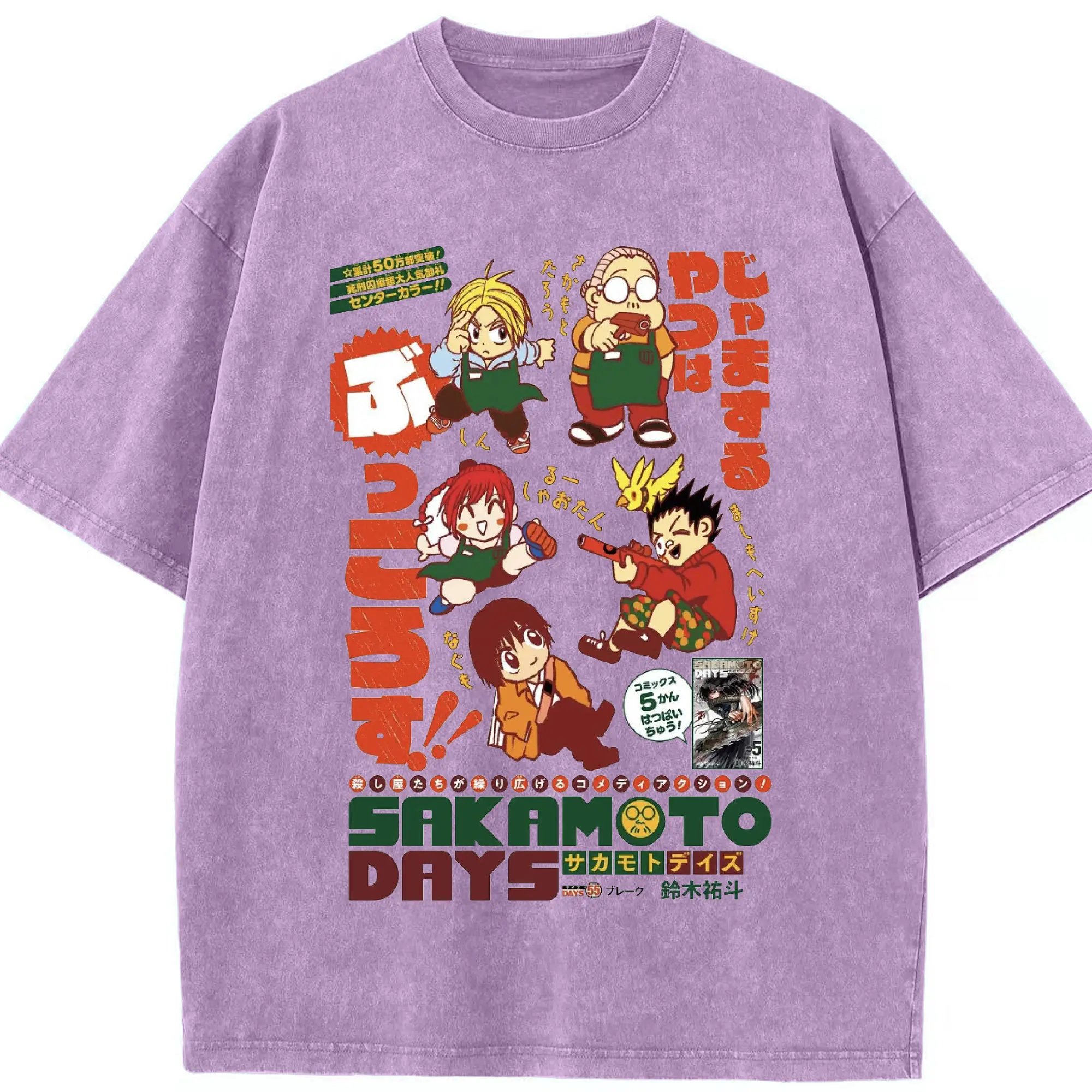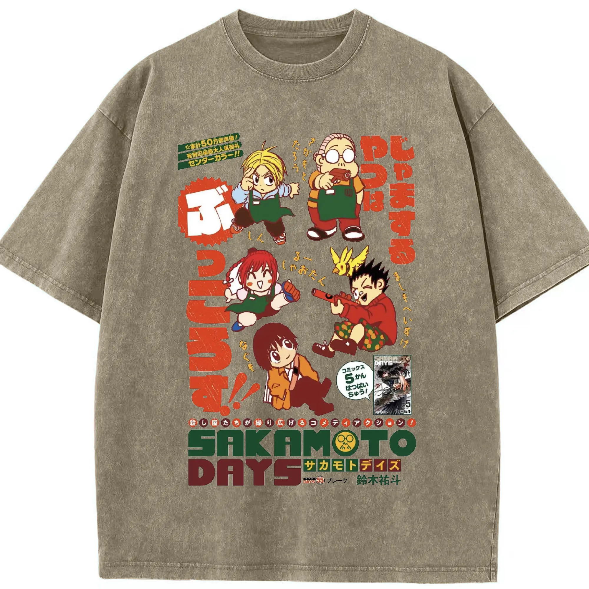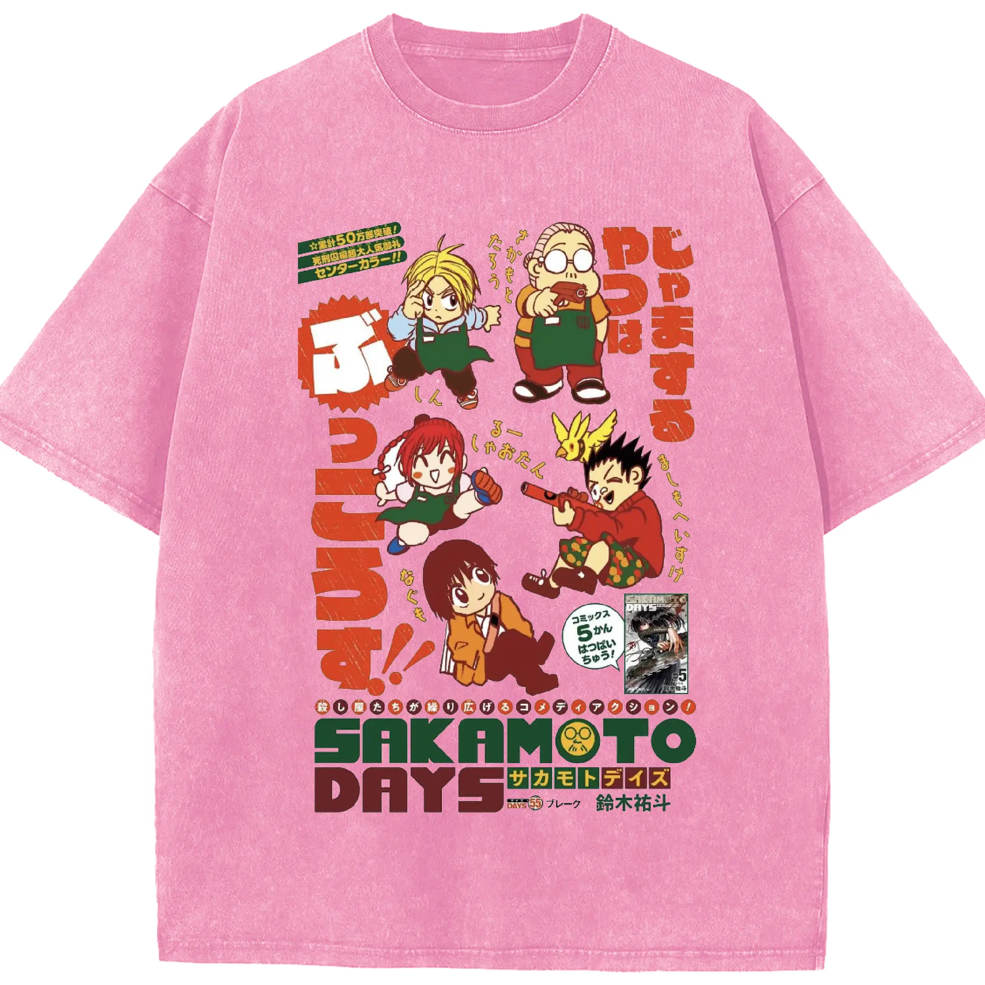 Sakamoto Days デフォルメ 坂本家族 - 綿100% 半袖Tシャツ ・ フロントプリント ・ 快適 通気性 ・ 日常使い 散歩 スポーツ用